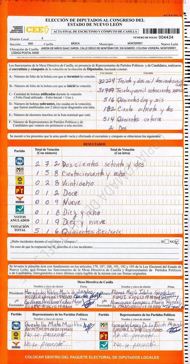 | Resultado | Casillas | Gráfica de Votación | Gráfica de Porcentajes |