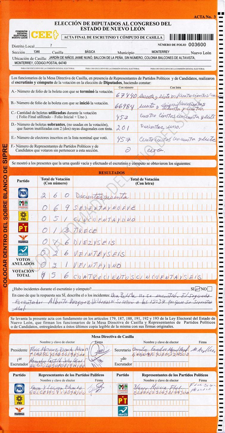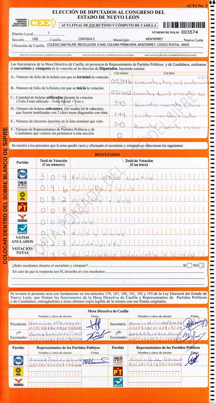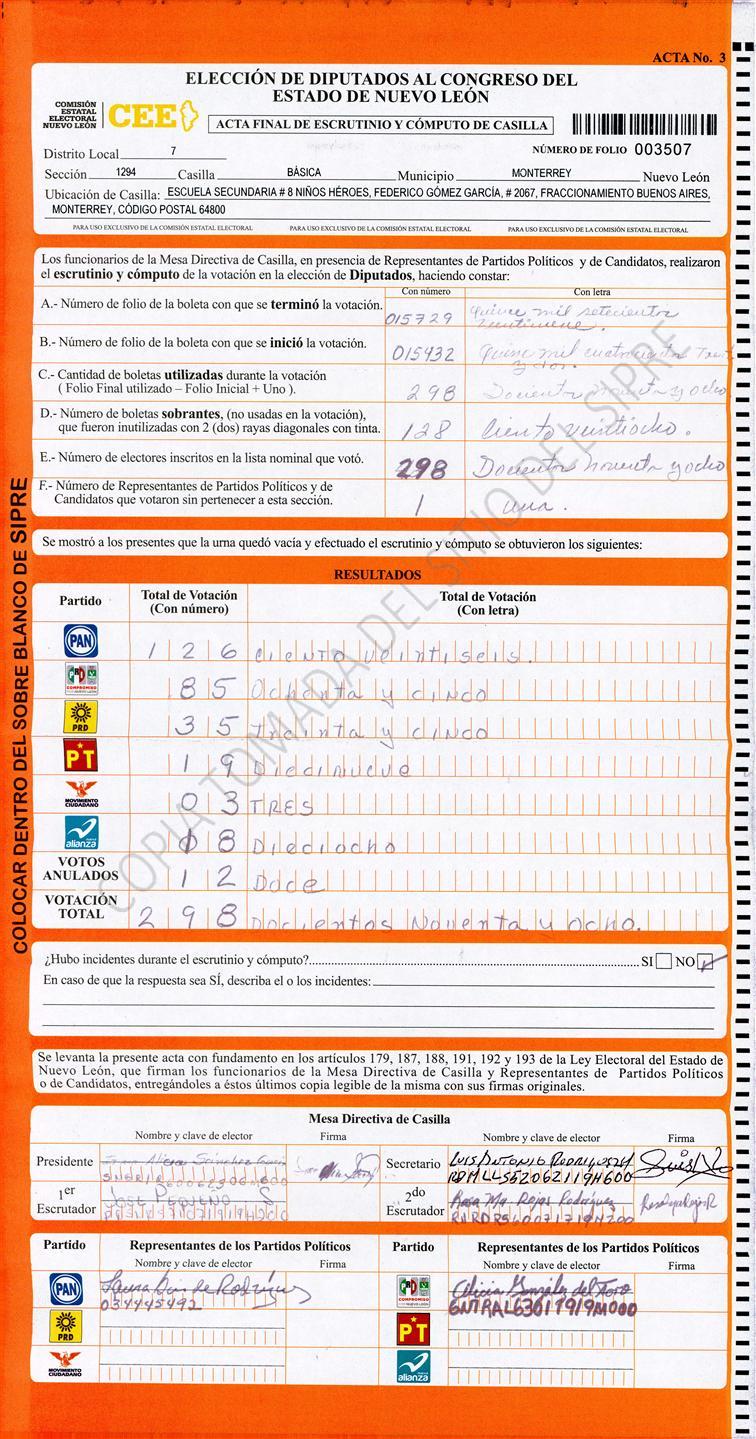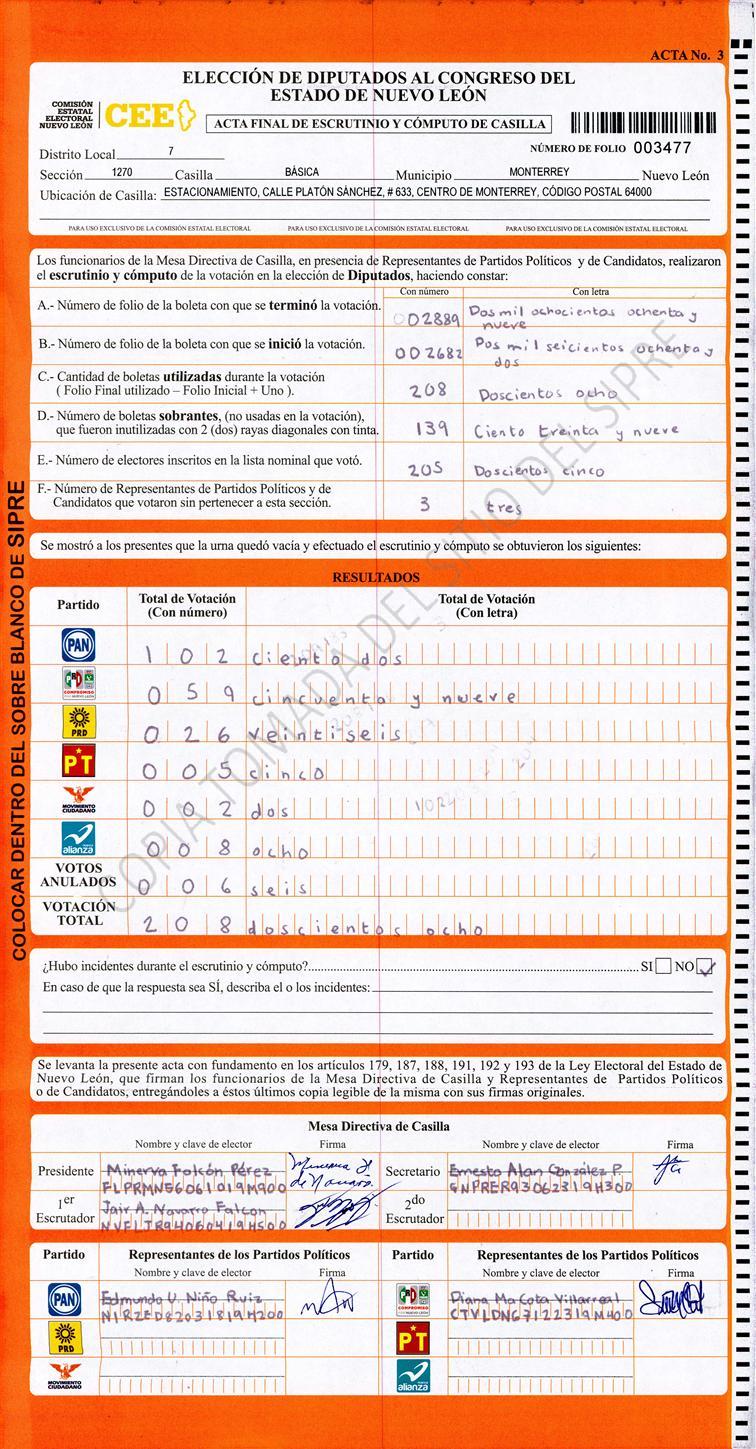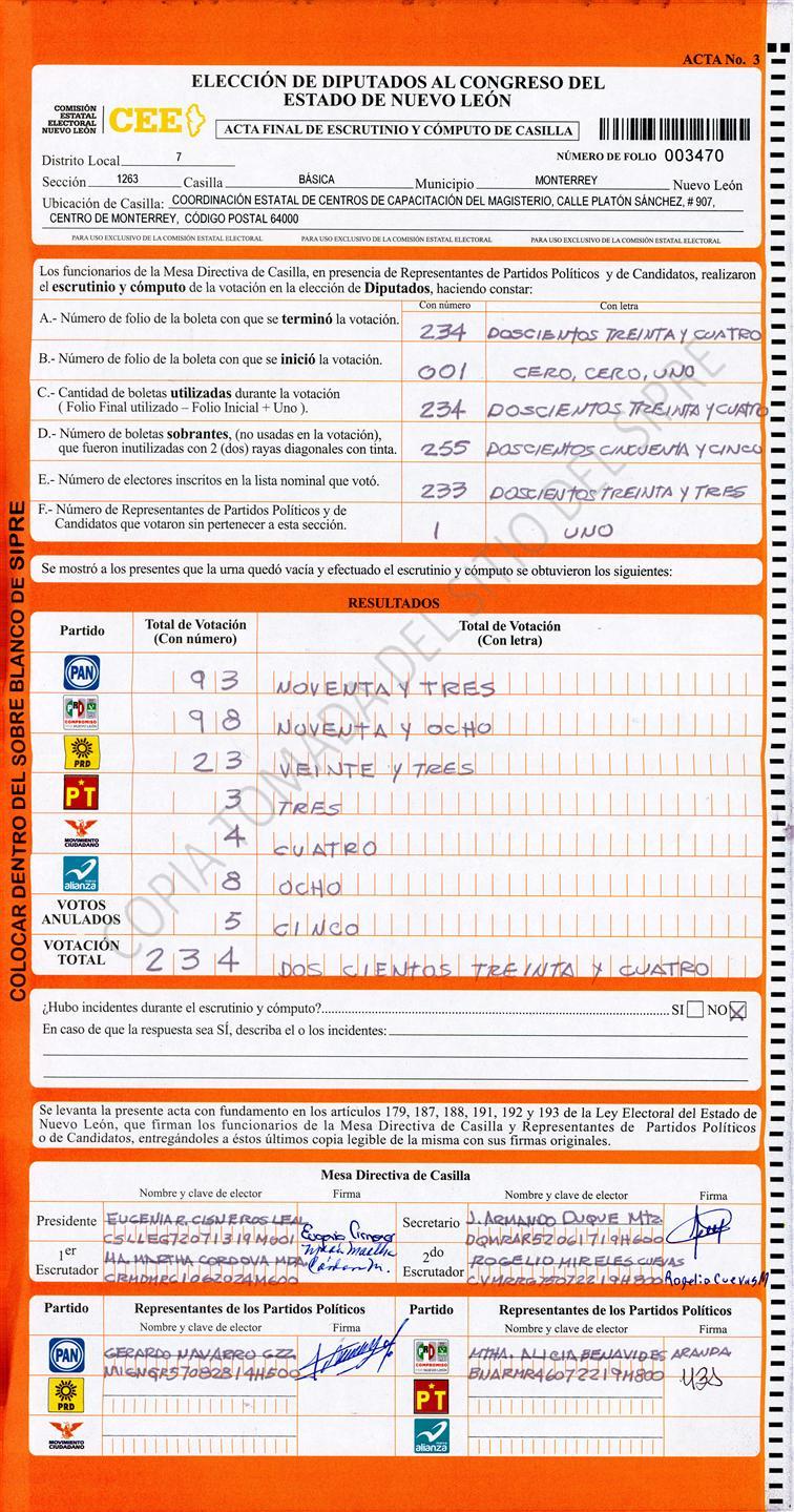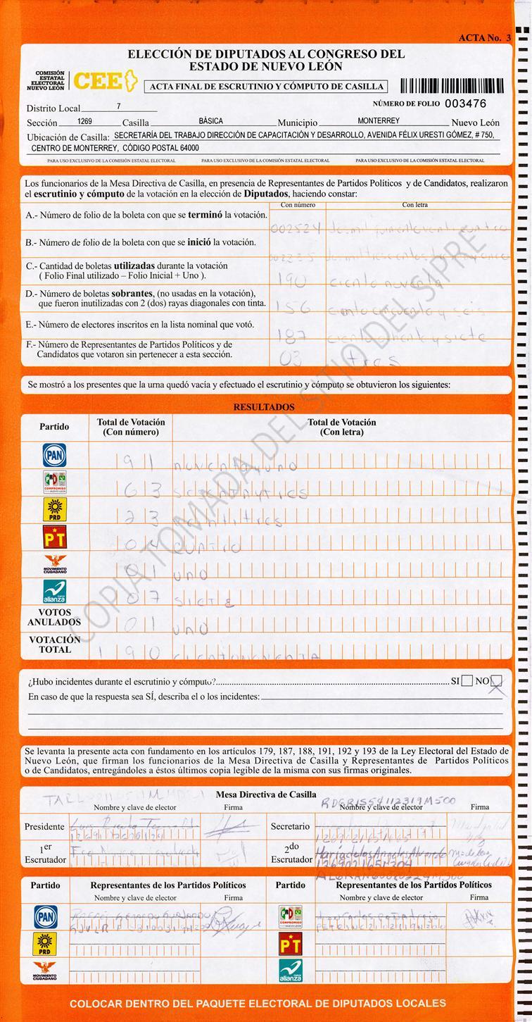 , (8) Copiado Movido , (9) Con Signos Inválidos , (10) Excede Lista Nominal , (11) Otra |