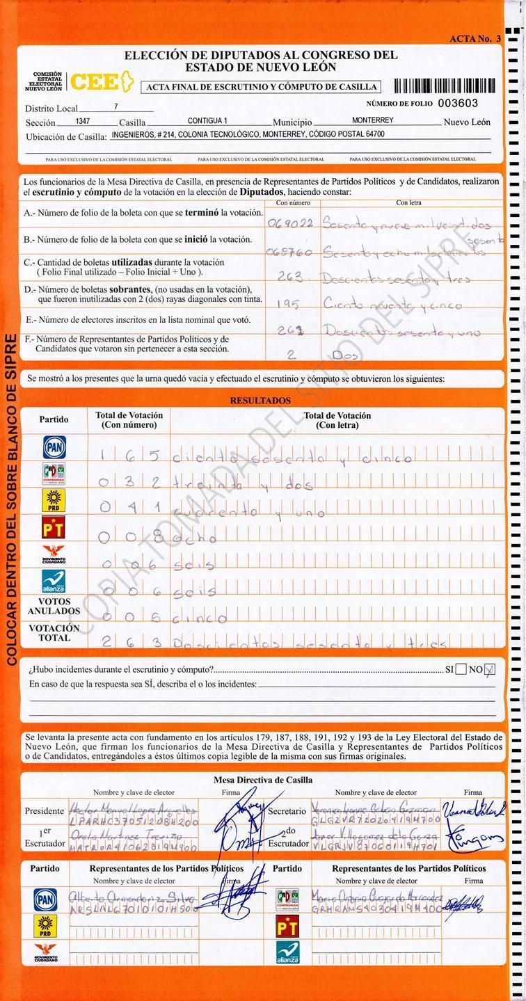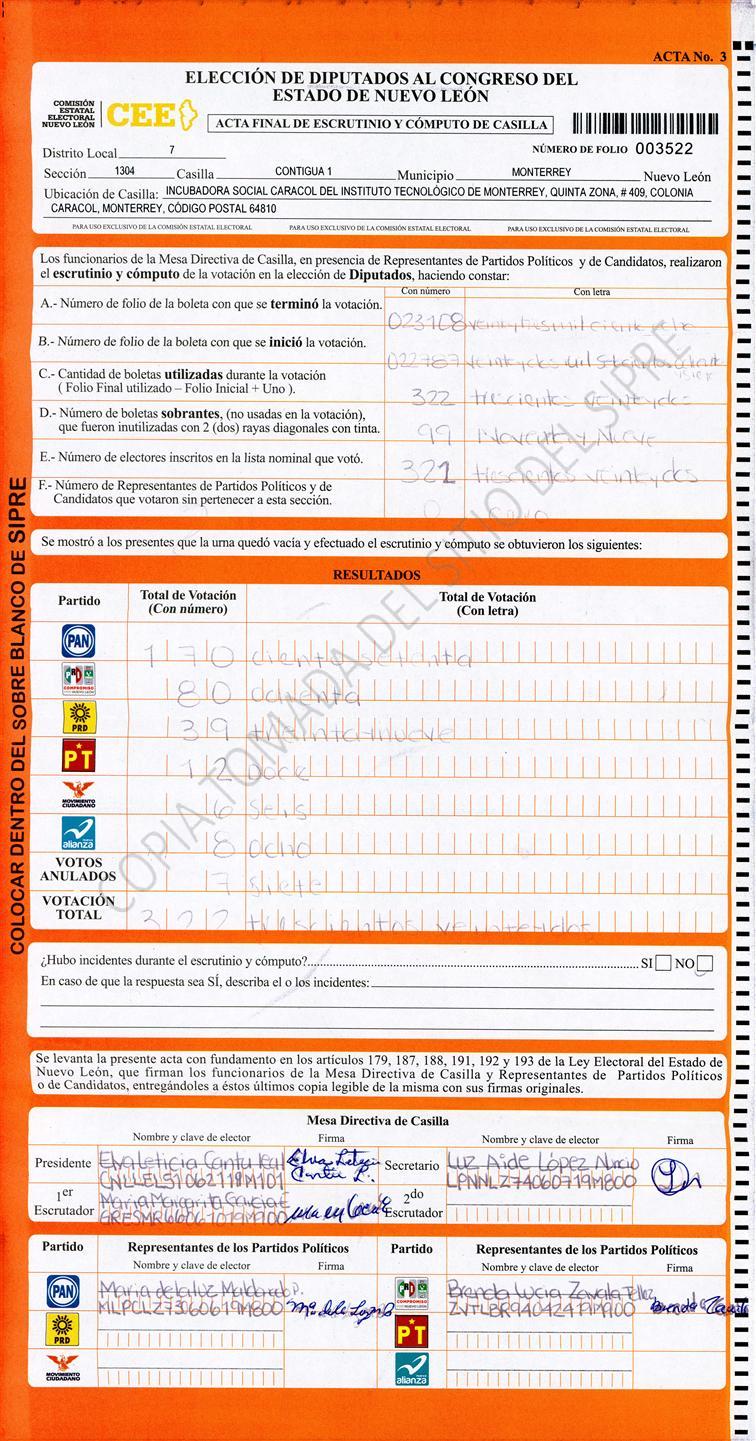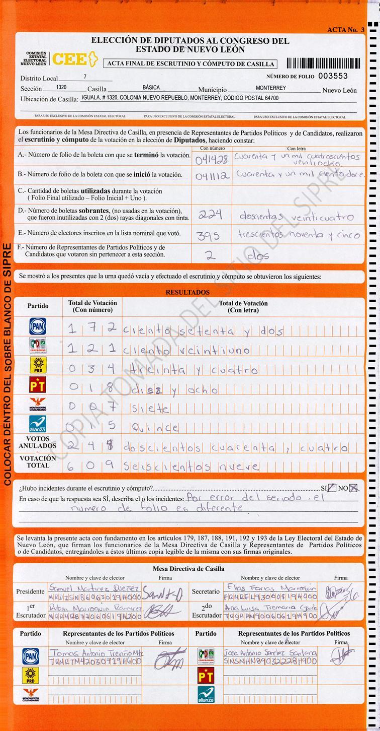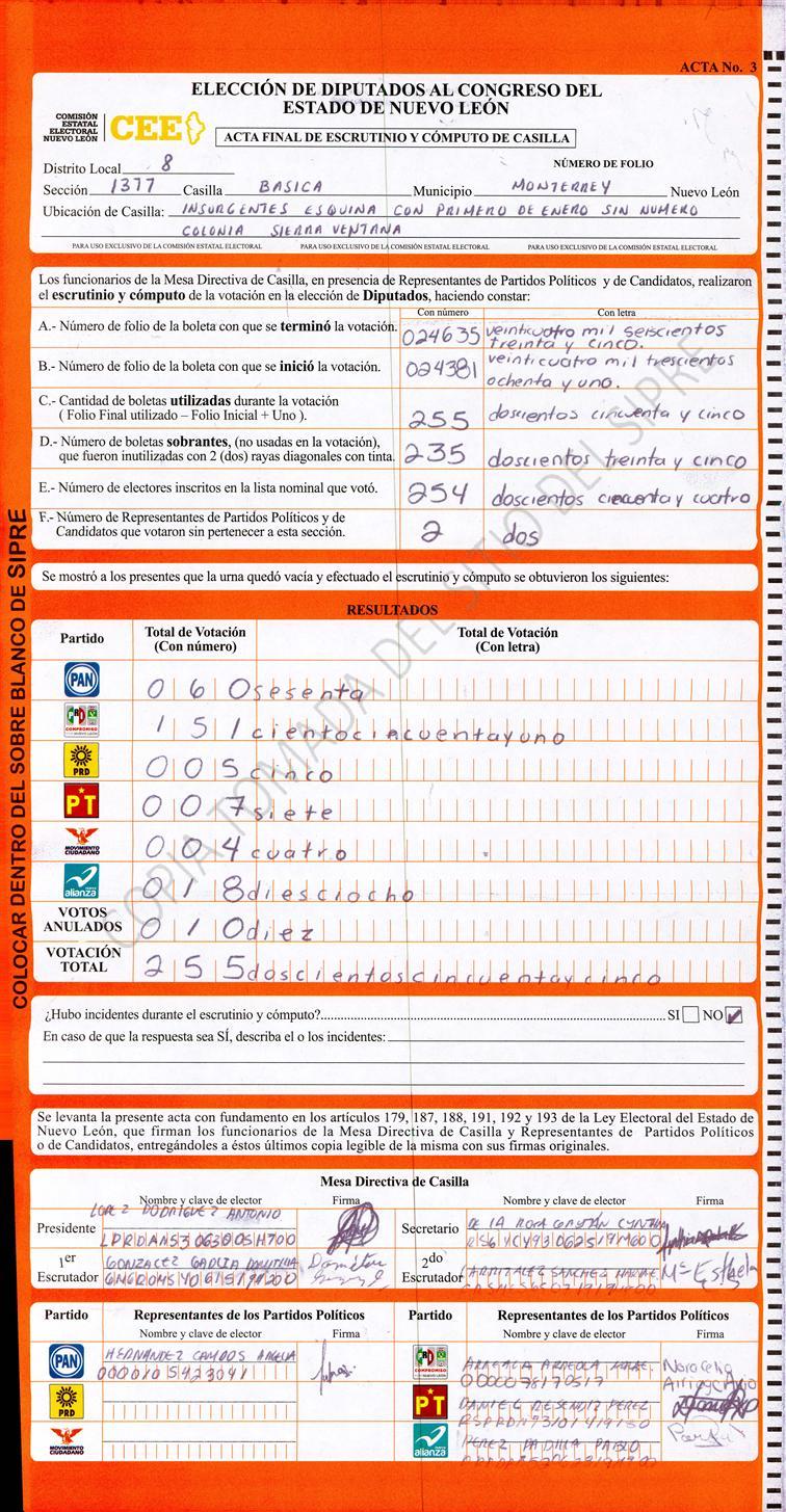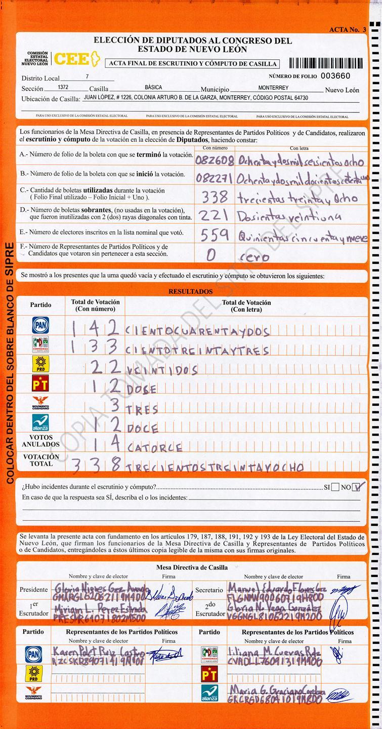 , (8) Copiado Movido , (9) Con Signos Inválidos , (10) Excede Lista Nominal , (11) Otra |