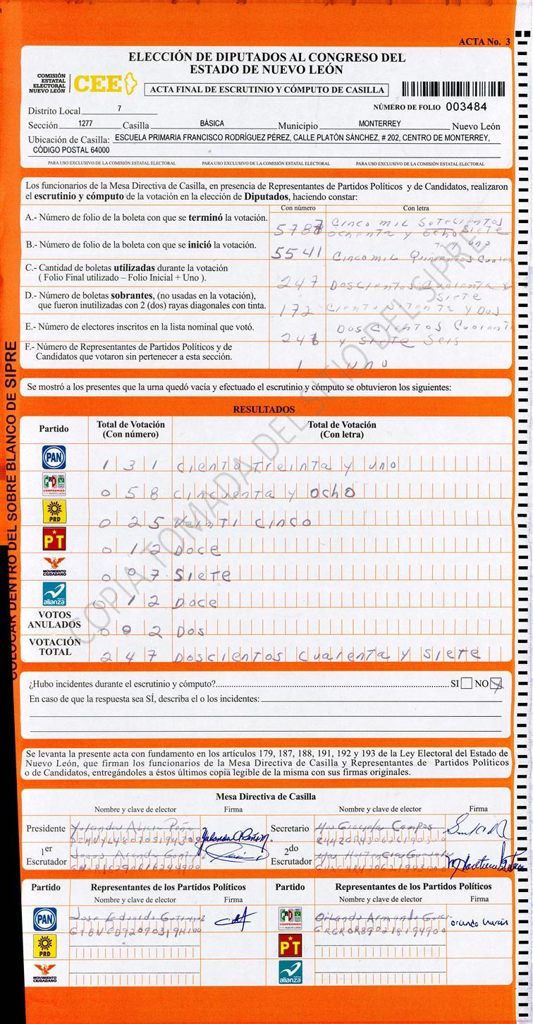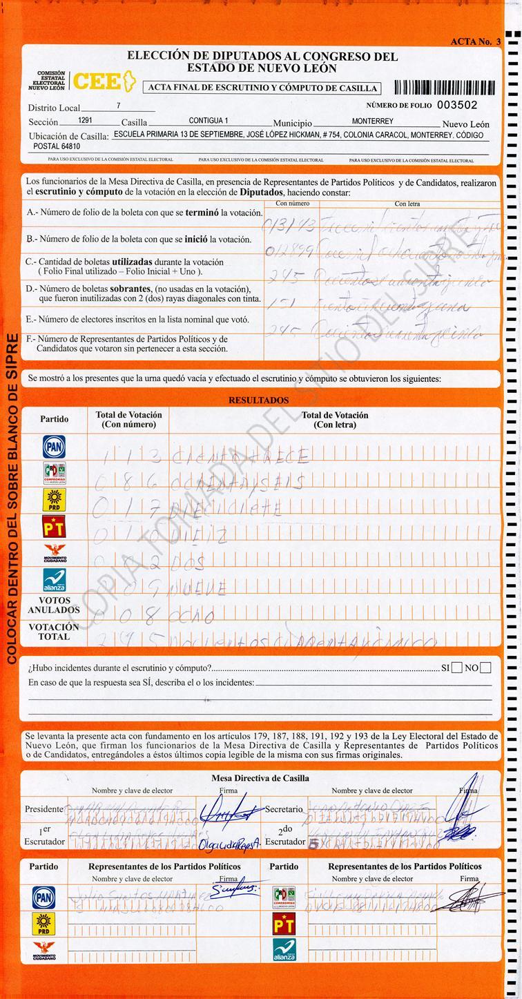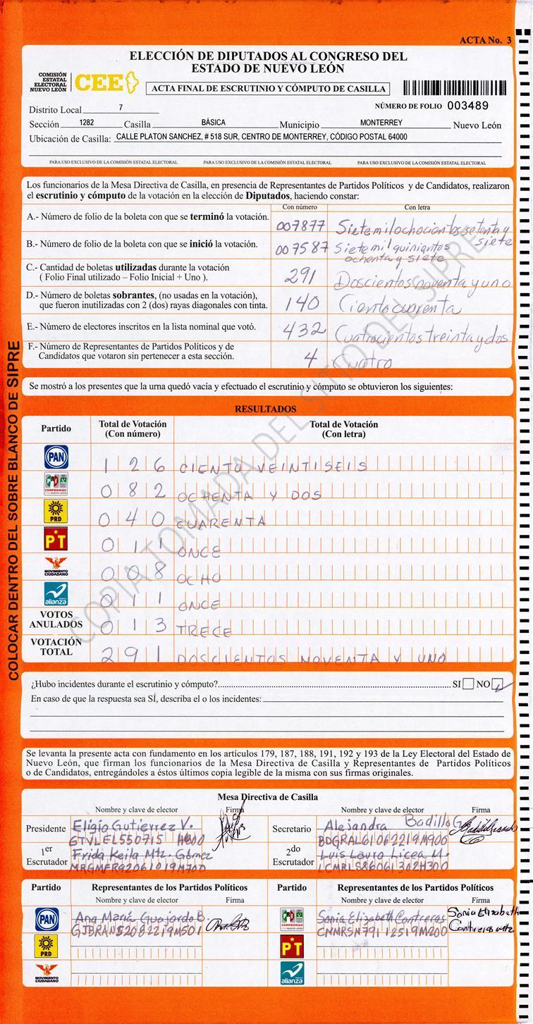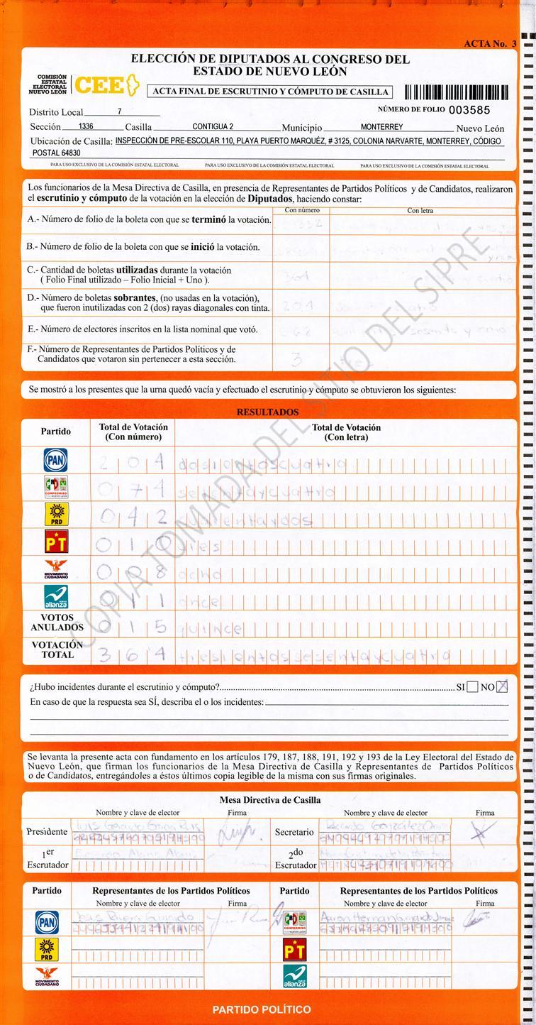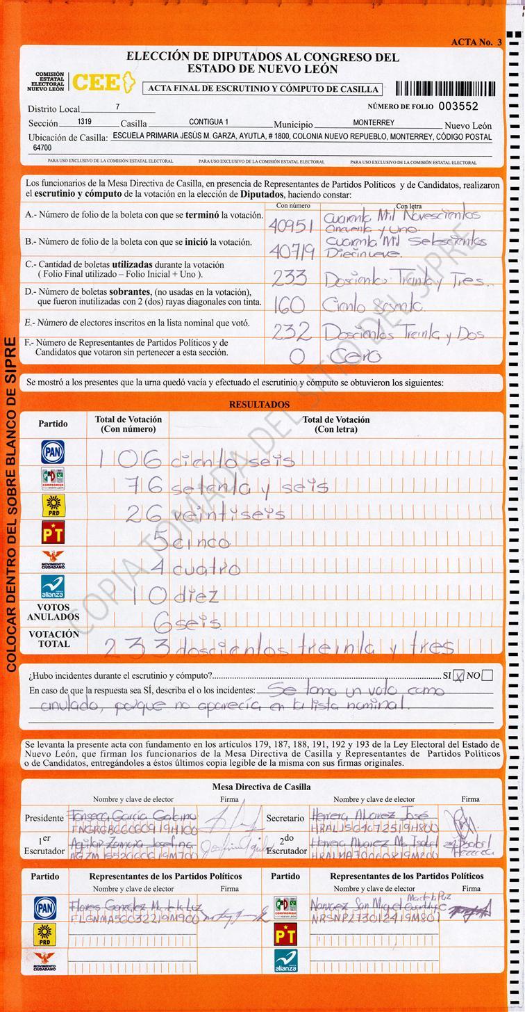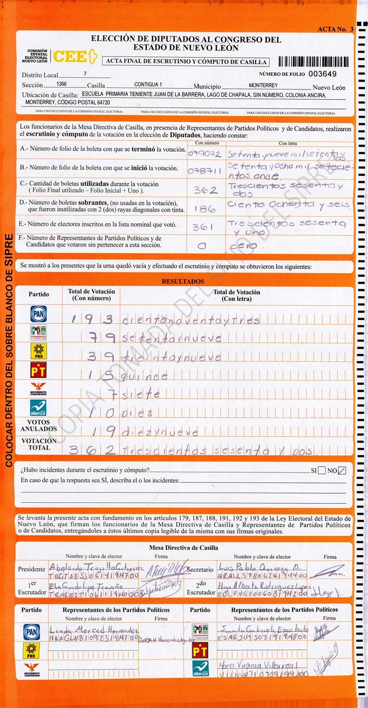 , (8) Copiado Movido , (9) Con Signos Inválidos , (10) Excede Lista Nominal , (11) Otra |