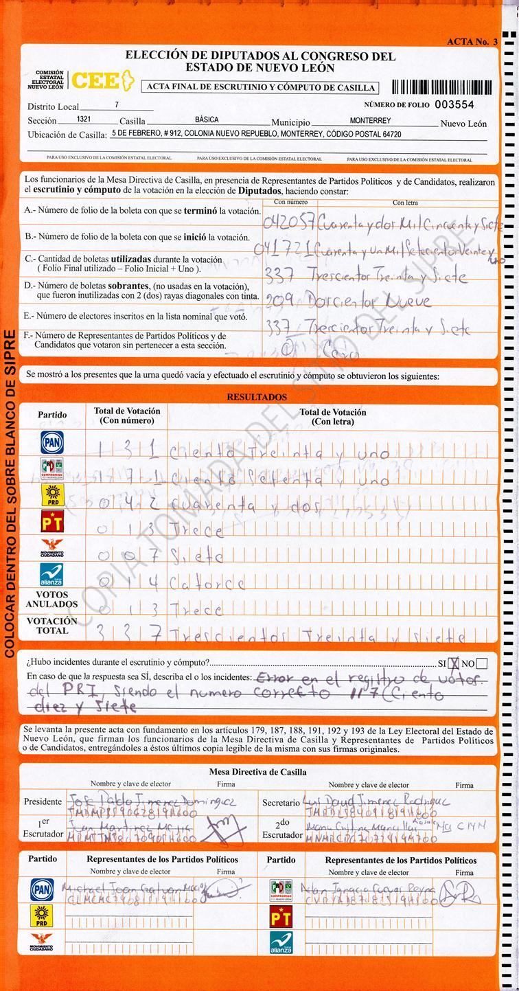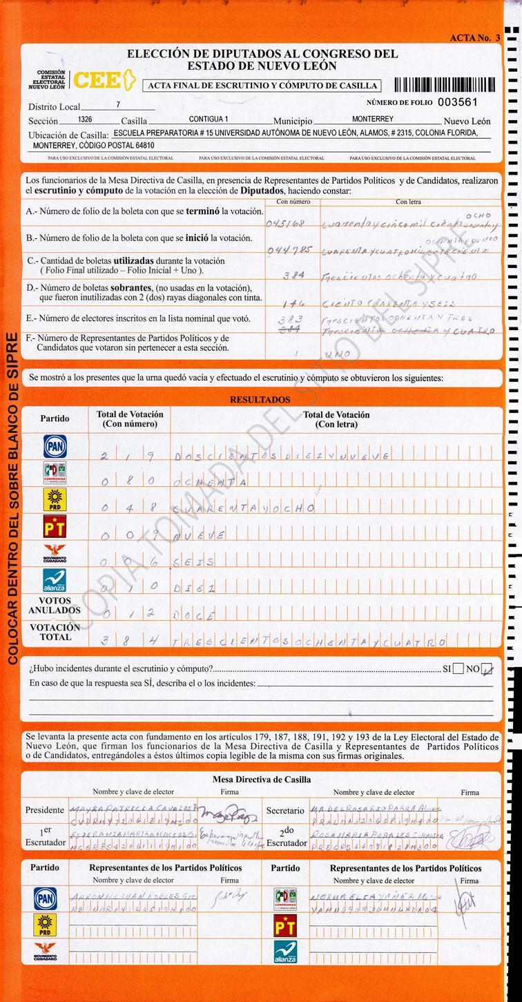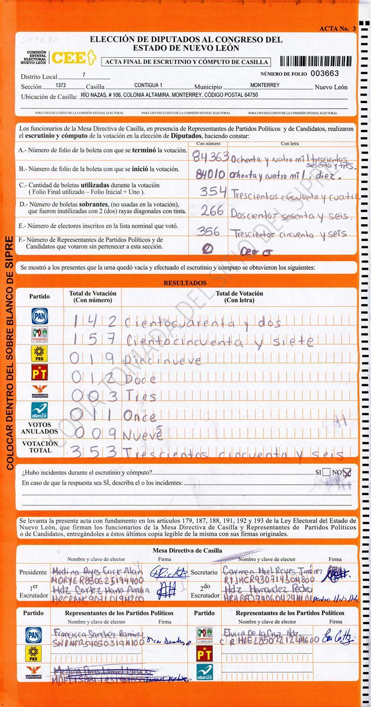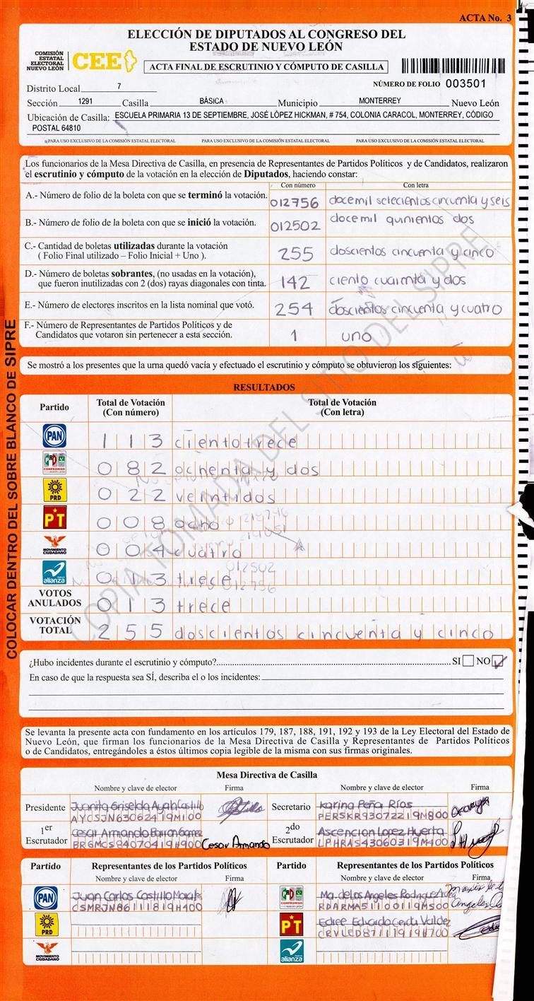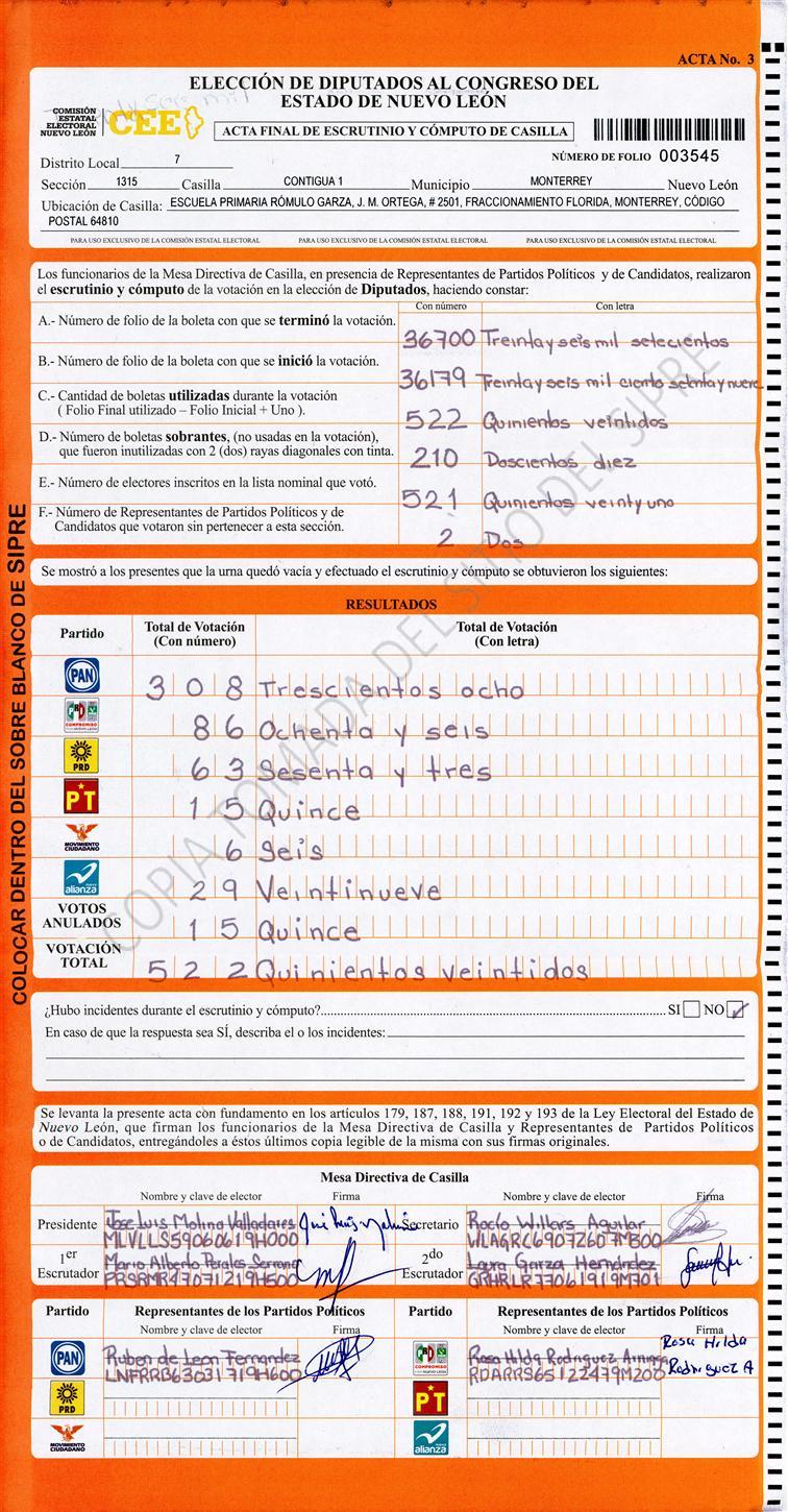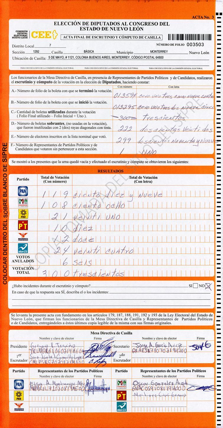 , (8) Copiado Movido , (9) Con Signos Inválidos , (10) Excede Lista Nominal , (11) Otra |