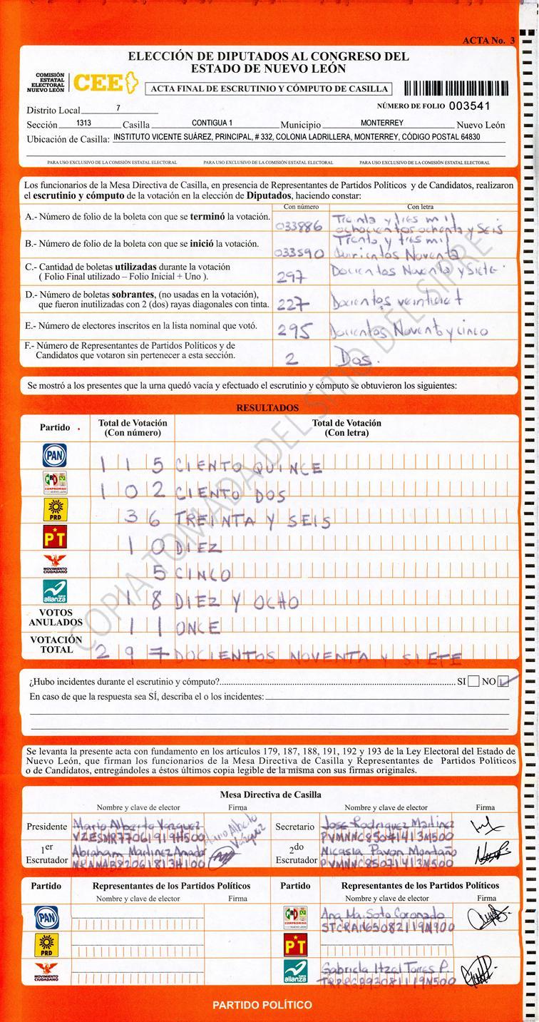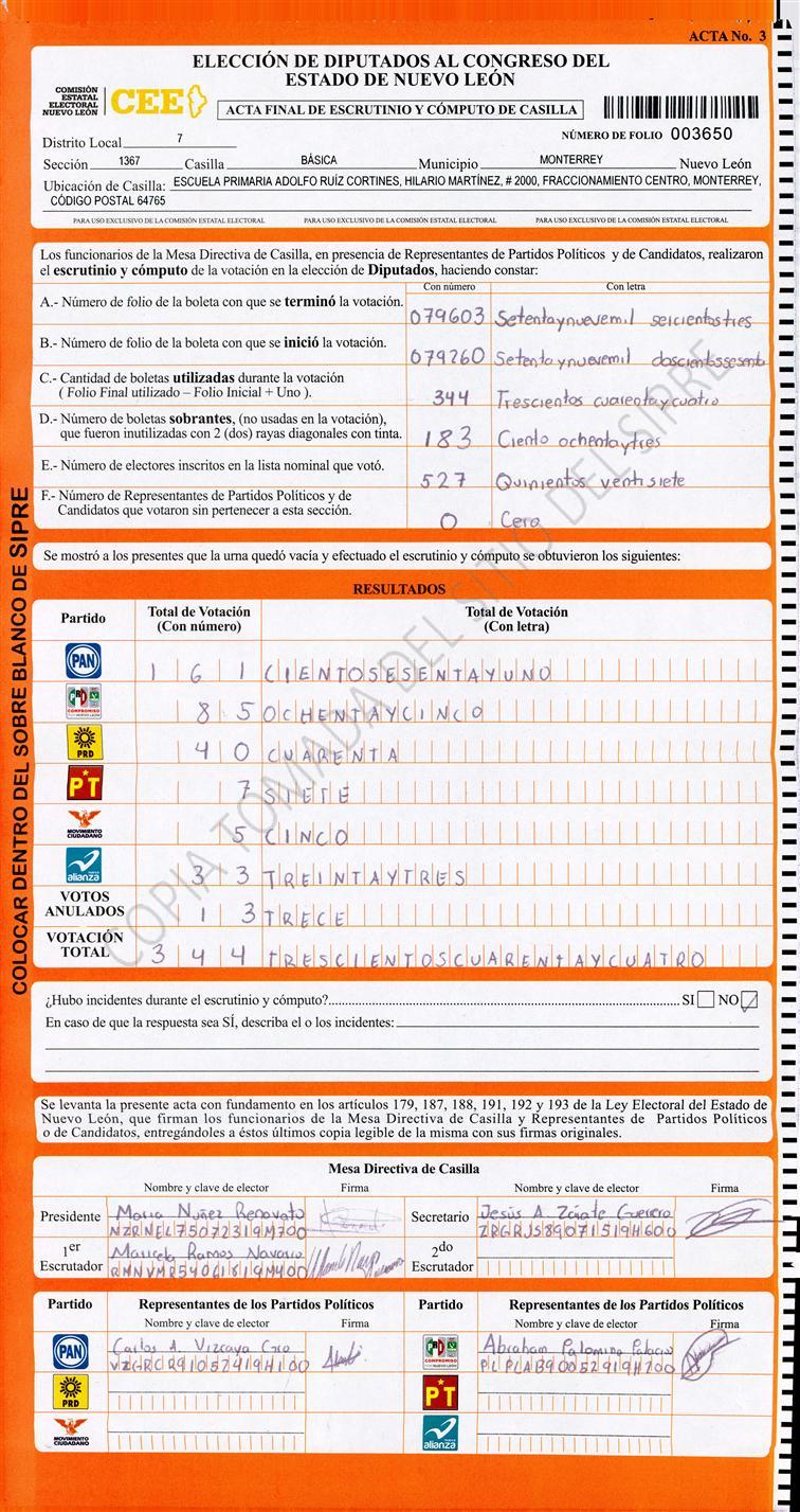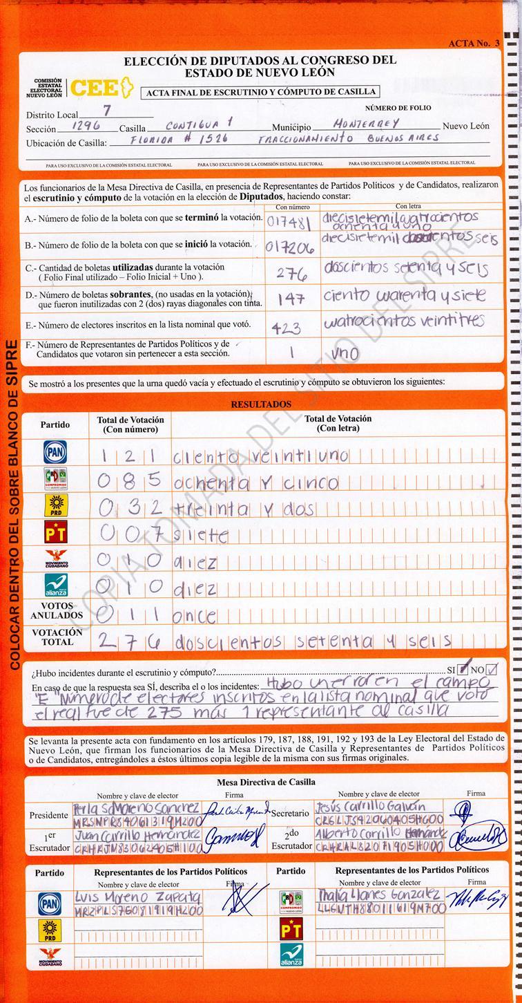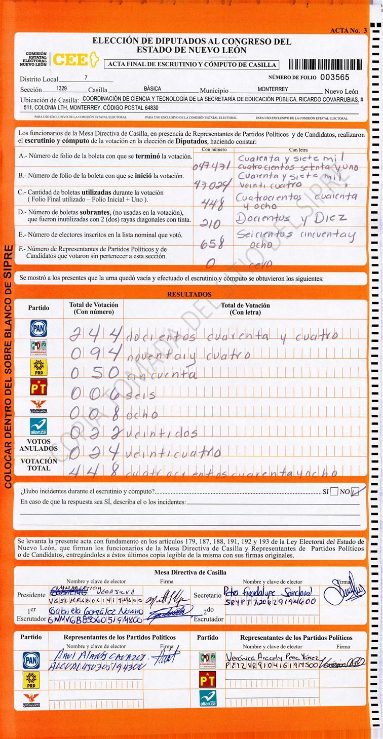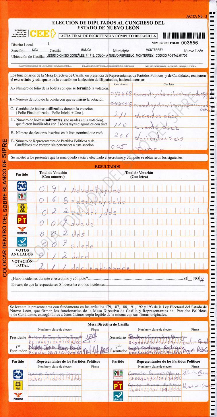, (8) Copiado Movido , (9) Con Signos Inválidos , (10) Excede Lista Nominal , (11) Otra |