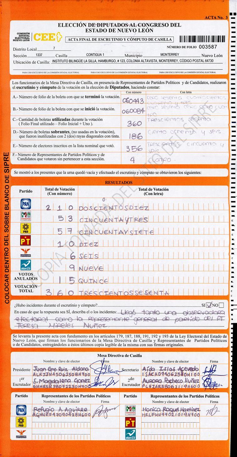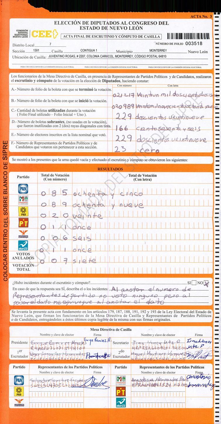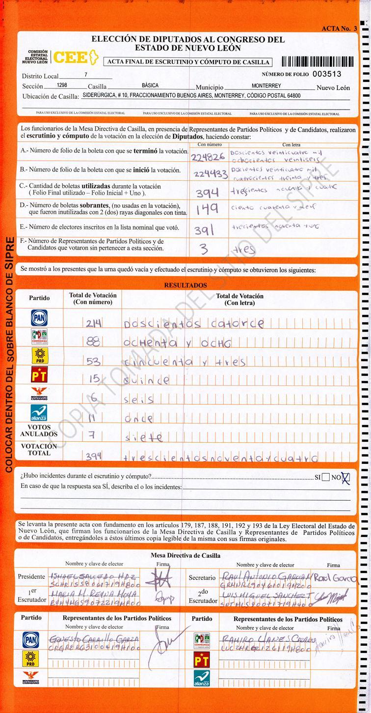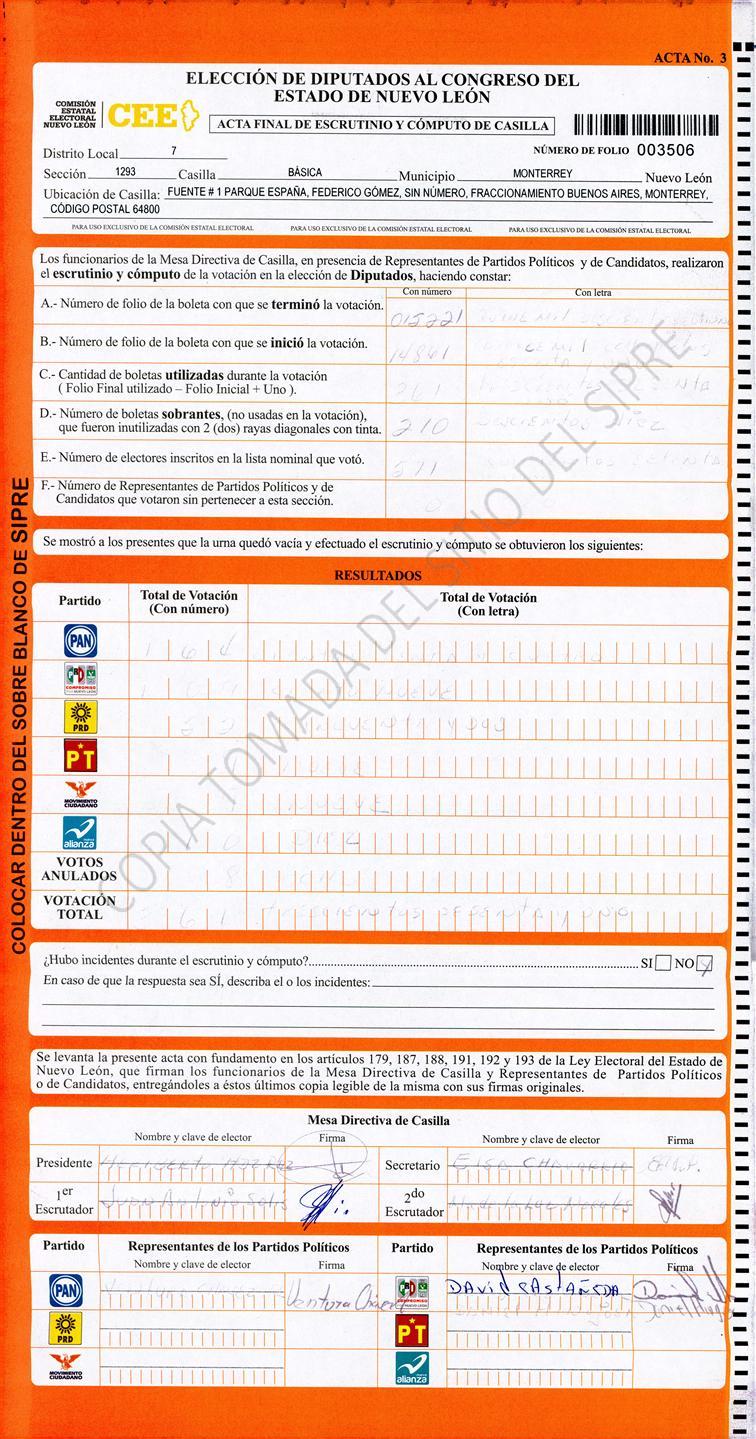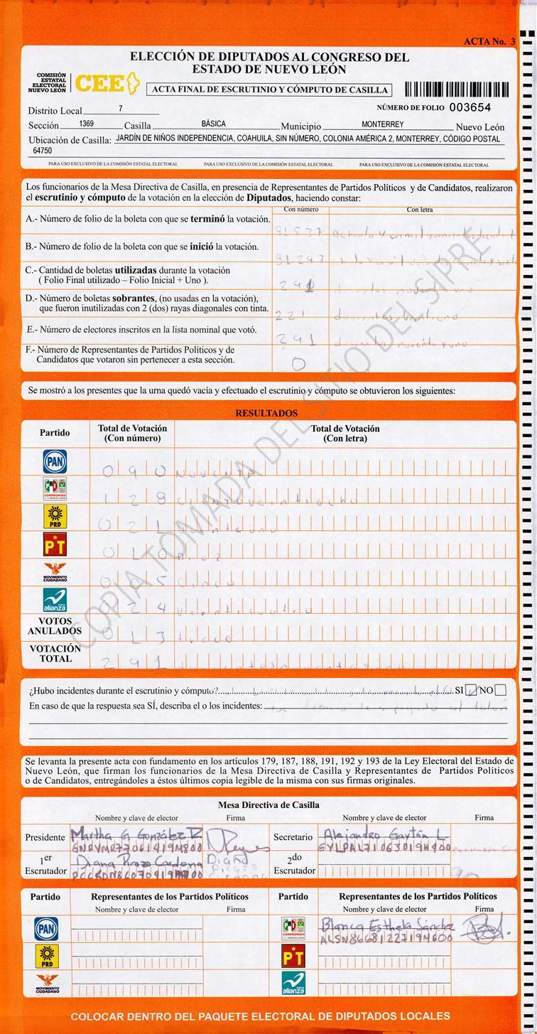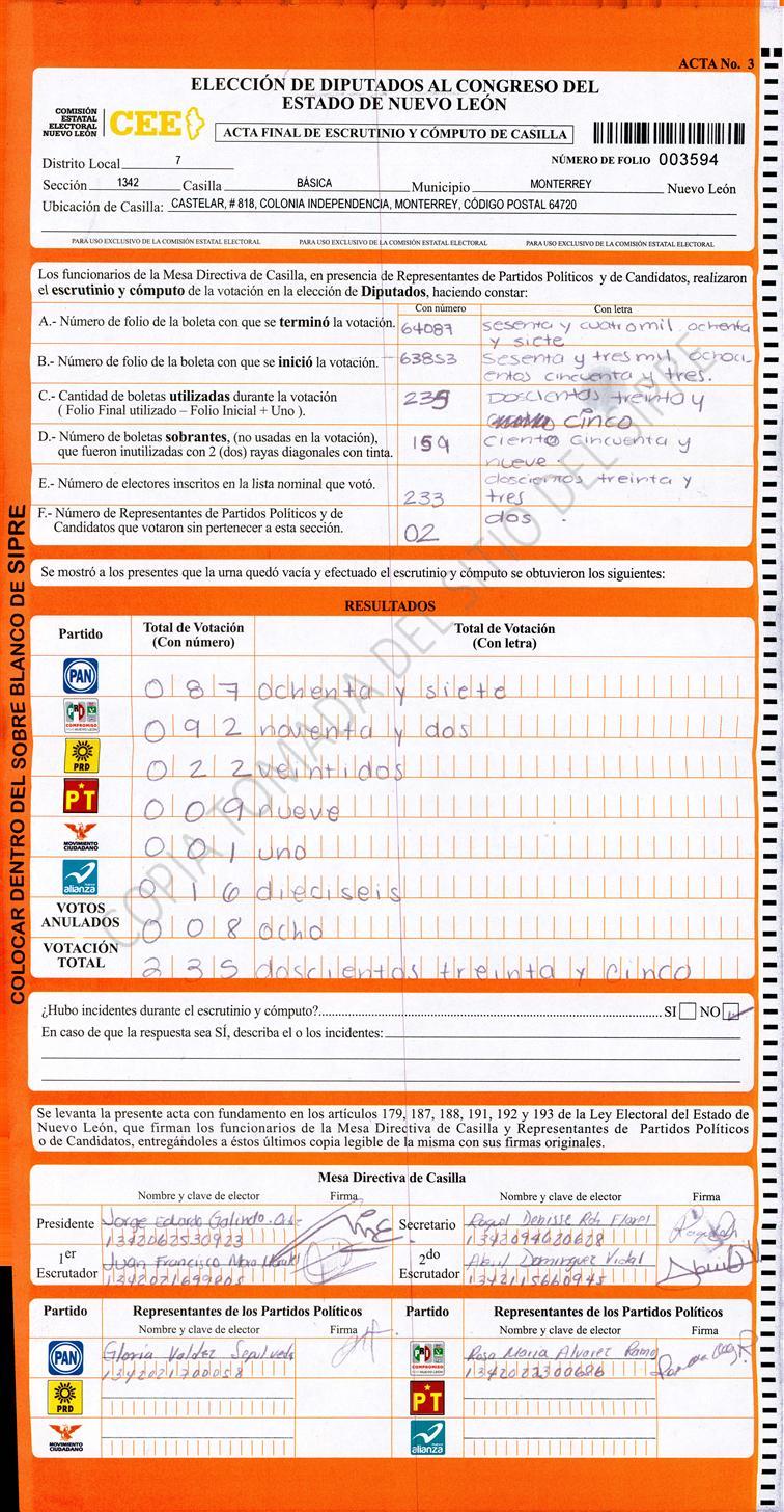 , (8) Copiado Movido , (9) Con Signos Inválidos , (10) Excede Lista Nominal , (11) Otra |