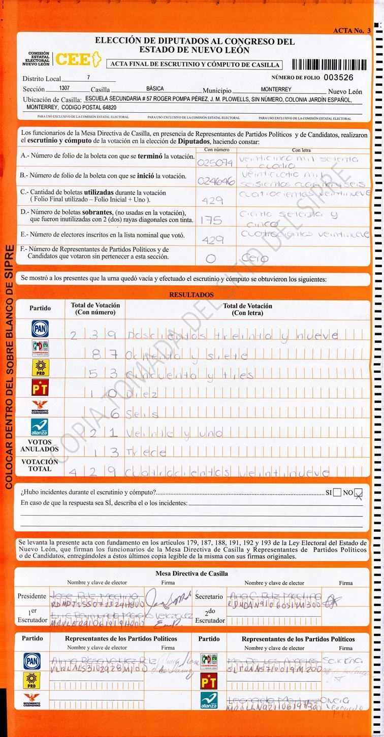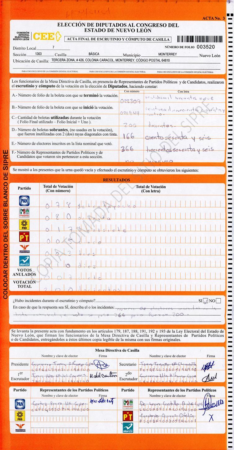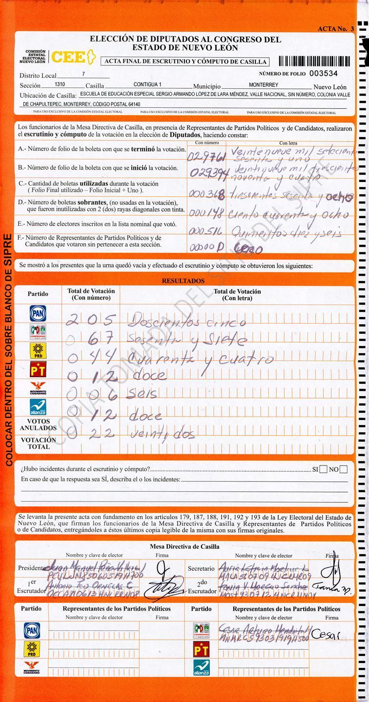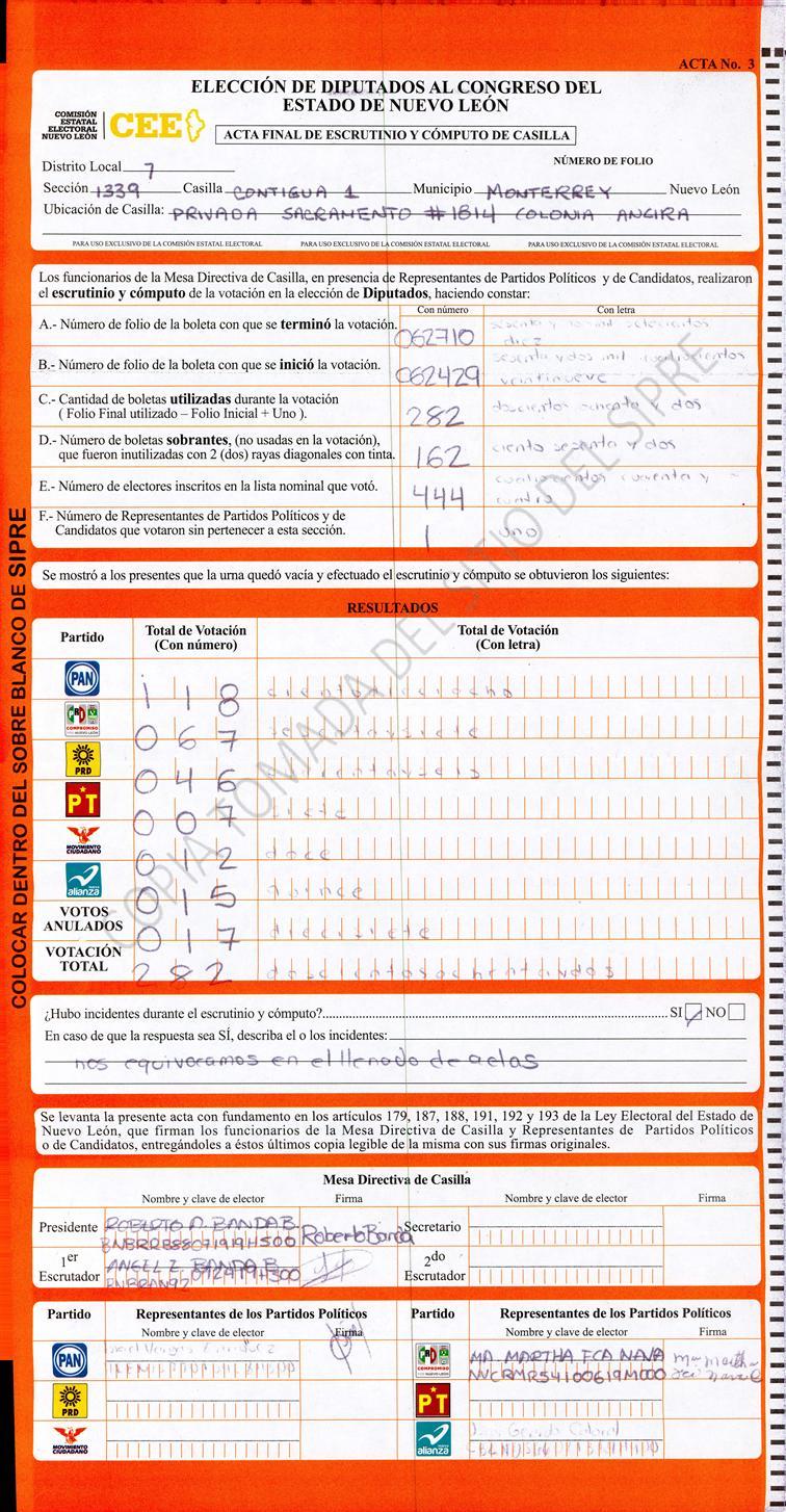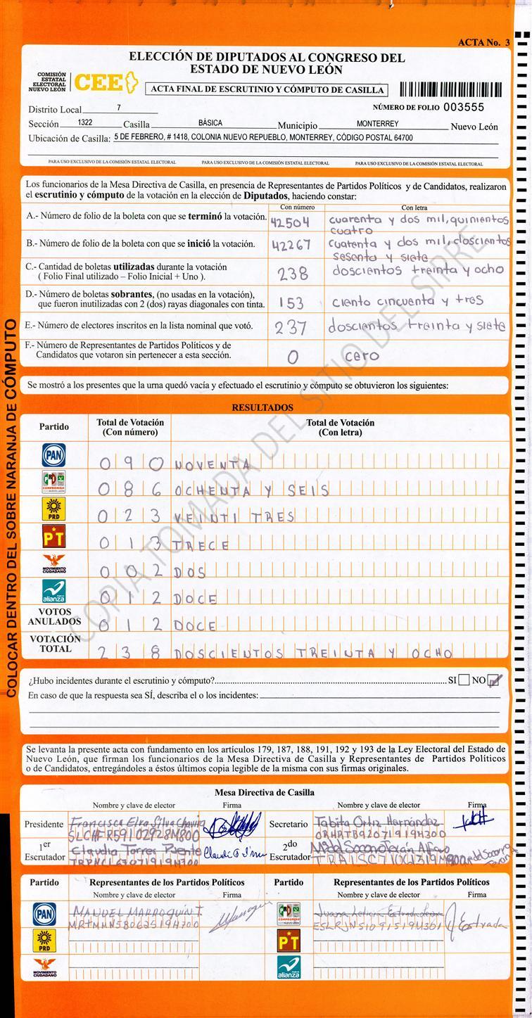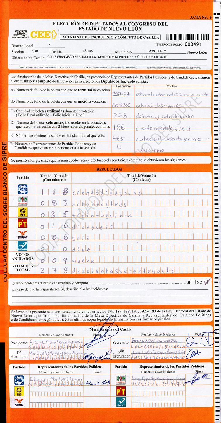 , (8) Copiado Movido , (9) Con Signos Inválidos , (10) Excede Lista Nominal , (11) Otra |