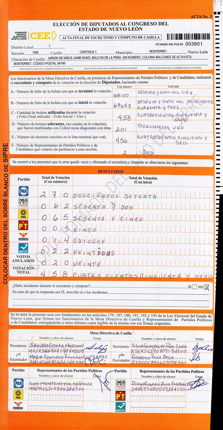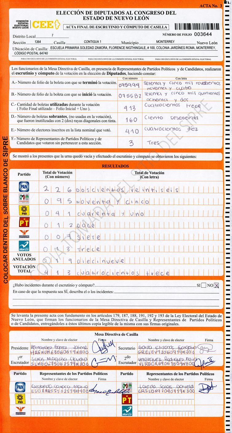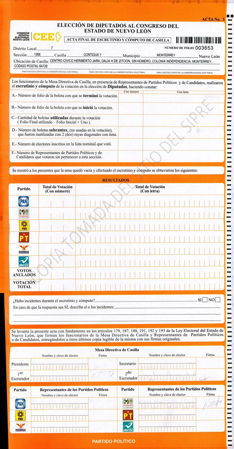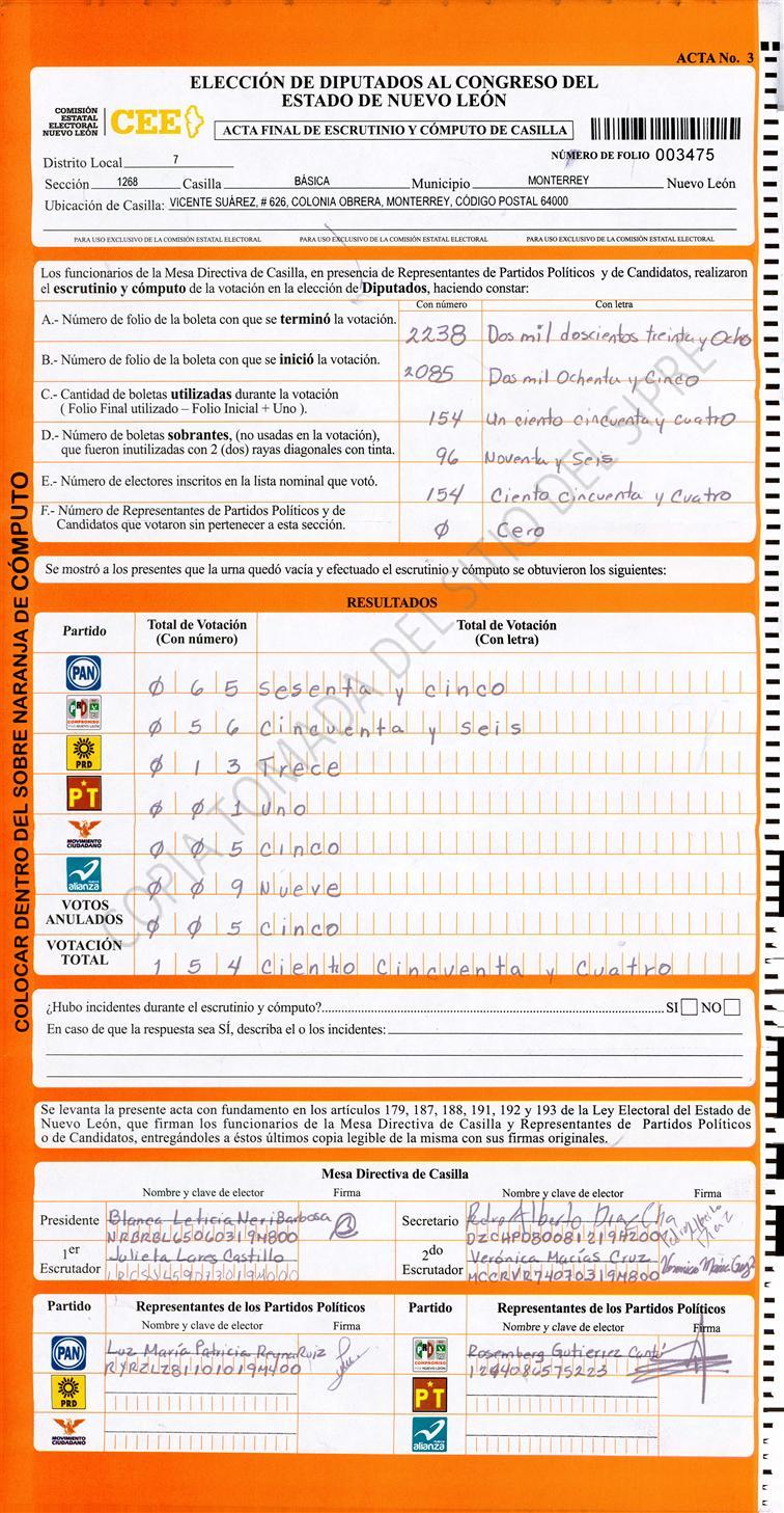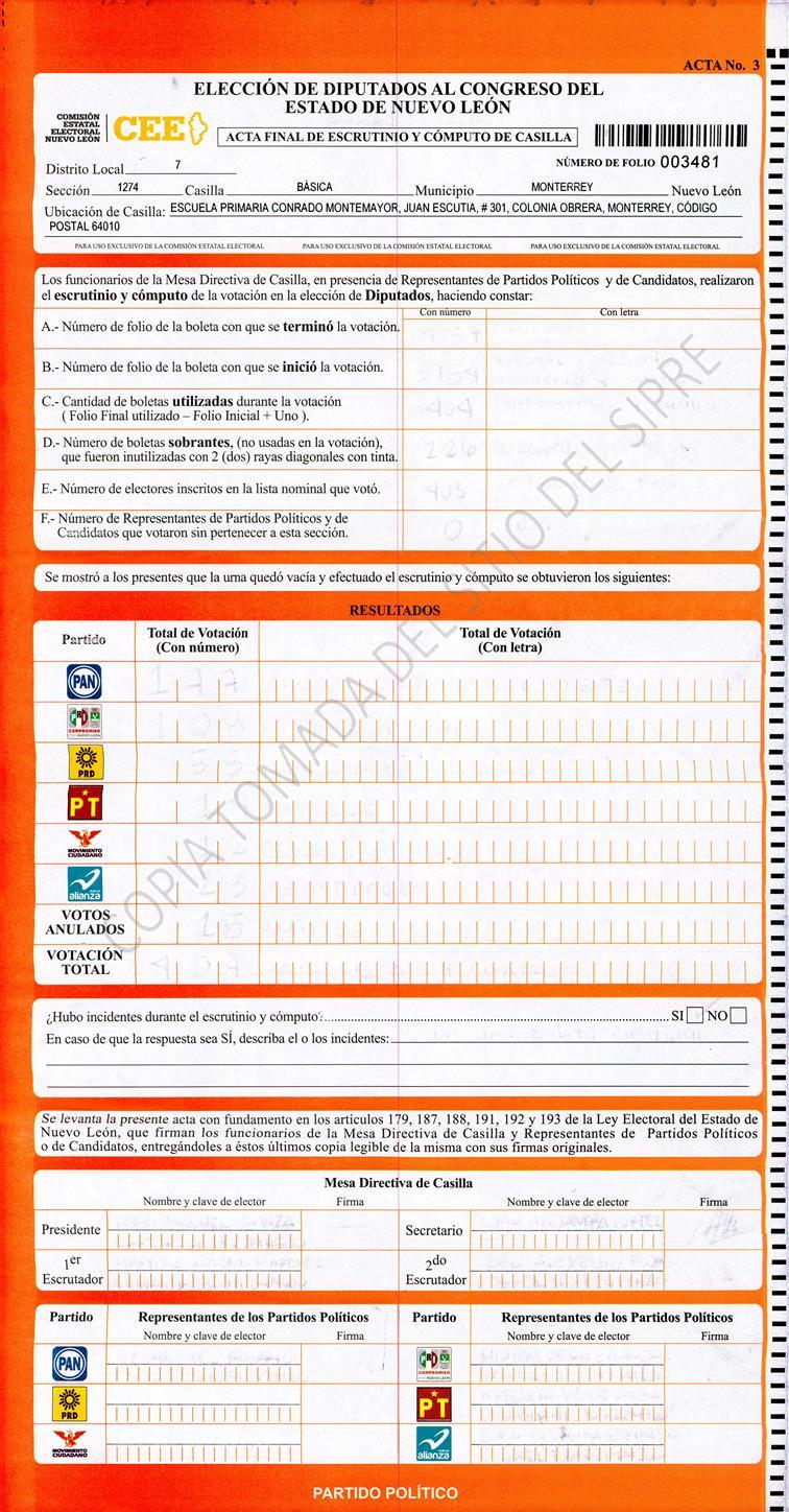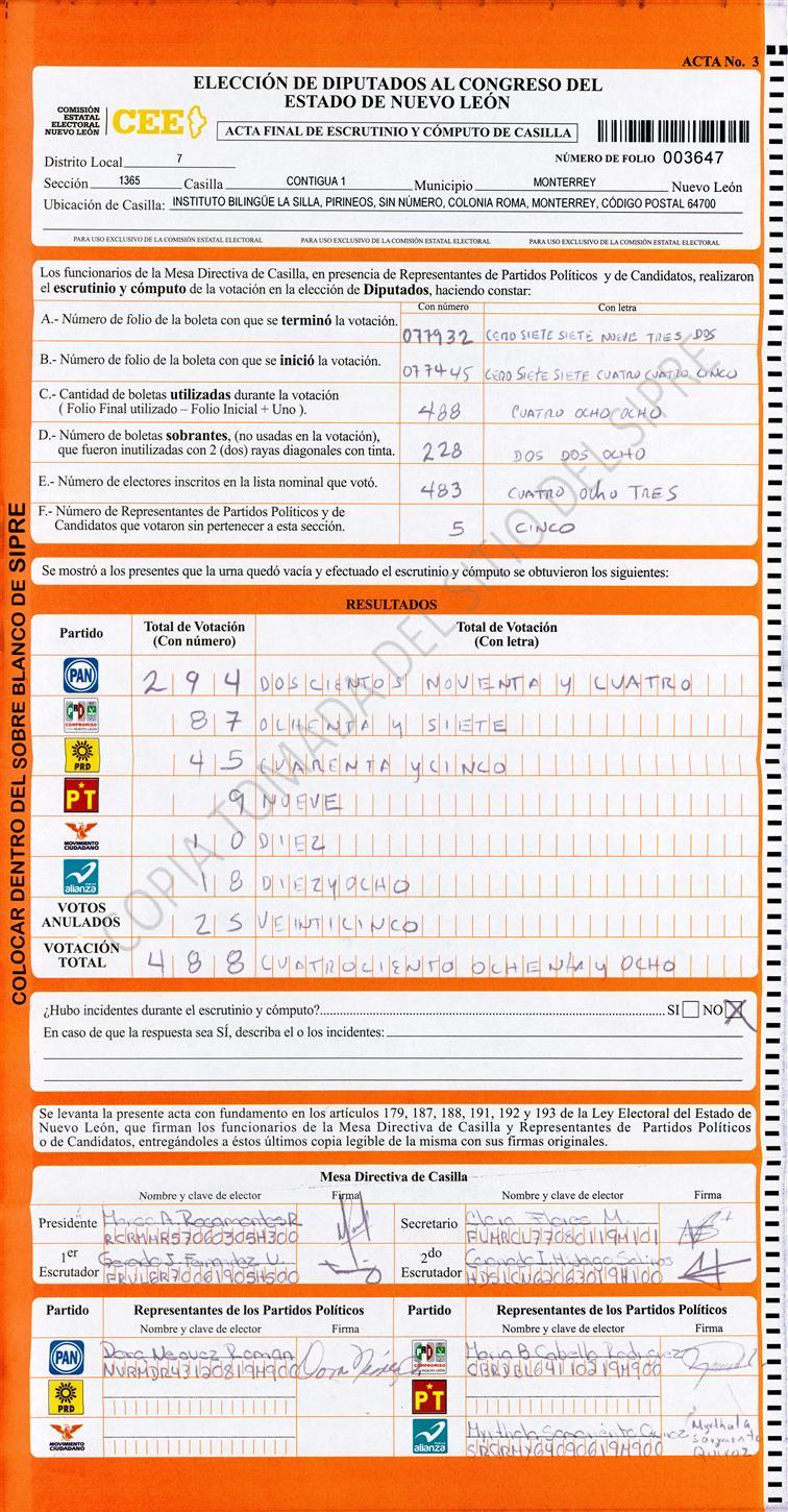 , (8) Copiado Movido , (9) Con Signos Inválidos , (10) Excede Lista Nominal , (11) Otra |