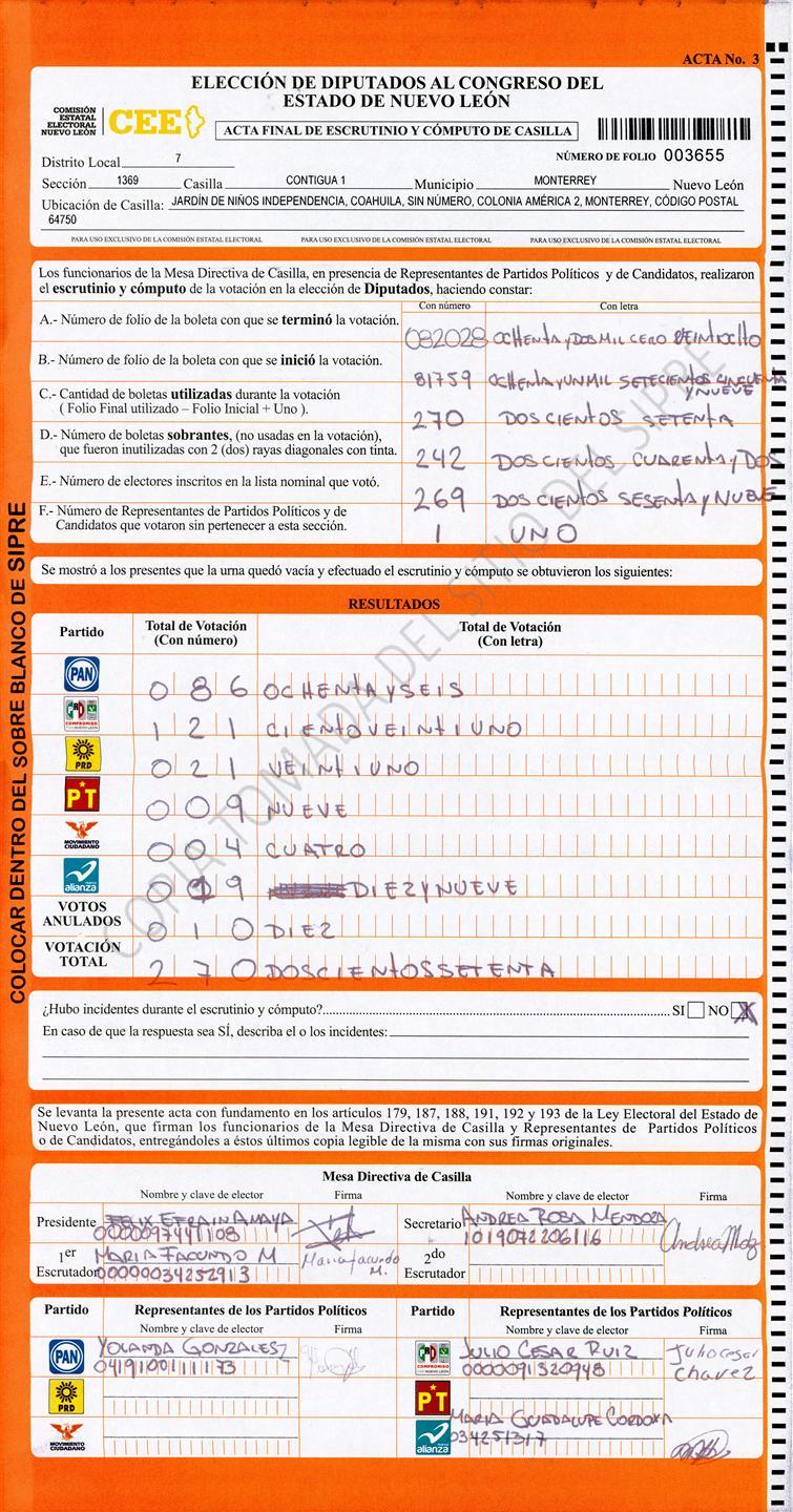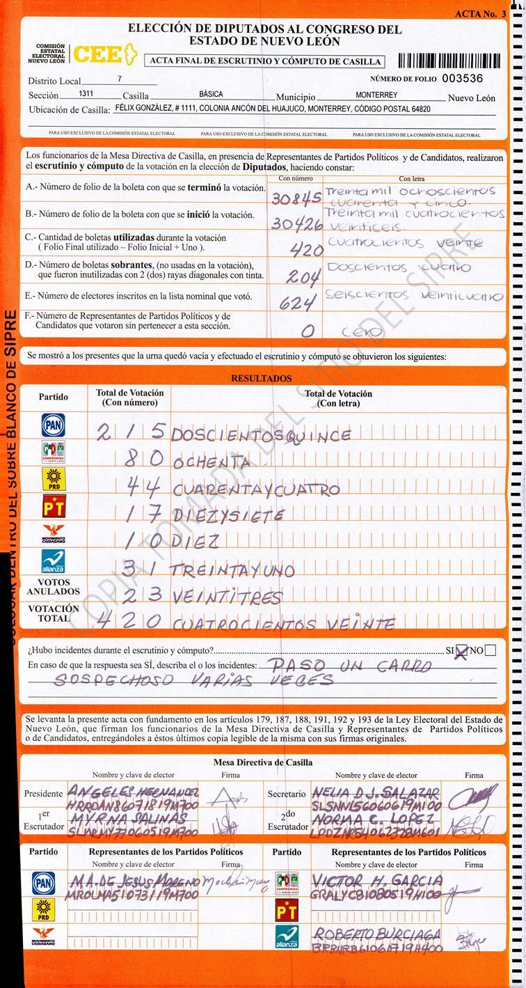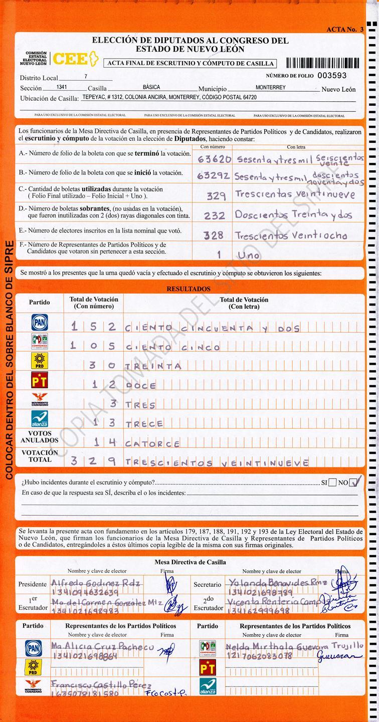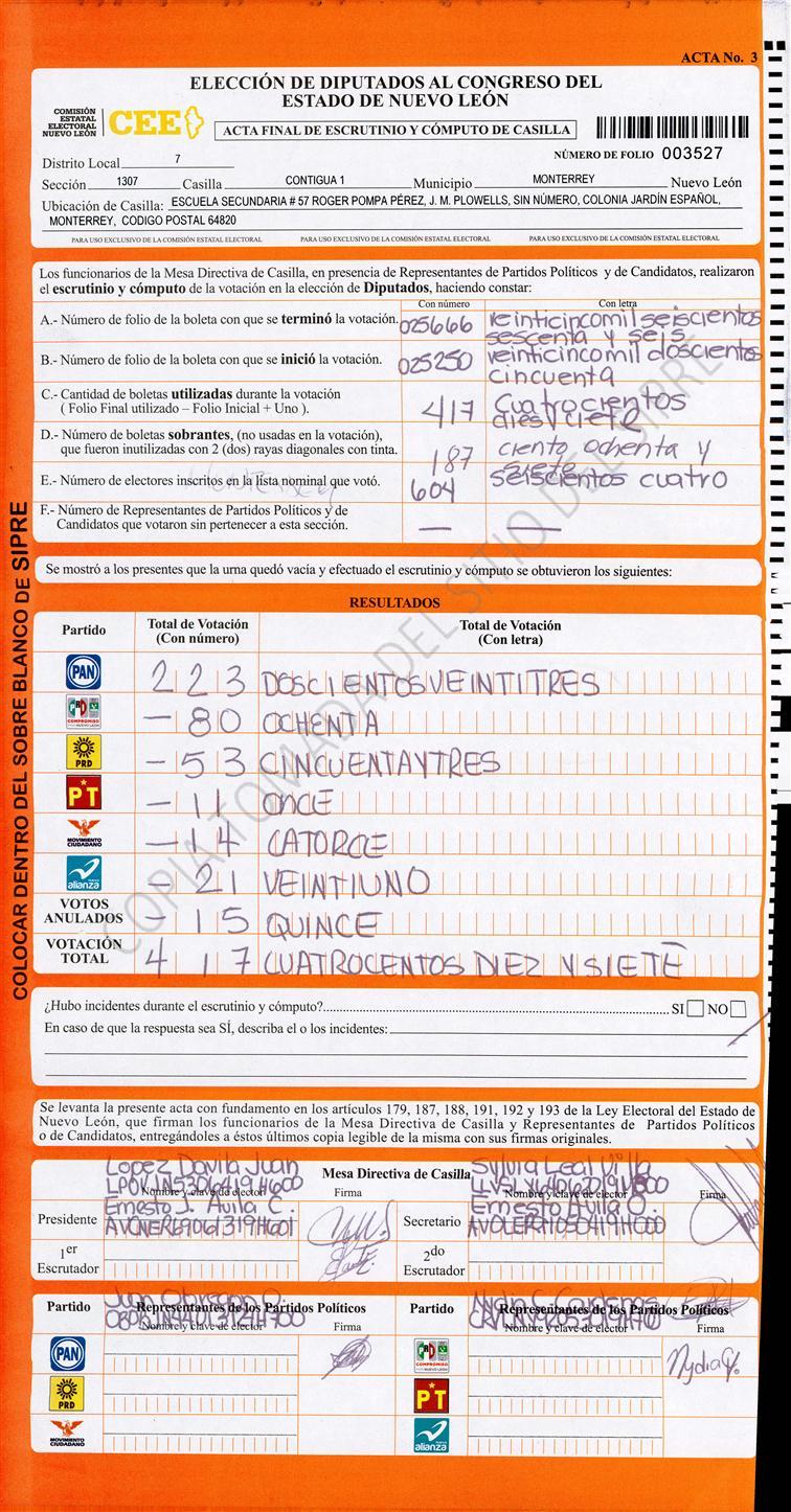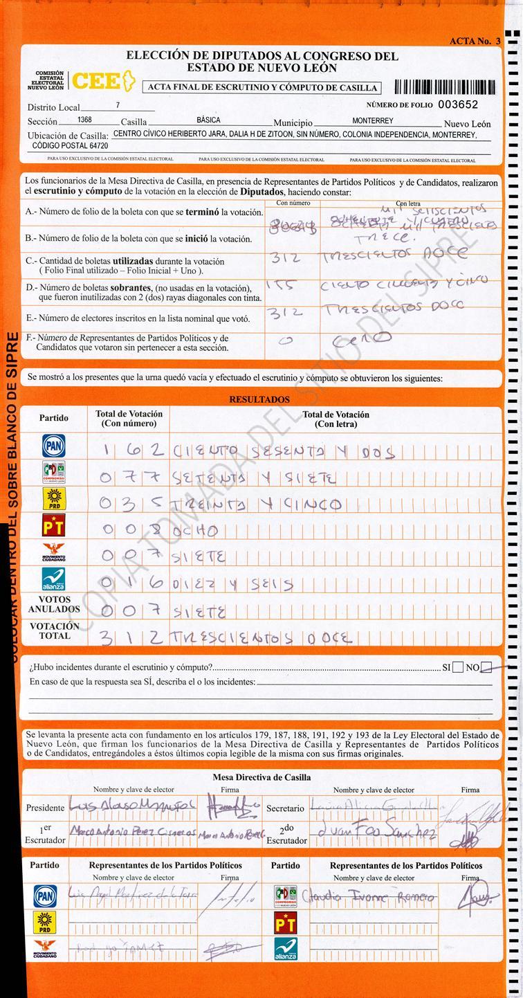 , (8) Copiado Movido , (9) Con Signos Inválidos , (10) Excede Lista Nominal , (11) Otra |