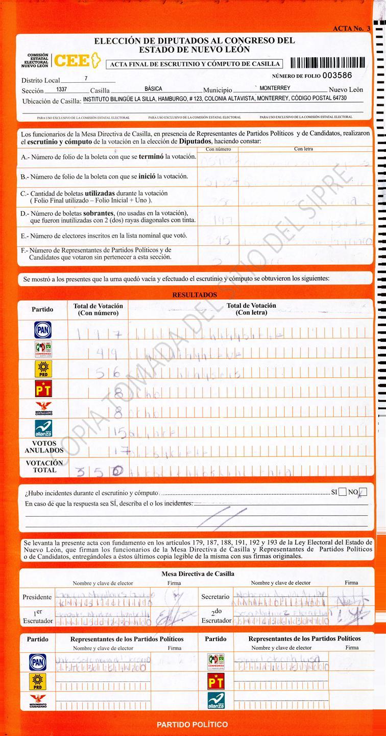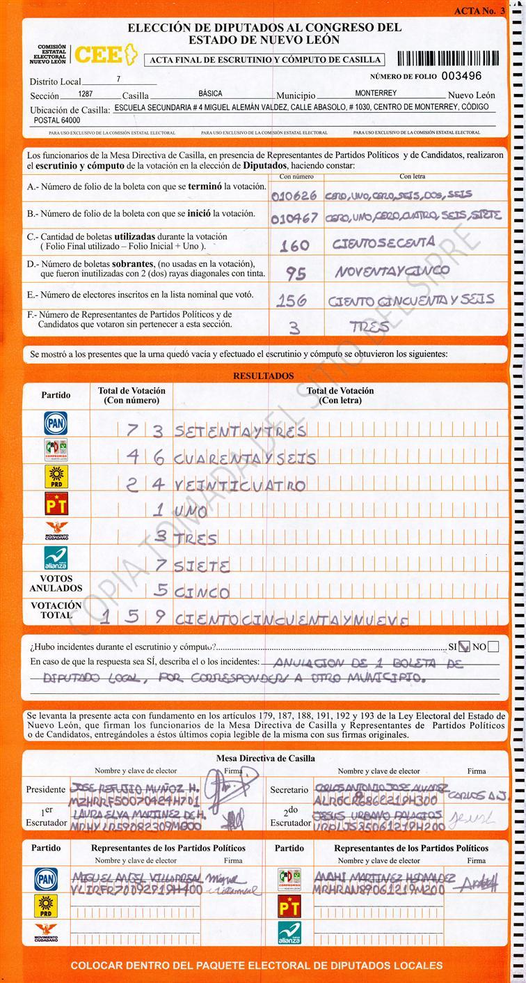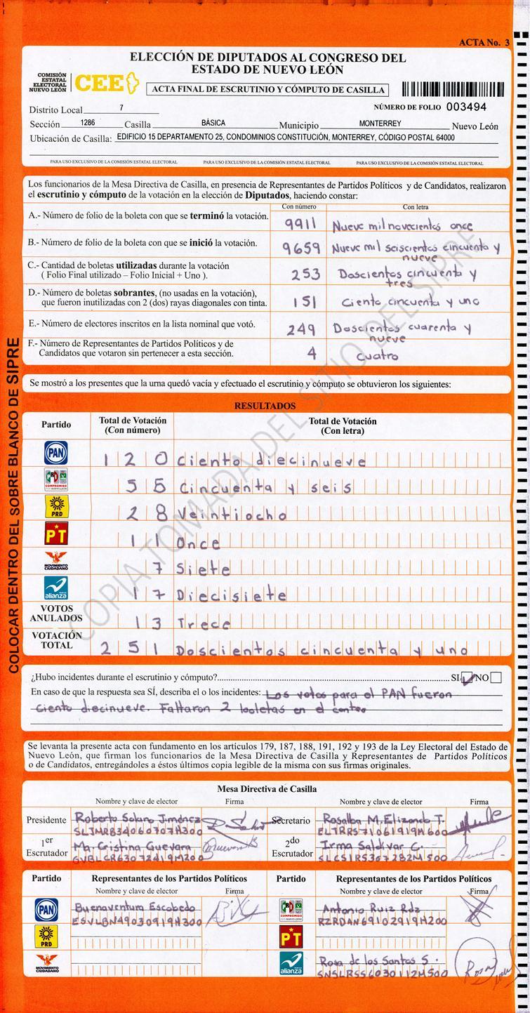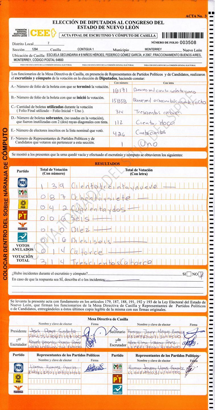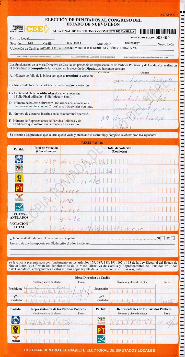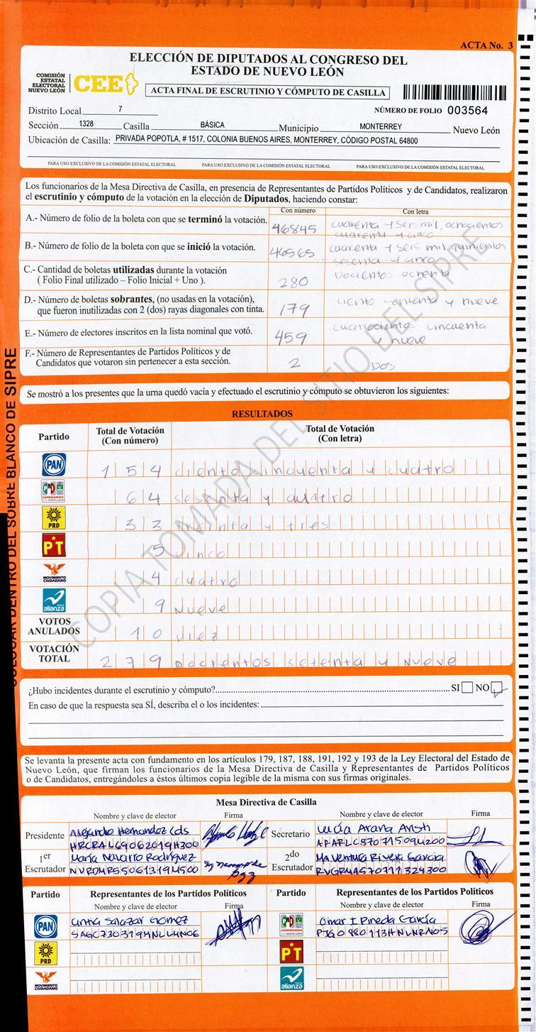 , (8) Copiado Movido , (9) Con Signos Inválidos , (10) Excede Lista Nominal , (11) Otra |