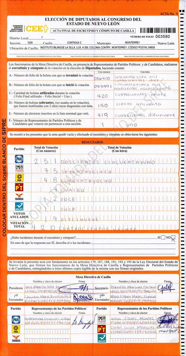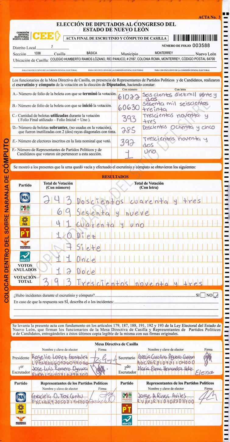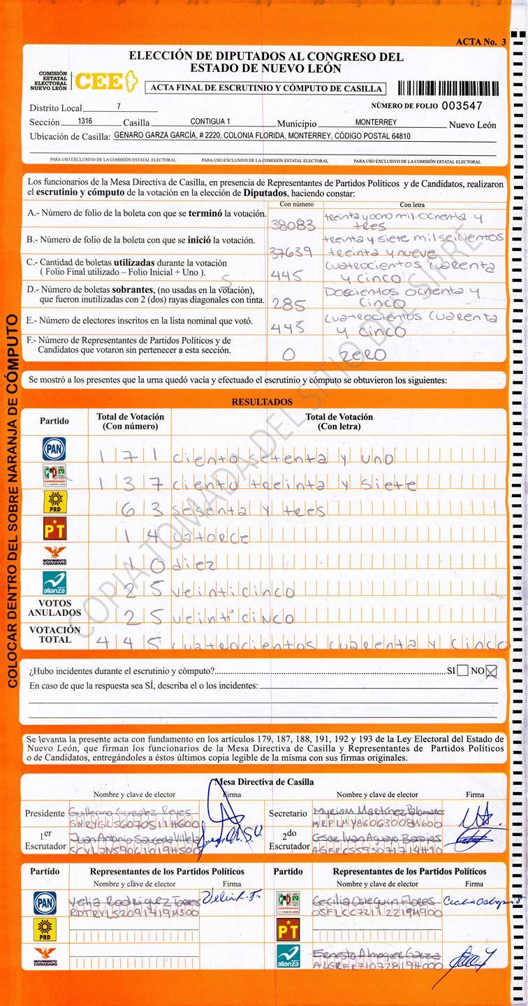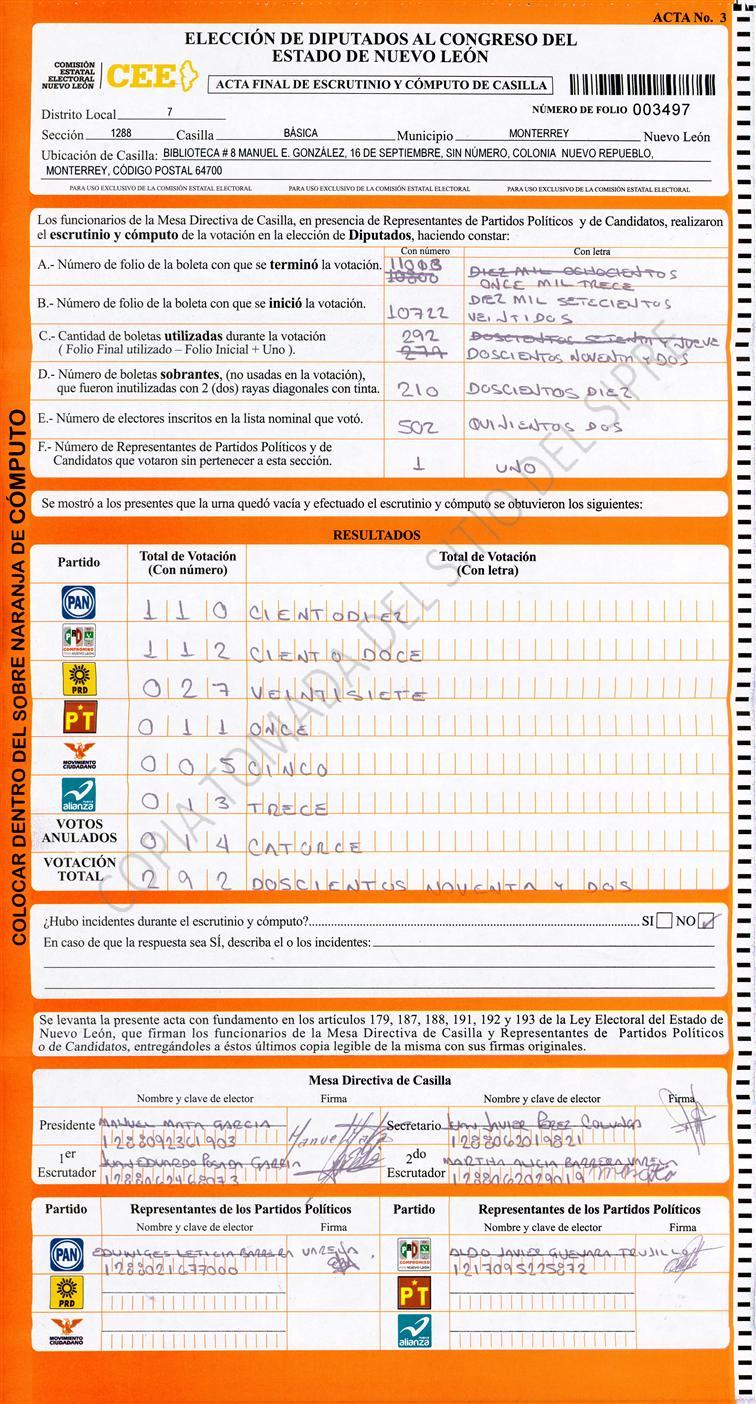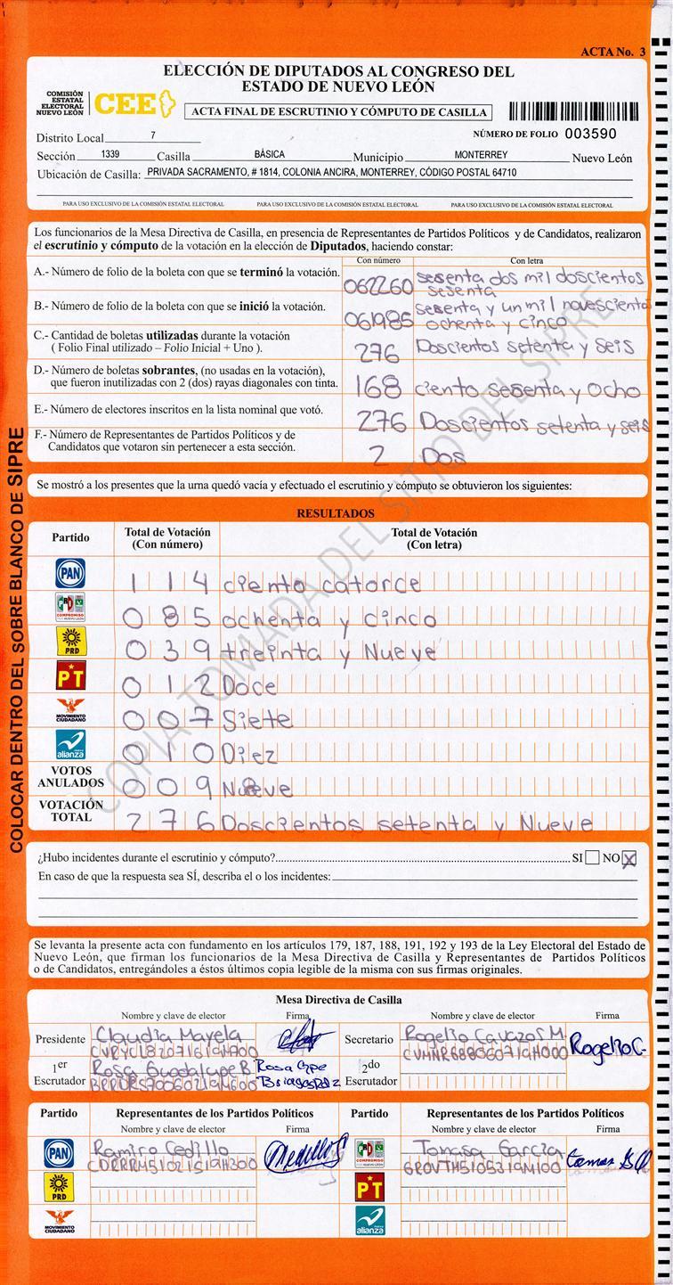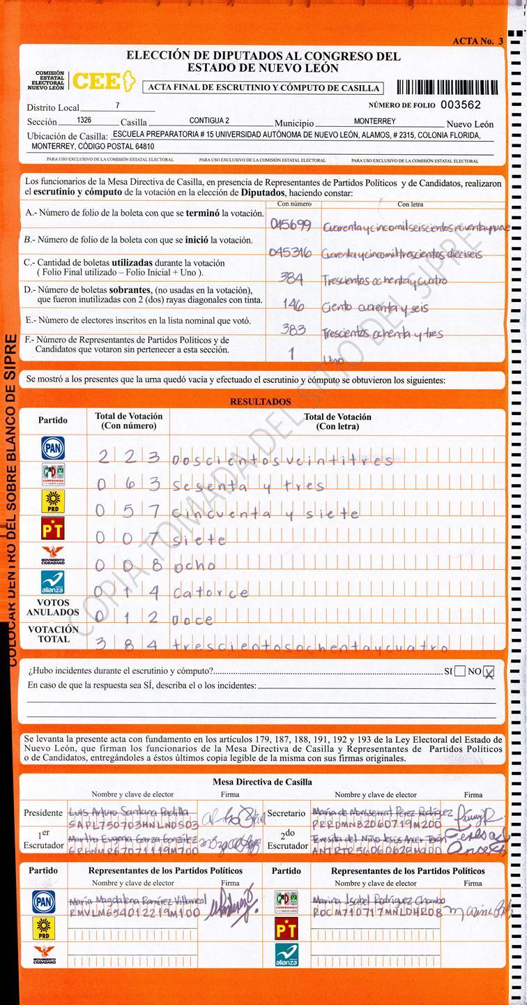 , (8) Copiado Movido , (9) Con Signos Inválidos , (10) Excede Lista Nominal , (11) Otra |