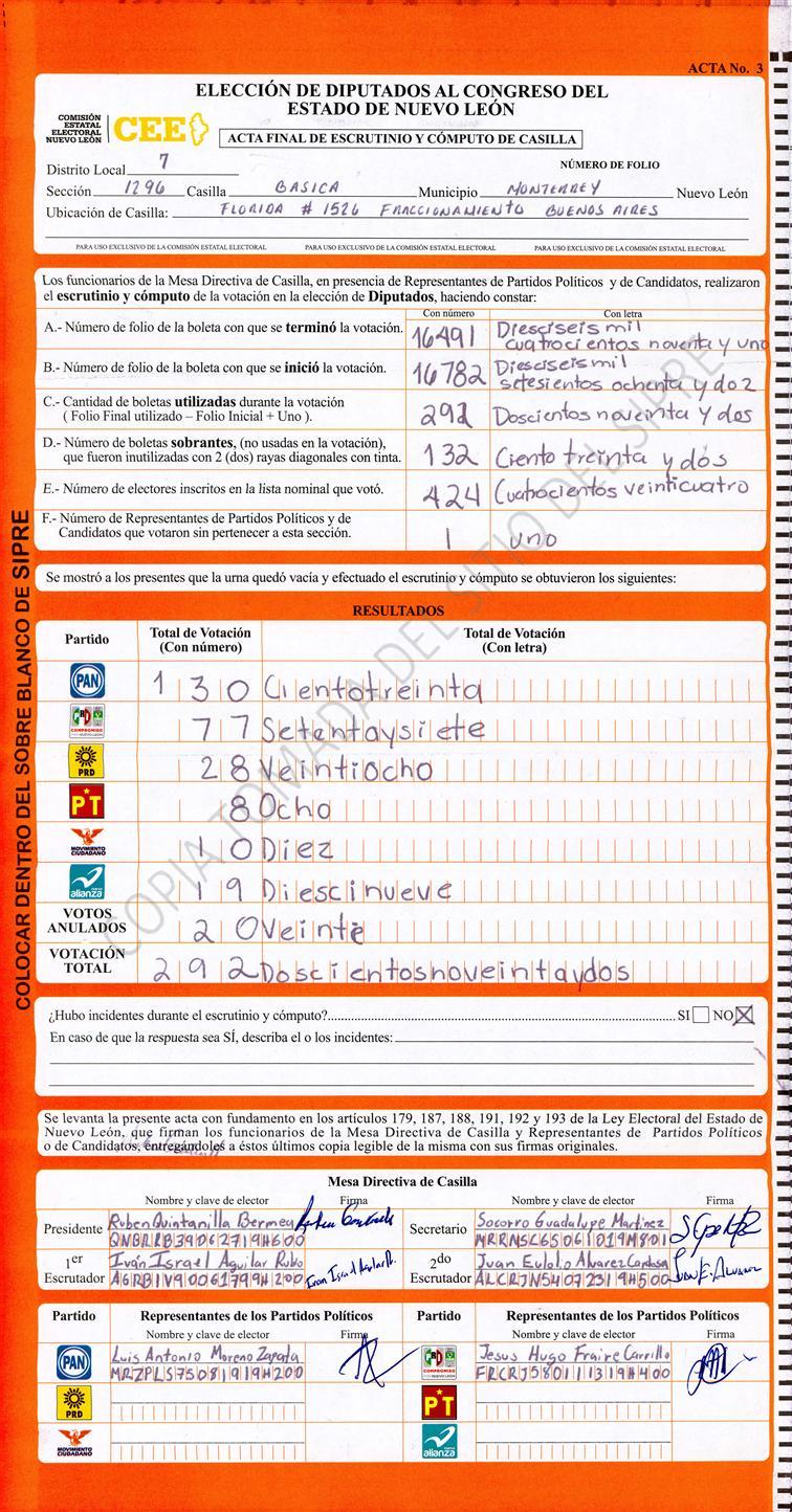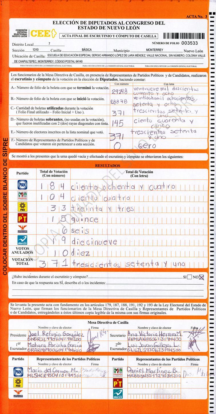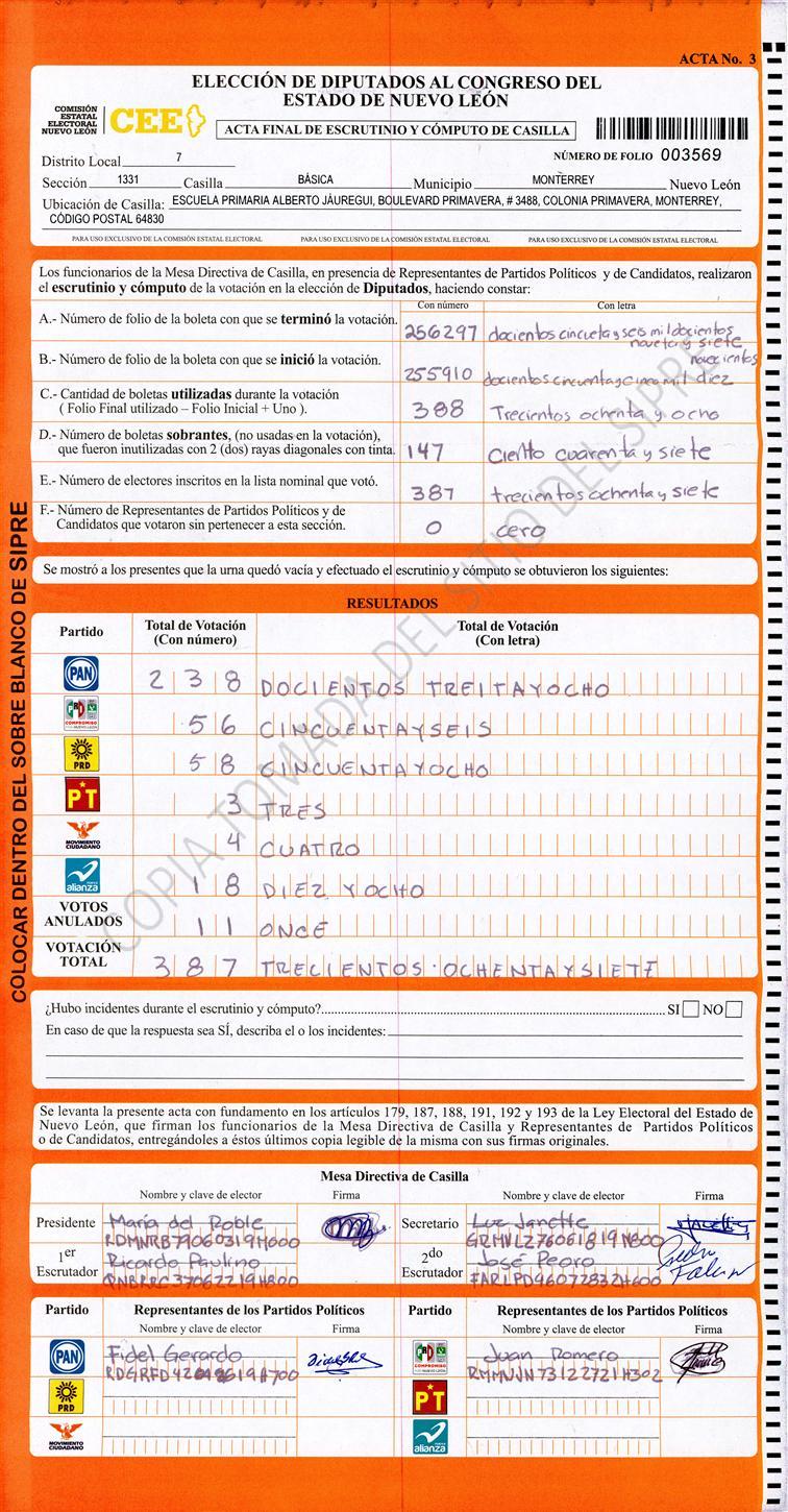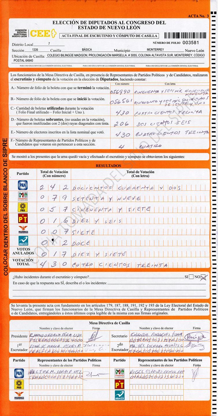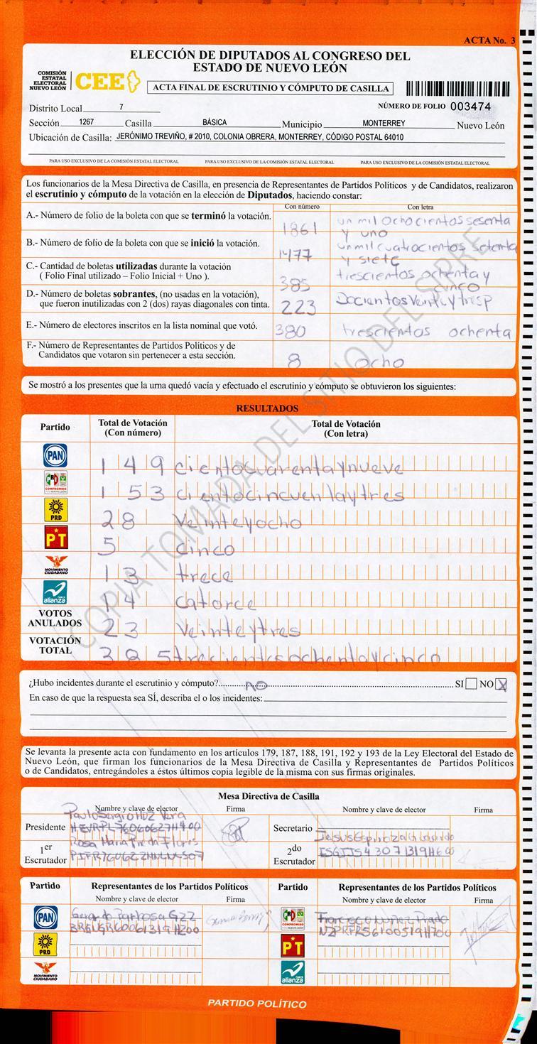 , (8) Copiado Movido , (9) Con Signos Inválidos , (10) Excede Lista Nominal , (11) Otra |