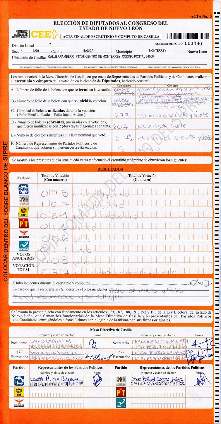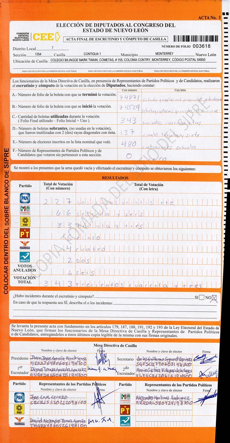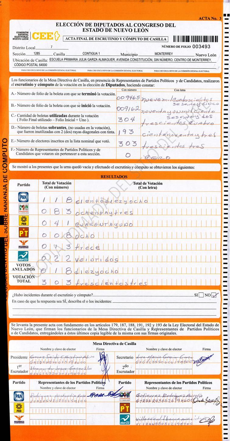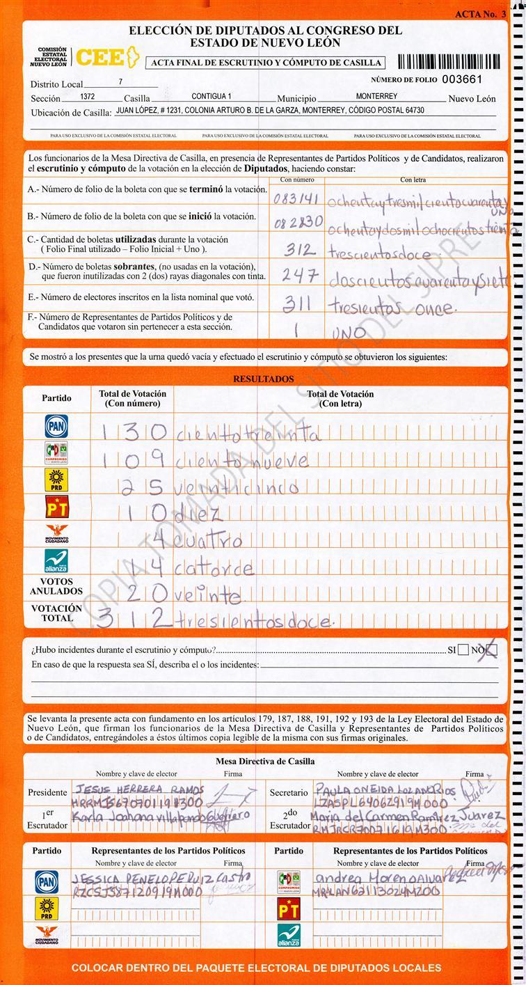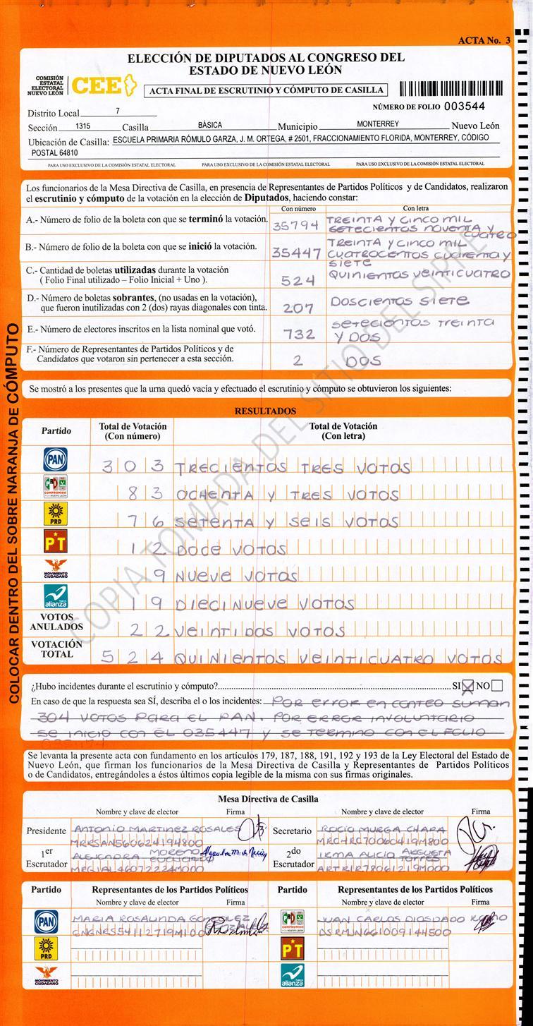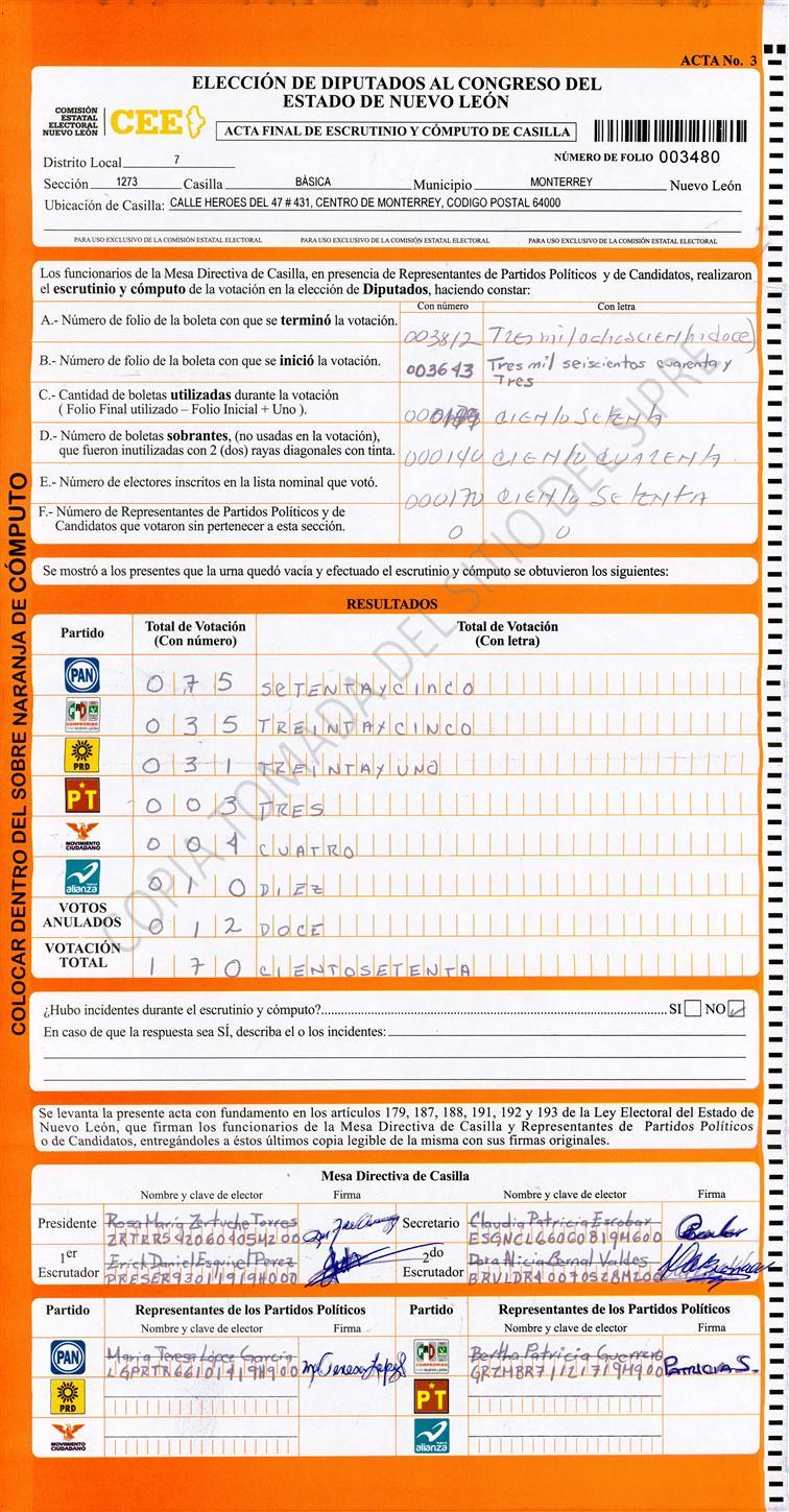 , (8) Copiado Movido , (9) Con Signos Inválidos , (10) Excede Lista Nominal , (11) Otra |
