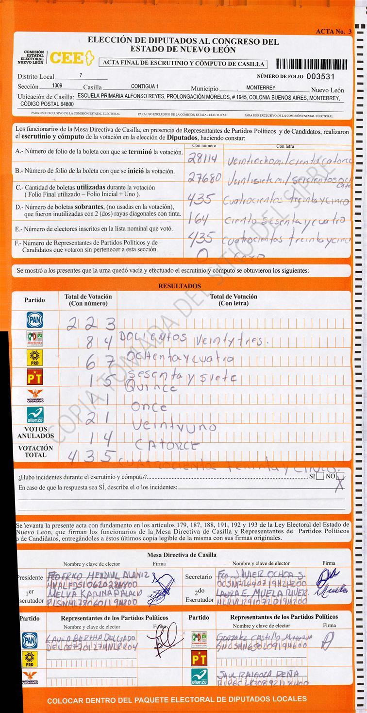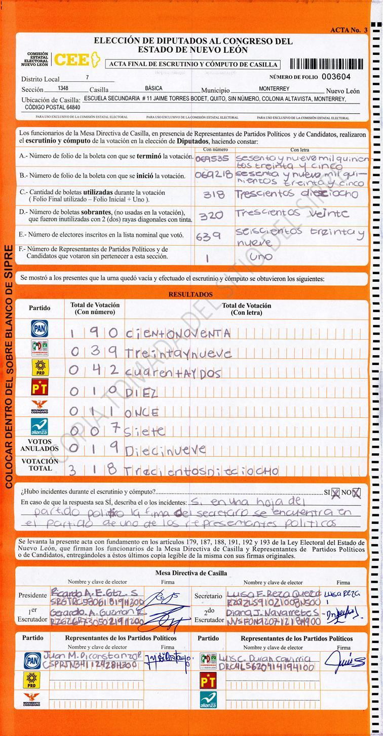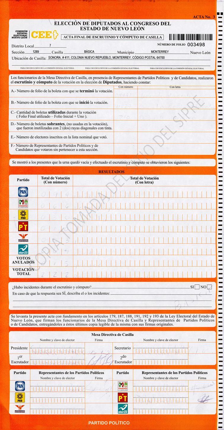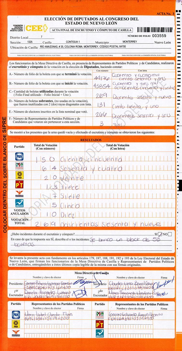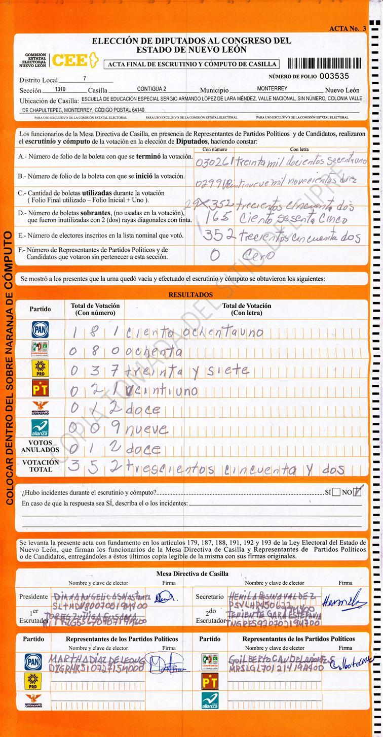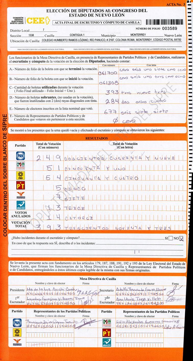 , (8) Copiado Movido , (9) Con Signos Inválidos , (10) Excede Lista Nominal , (11) Otra |