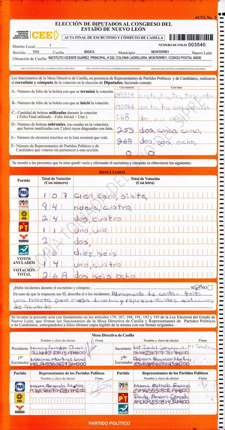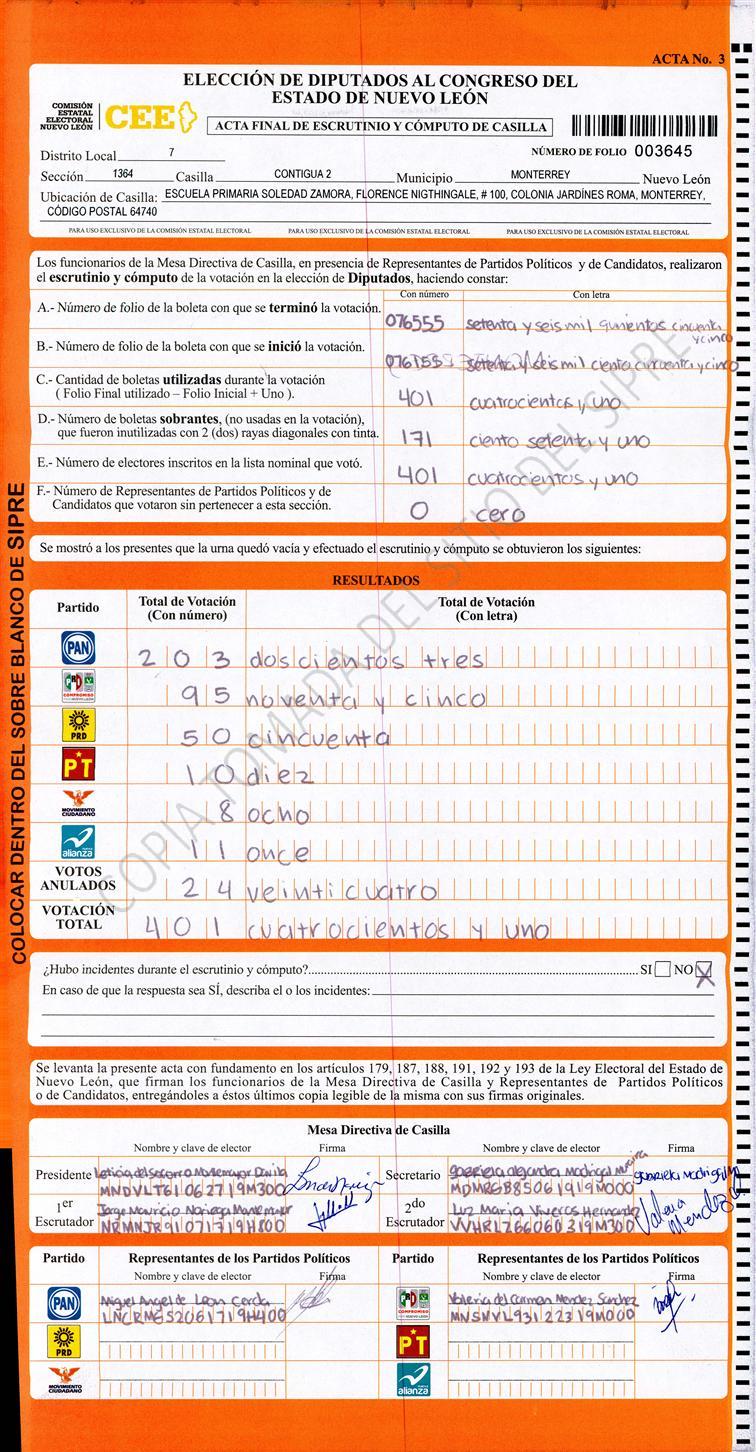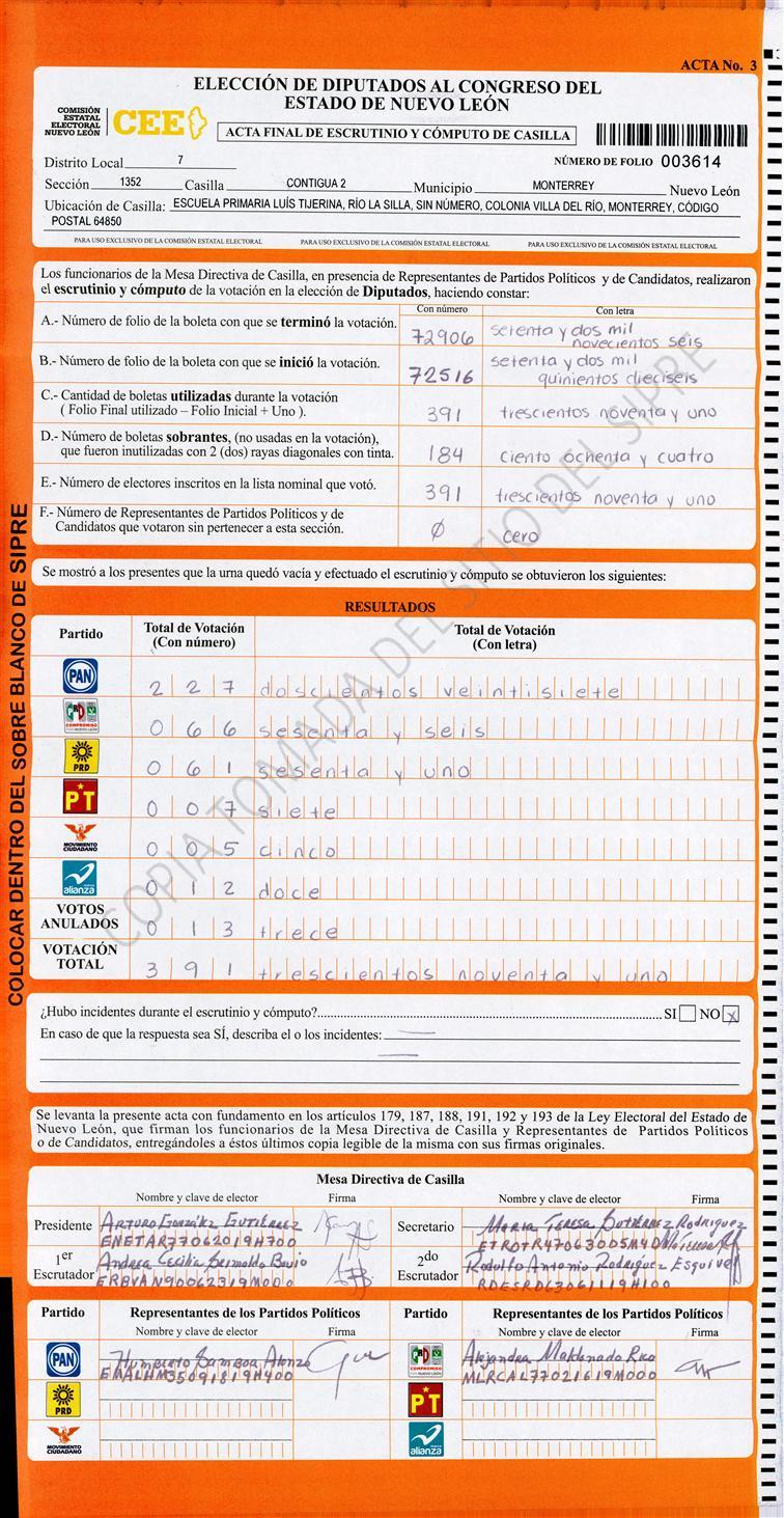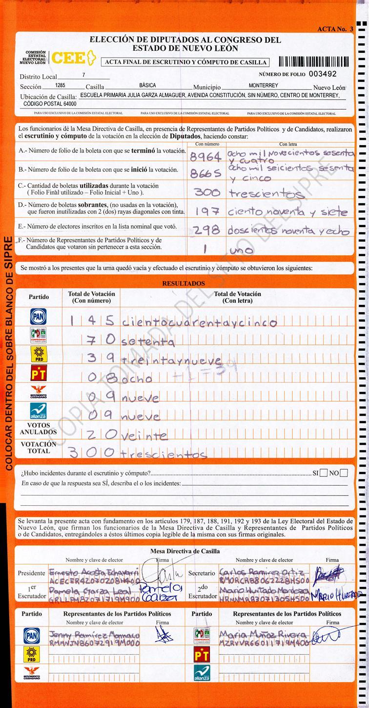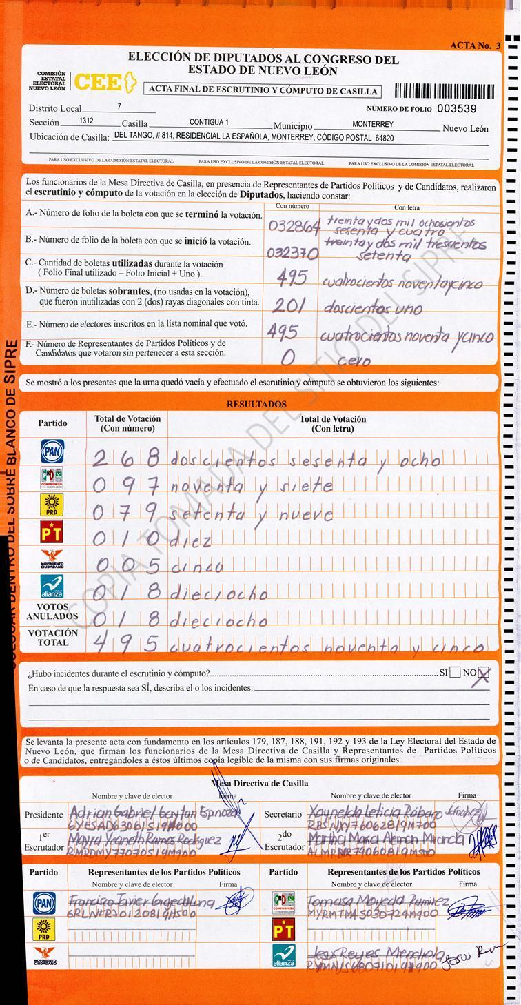, (8) Copiado Movido , (9) Con Signos Inválidos , (10) Excede Lista Nominal , (11) Otra |