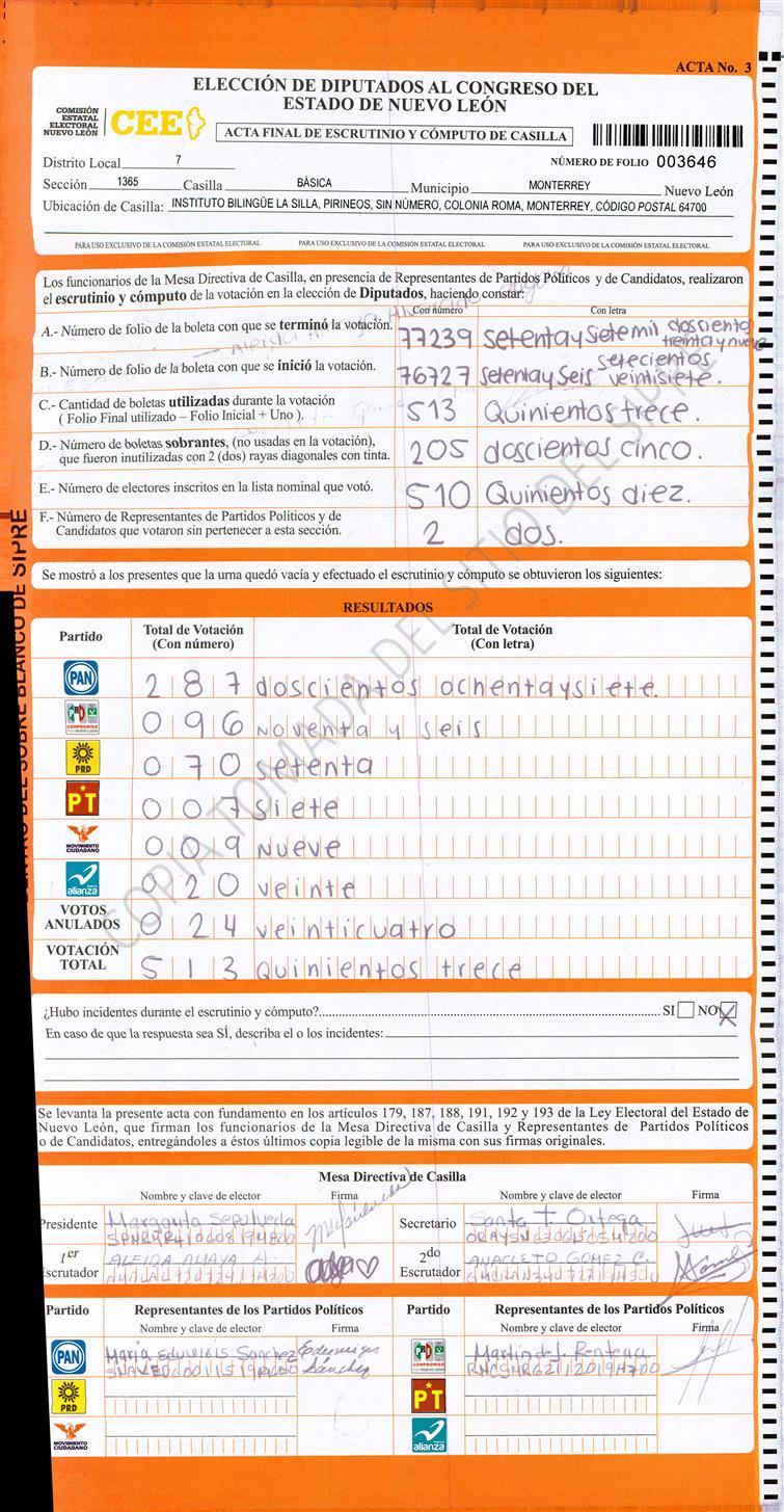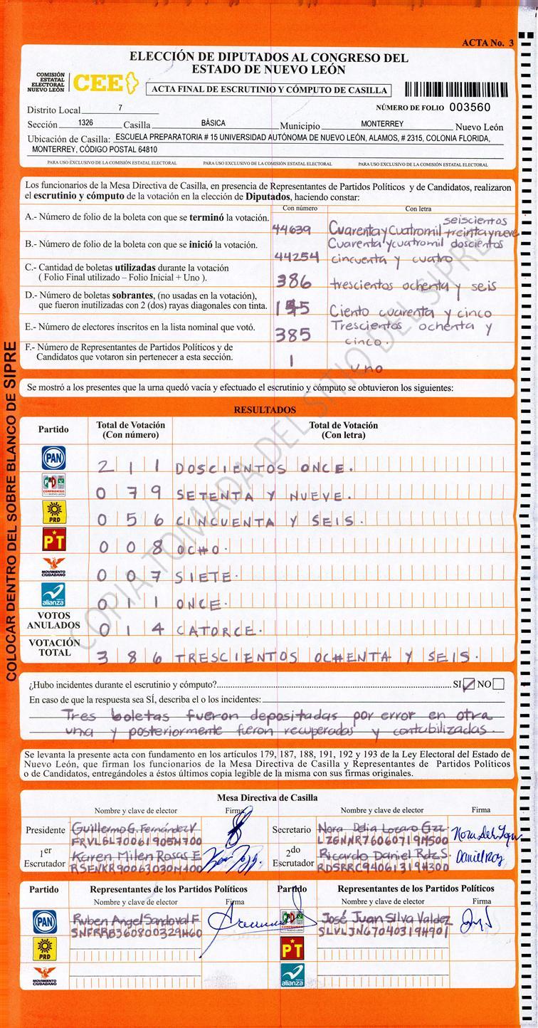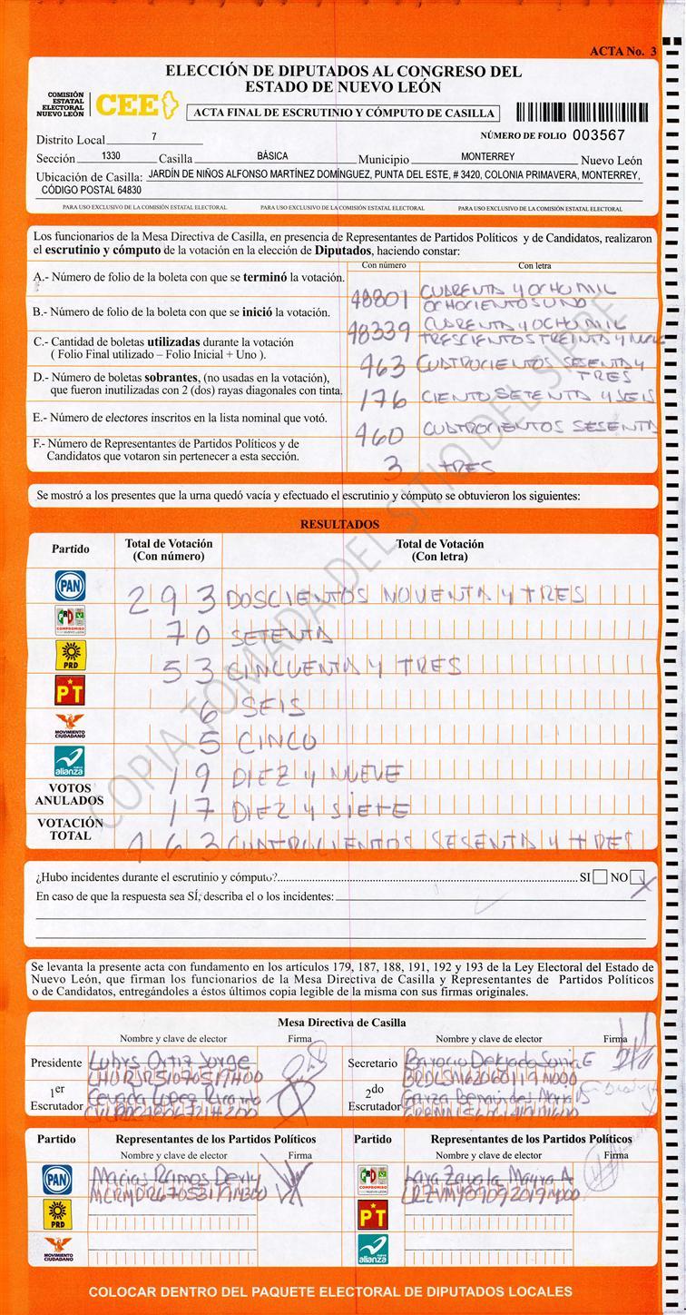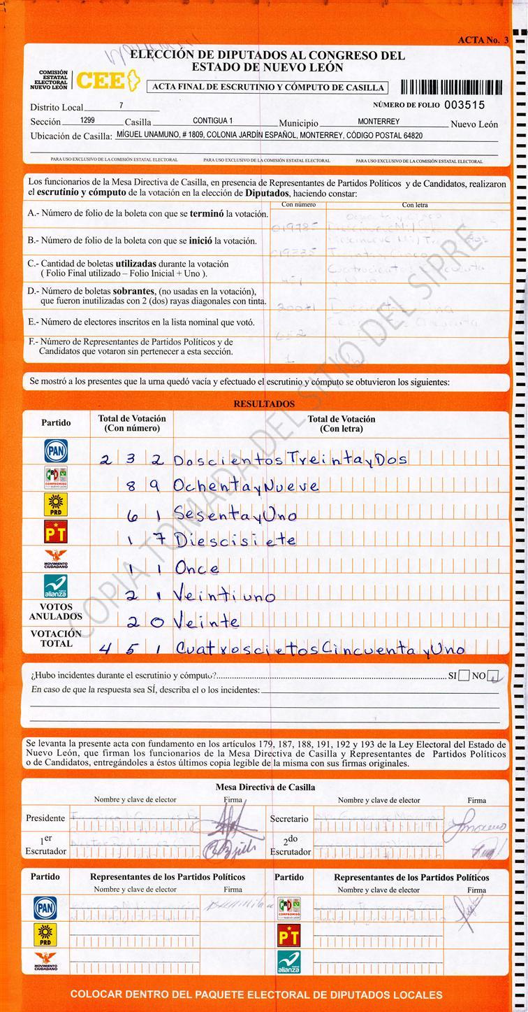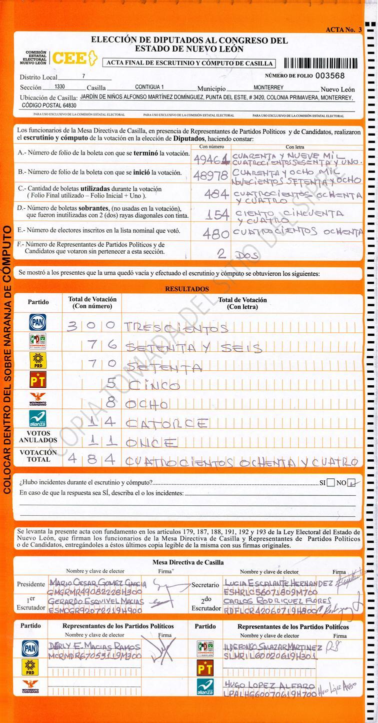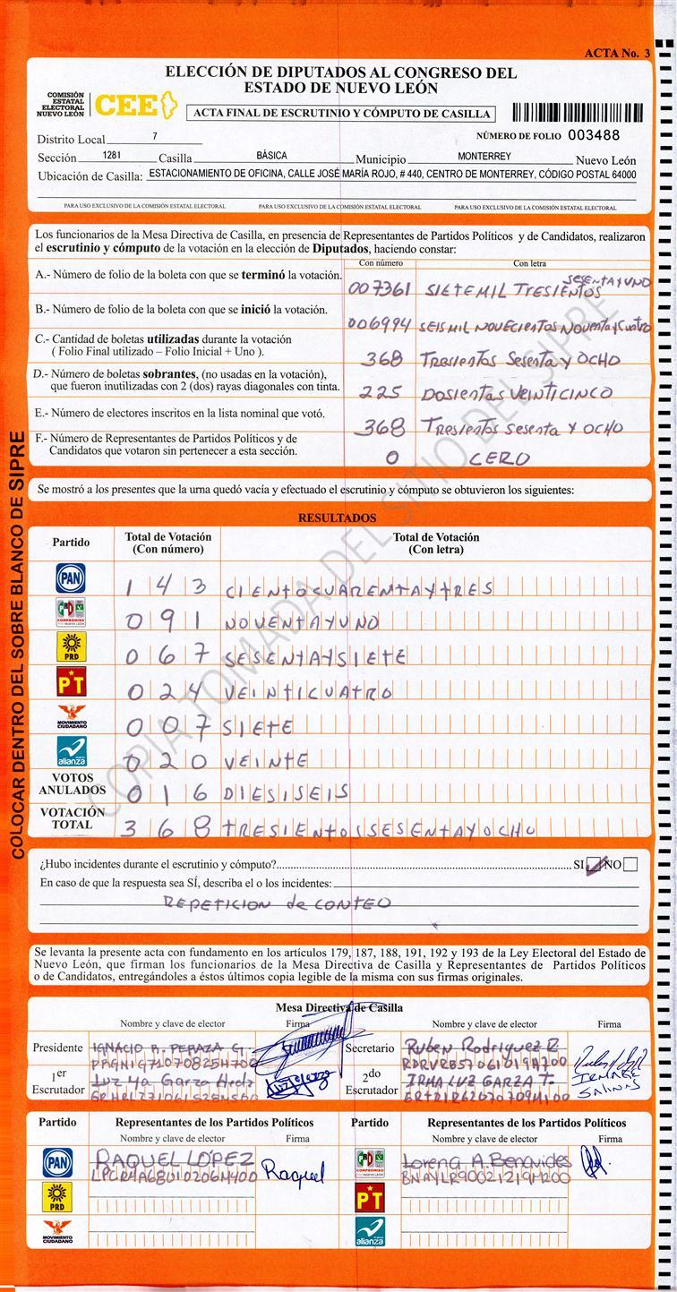 , (8) Copiado Movido , (9) Con Signos Inválidos , (10) Excede Lista Nominal , (11) Otra |