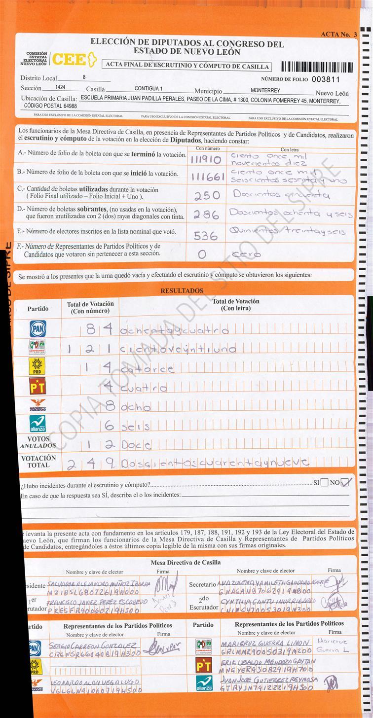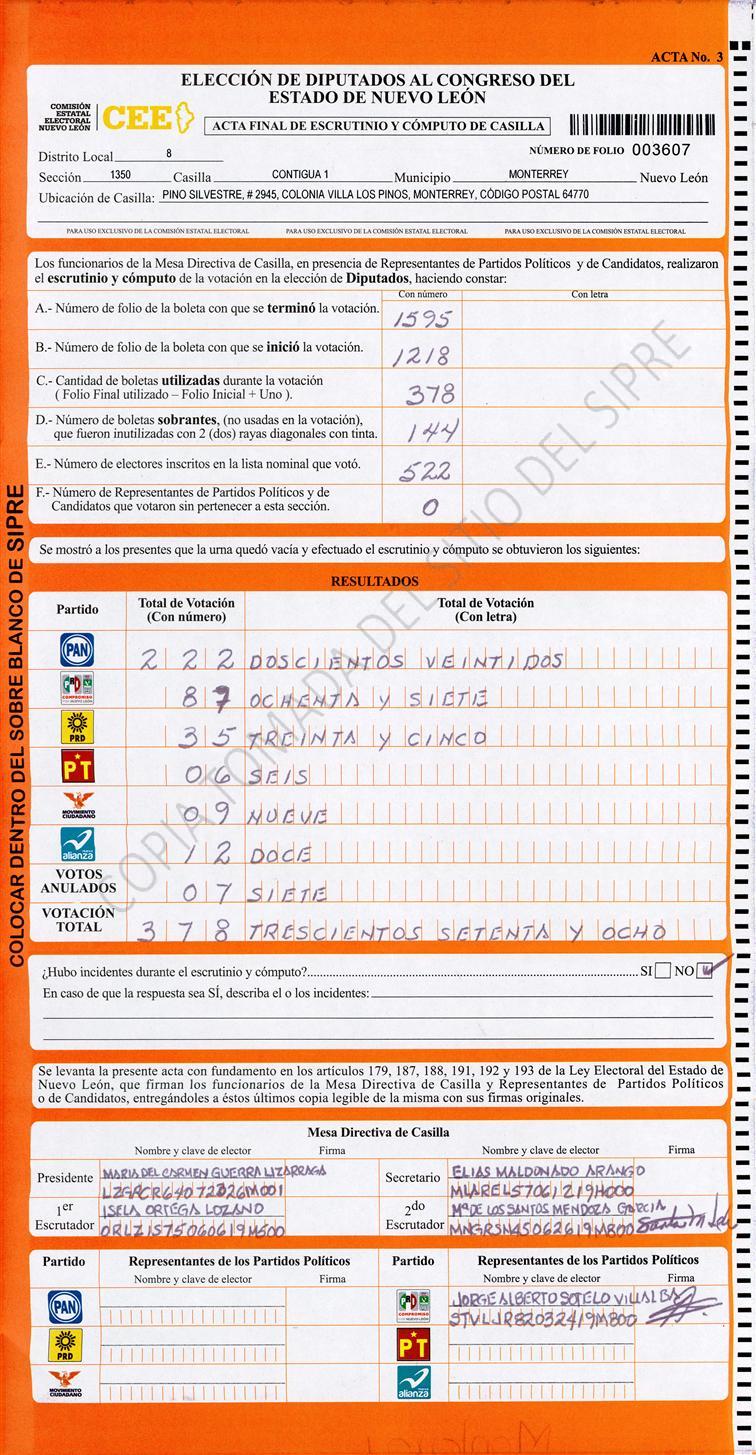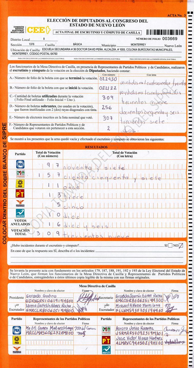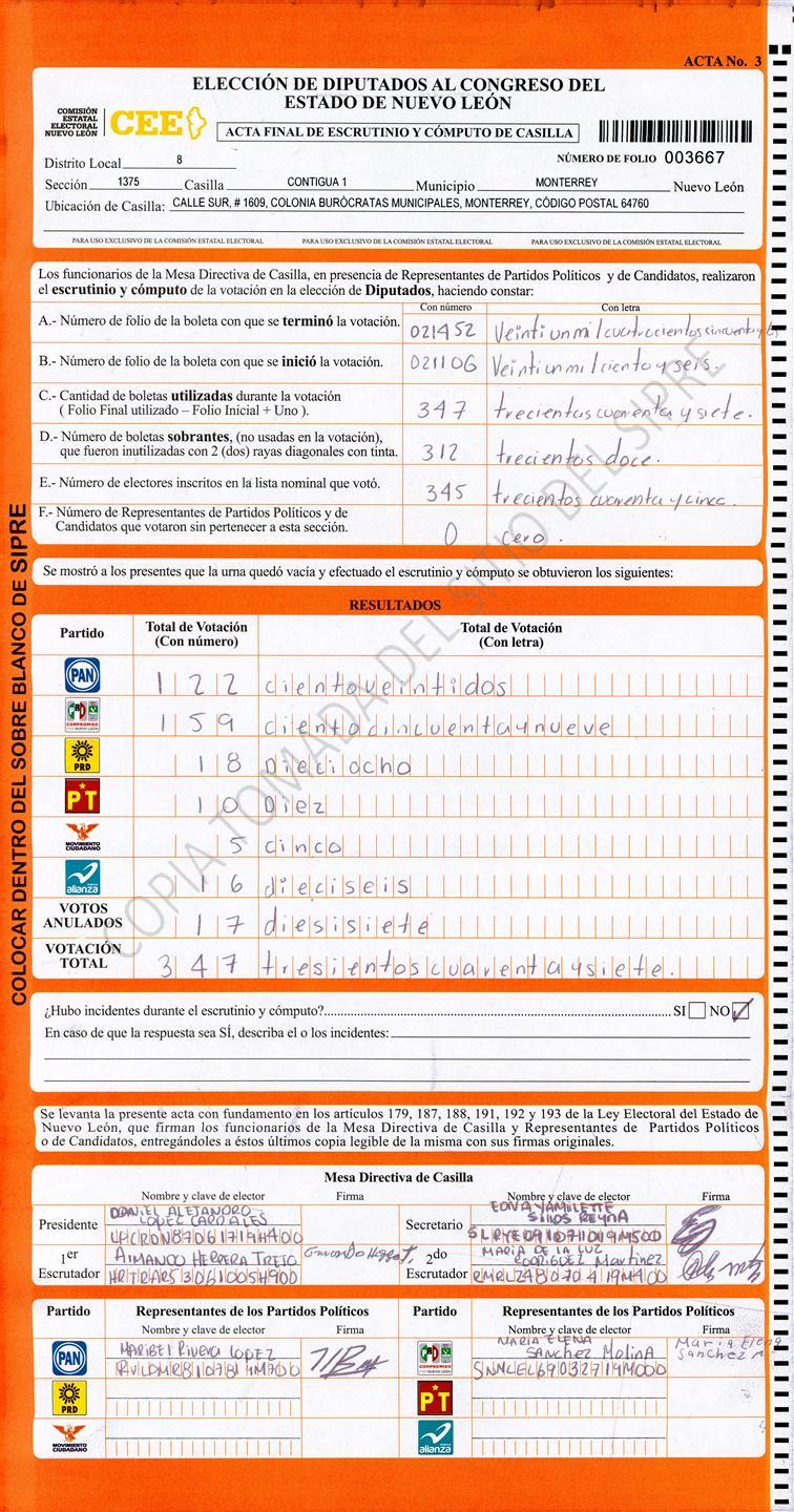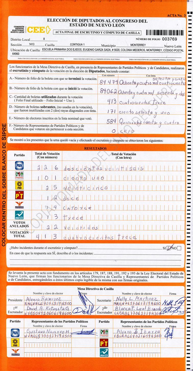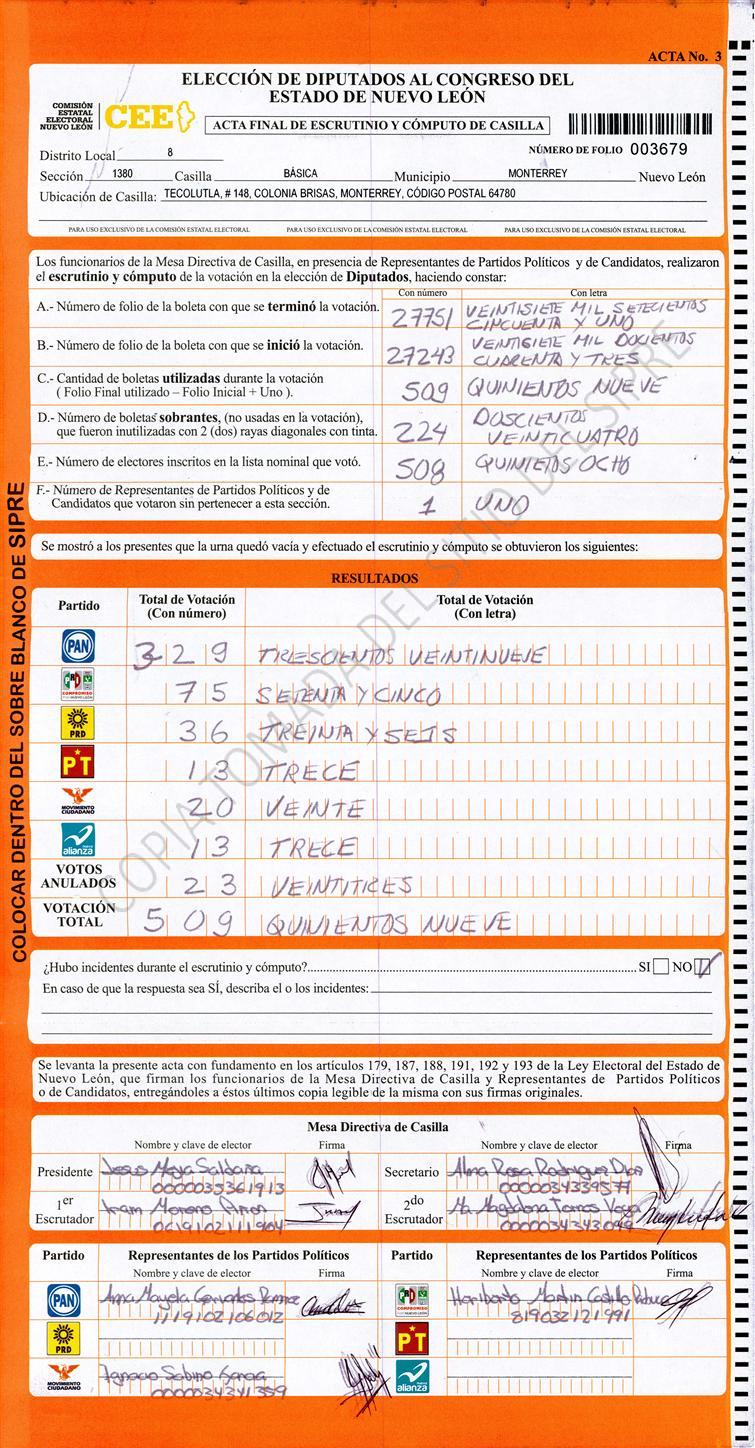 , (8) Copiado Movido , (9) Con Signos Inválidos , (10) Excede Lista Nominal , (11) Otra |