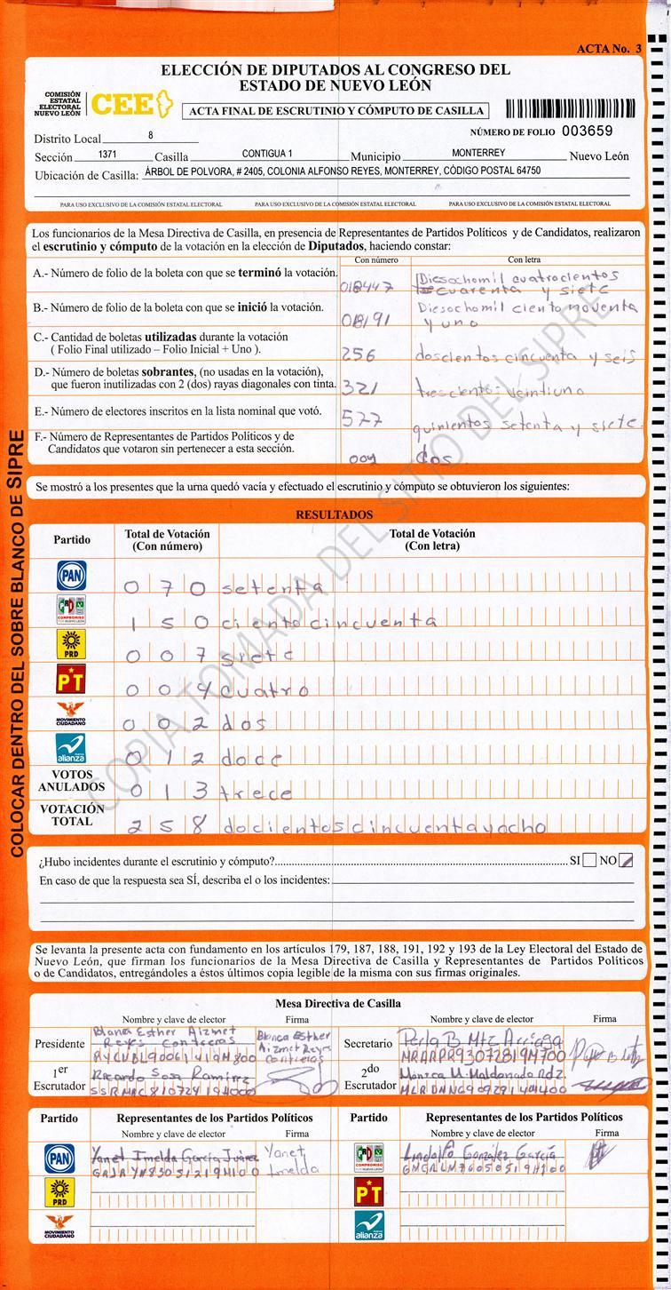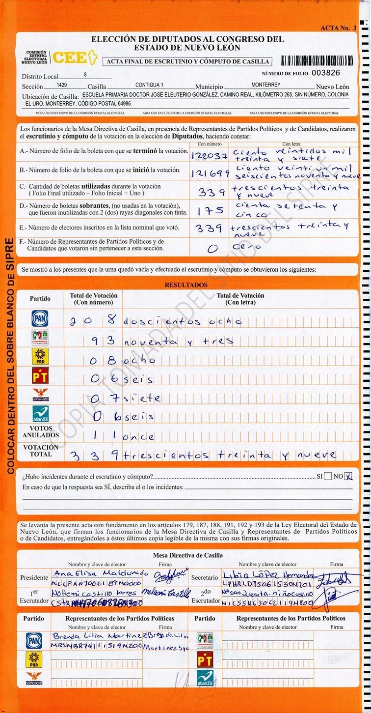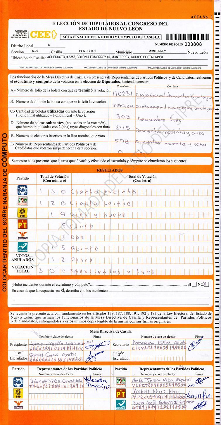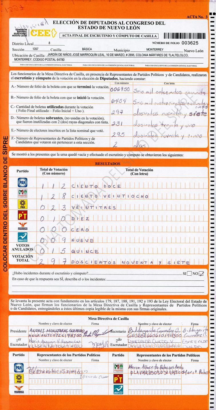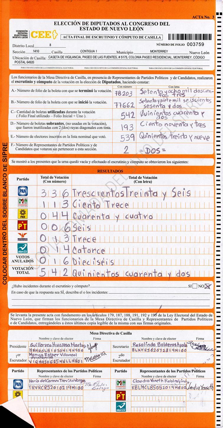, (8) Copiado Movido , (9) Con Signos Inválidos , (10) Excede Lista Nominal , (11) Otra |