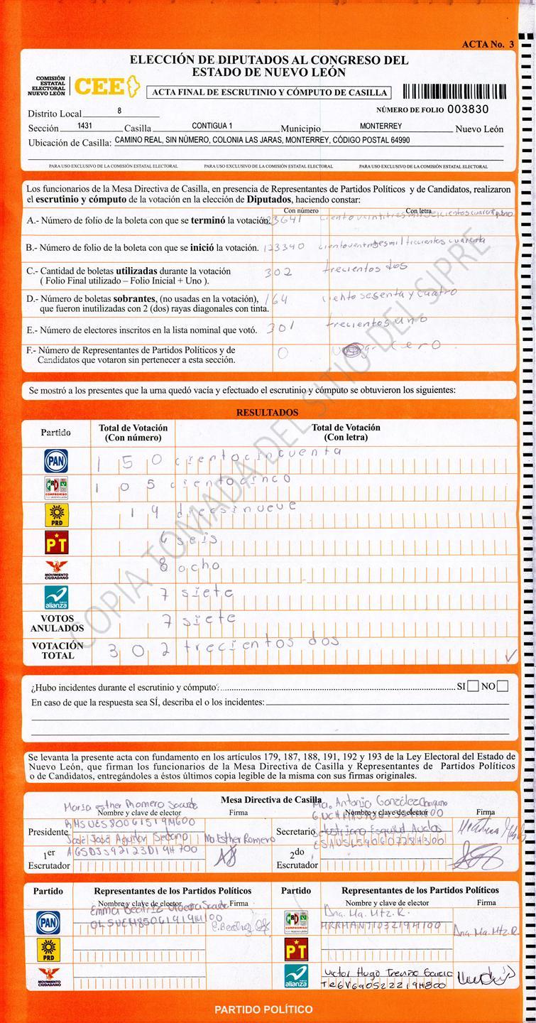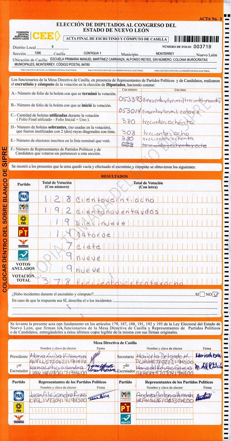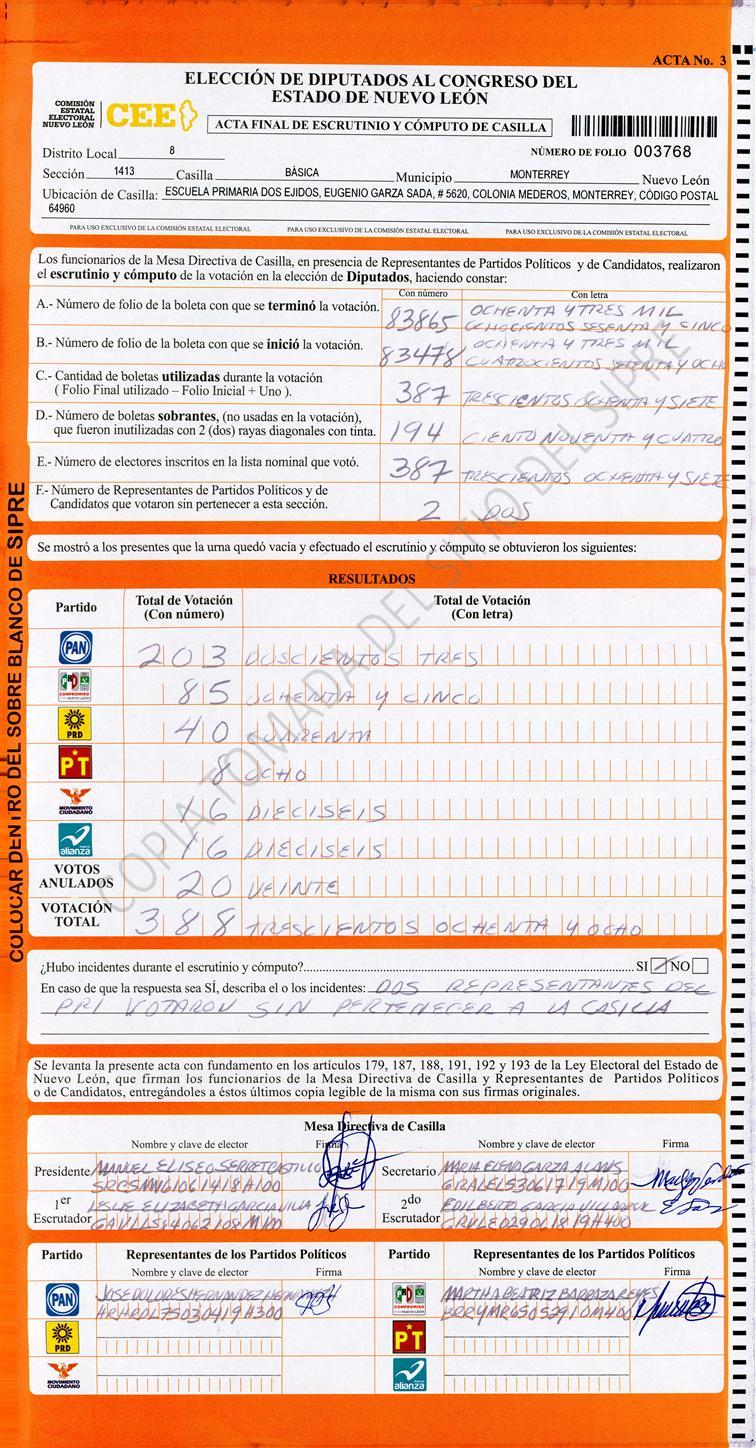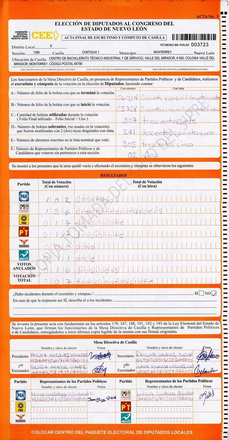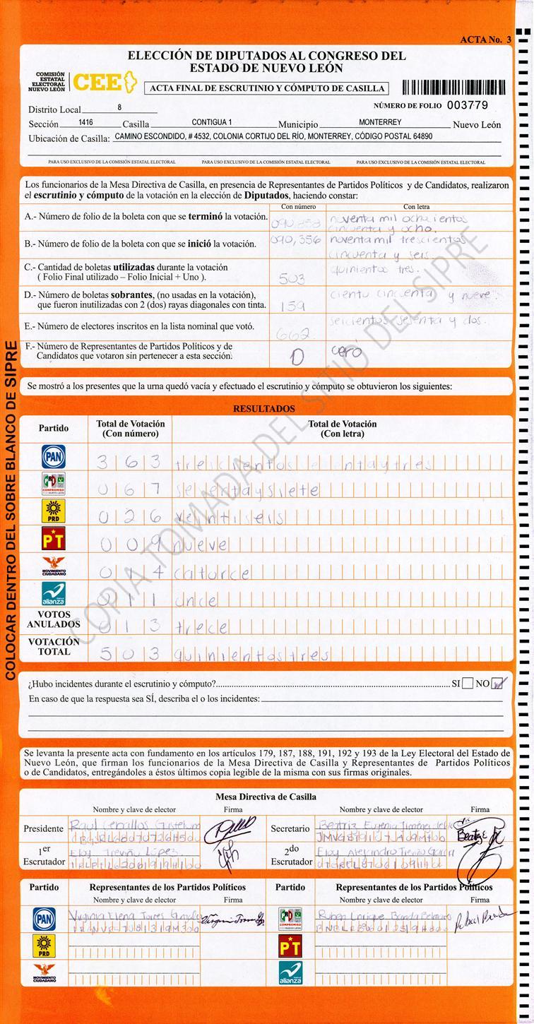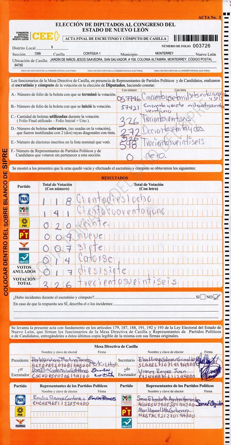 , (8) Copiado Movido , (9) Con Signos Inválidos , (10) Excede Lista Nominal , (11) Otra |