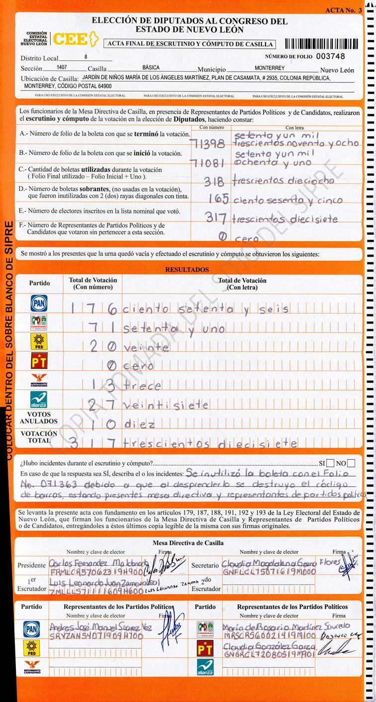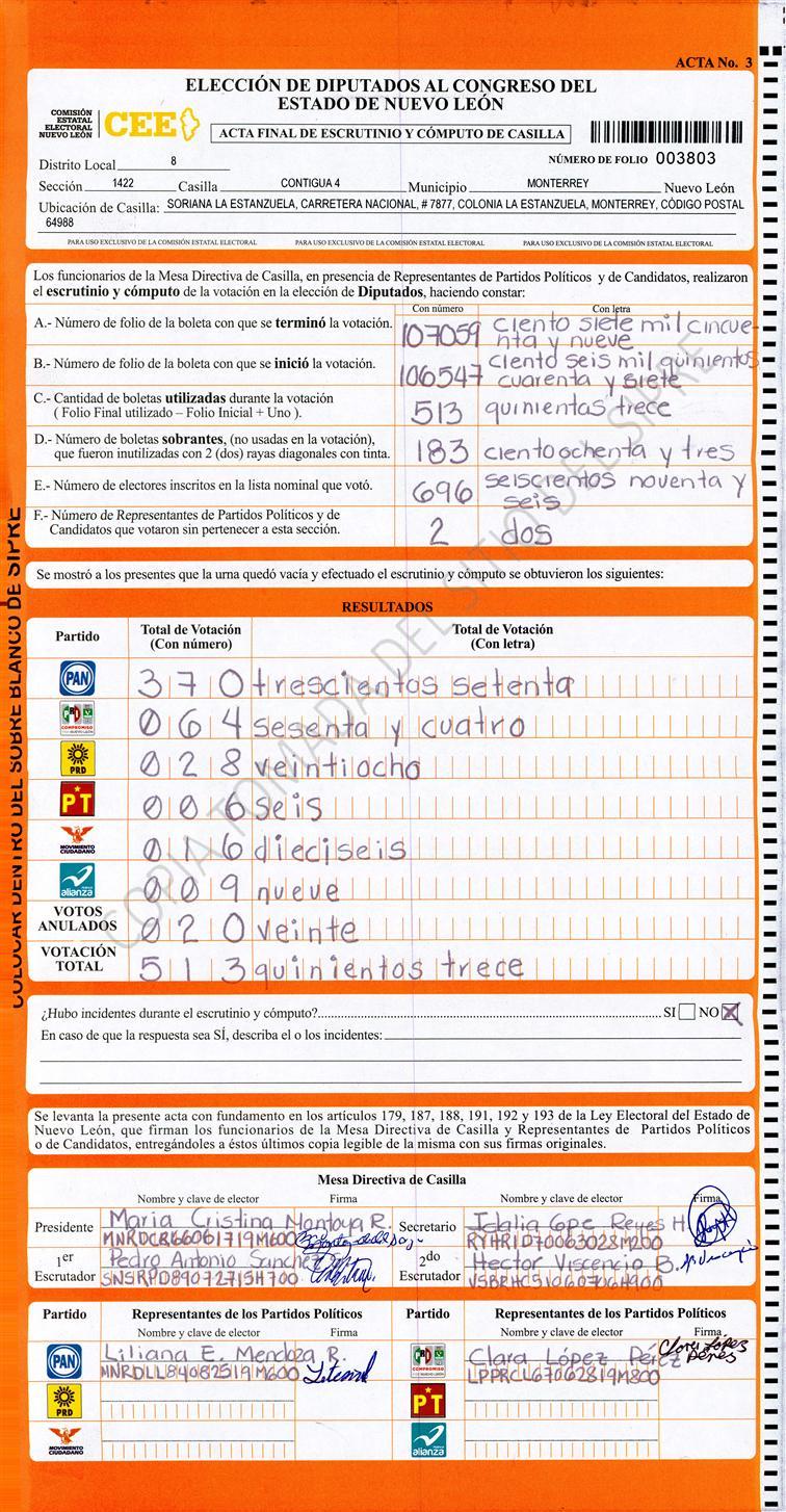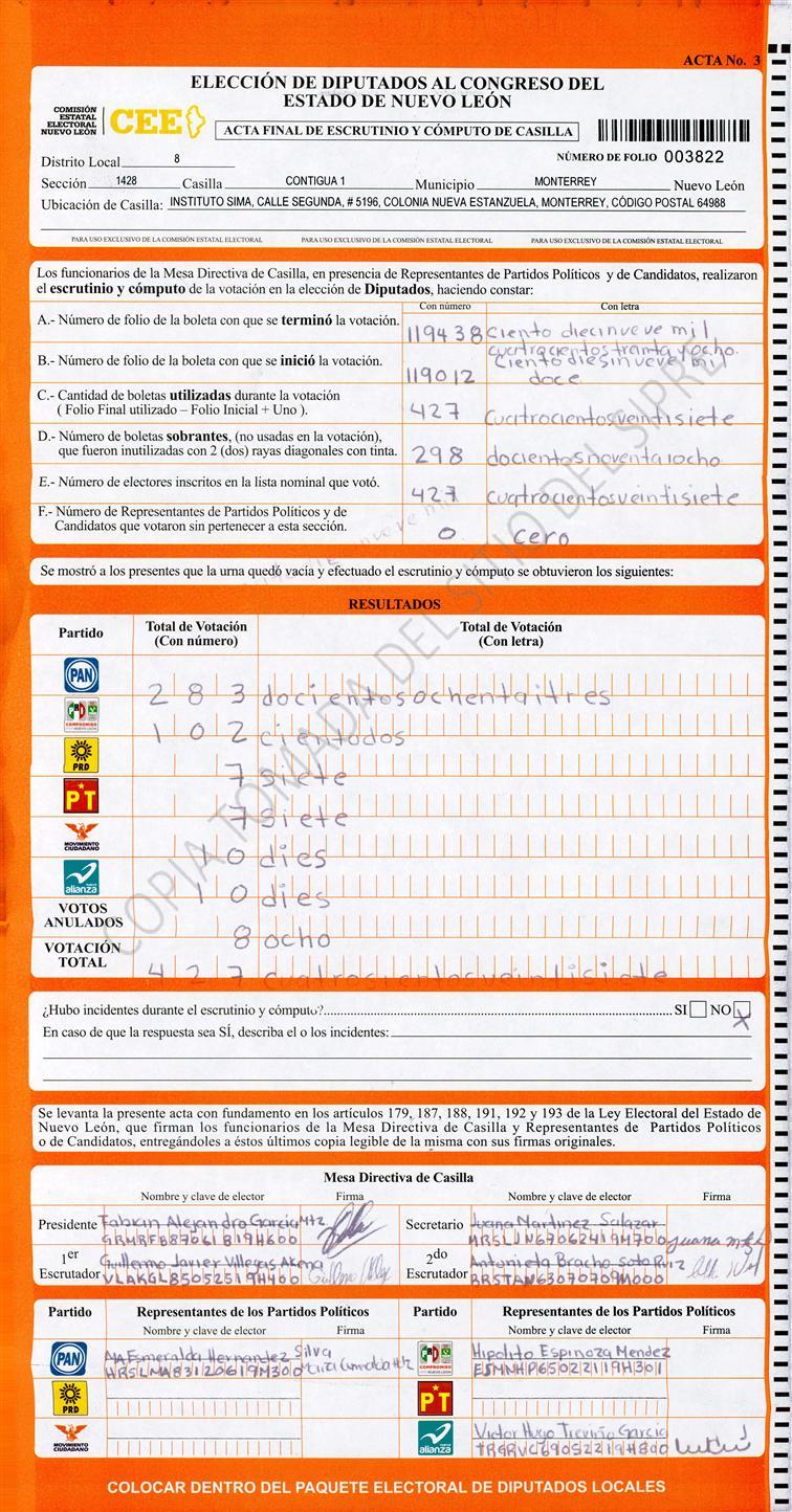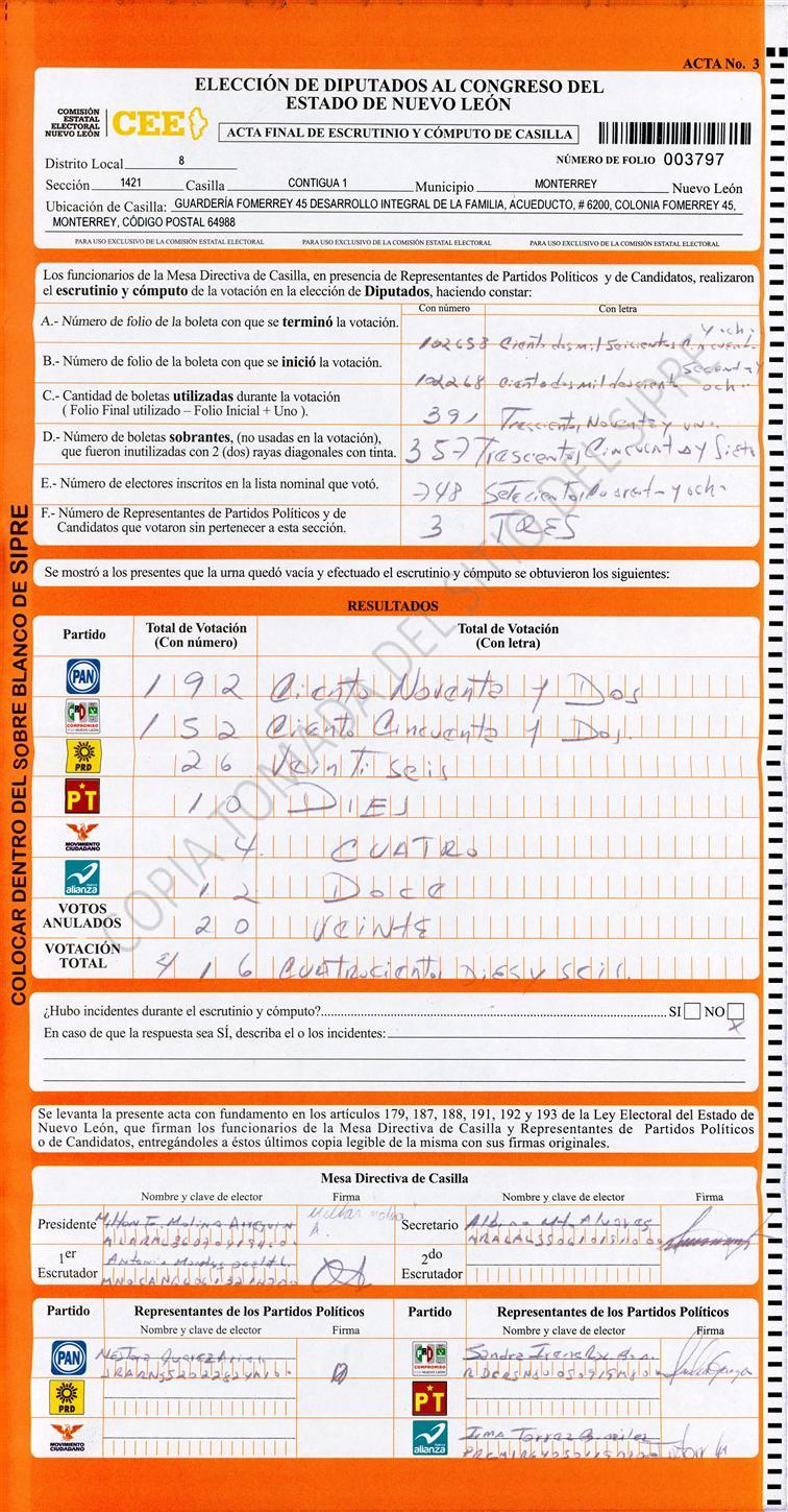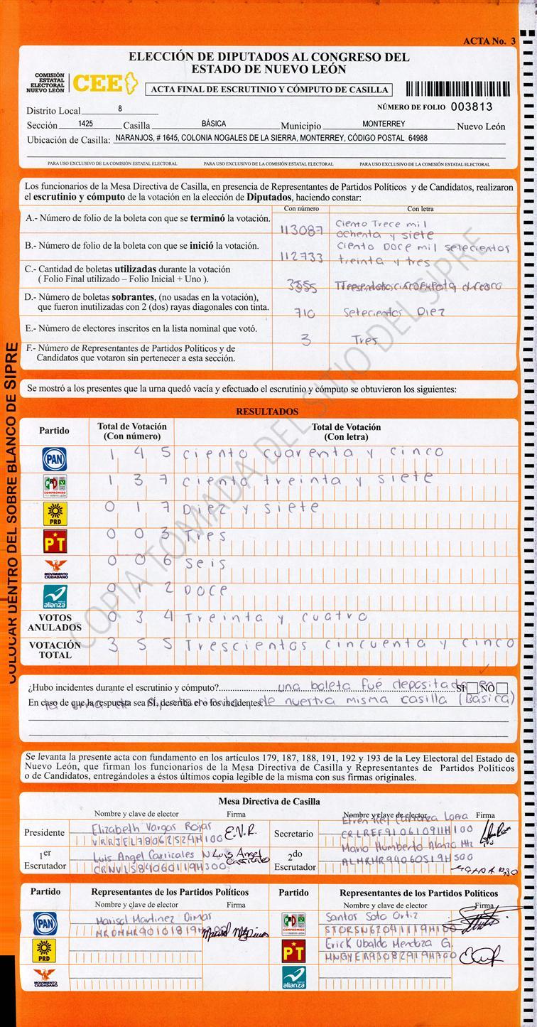 , (8) Copiado Movido , (9) Con Signos Inválidos , (10) Excede Lista Nominal , (11) Otra |