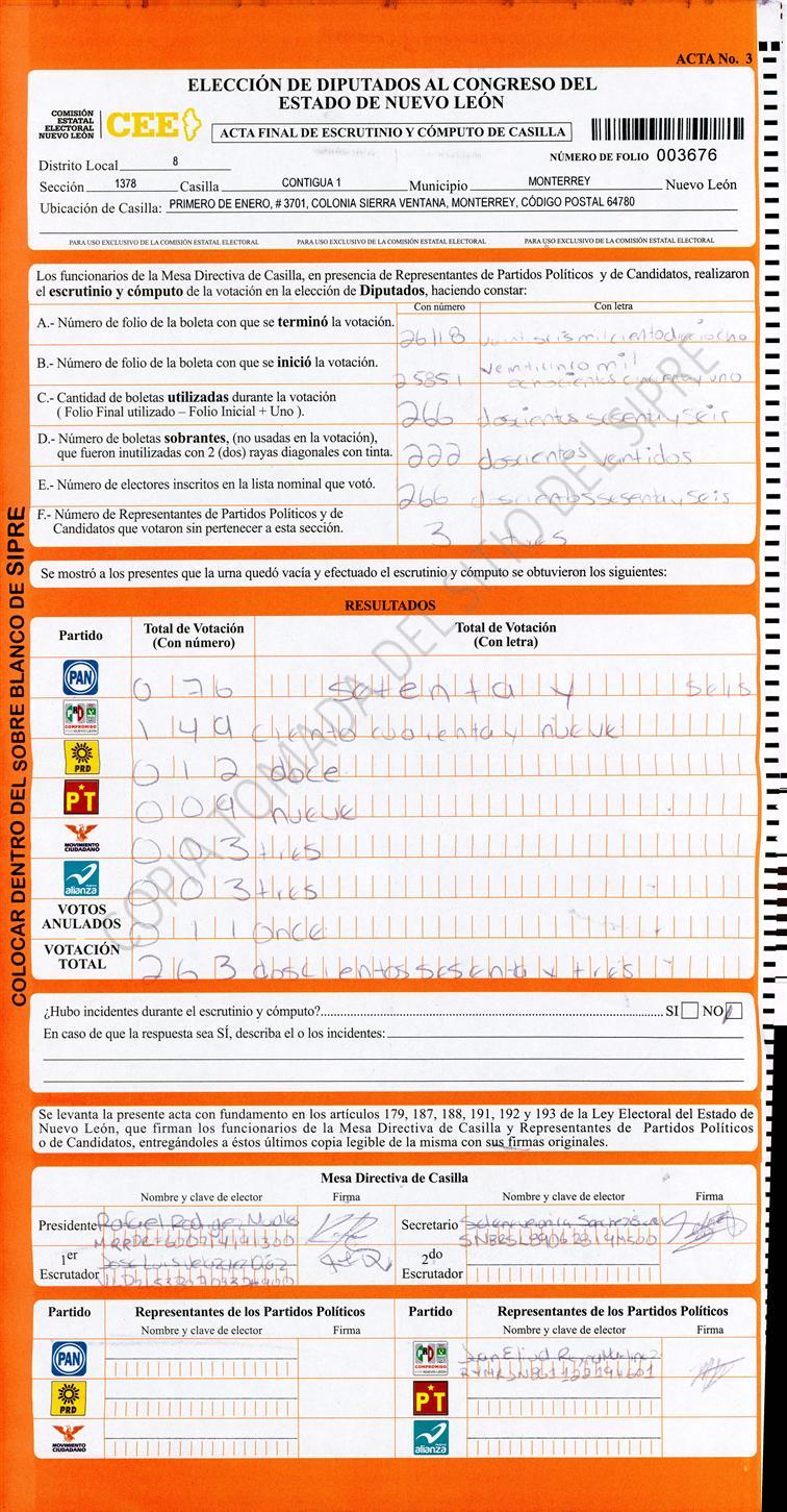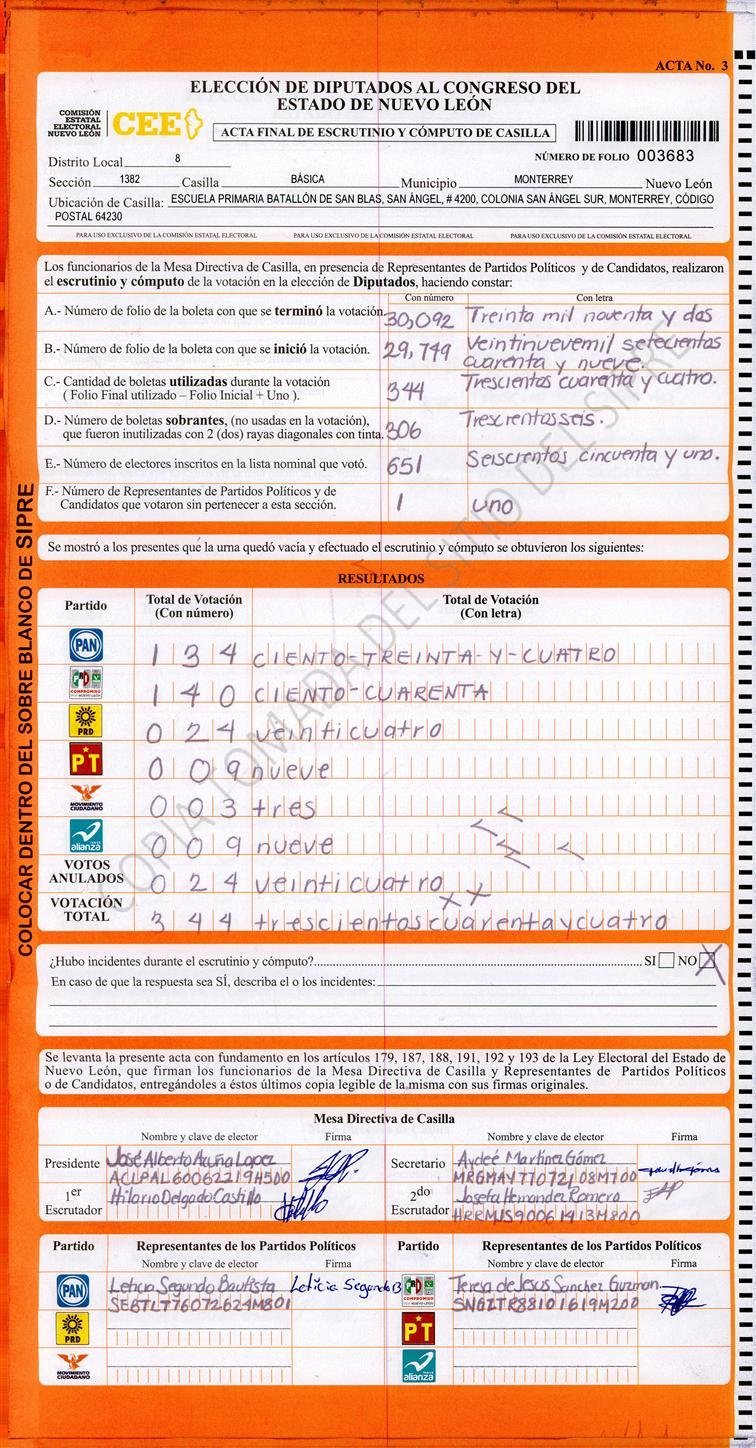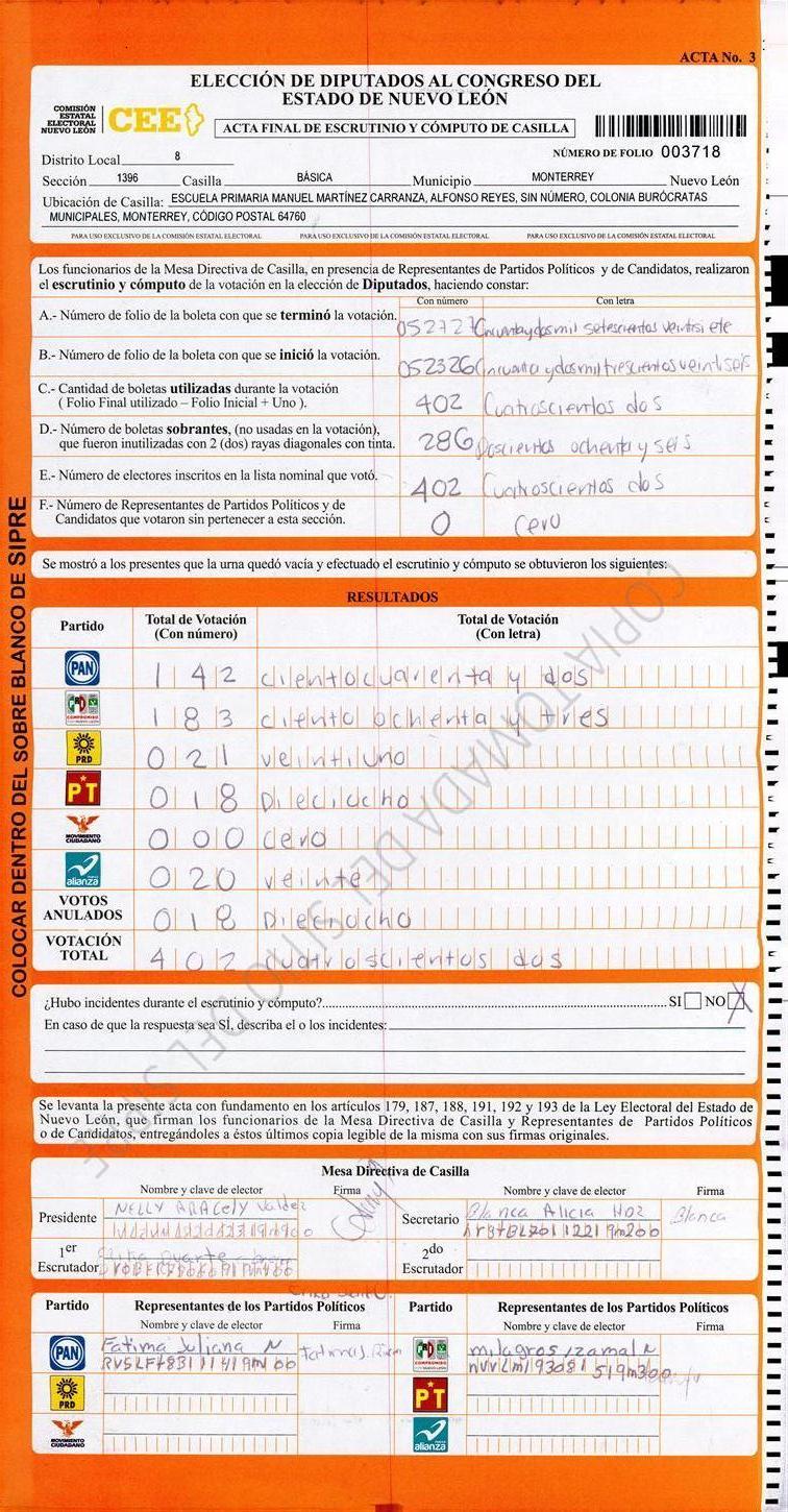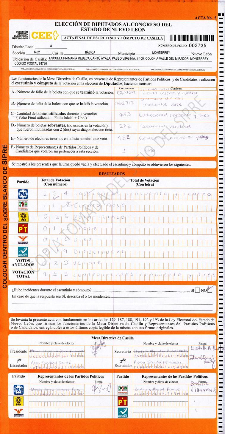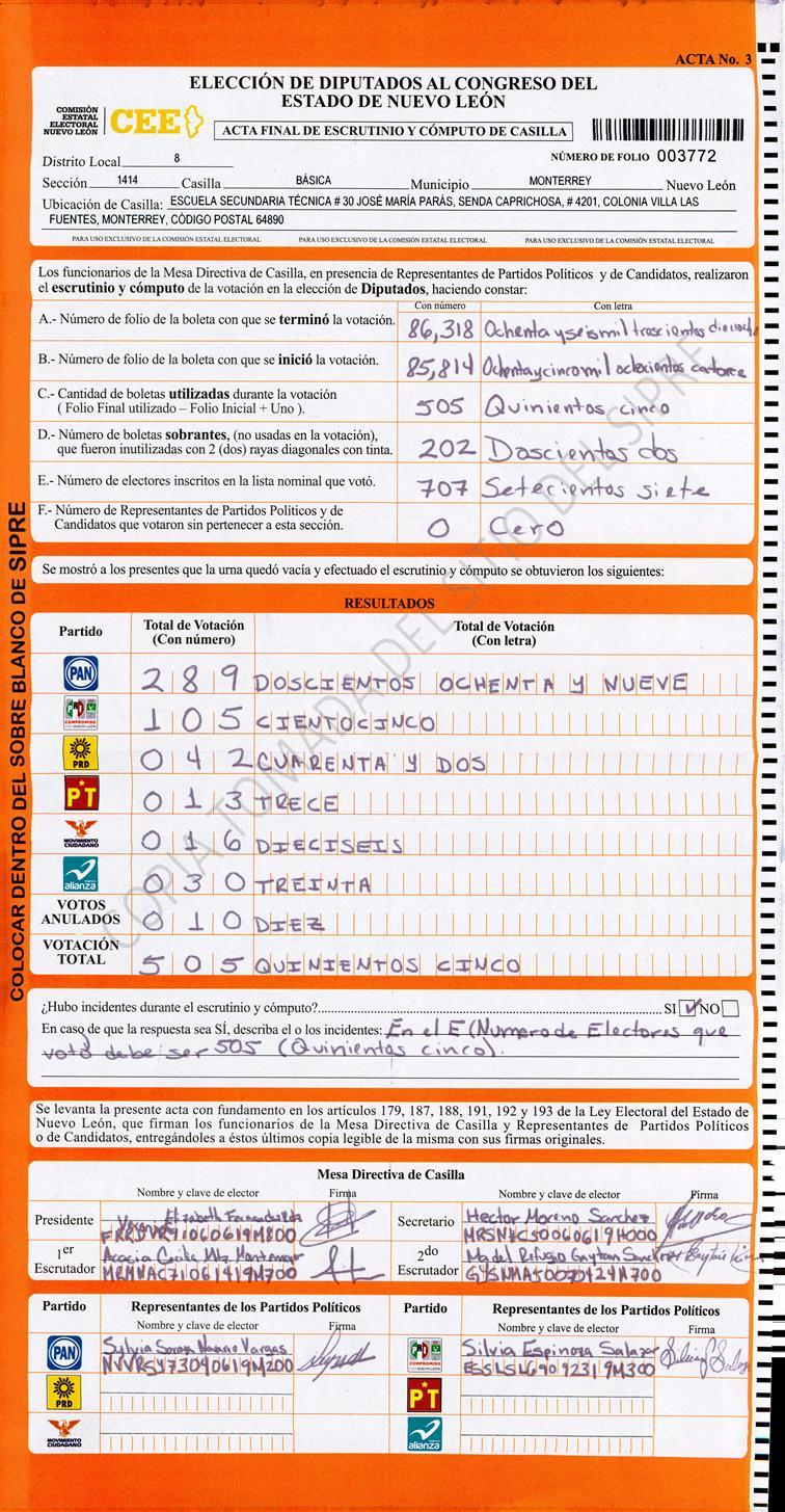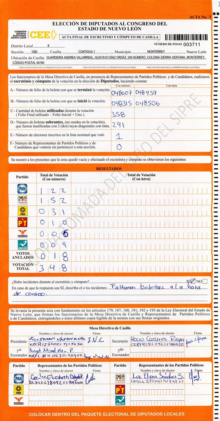 , (8) Copiado Movido , (9) Con Signos Inválidos , (10) Excede Lista Nominal , (11) Otra |