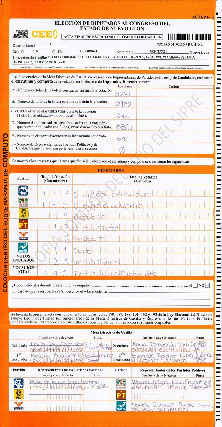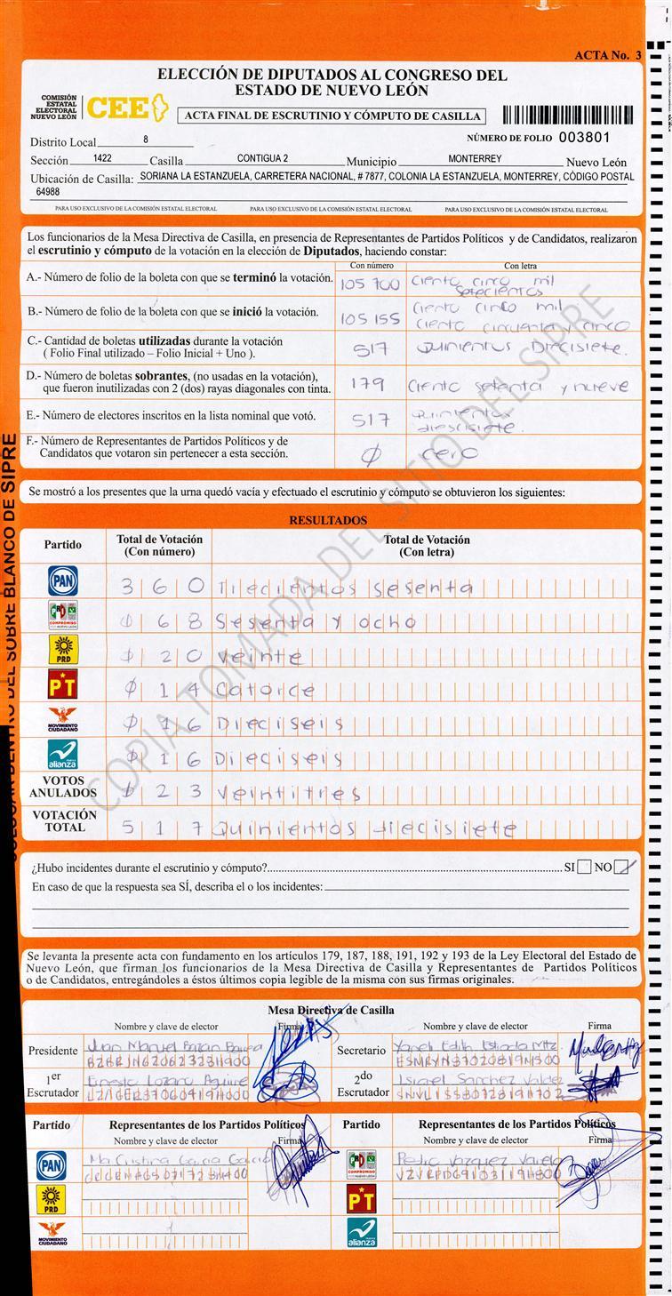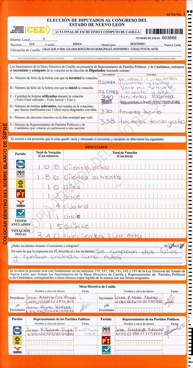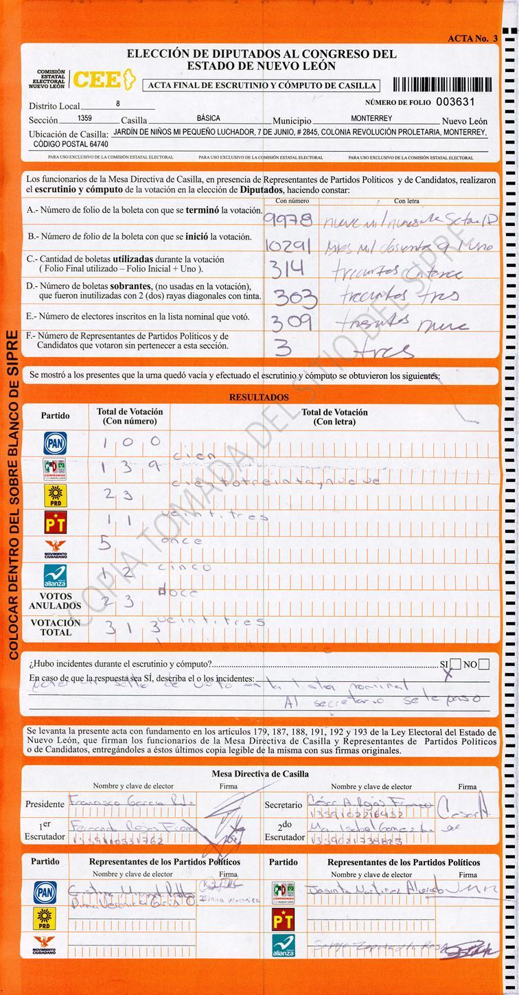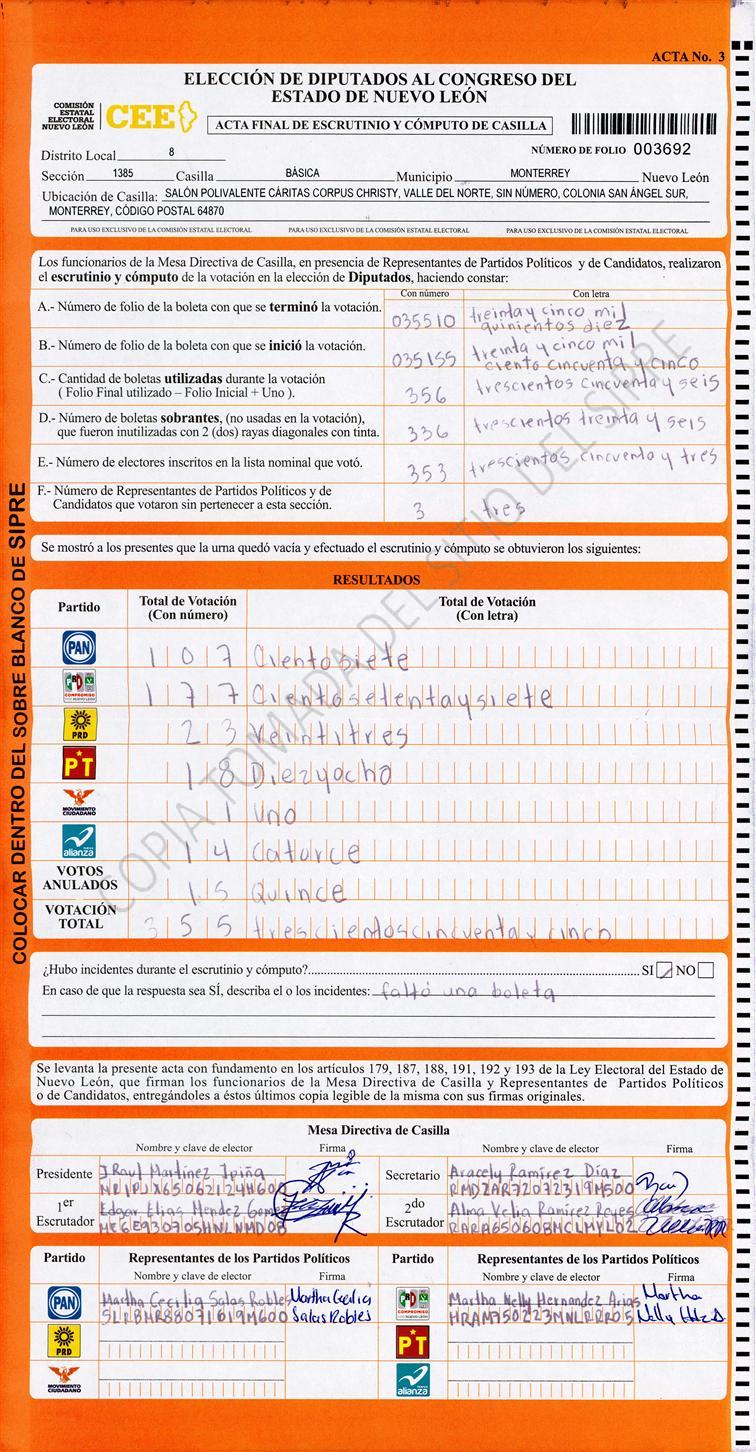 , (8) Copiado Movido , (9) Con Signos Inválidos , (10) Excede Lista Nominal , (11) Otra |