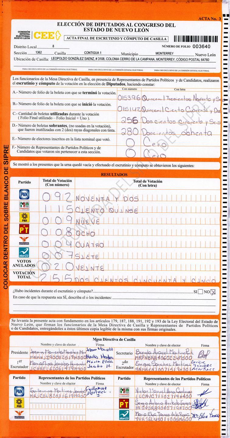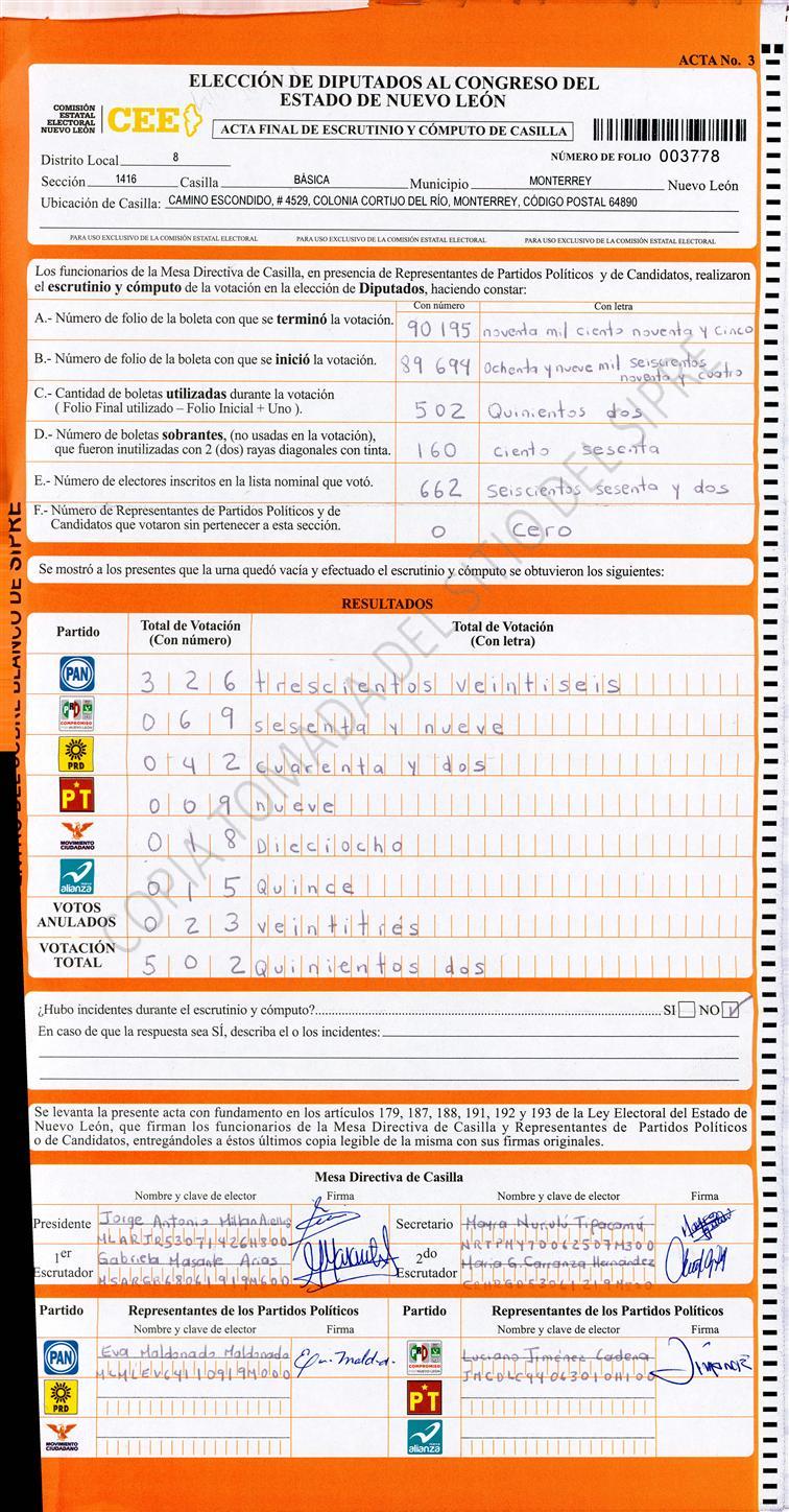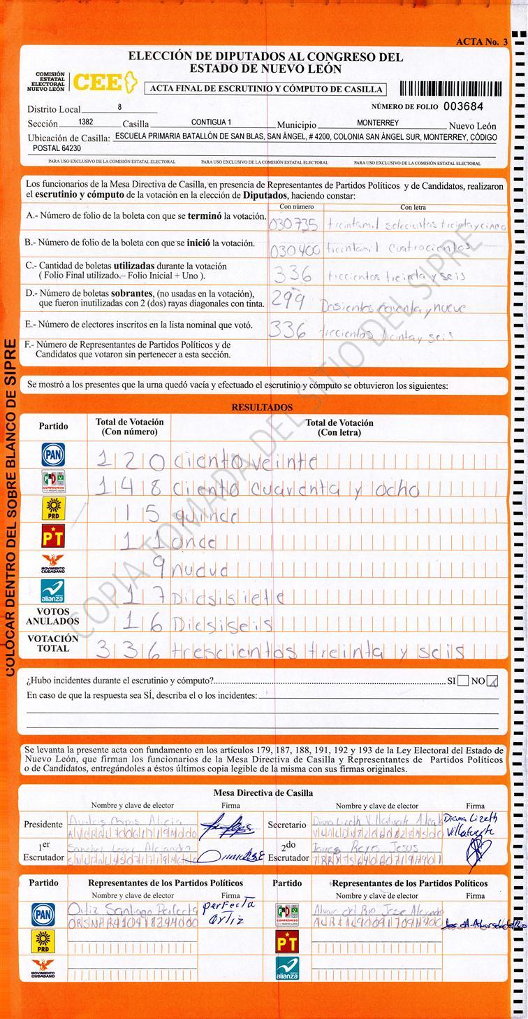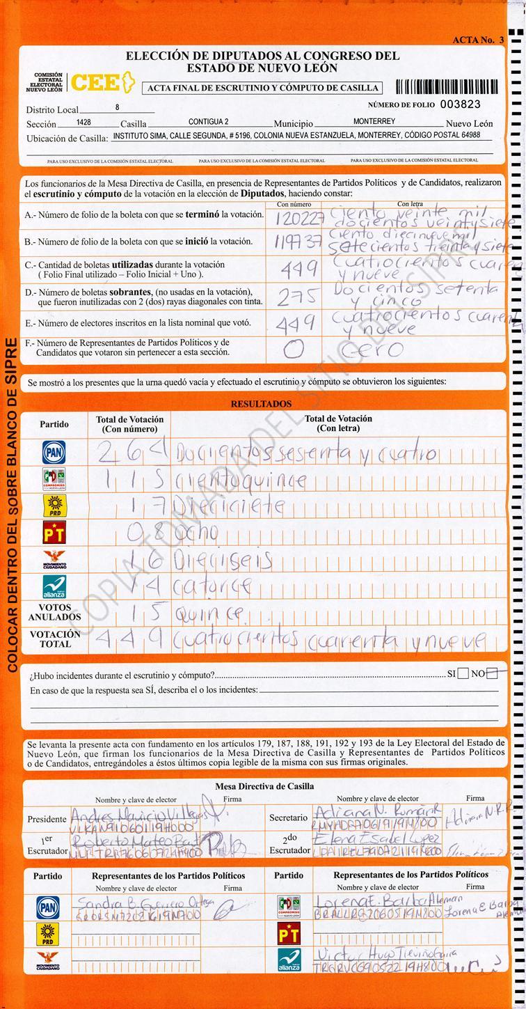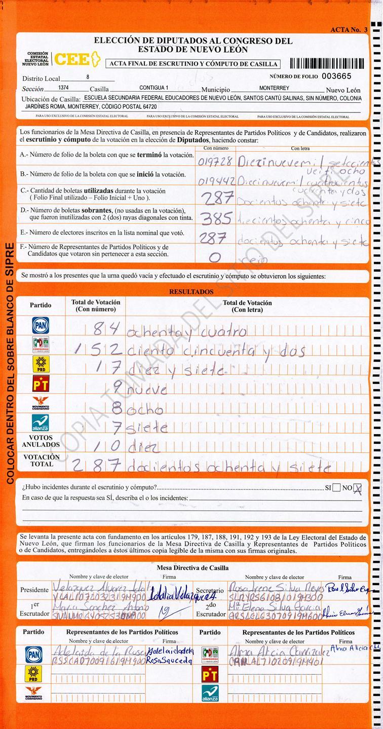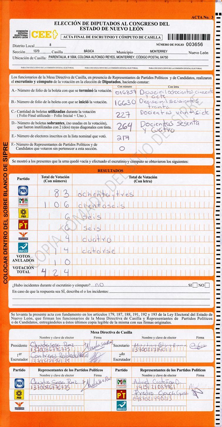 , (8) Copiado Movido , (9) Con Signos Inválidos , (10) Excede Lista Nominal , (11) Otra |