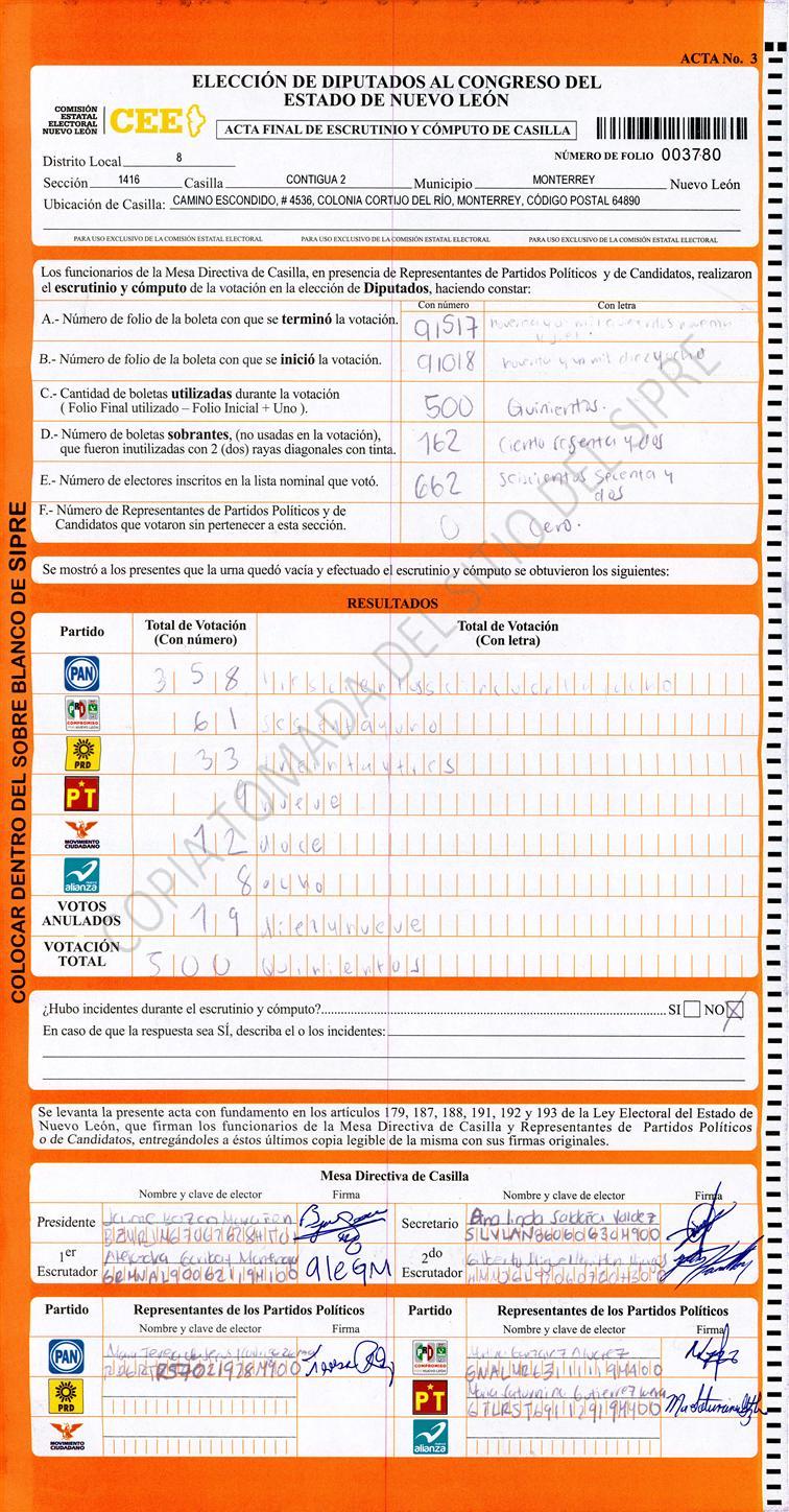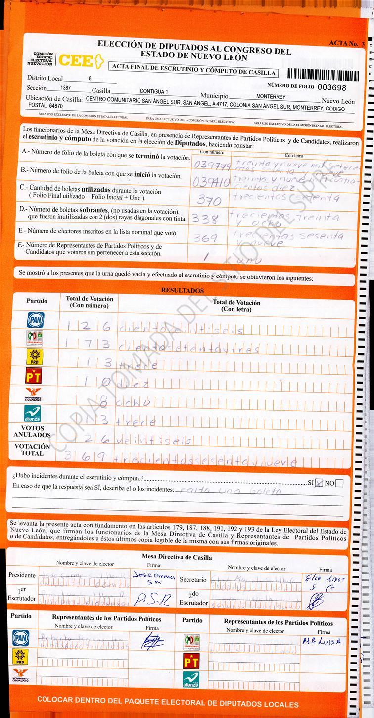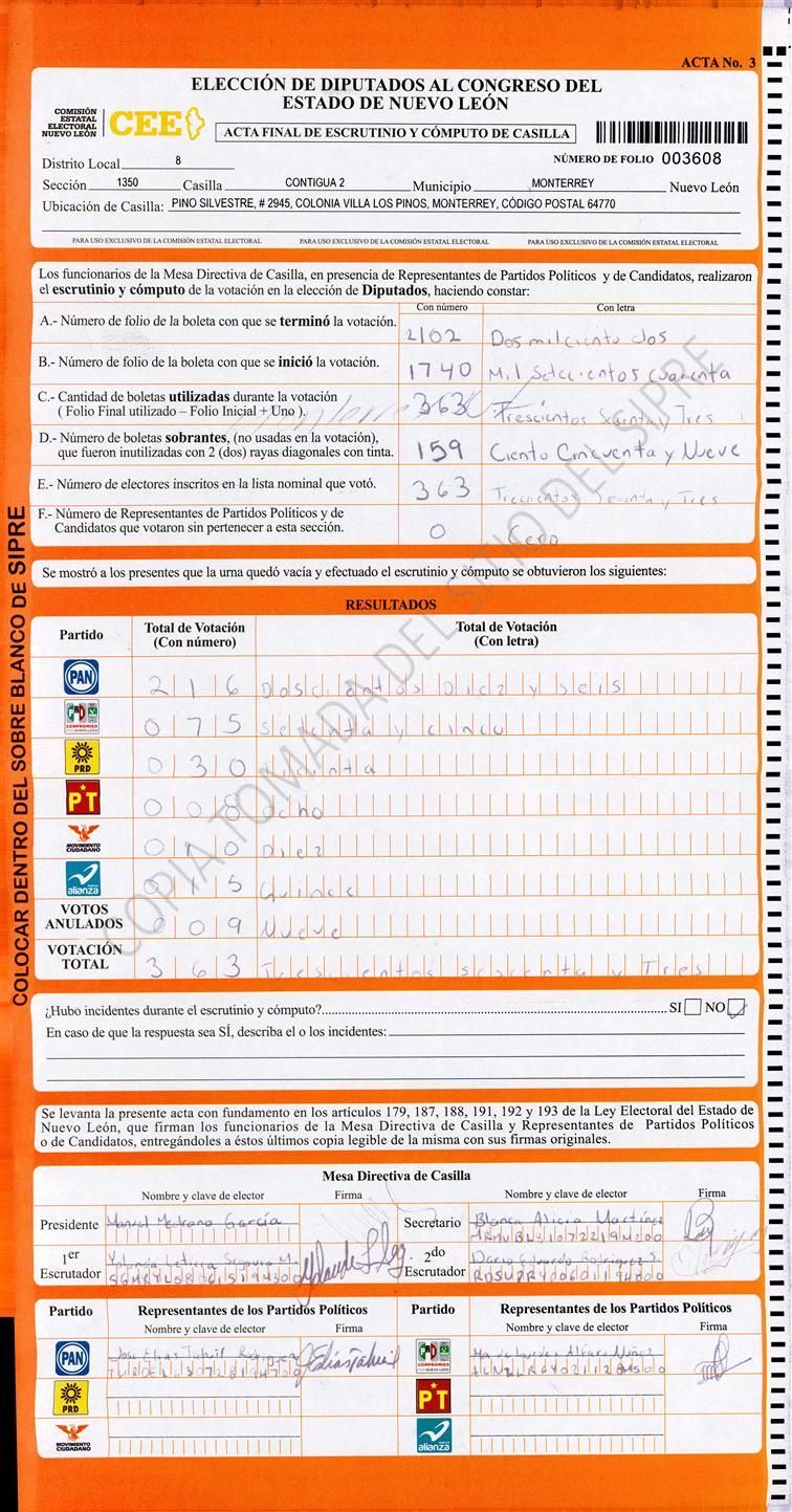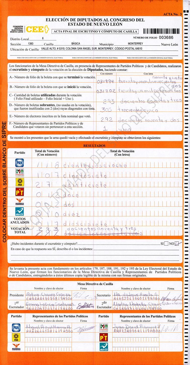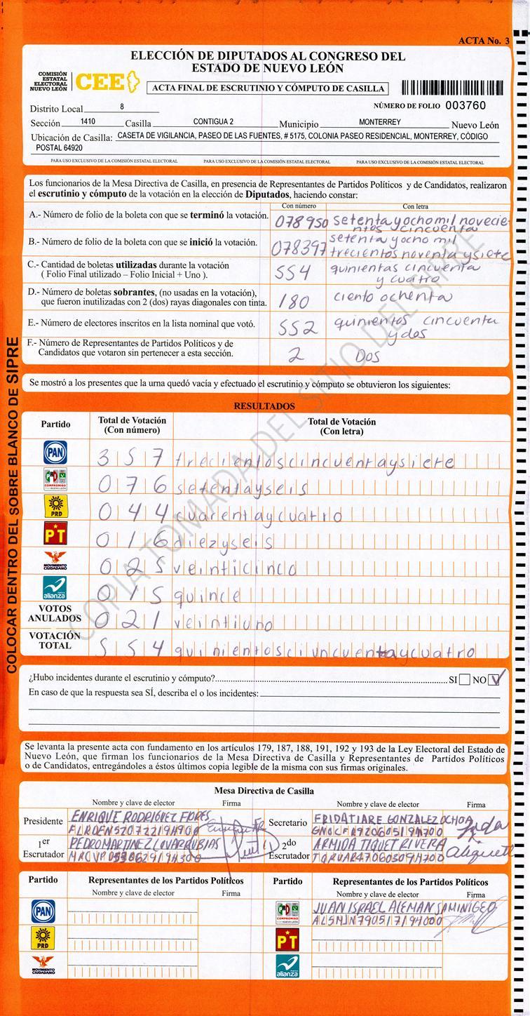 , (8) Copiado Movido , (9) Con Signos Inválidos , (10) Excede Lista Nominal , (11) Otra |