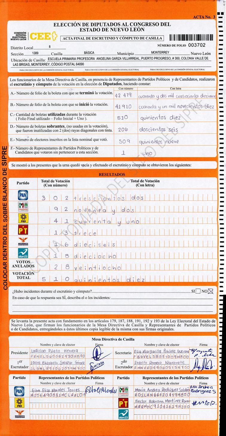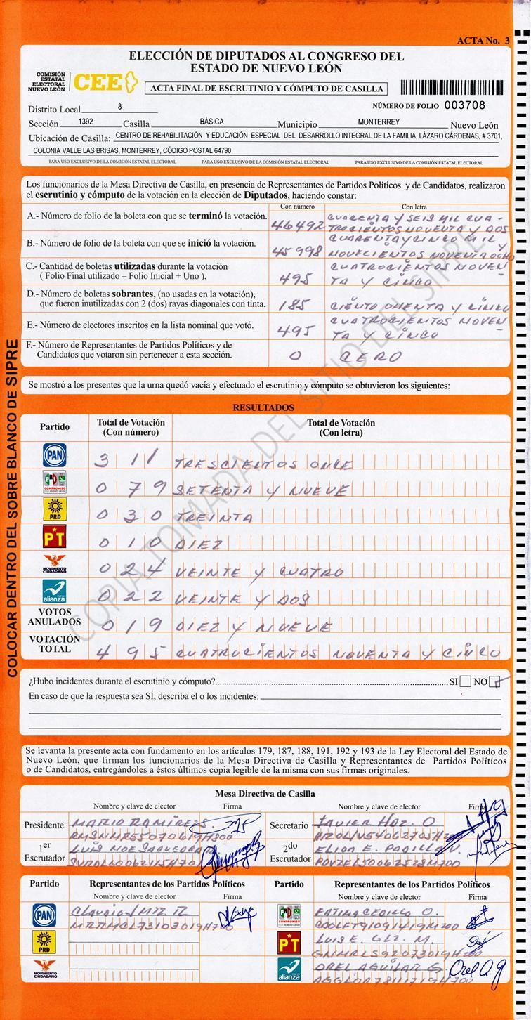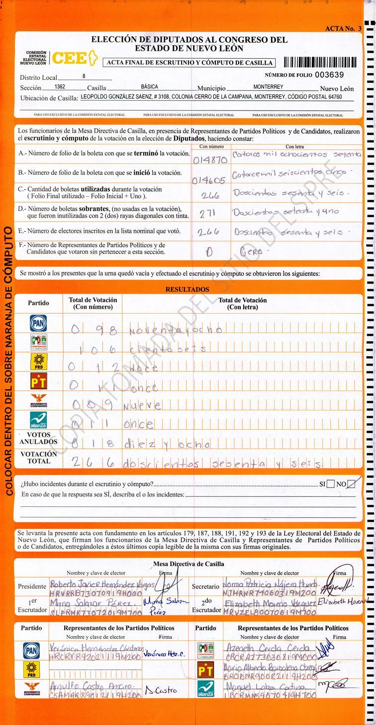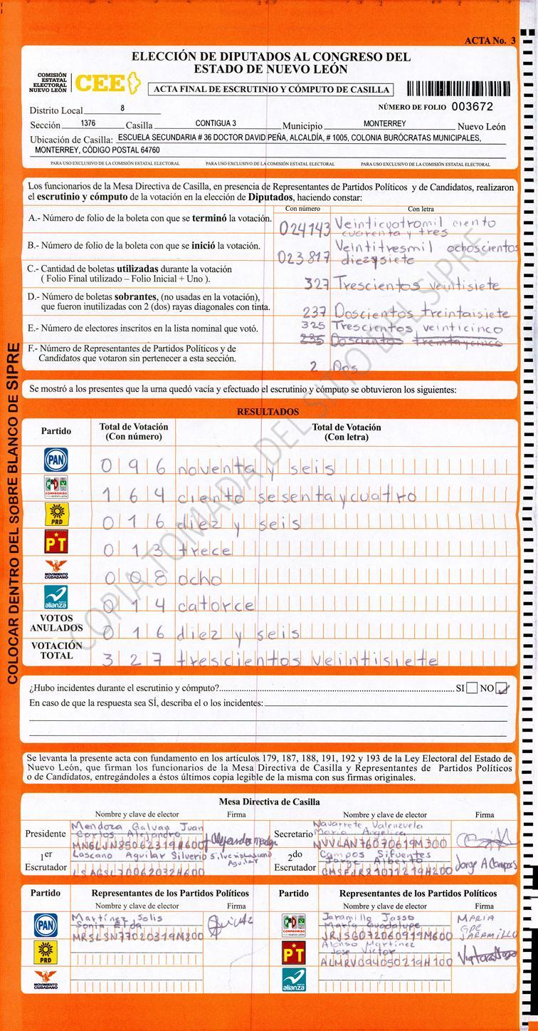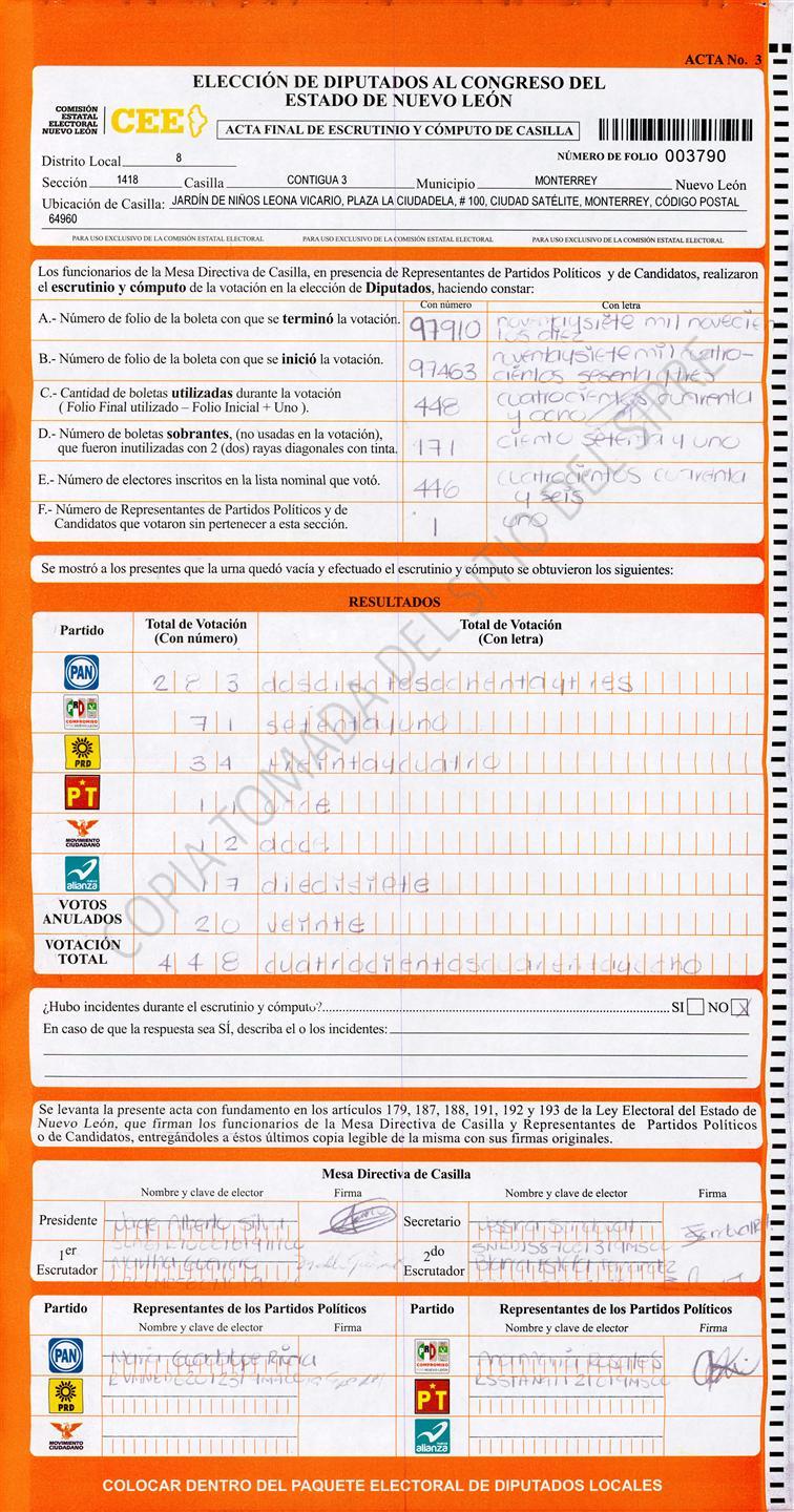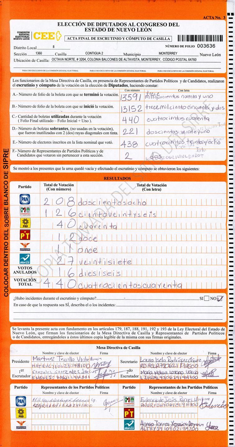 , (8) Copiado Movido , (9) Con Signos Inválidos , (10) Excede Lista Nominal , (11) Otra |