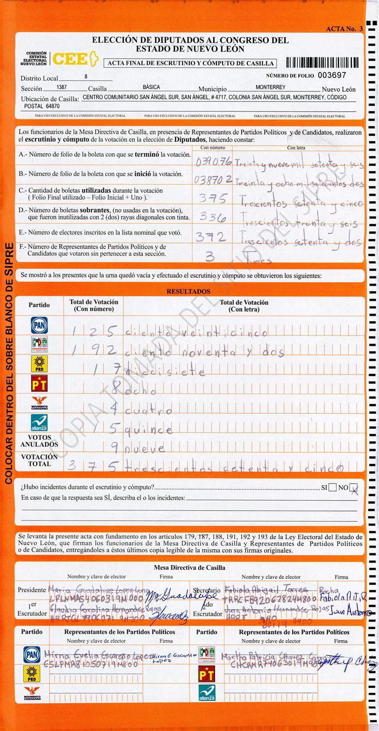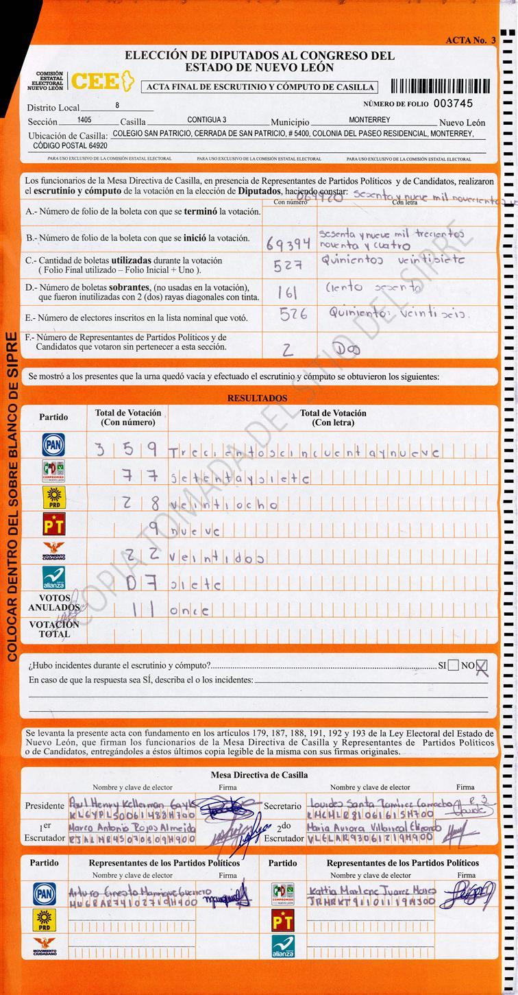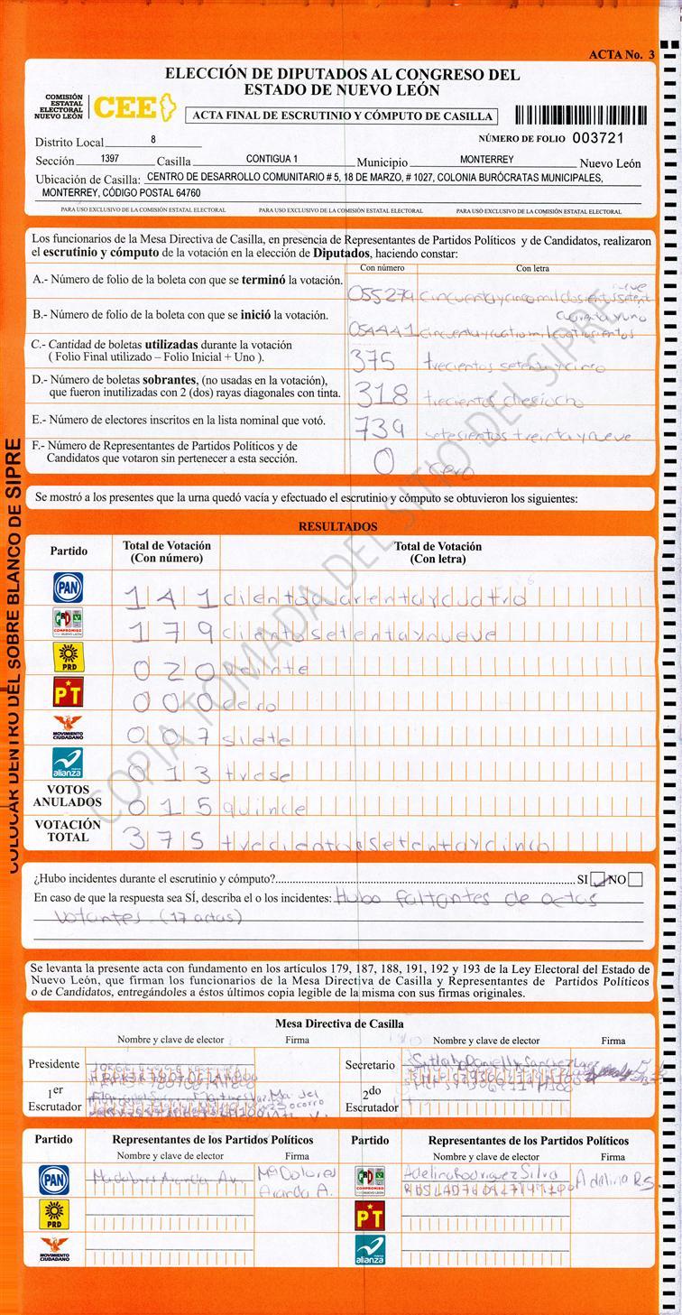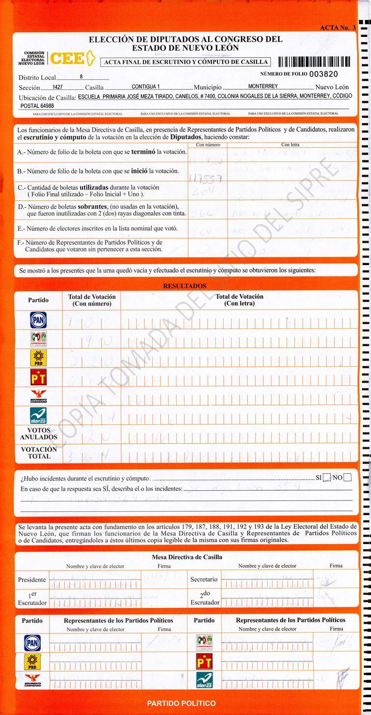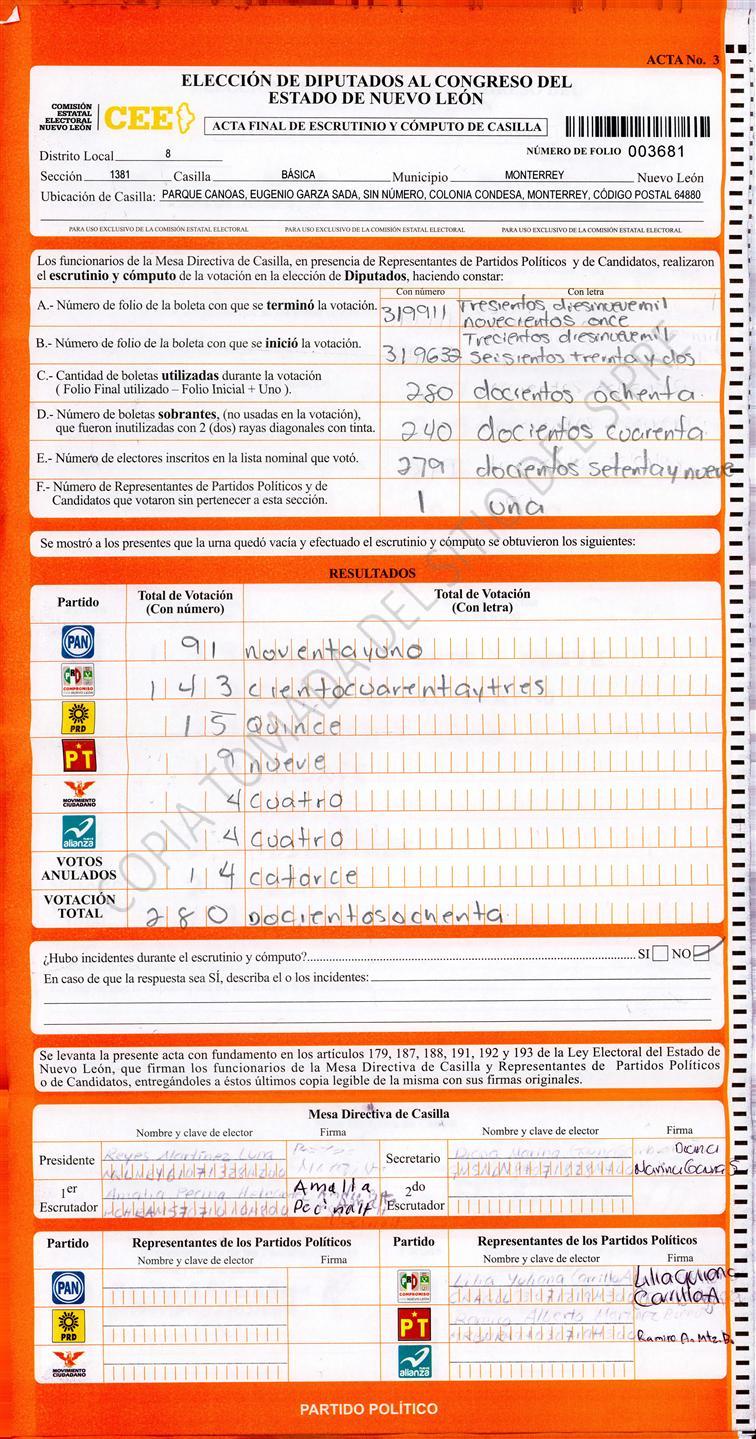 , (8) Copiado Movido , (9) Con Signos Inválidos , (10) Excede Lista Nominal , (11) Otra |