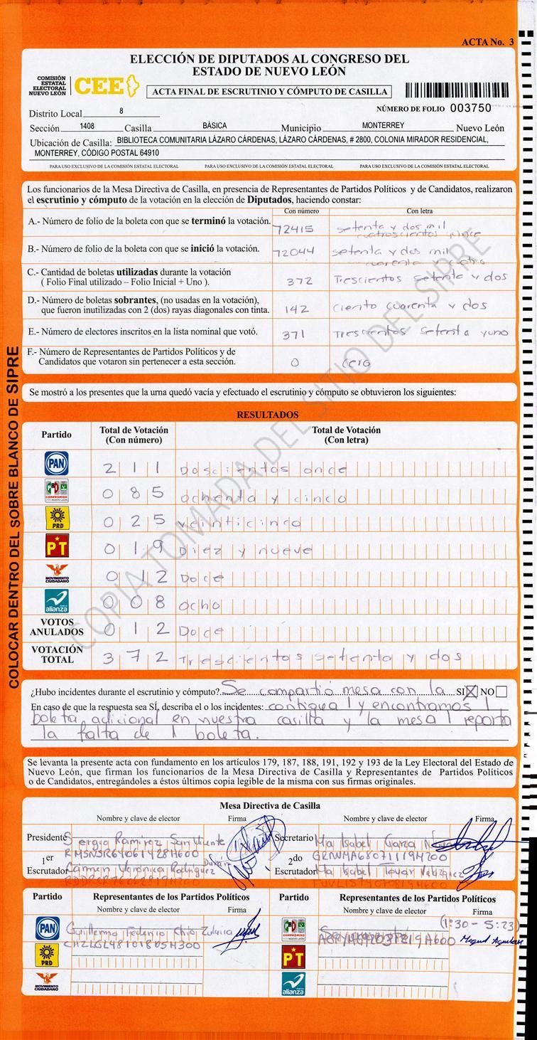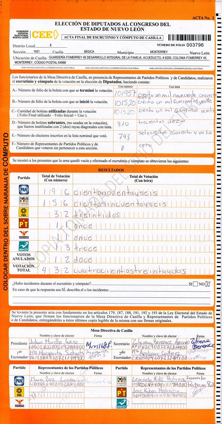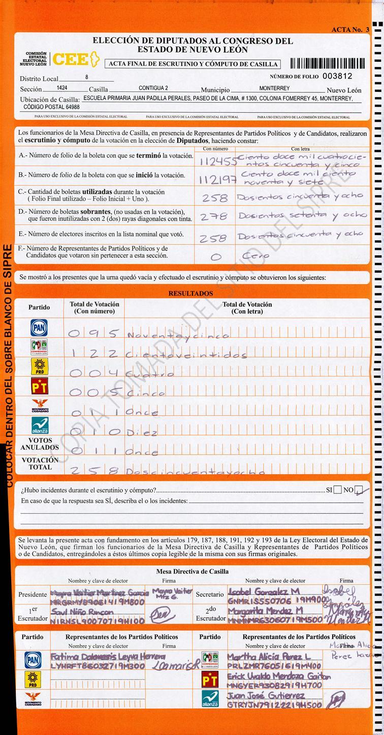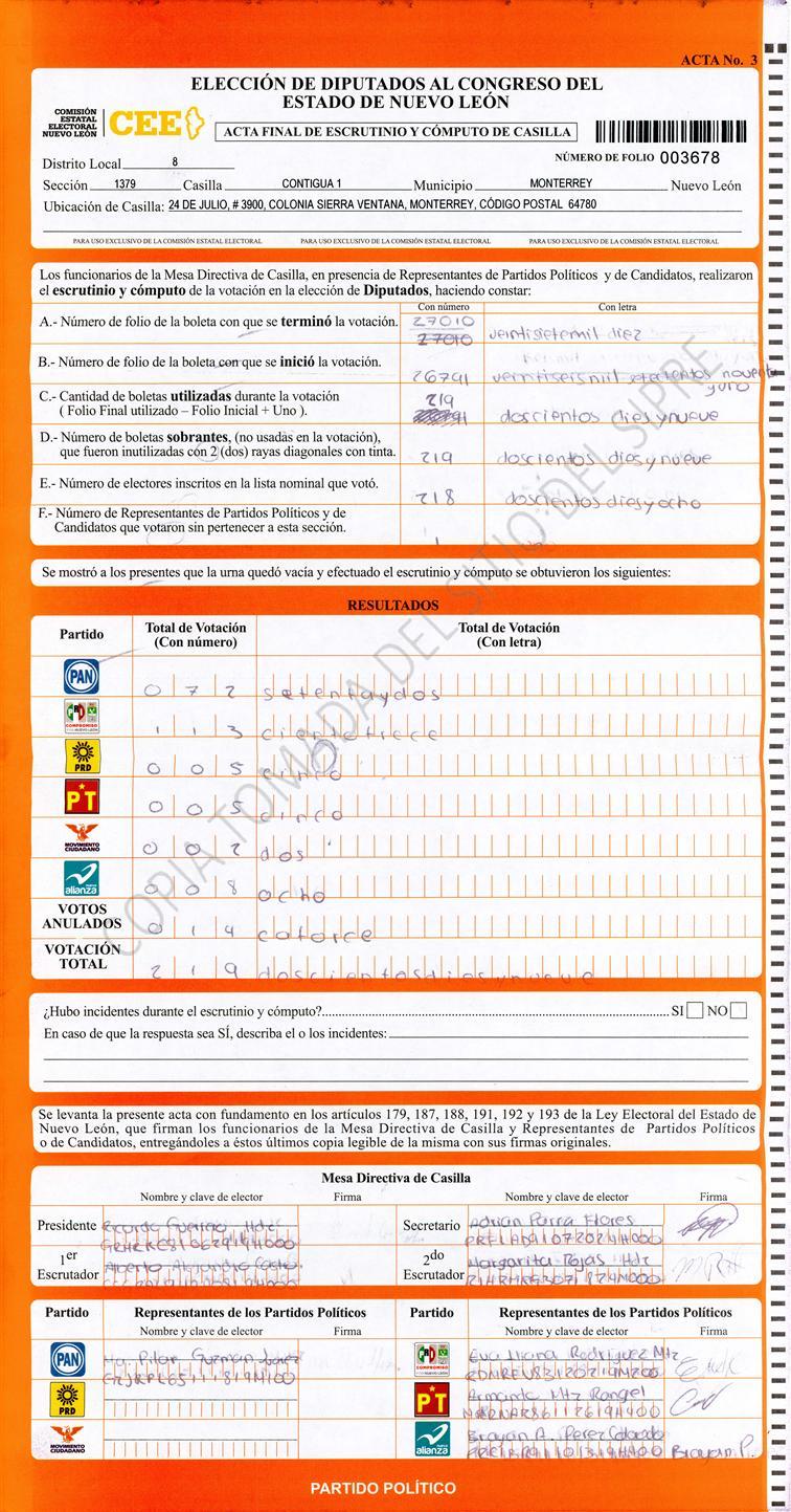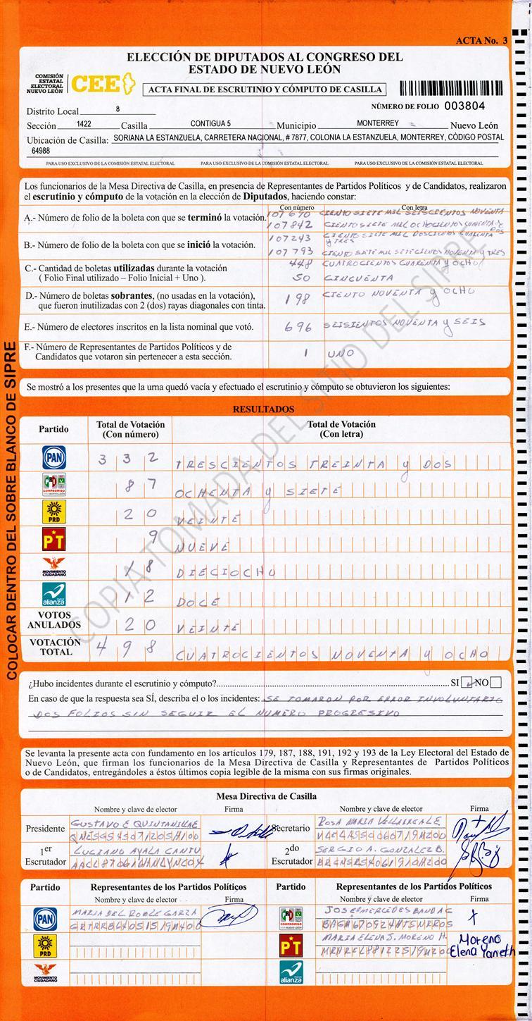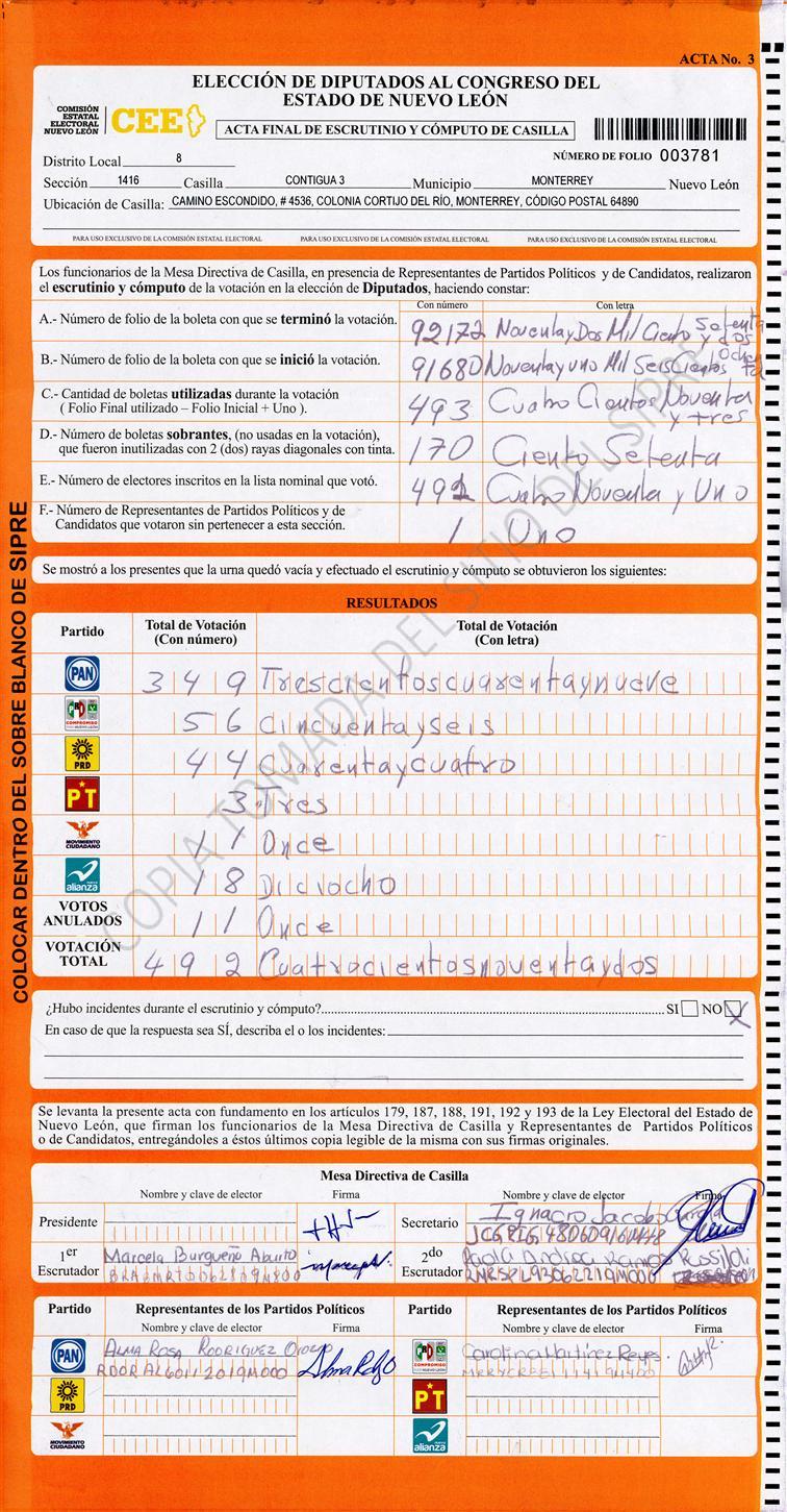 , (8) Copiado Movido , (9) Con Signos Inválidos , (10) Excede Lista Nominal , (11) Otra |