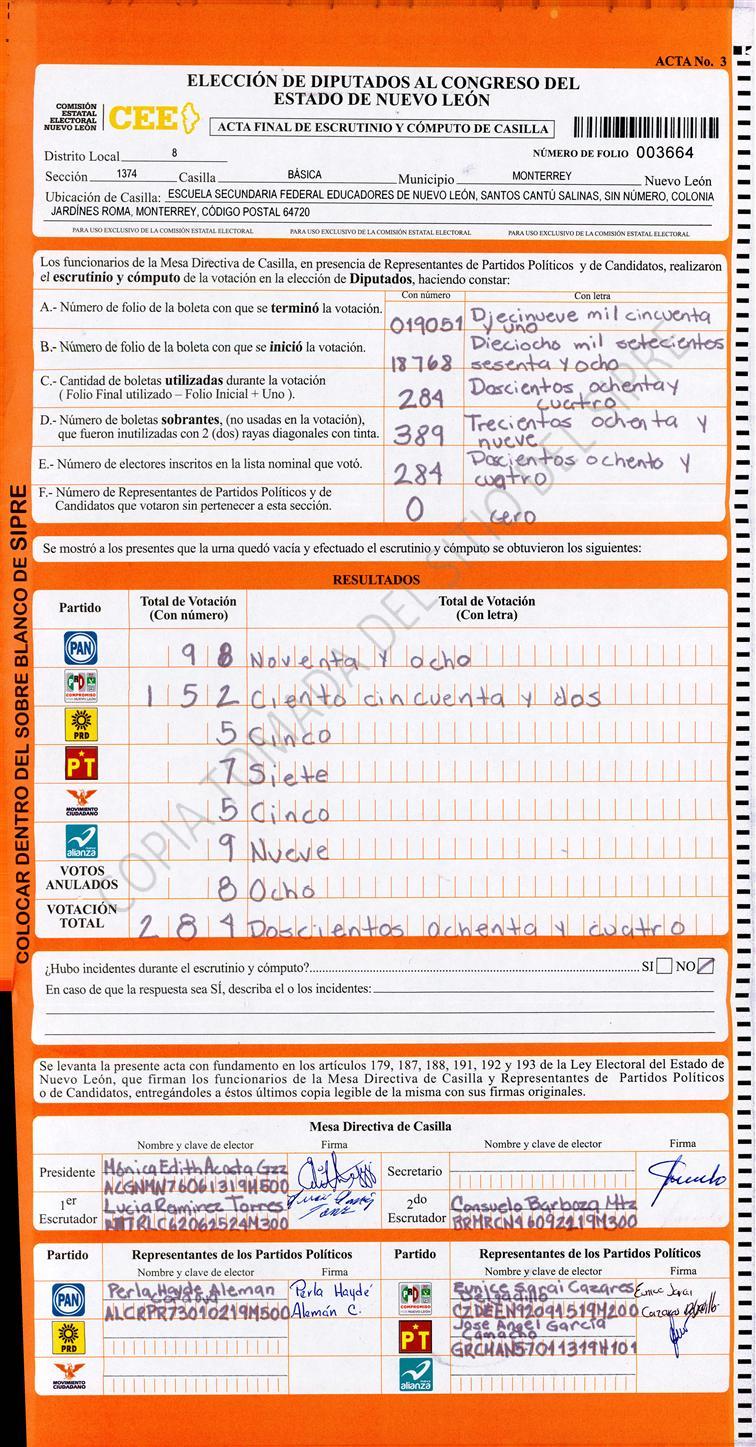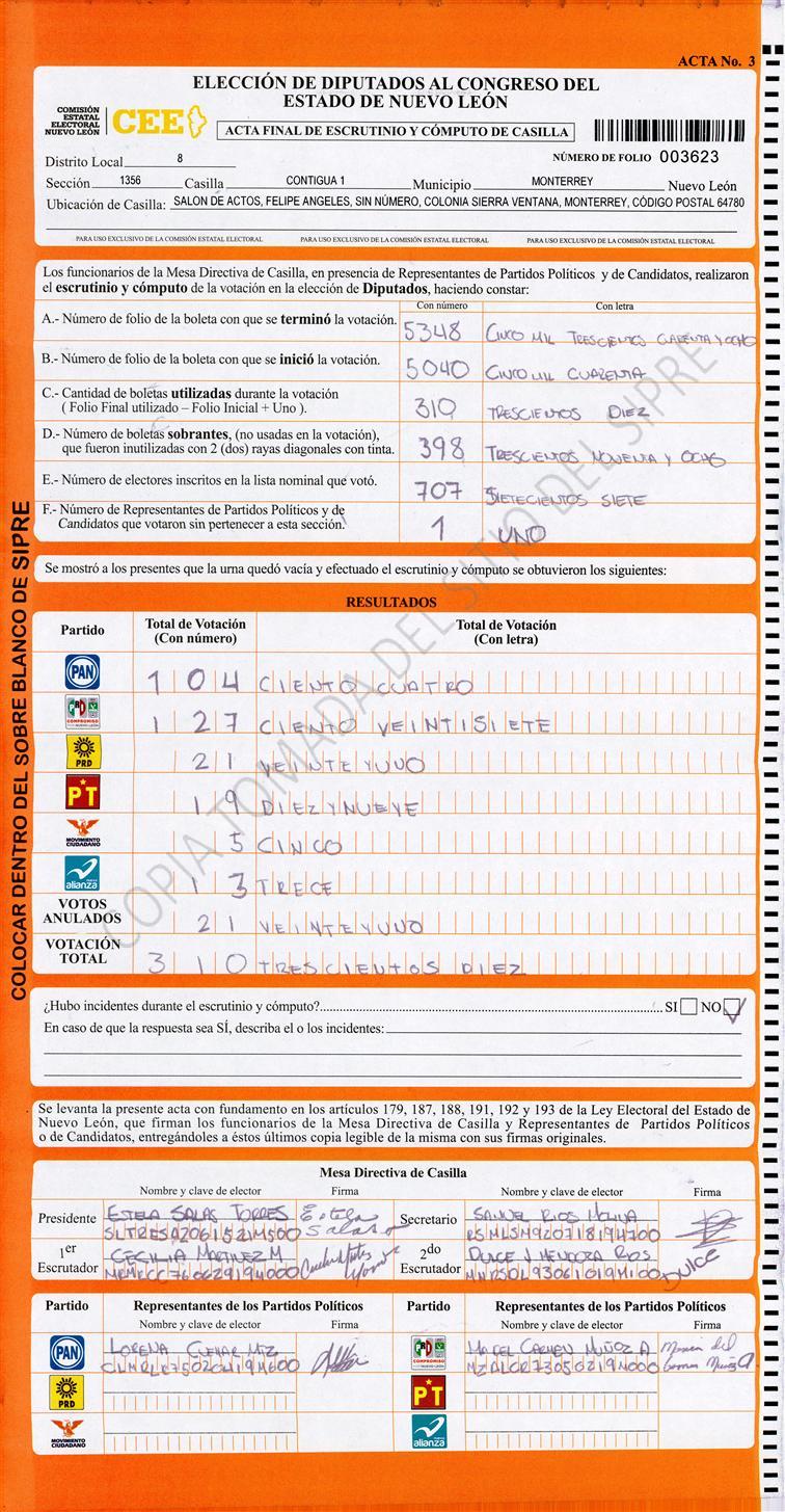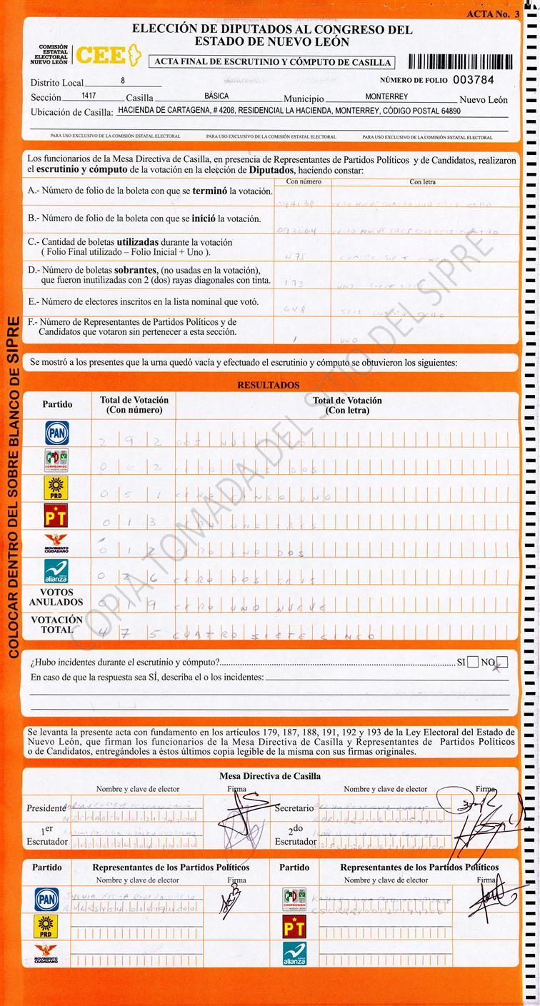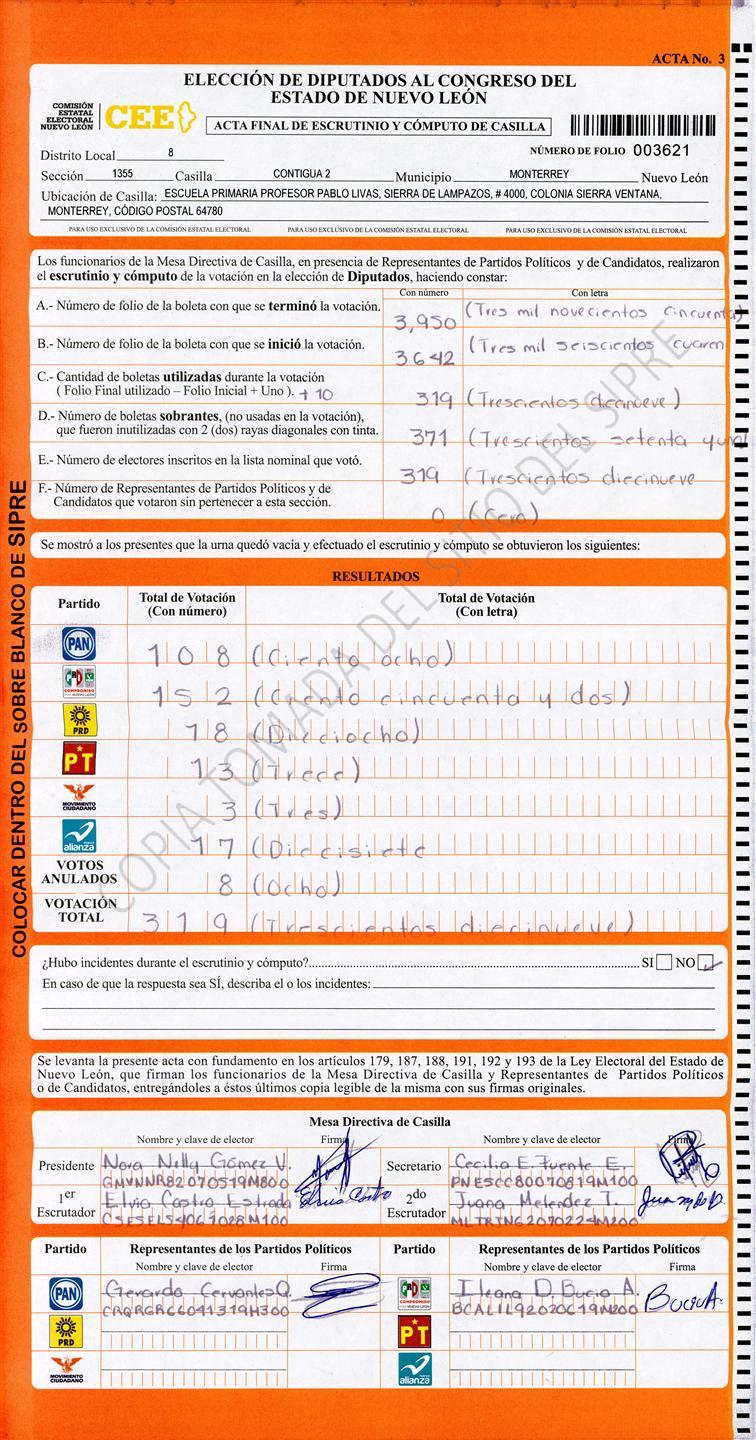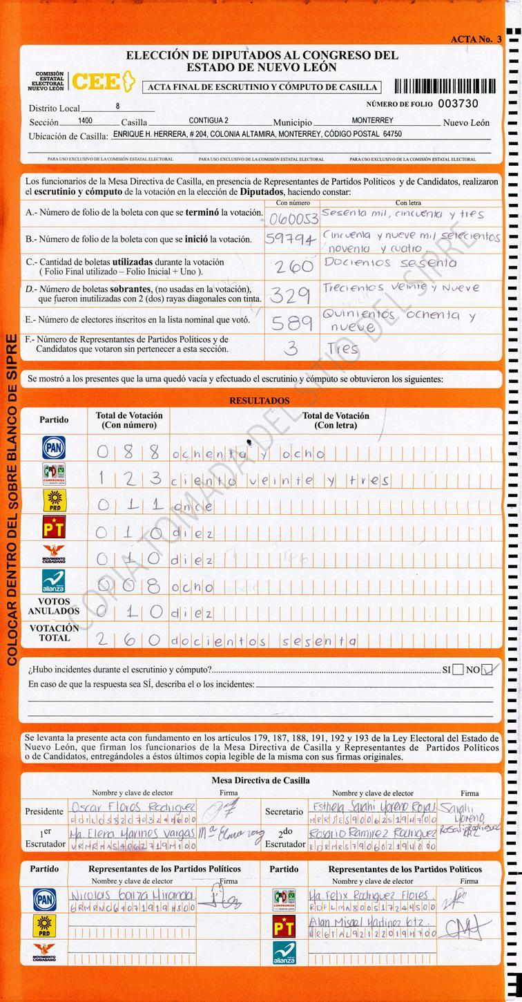 , (8) Copiado Movido , (9) Con Signos Inválidos , (10) Excede Lista Nominal , (11) Otra |