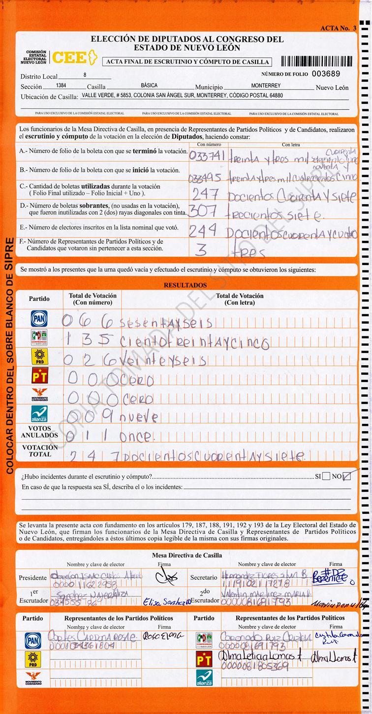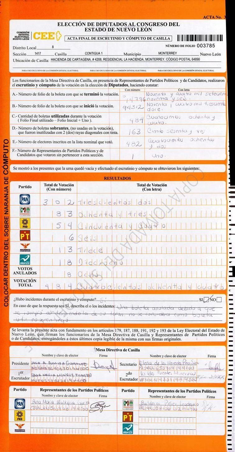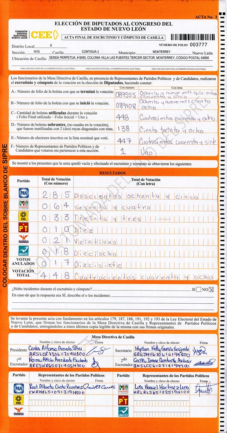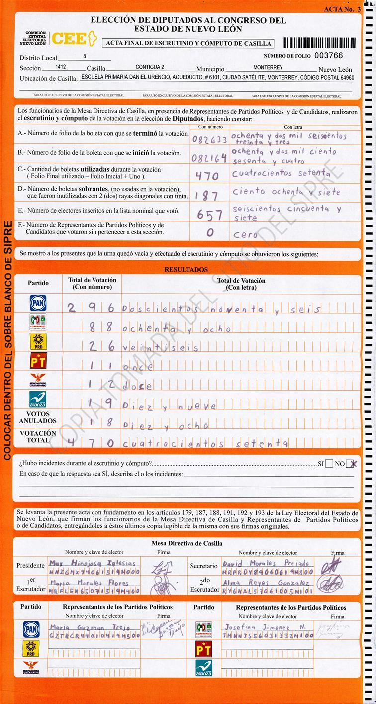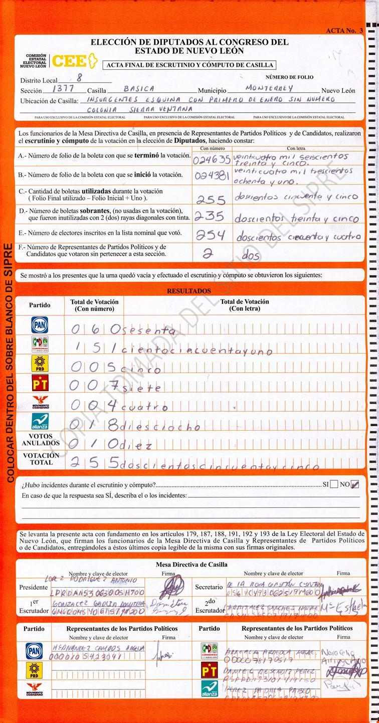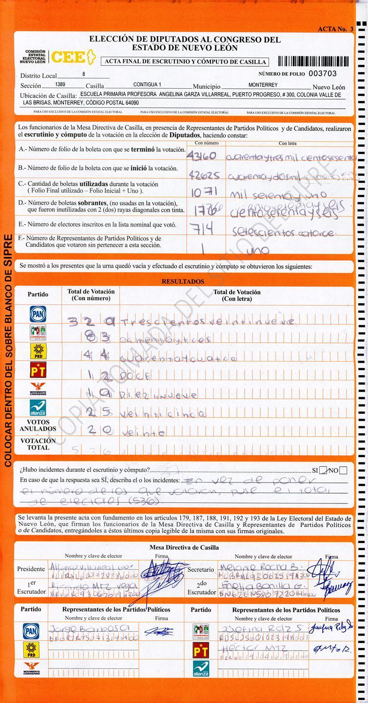 , (8) Copiado Movido , (9) Con Signos Inválidos , (10) Excede Lista Nominal , (11) Otra |