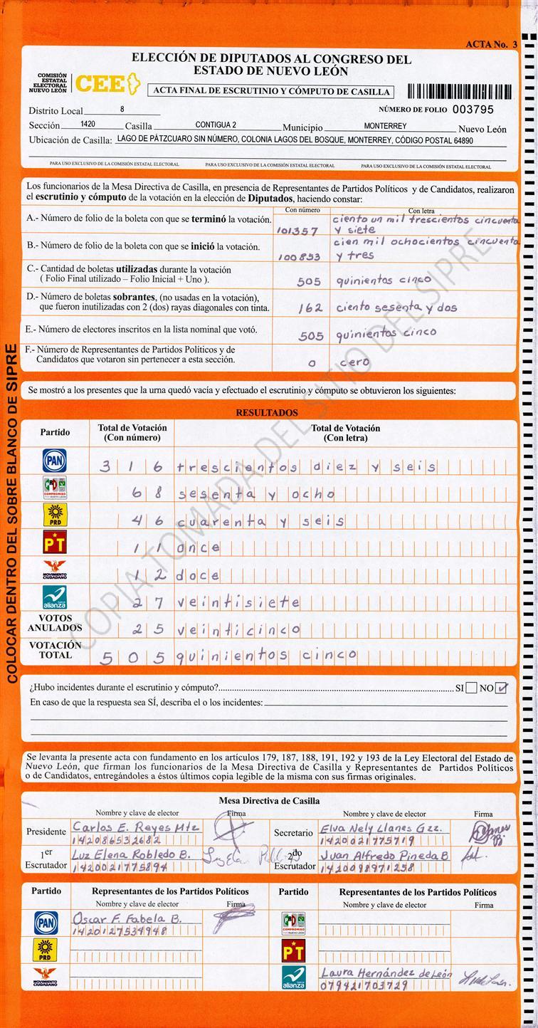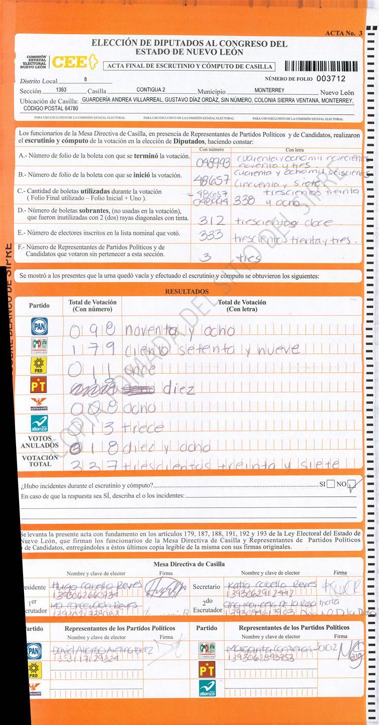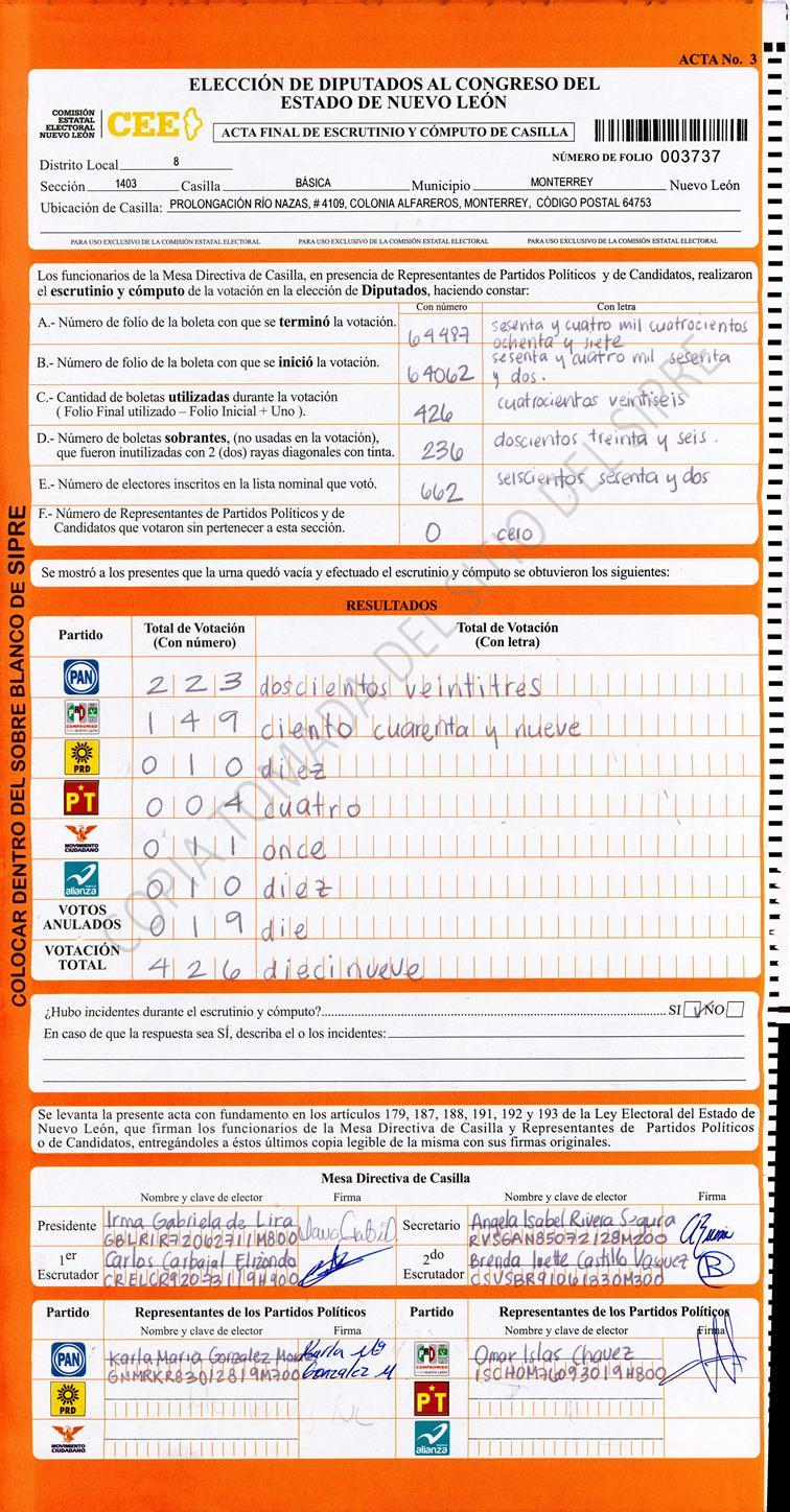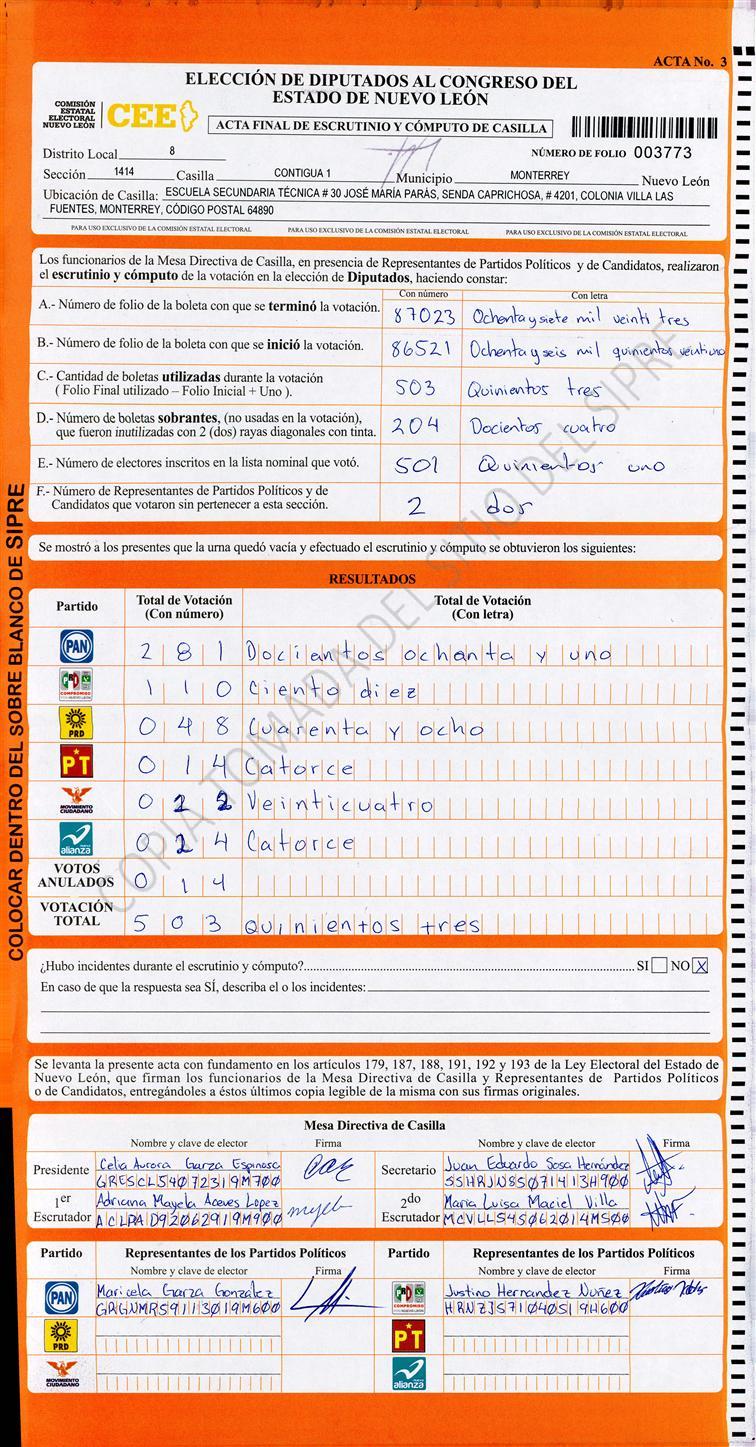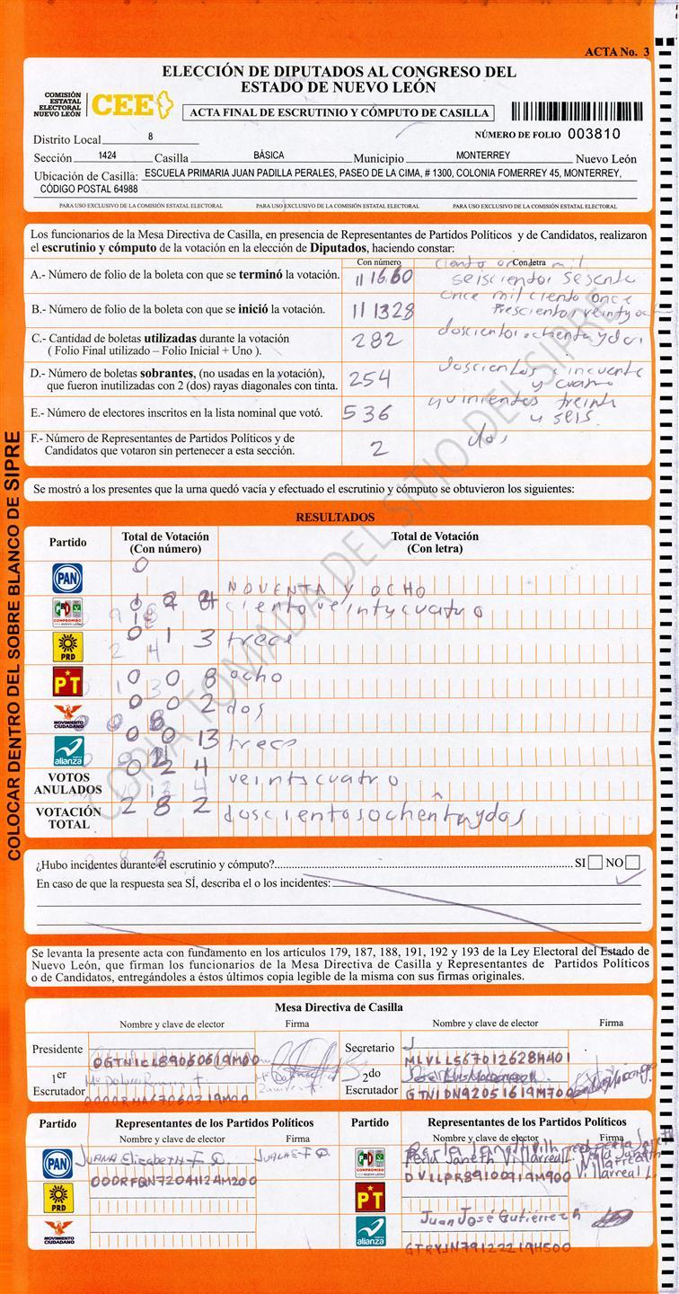 , (8) Copiado Movido , (9) Con Signos Inválidos , (10) Excede Lista Nominal , (11) Otra |