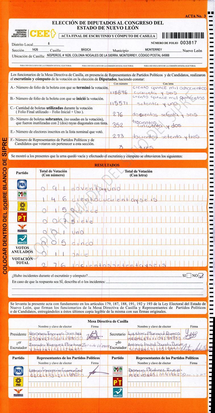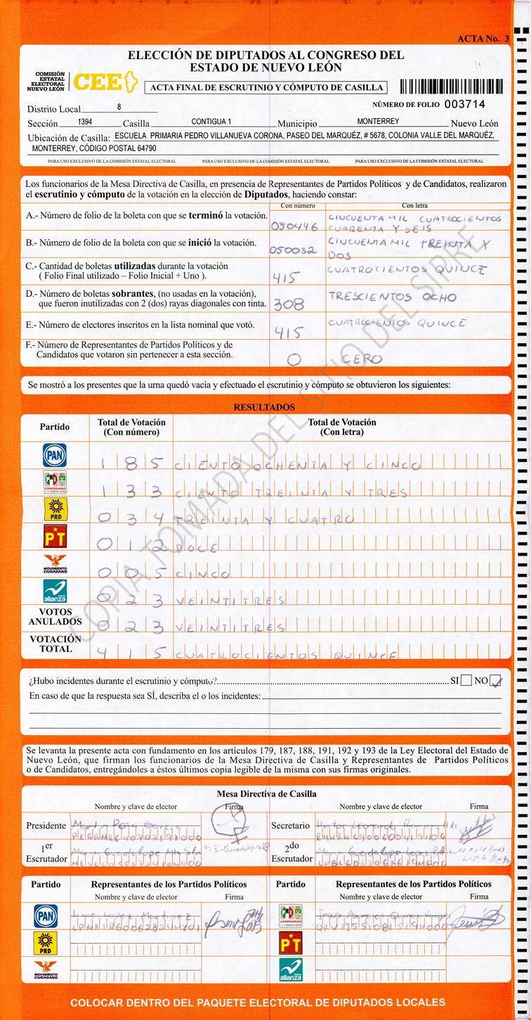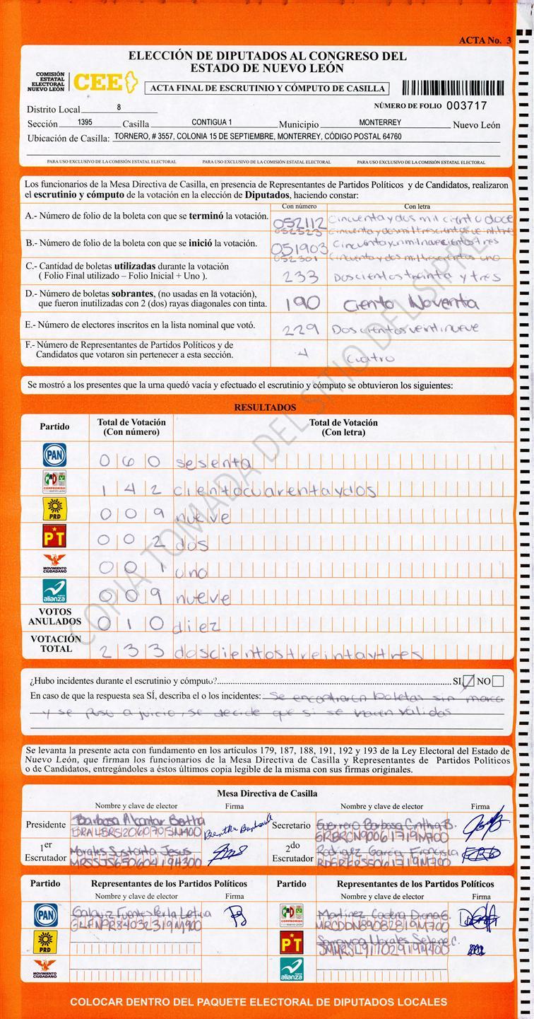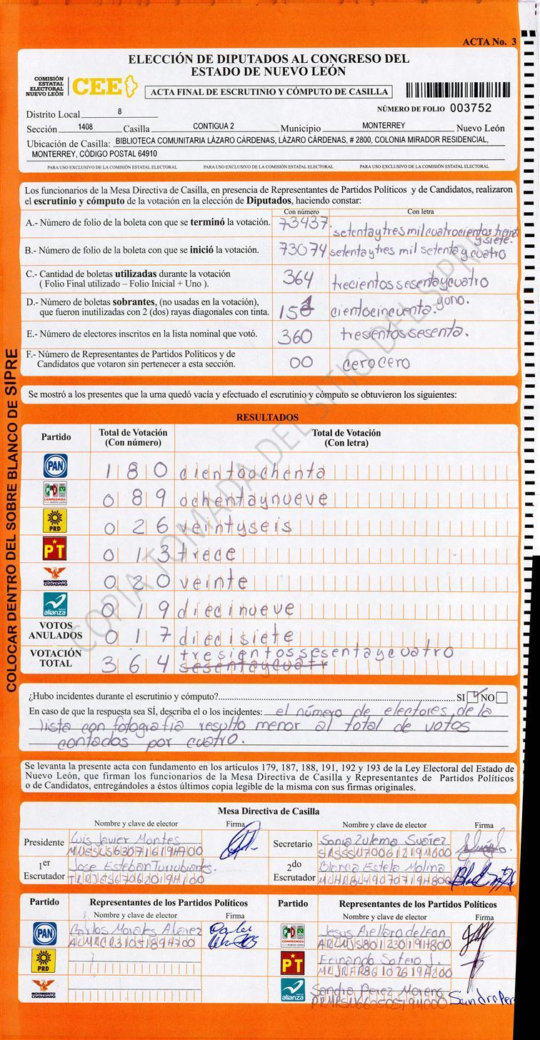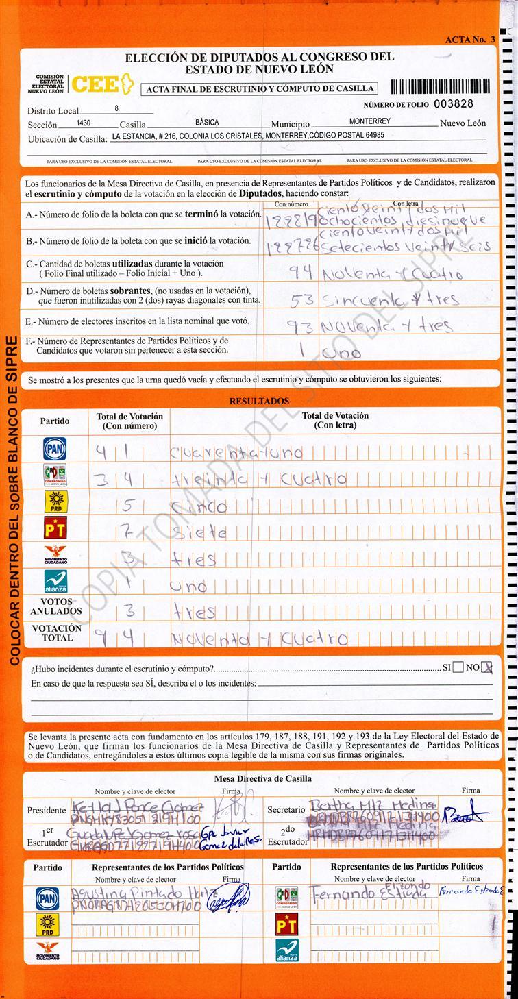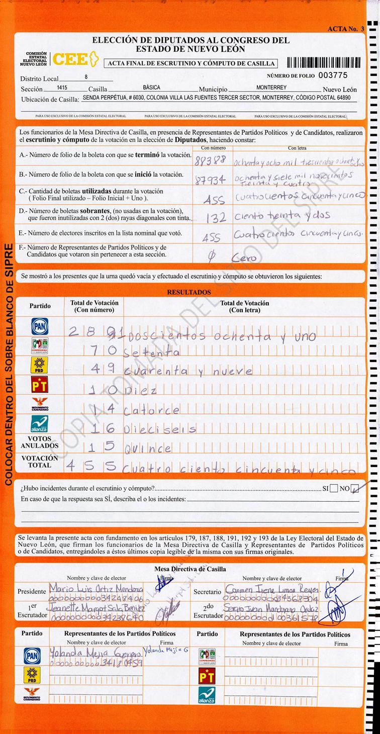 , (8) Copiado Movido , (9) Con Signos Inválidos , (10) Excede Lista Nominal , (11) Otra |