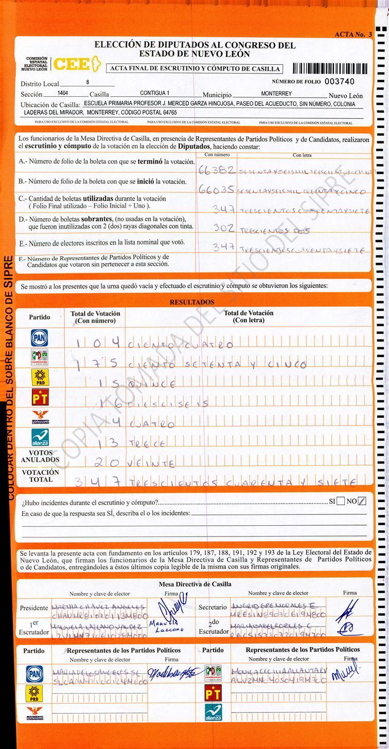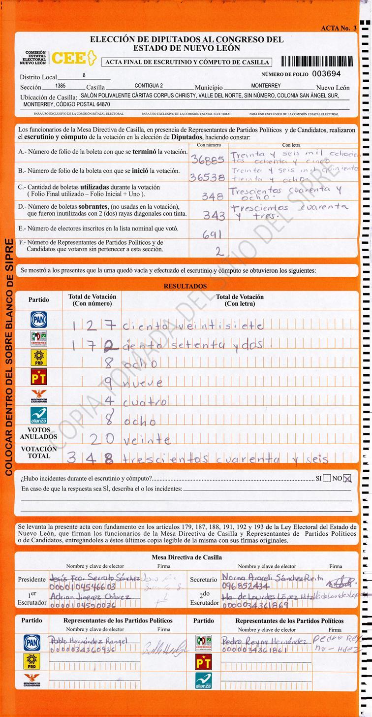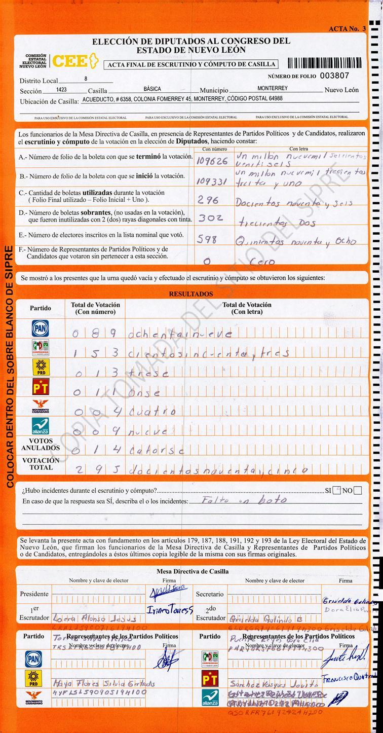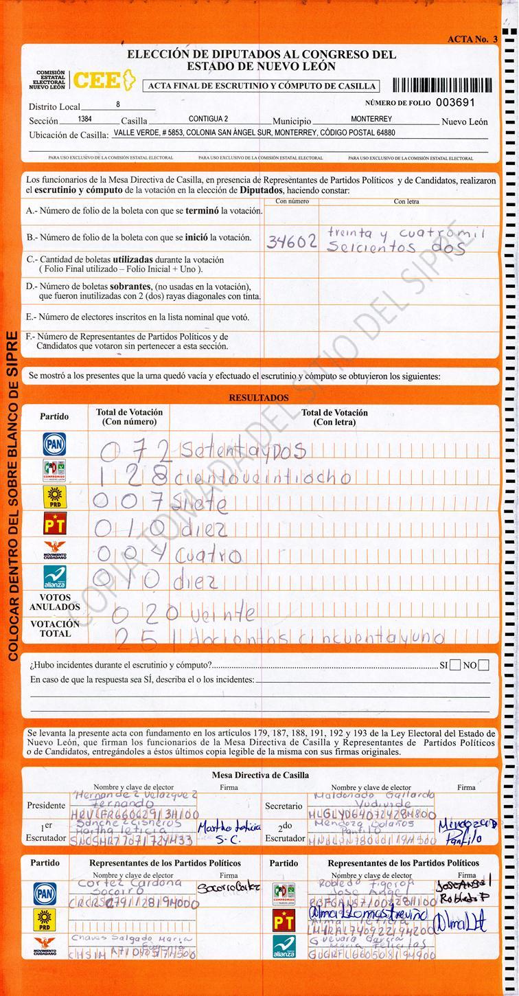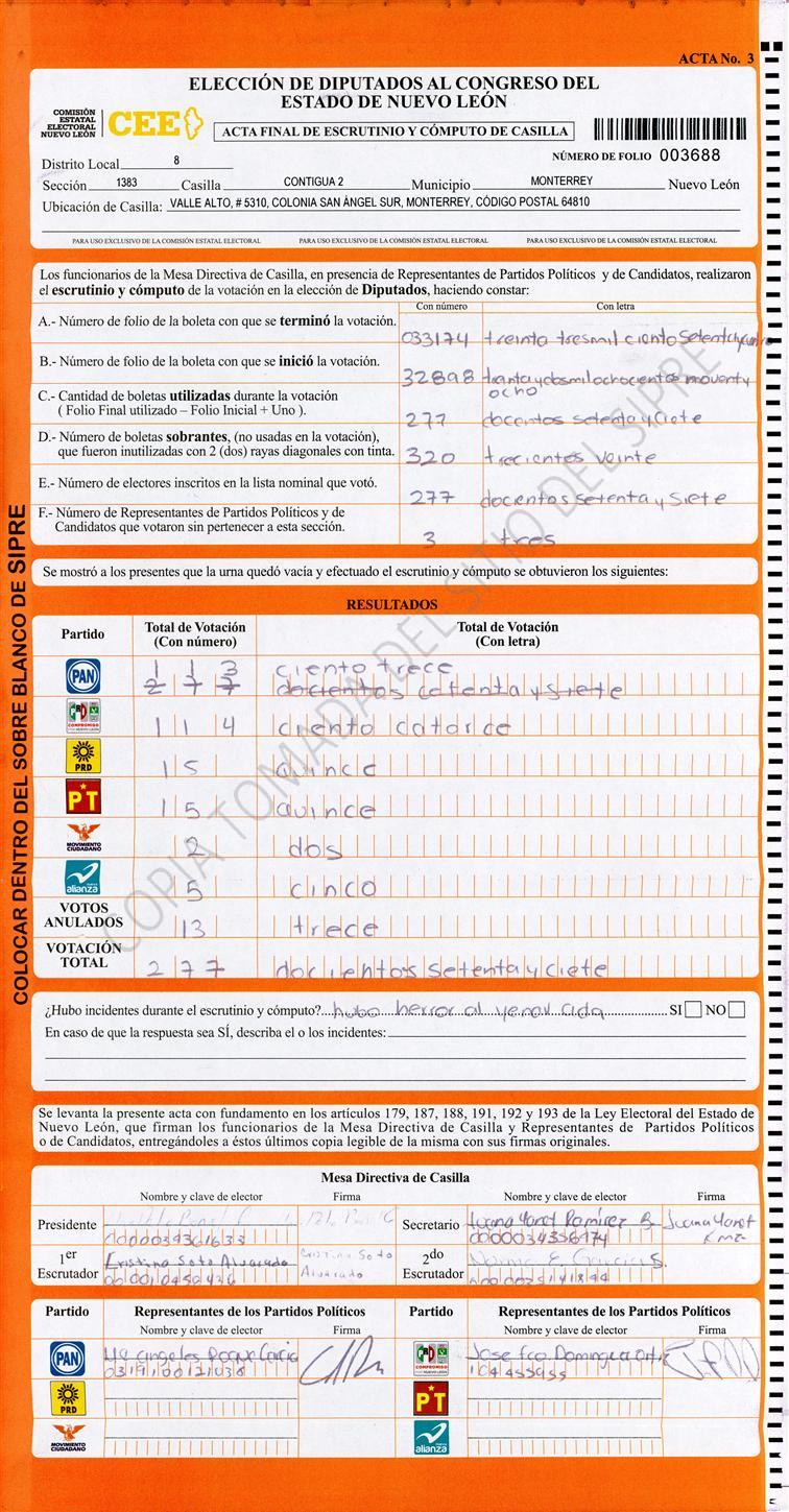 , (8) Copiado Movido , (9) Con Signos Inválidos , (10) Excede Lista Nominal , (11) Otra |
