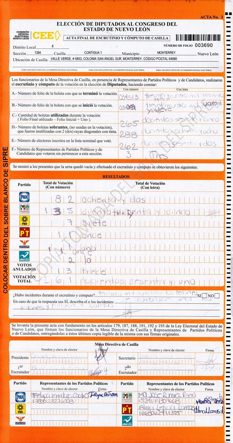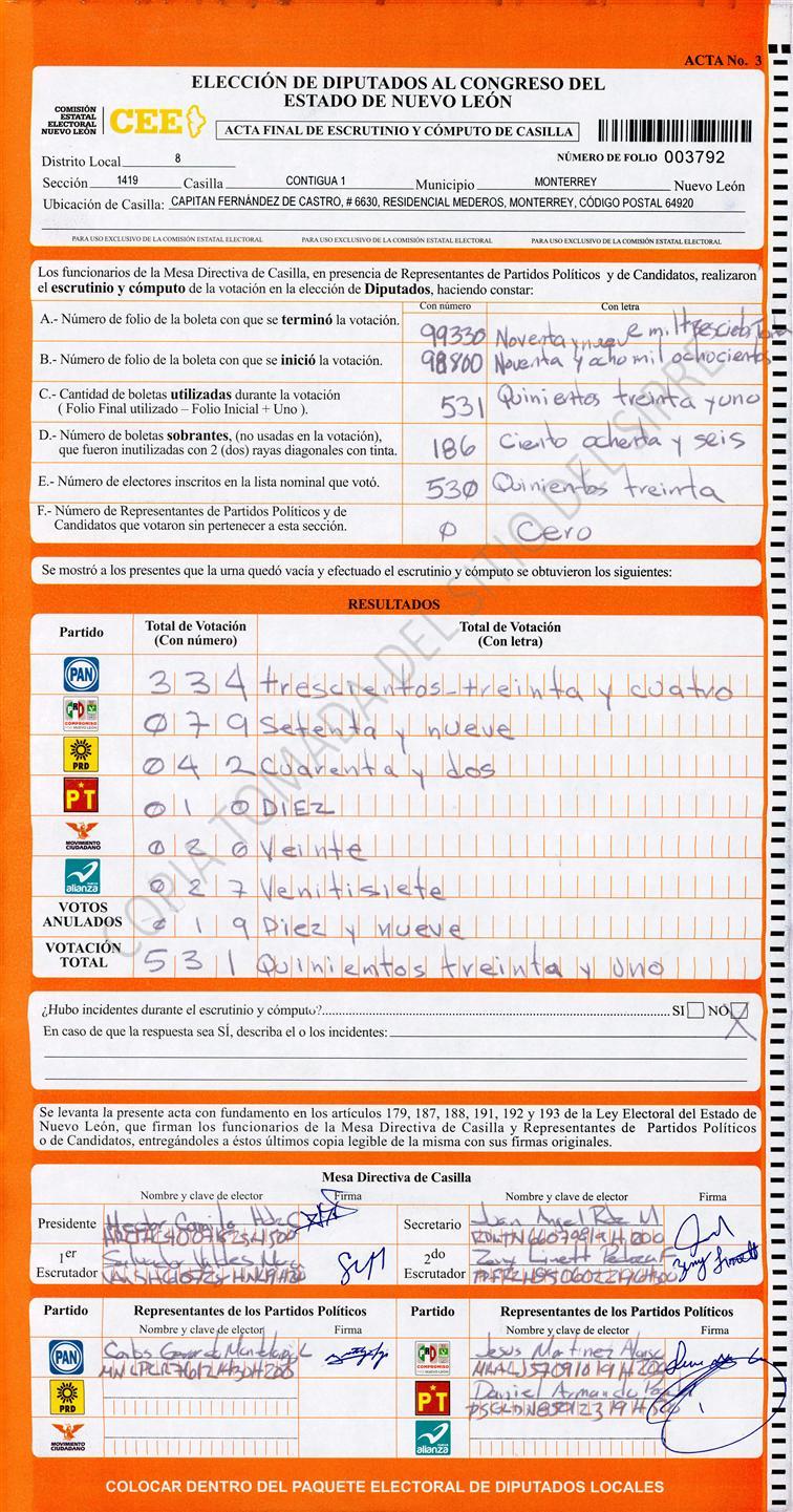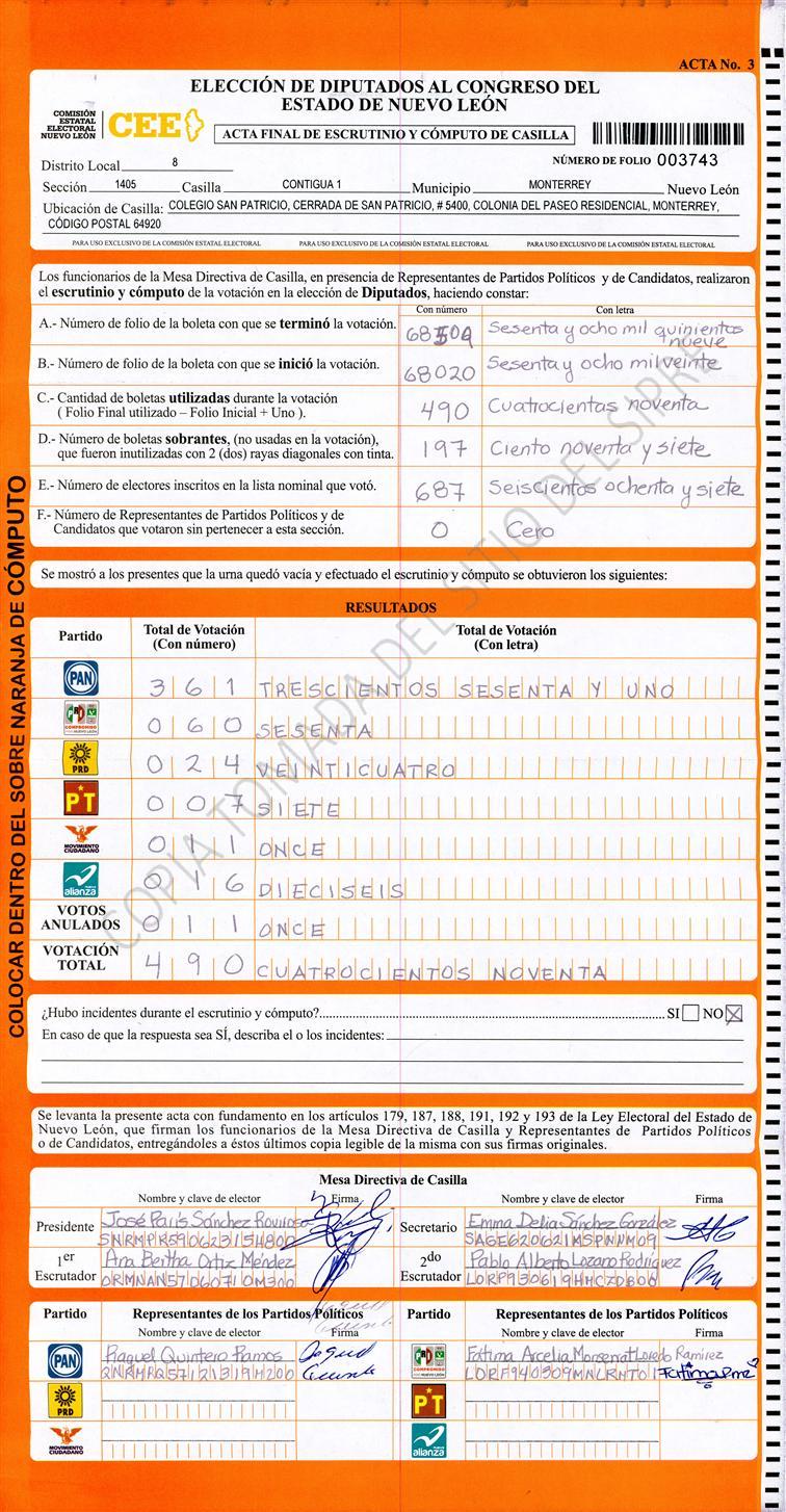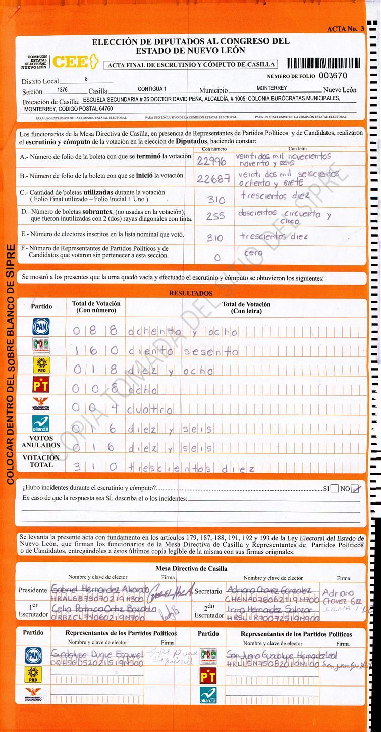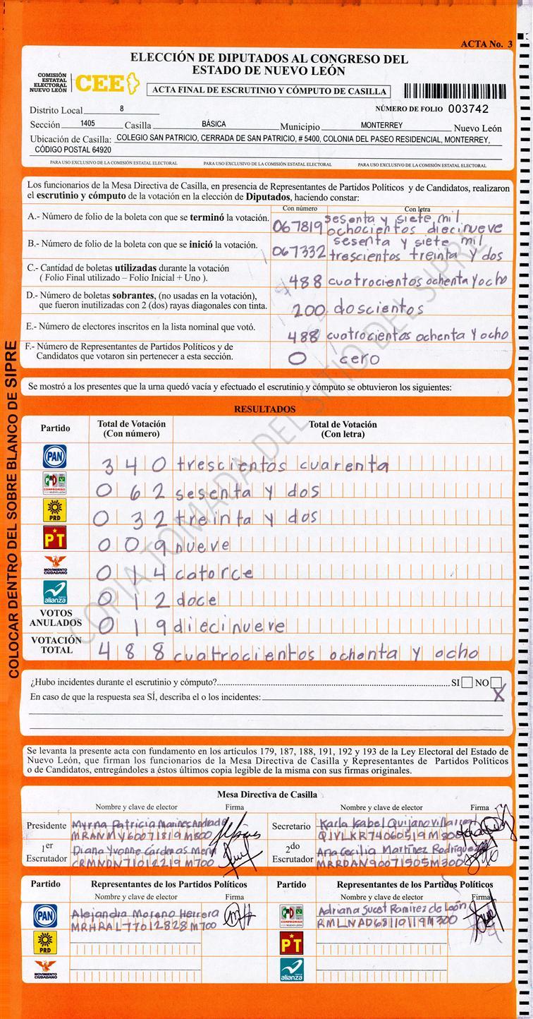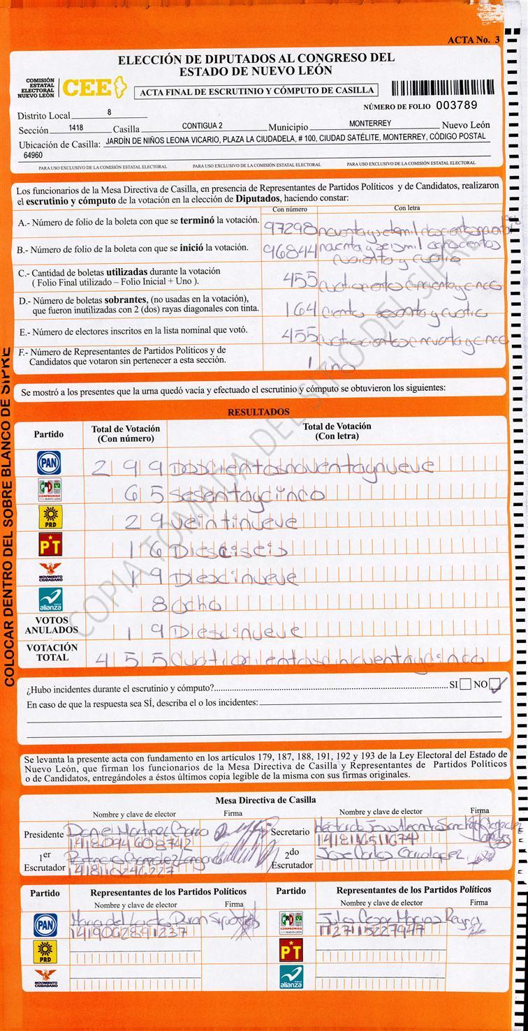 , (8) Copiado Movido , (9) Con Signos Inválidos , (10) Excede Lista Nominal , (11) Otra |