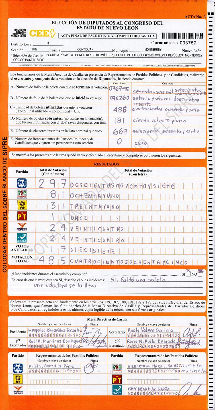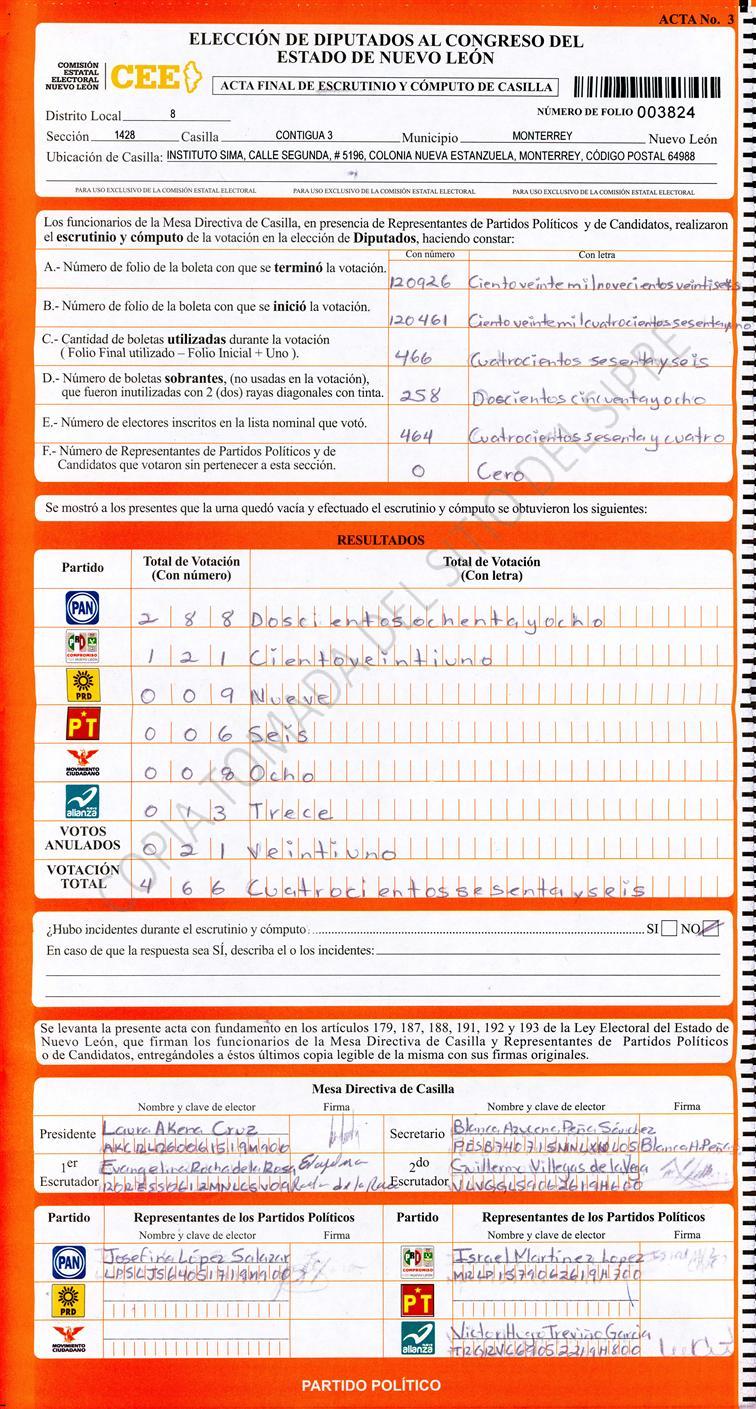 | Resultado | Casillas | Gráfica de Votación | Gráfica de Porcentajes |