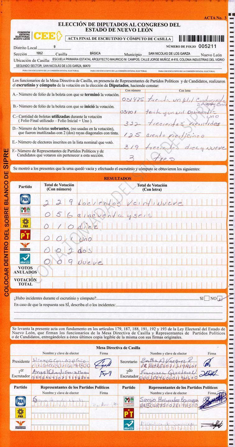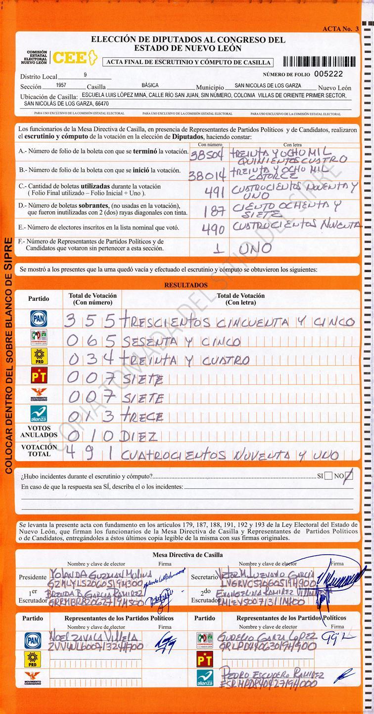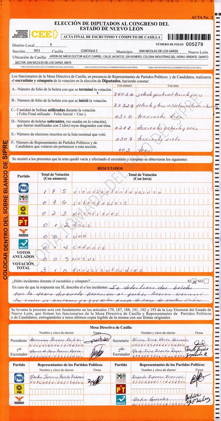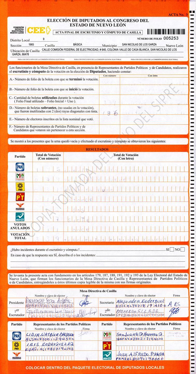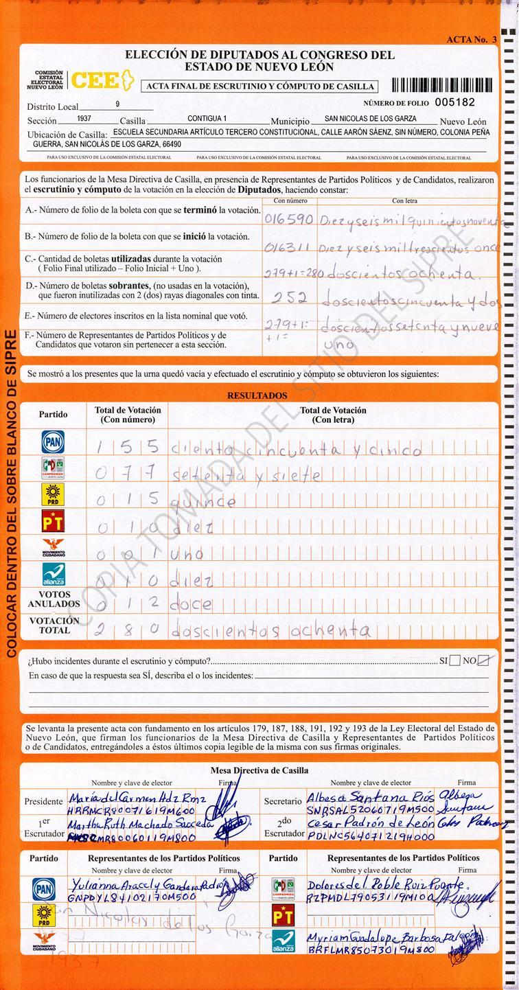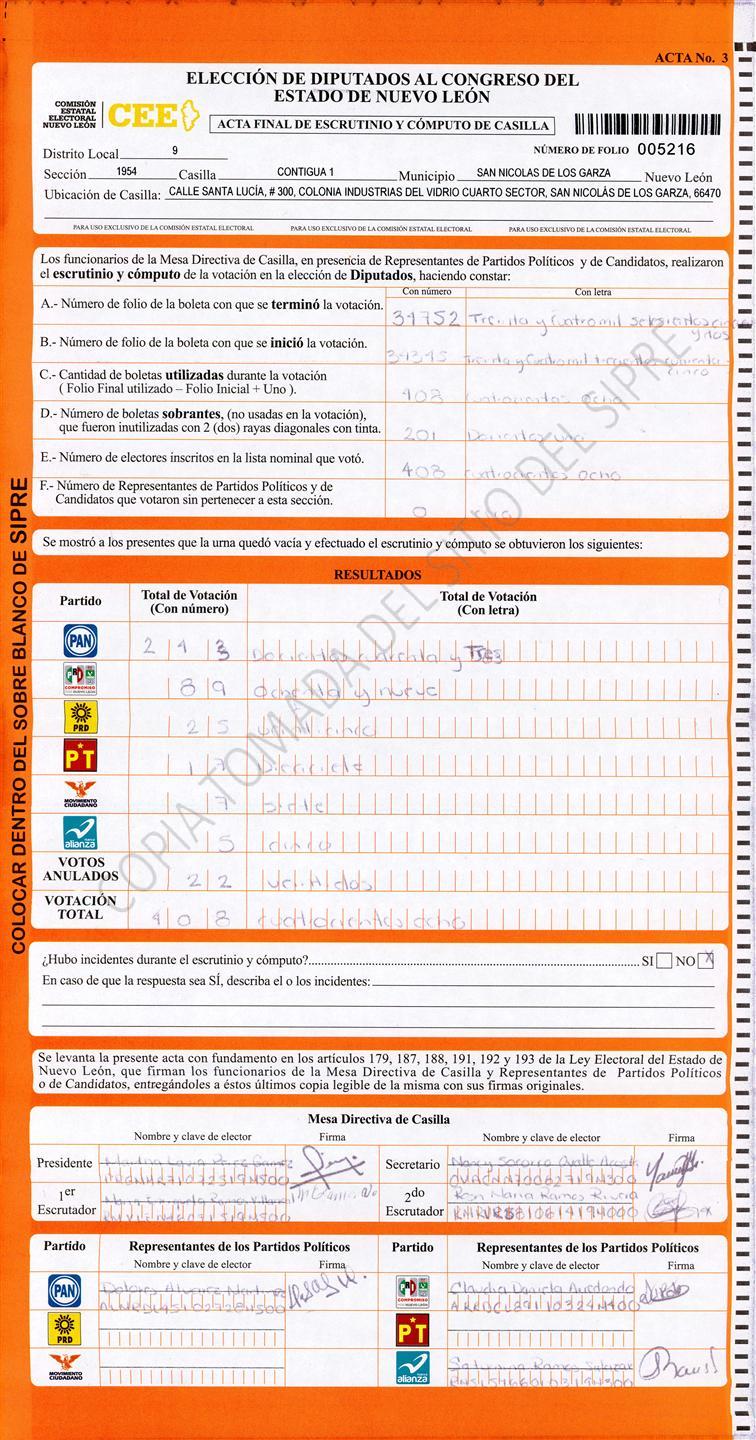 , (8) Copiado Movido , (9) Con Signos Inválidos , (10) Excede Lista Nominal , (11) Otra |