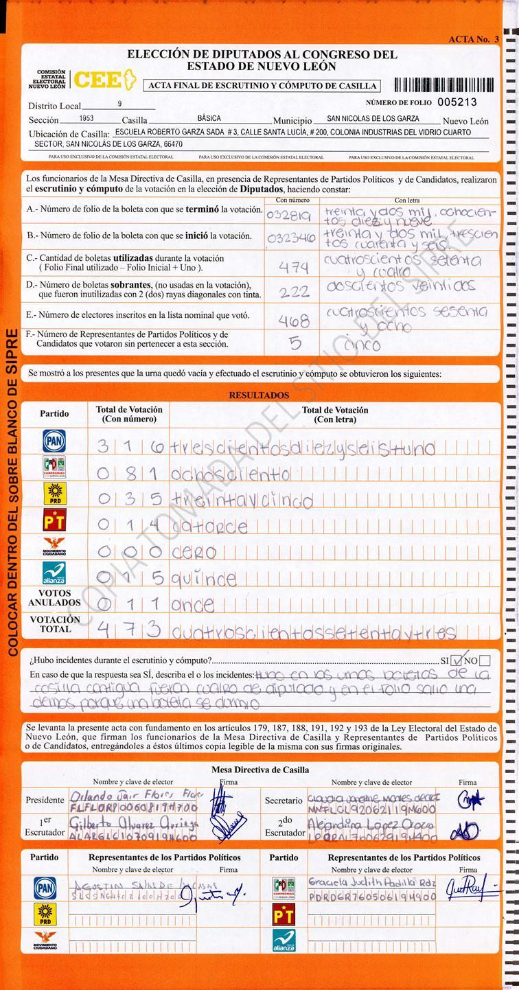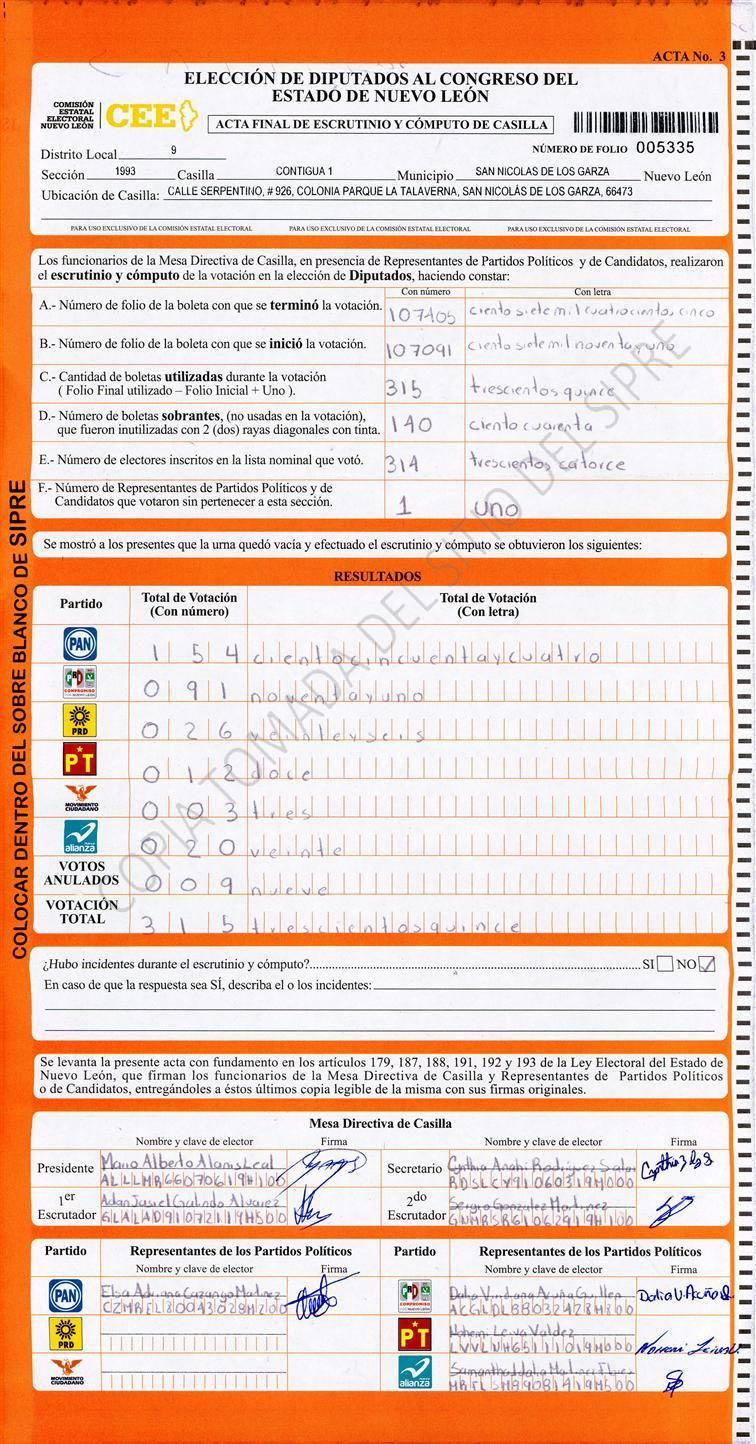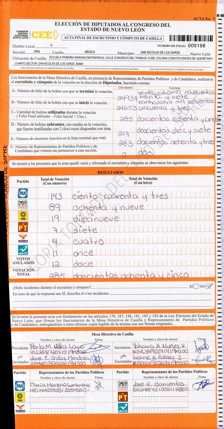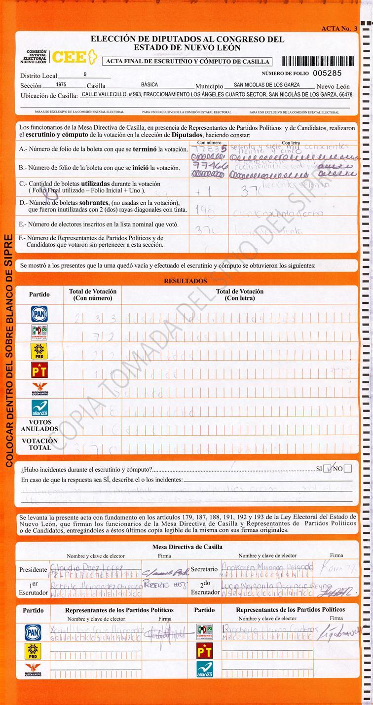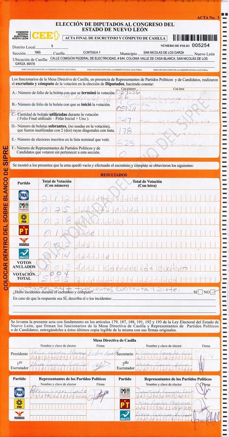, (8) Copiado Movido , (9) Con Signos Inválidos , (10) Excede Lista Nominal , (11) Otra |