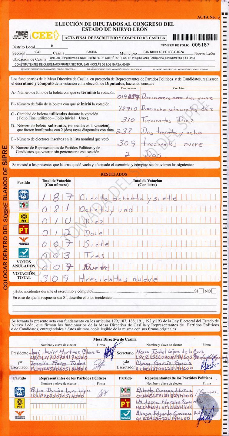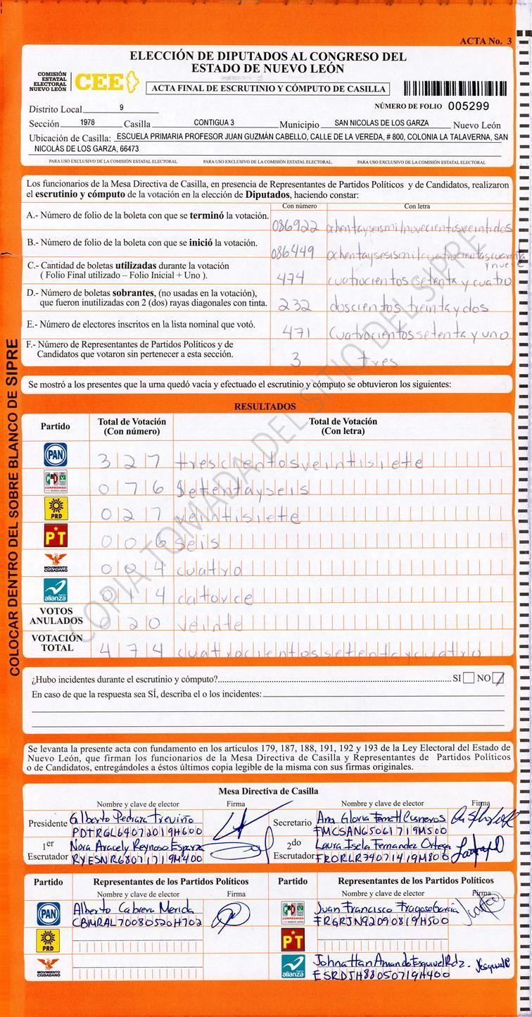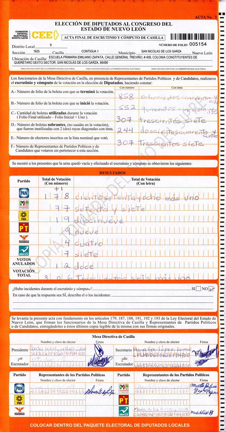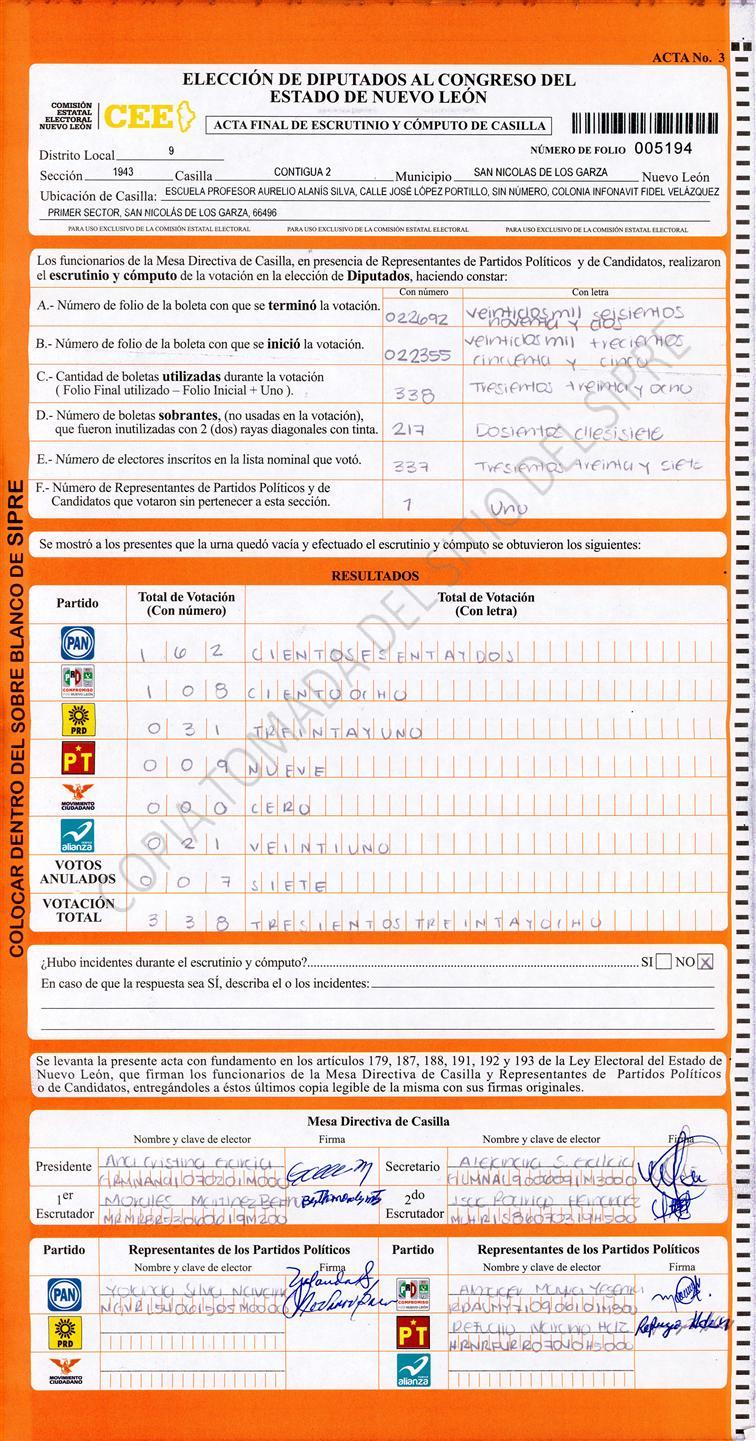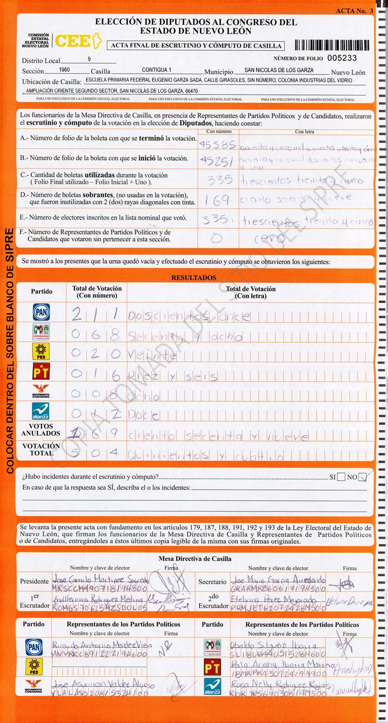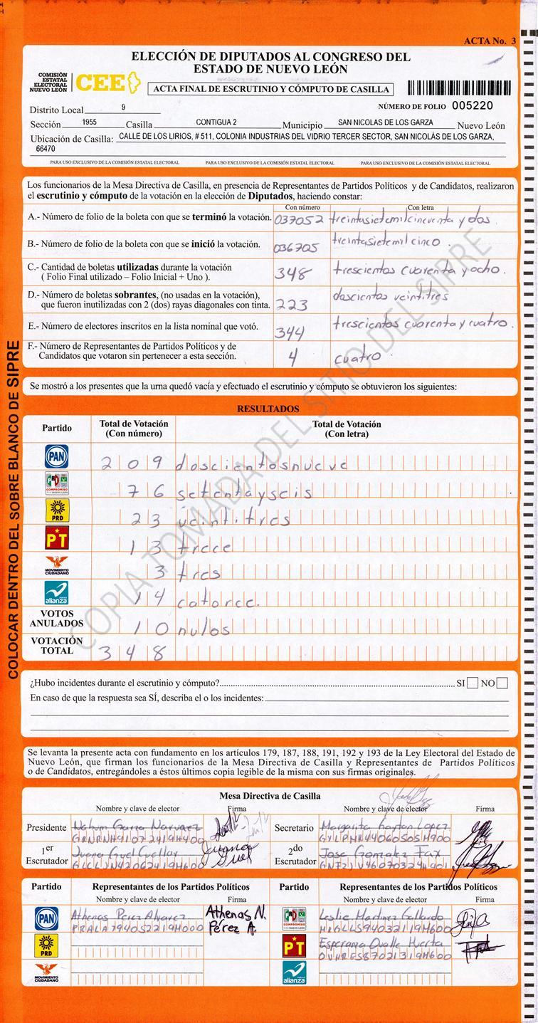 , (8) Copiado Movido , (9) Con Signos Inválidos , (10) Excede Lista Nominal , (11) Otra |