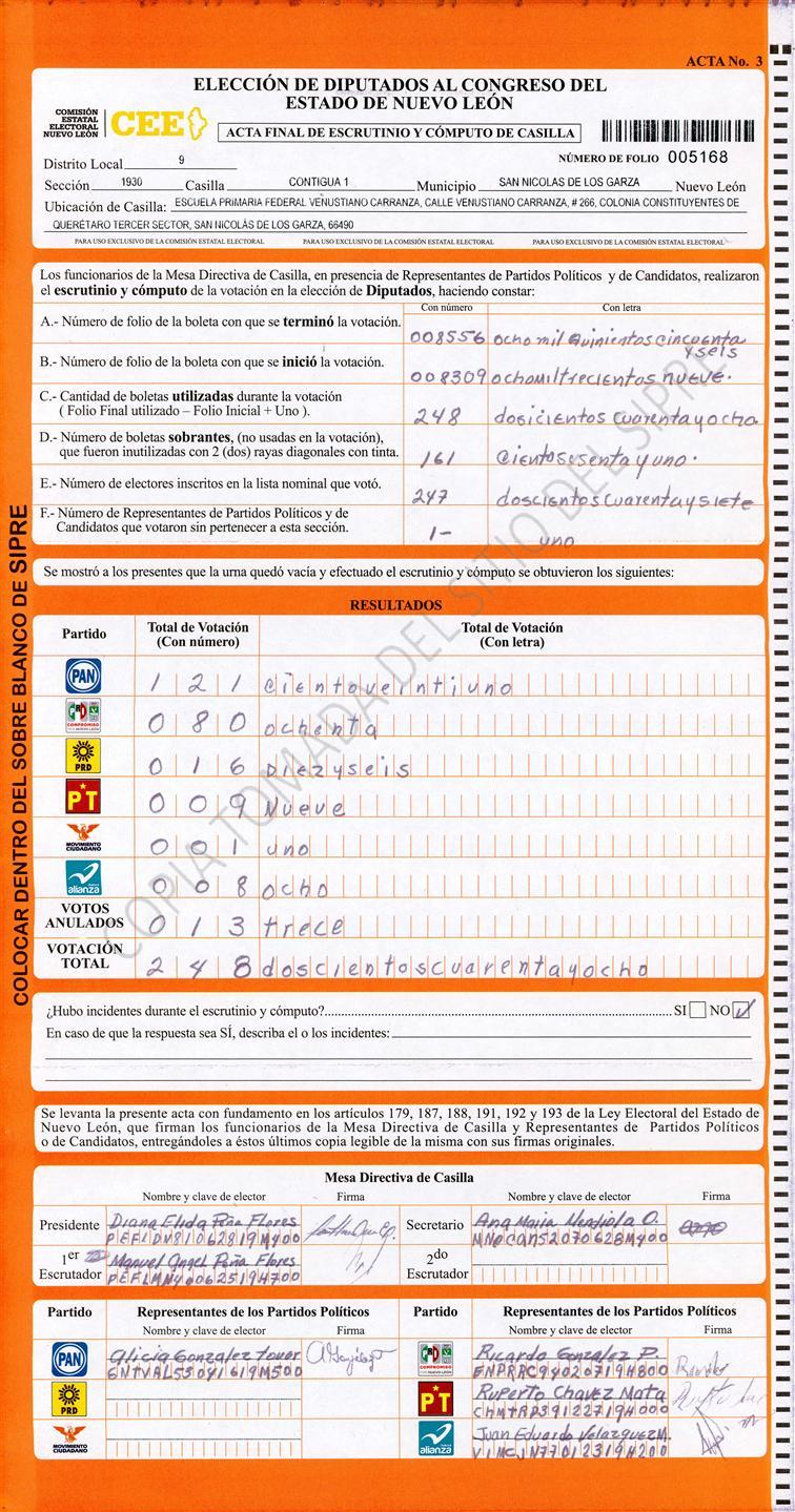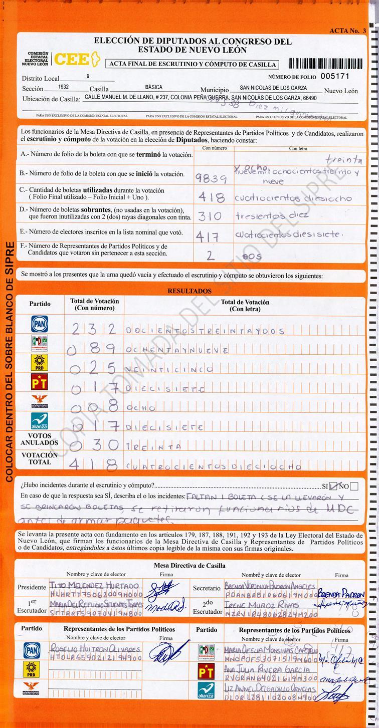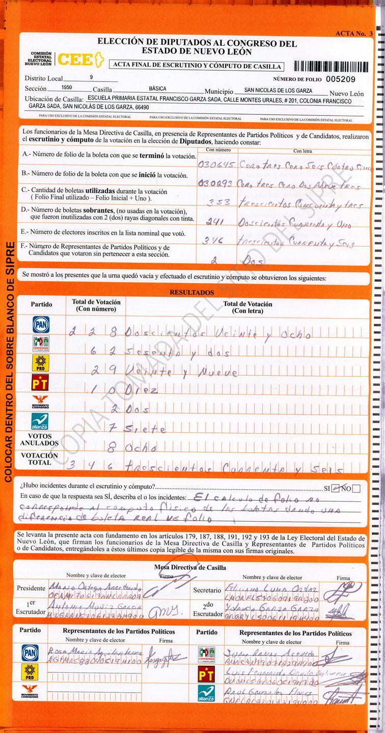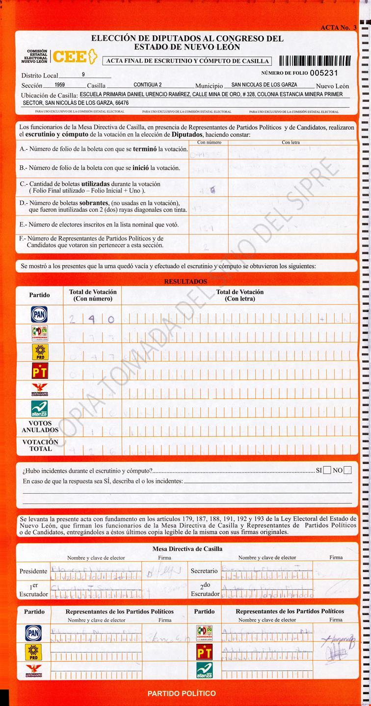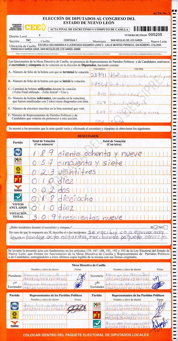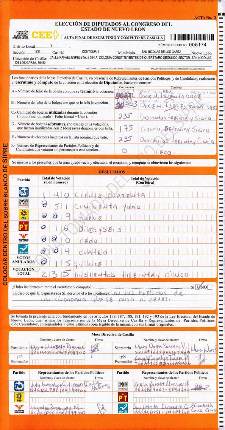 , (8) Copiado Movido , (9) Con Signos Inválidos , (10) Excede Lista Nominal , (11) Otra |