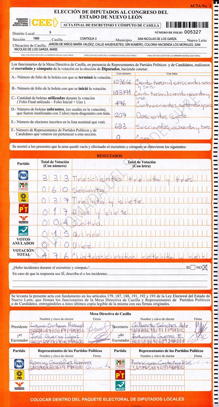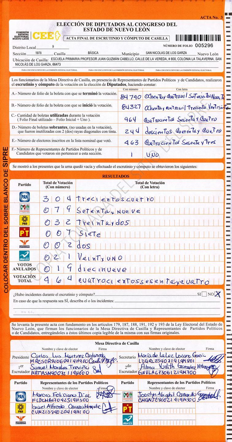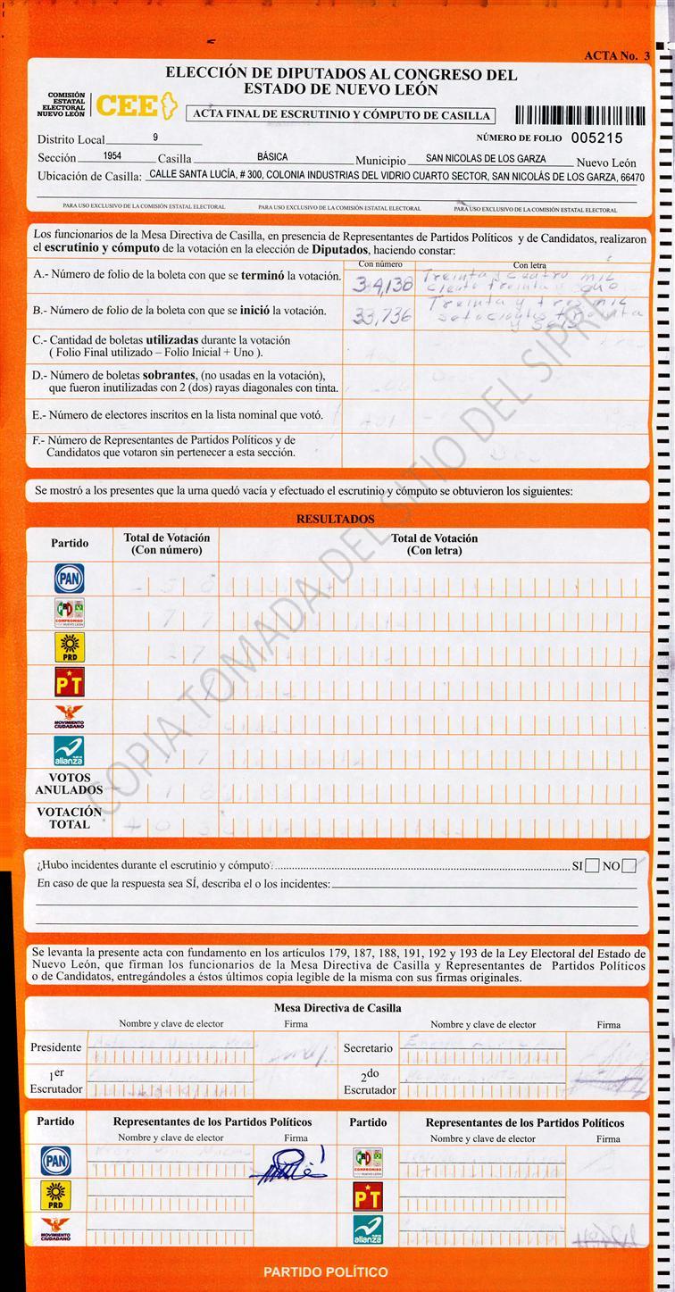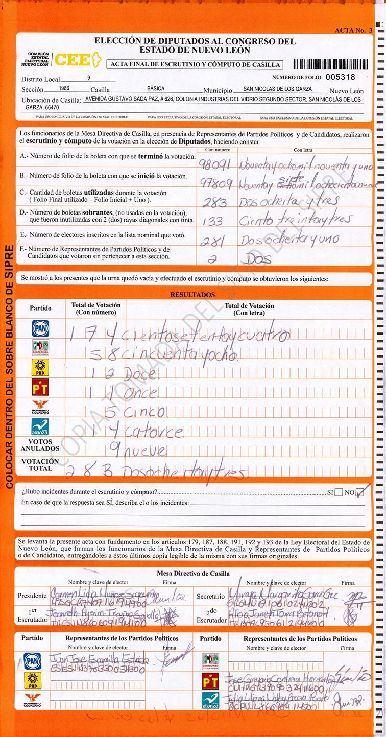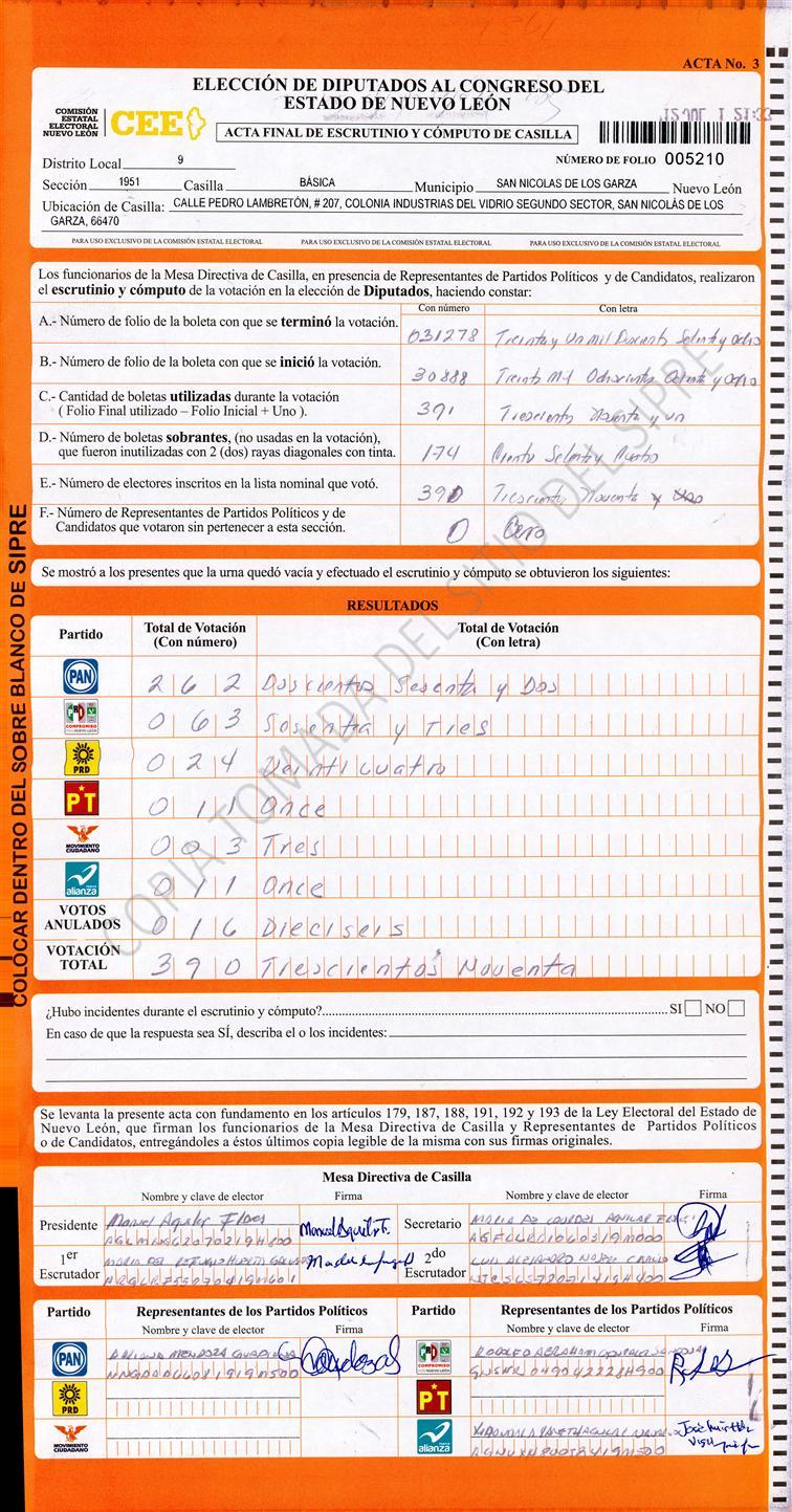 , (8) Copiado Movido , (9) Con Signos Inválidos , (10) Excede Lista Nominal , (11) Otra |