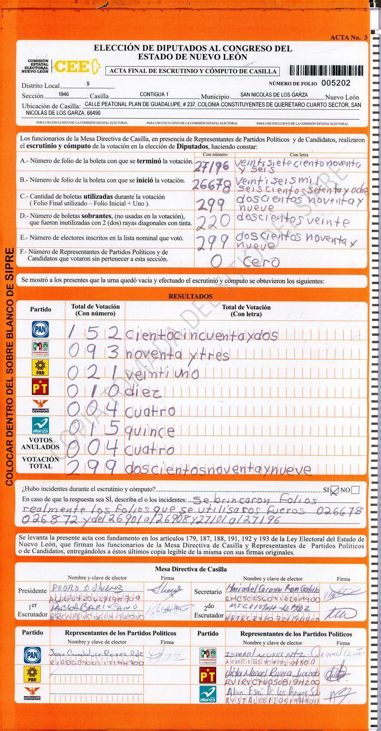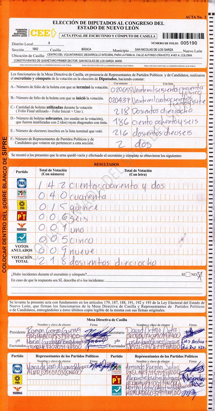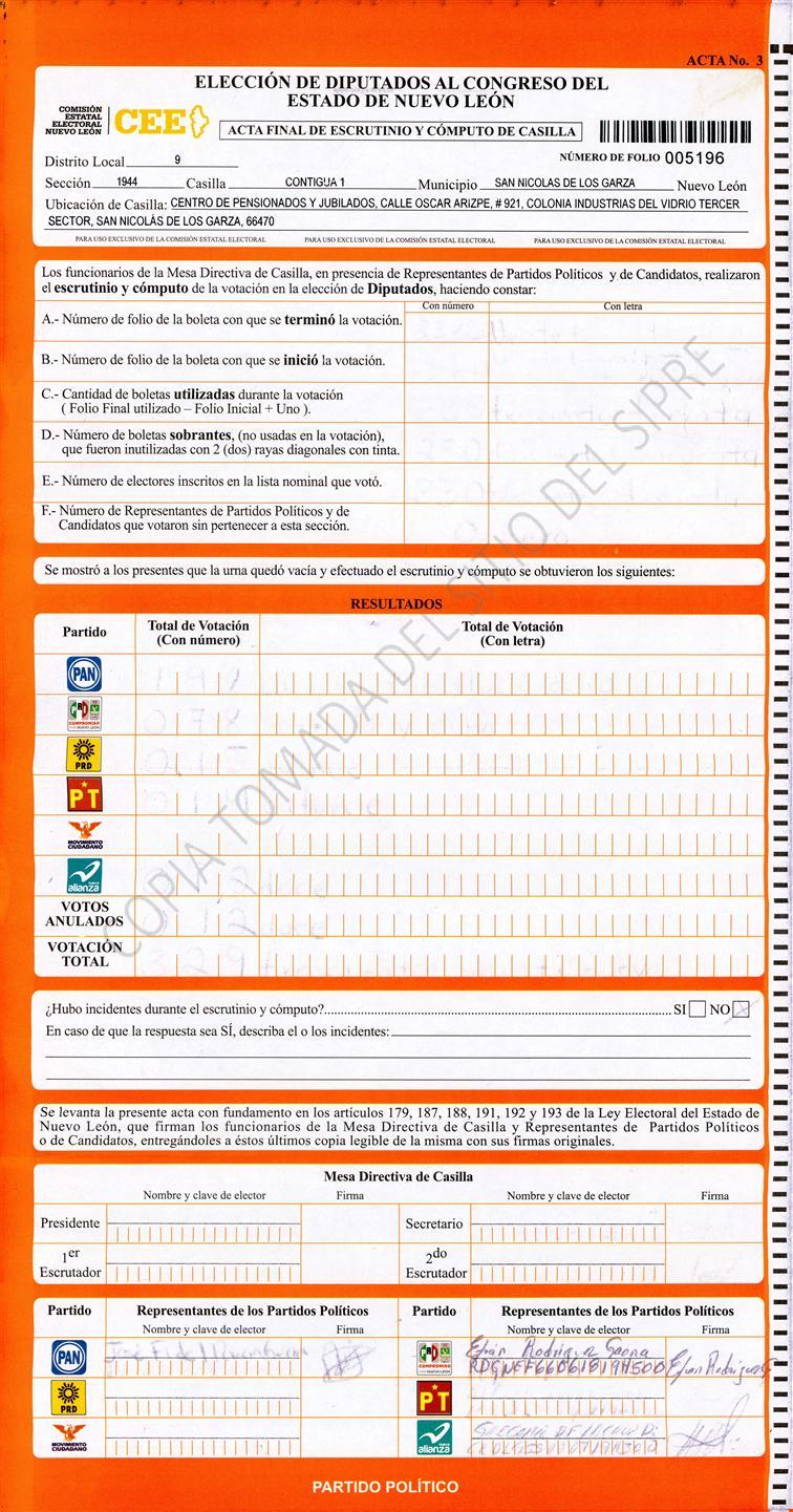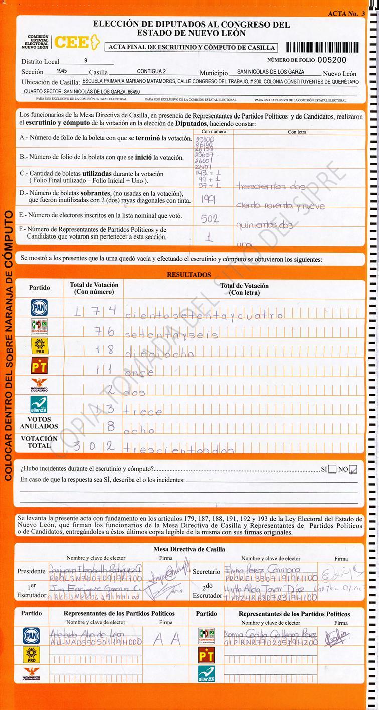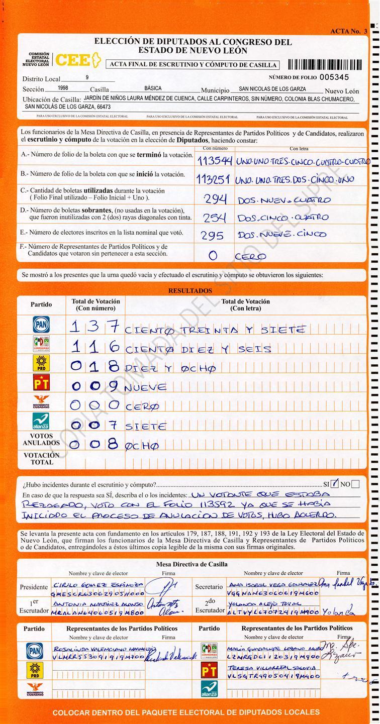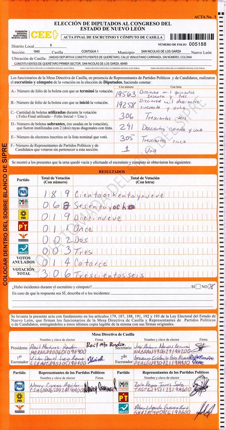 , (8) Copiado Movido , (9) Con Signos Inválidos , (10) Excede Lista Nominal , (11) Otra |