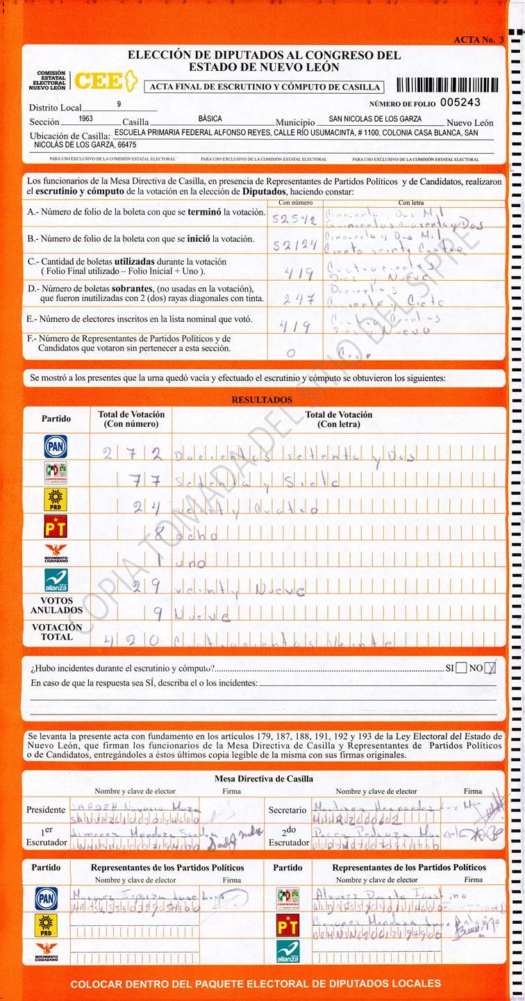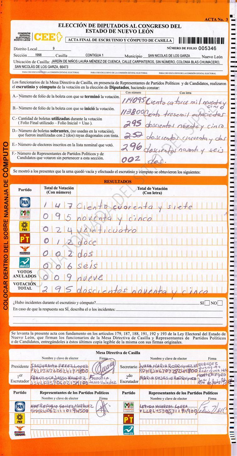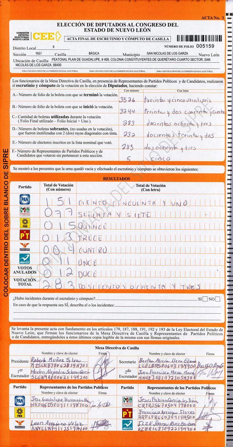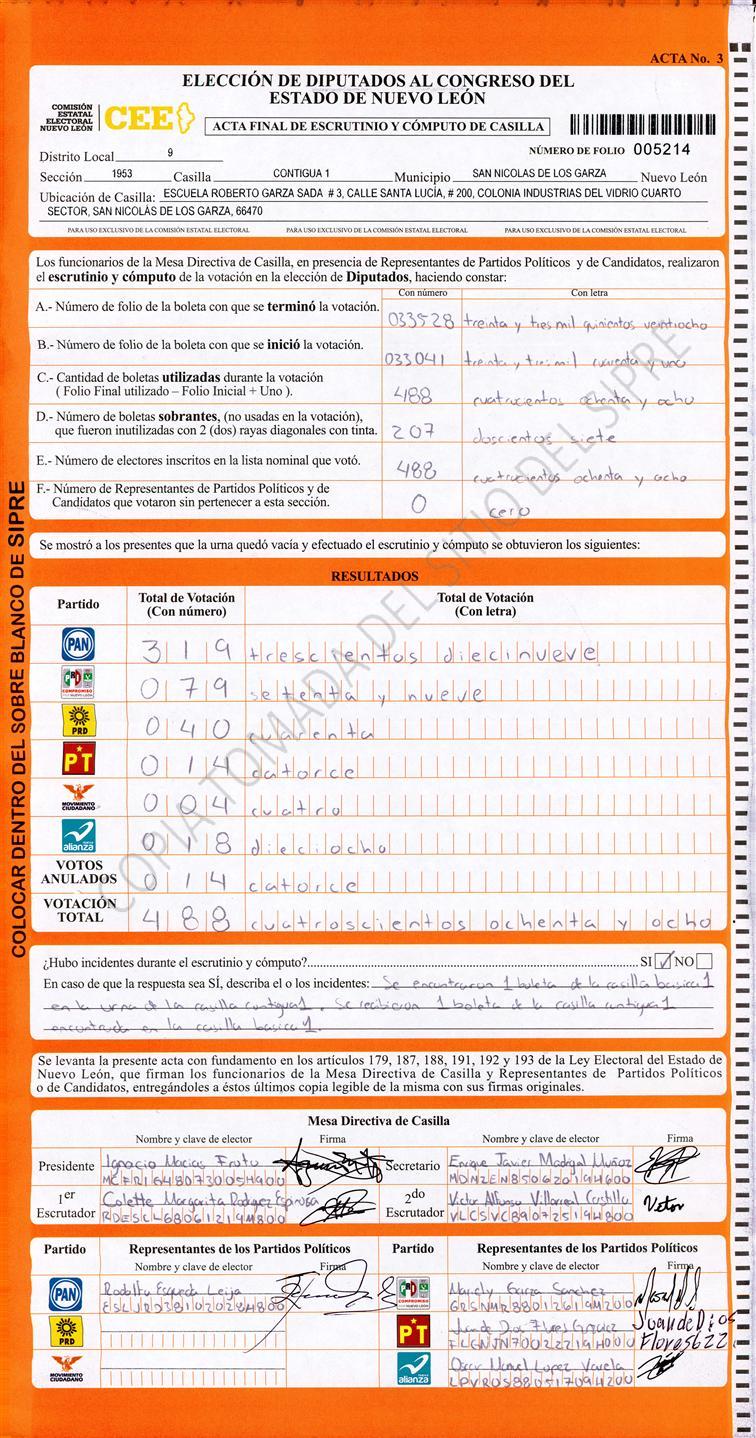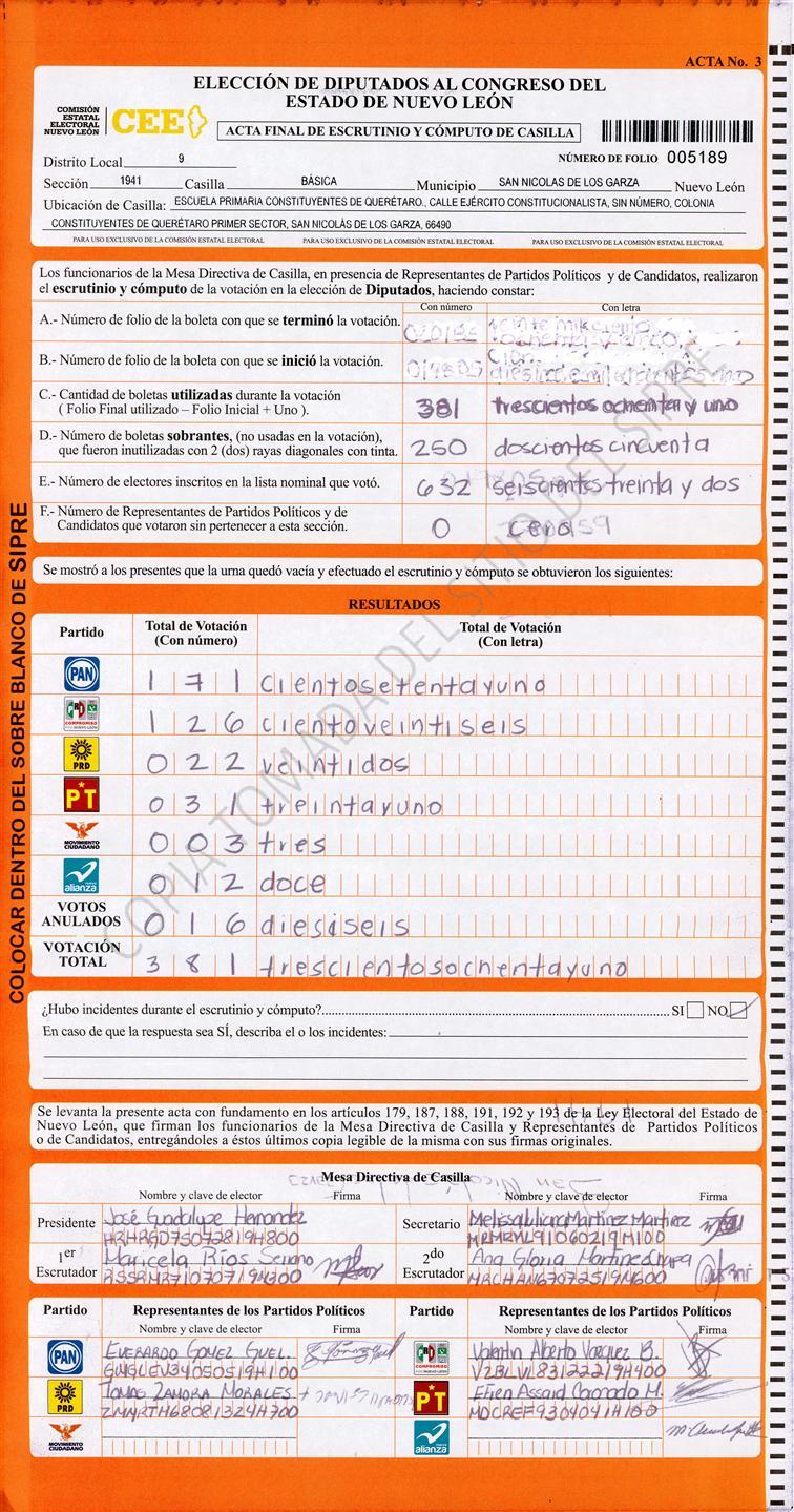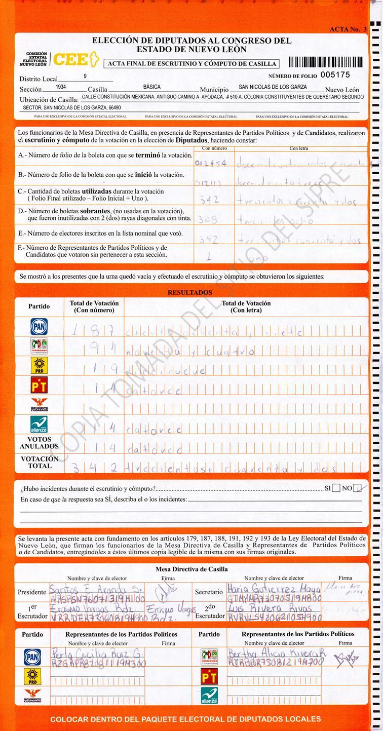 , (8) Copiado Movido , (9) Con Signos Inválidos , (10) Excede Lista Nominal , (11) Otra |
