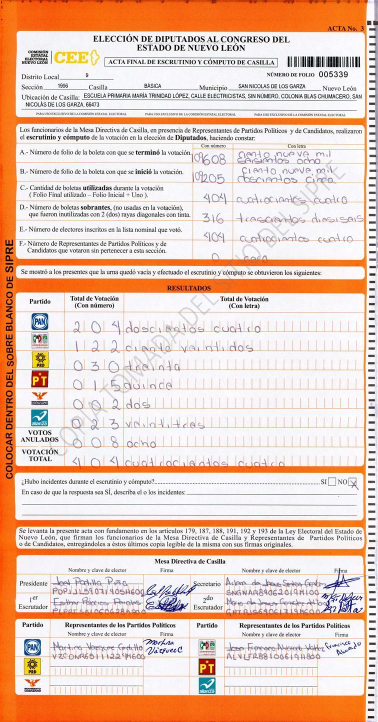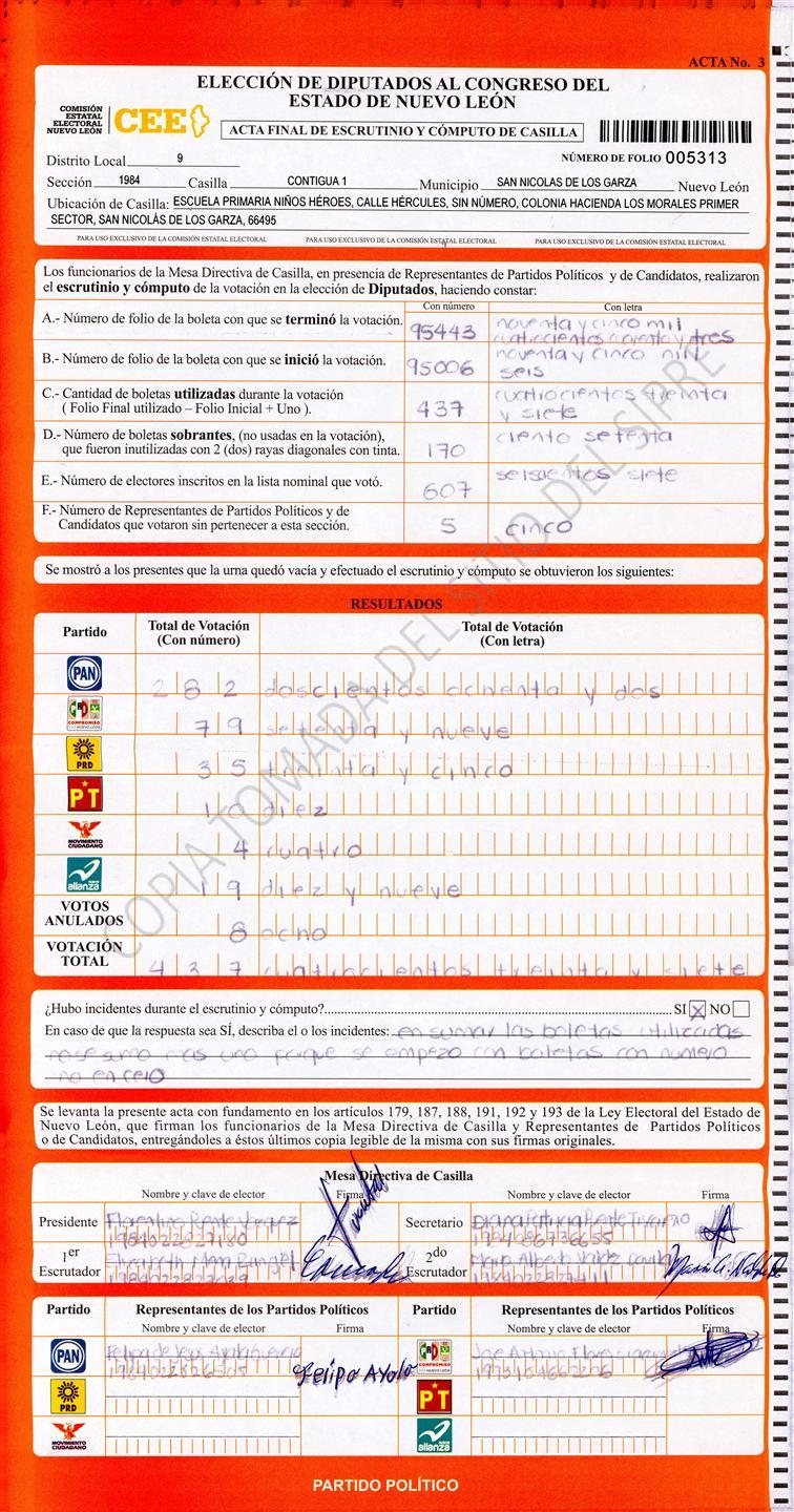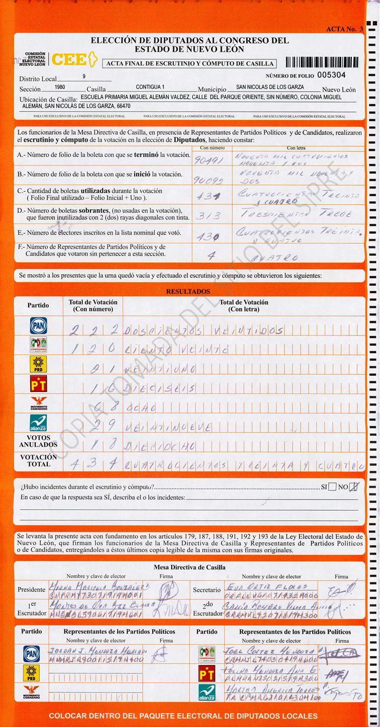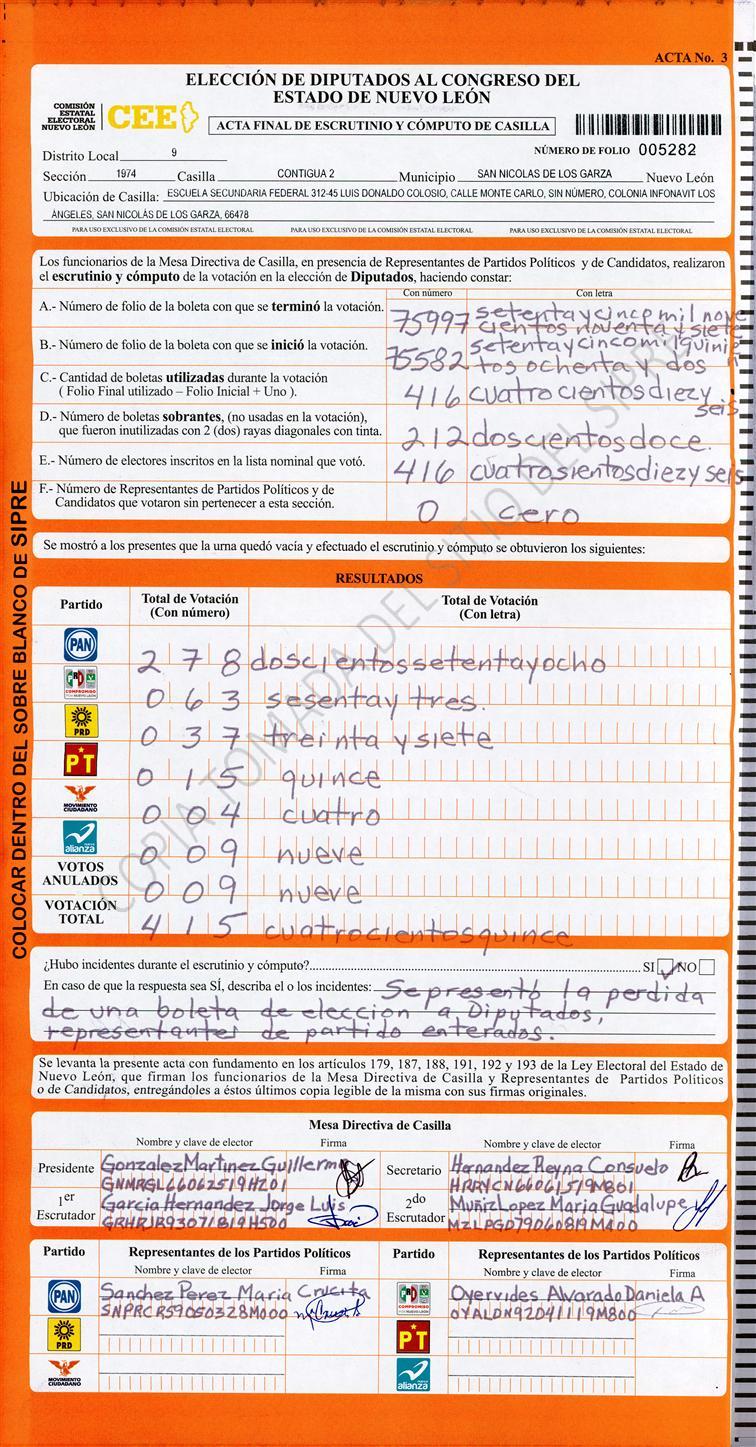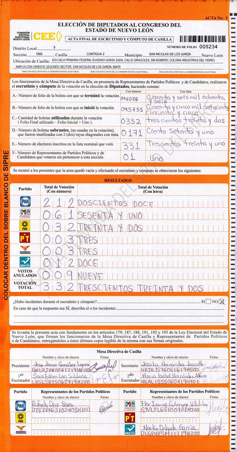 , (8) Copiado Movido , (9) Con Signos Inválidos , (10) Excede Lista Nominal , (11) Otra |
