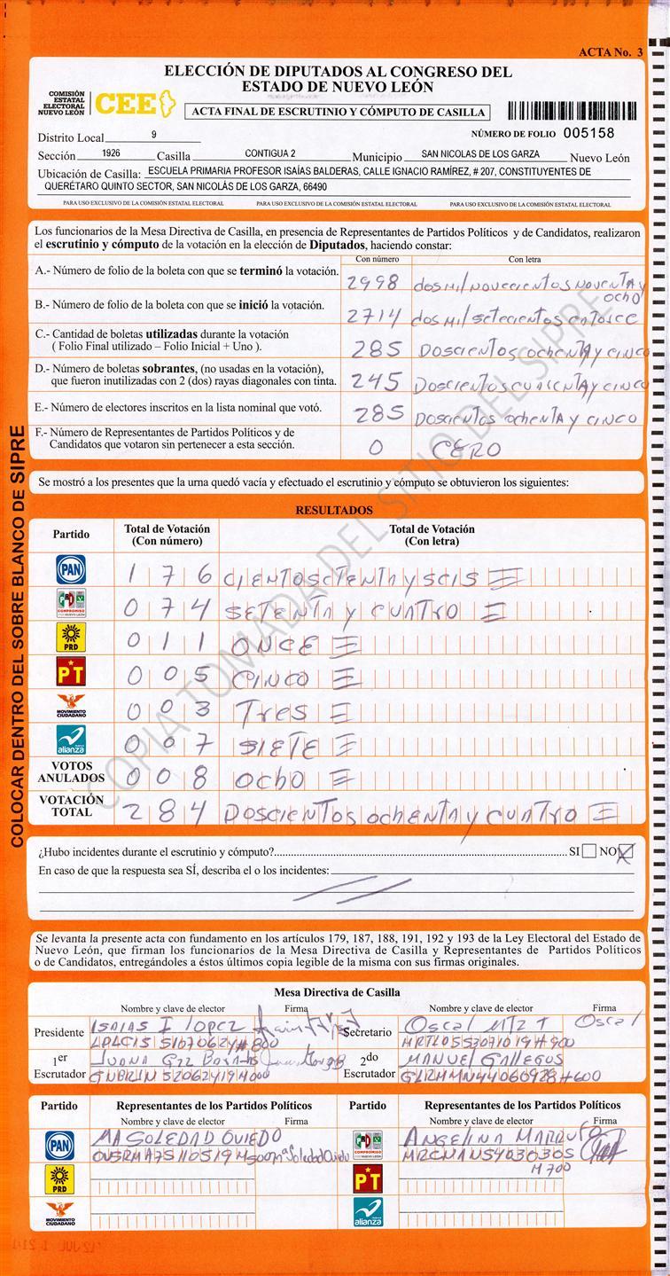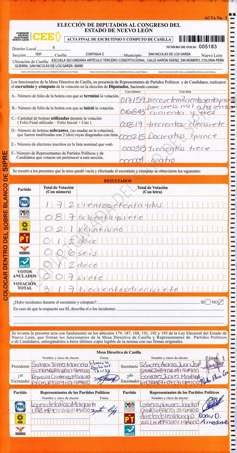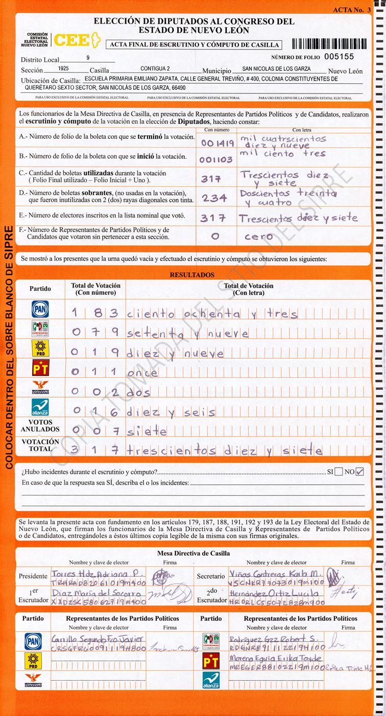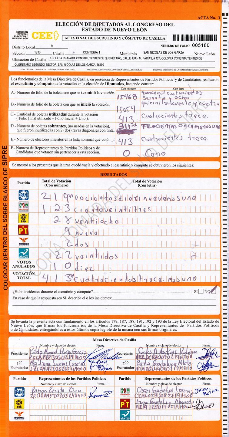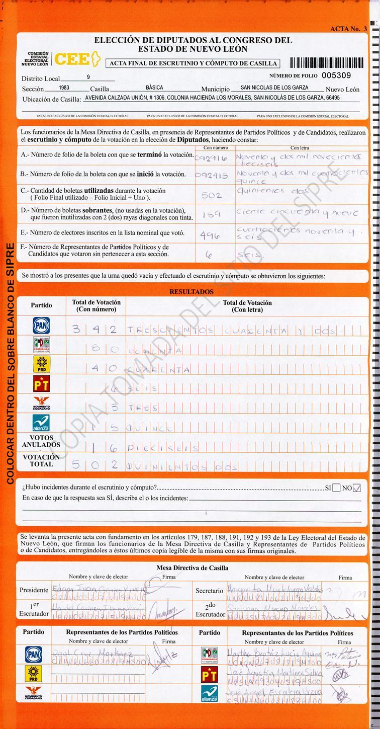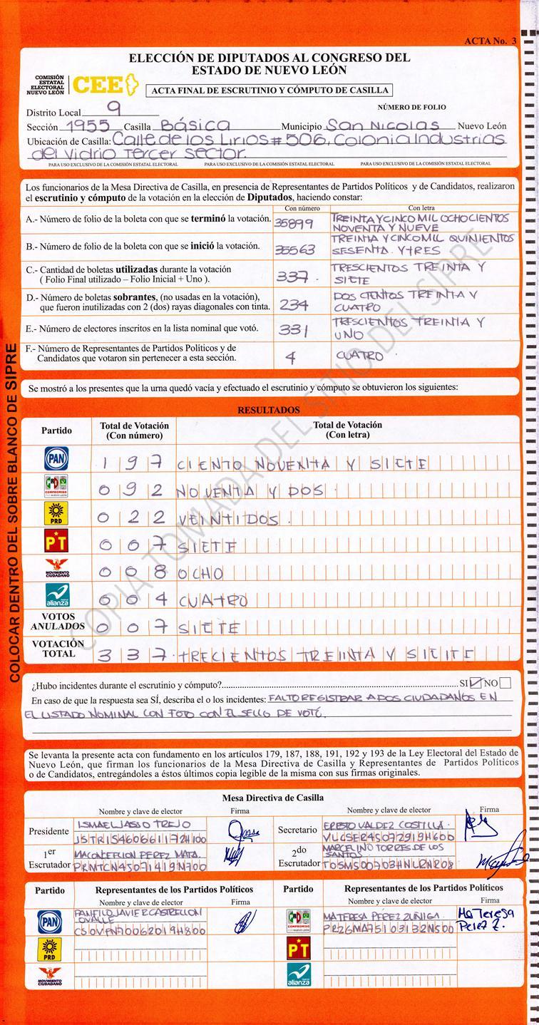 , (8) Copiado Movido , (9) Con Signos Inválidos , (10) Excede Lista Nominal , (11) Otra |
