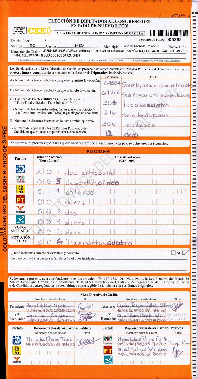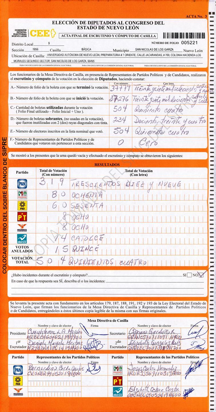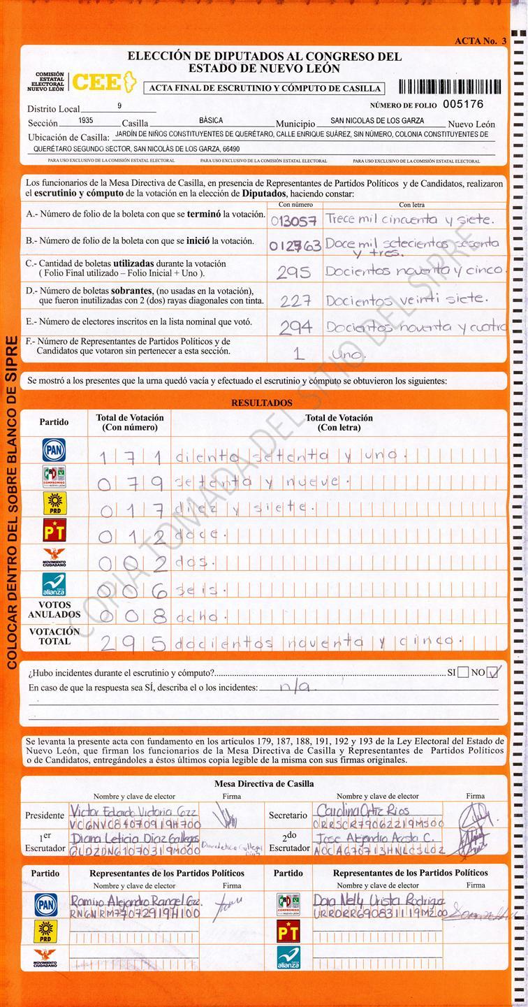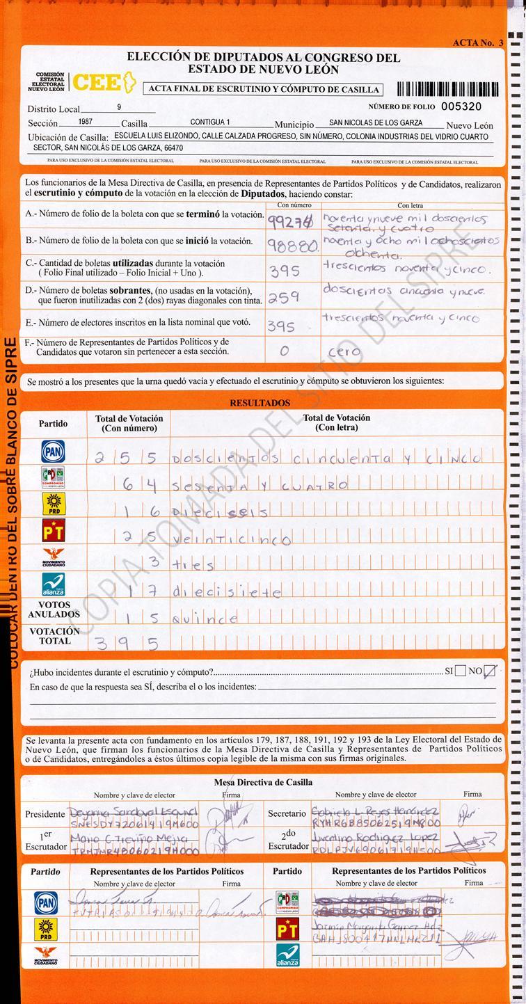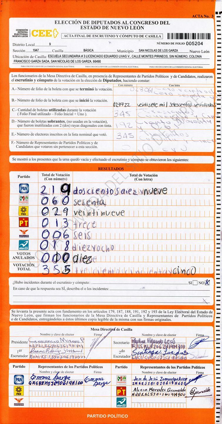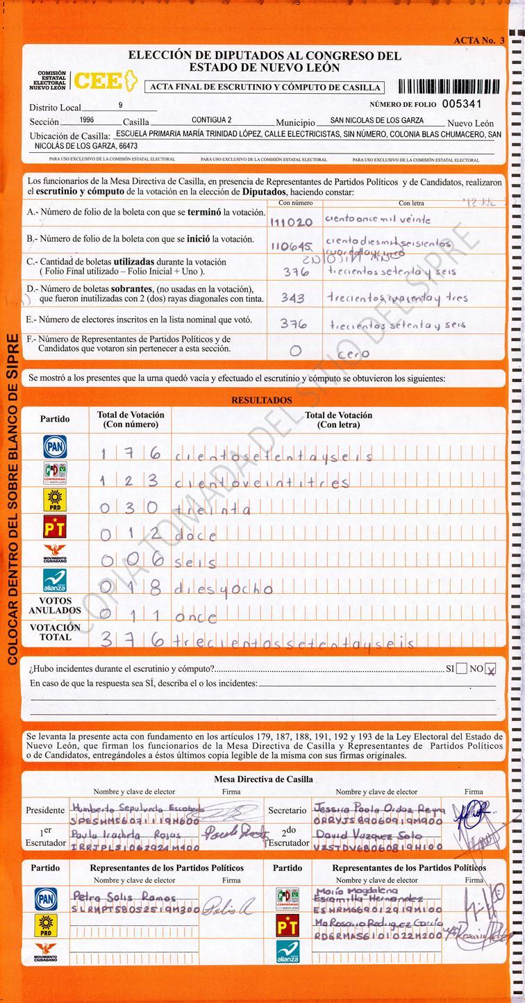 , (8) Copiado Movido , (9) Con Signos Inválidos , (10) Excede Lista Nominal , (11) Otra |