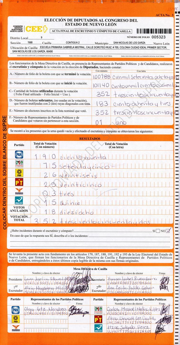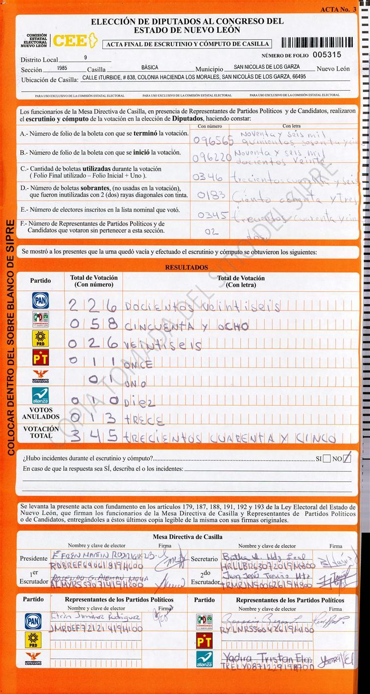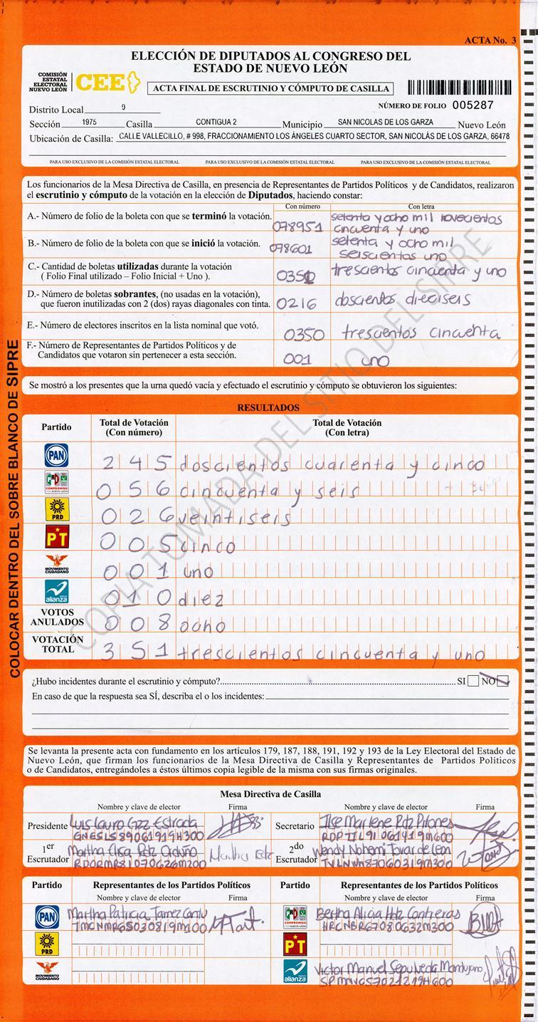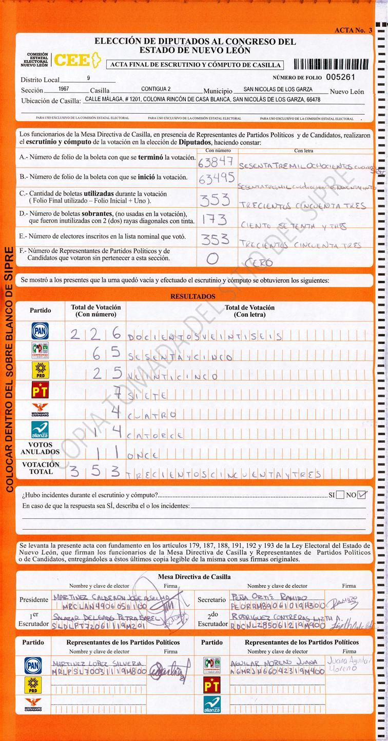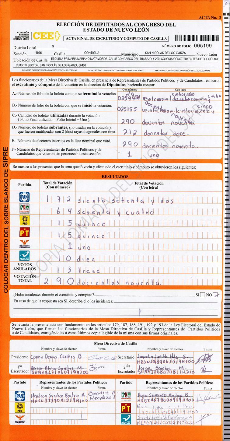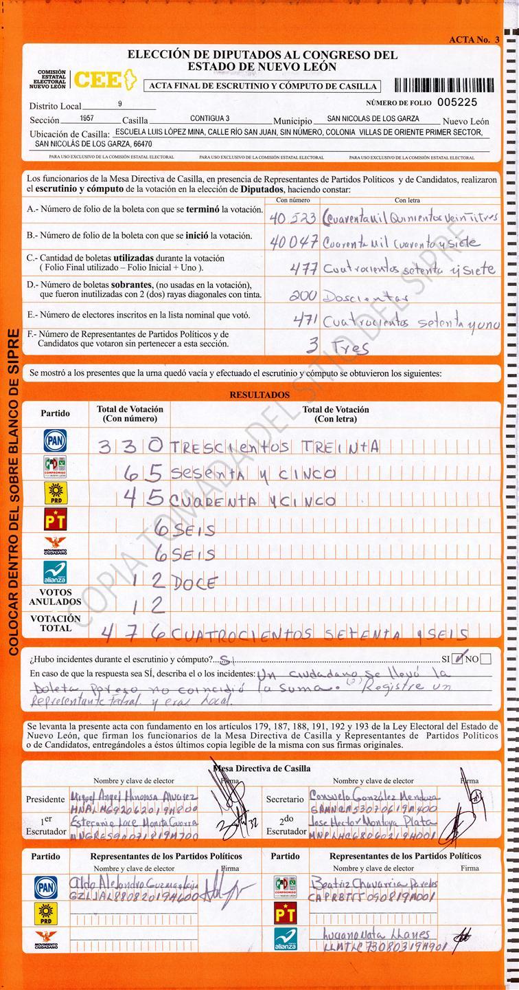 , (8) Copiado Movido , (9) Con Signos Inválidos , (10) Excede Lista Nominal , (11) Otra |