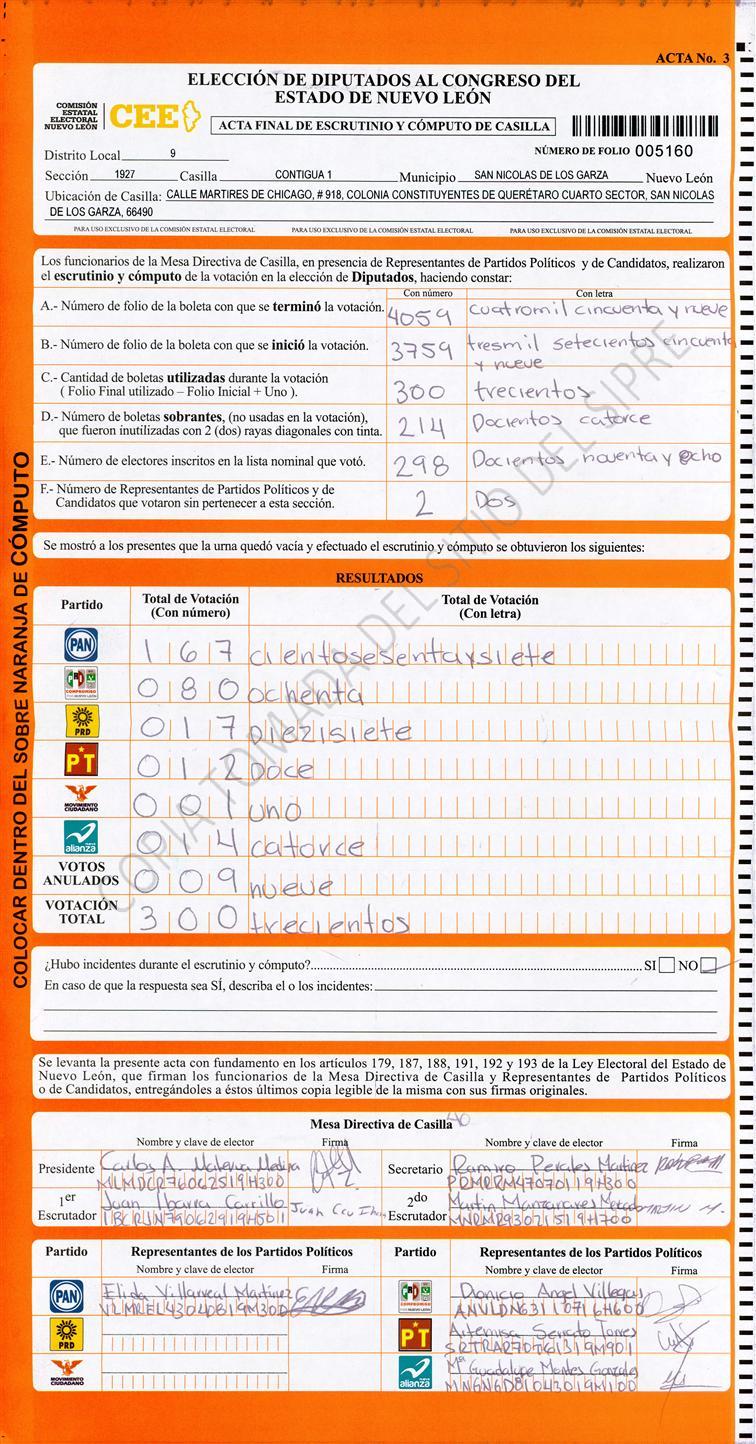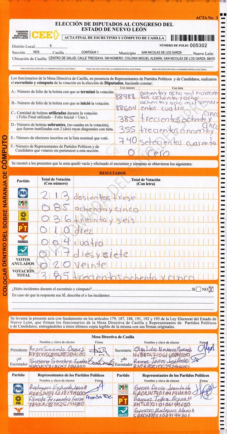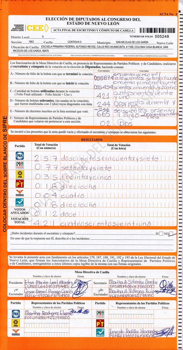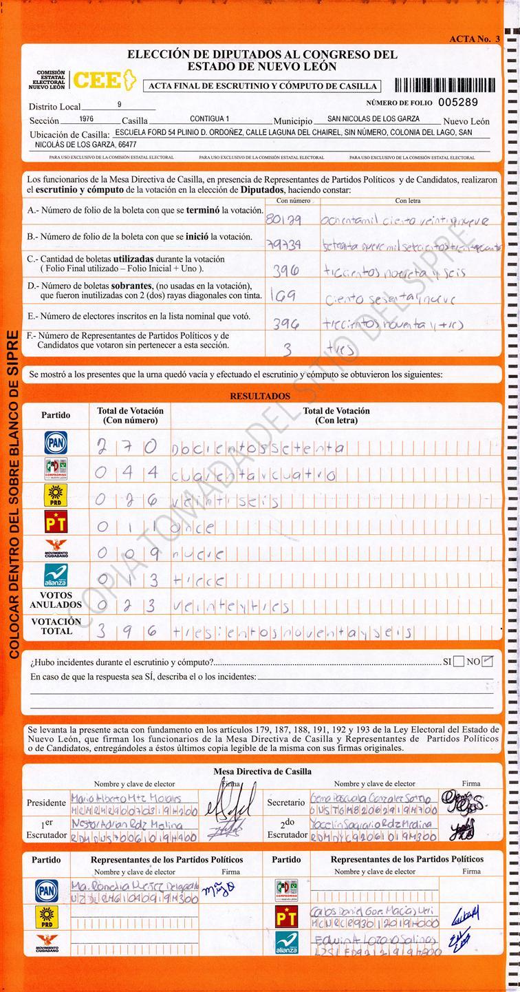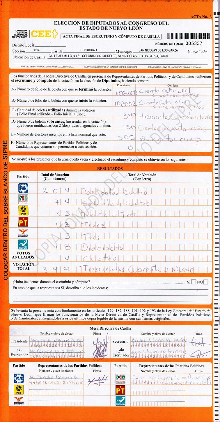 , (8) Copiado Movido , (9) Con Signos Inválidos , (10) Excede Lista Nominal , (11) Otra |