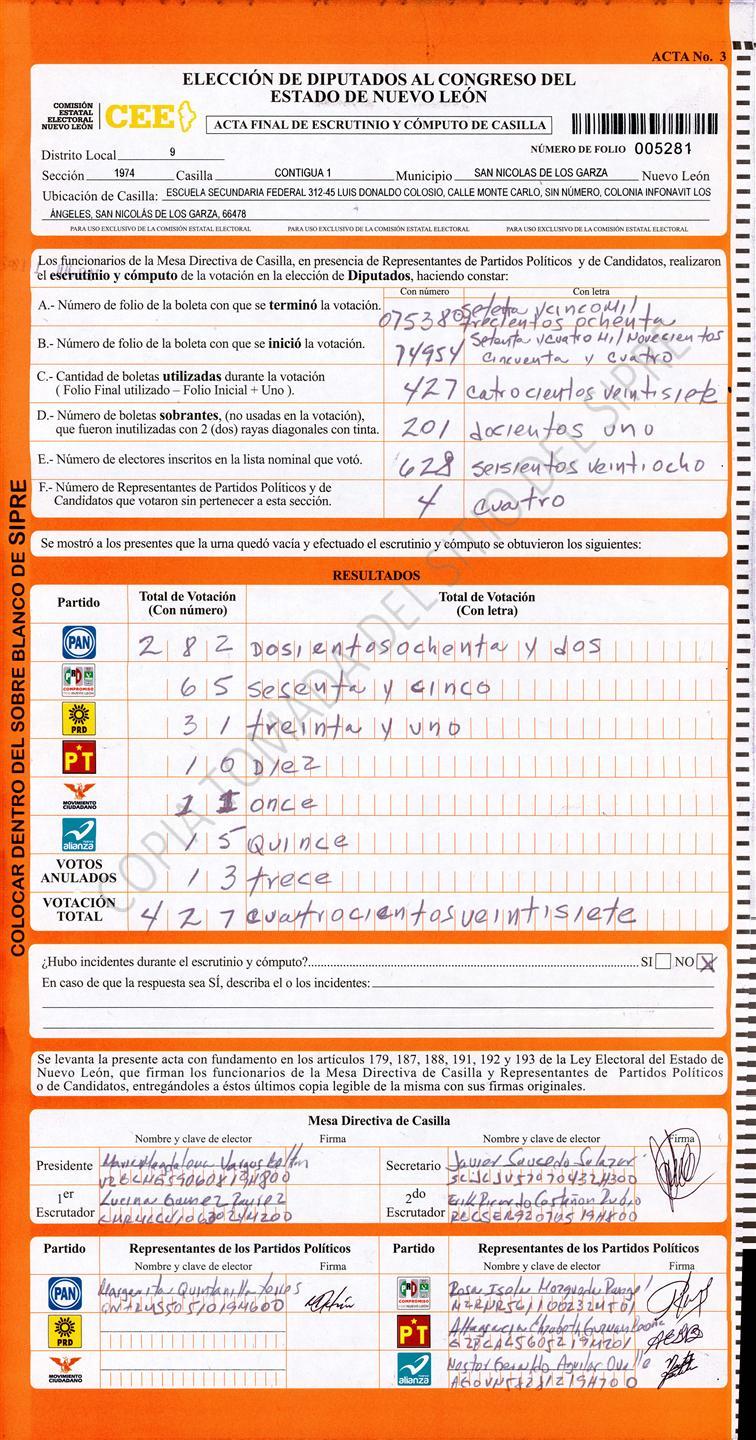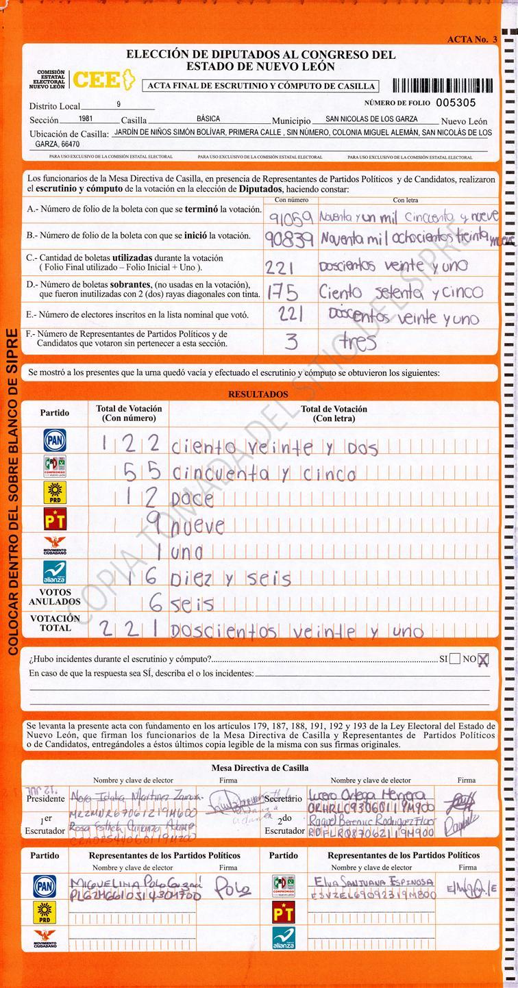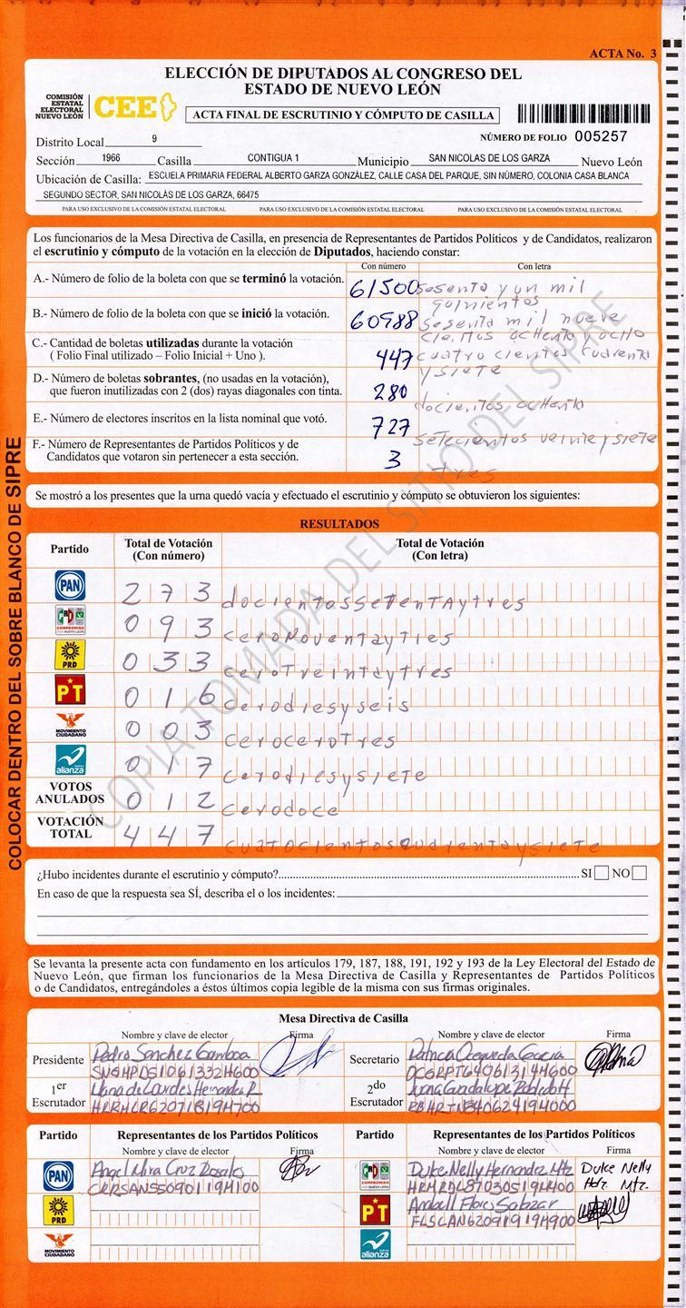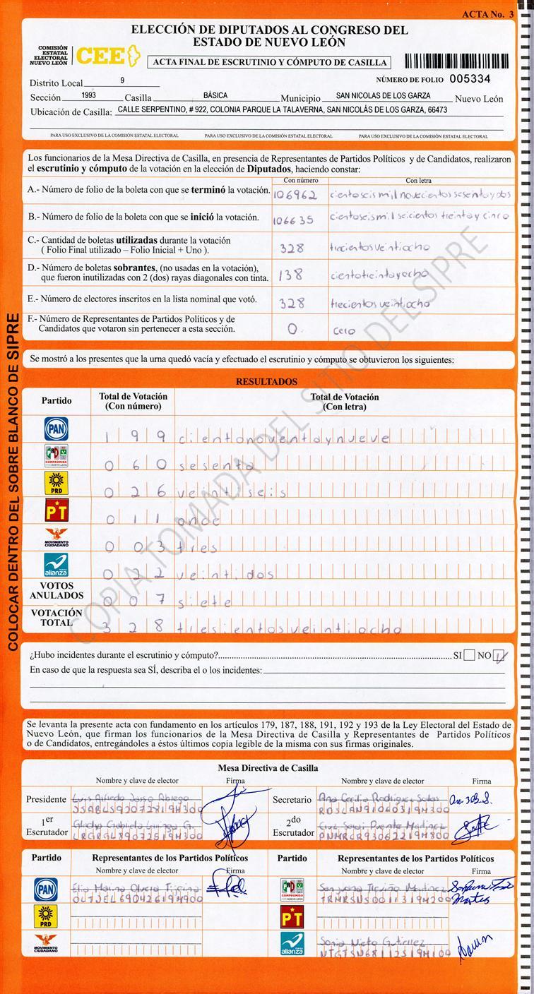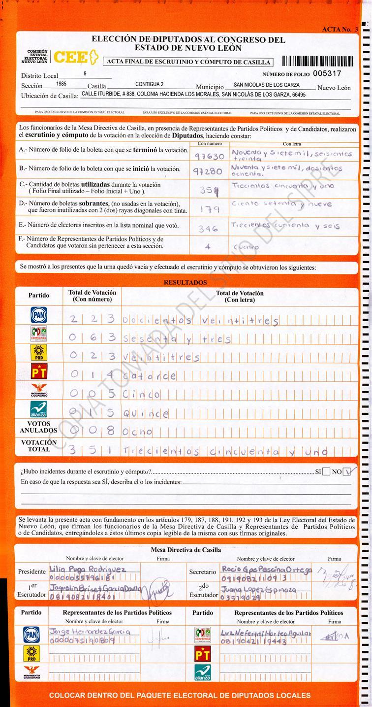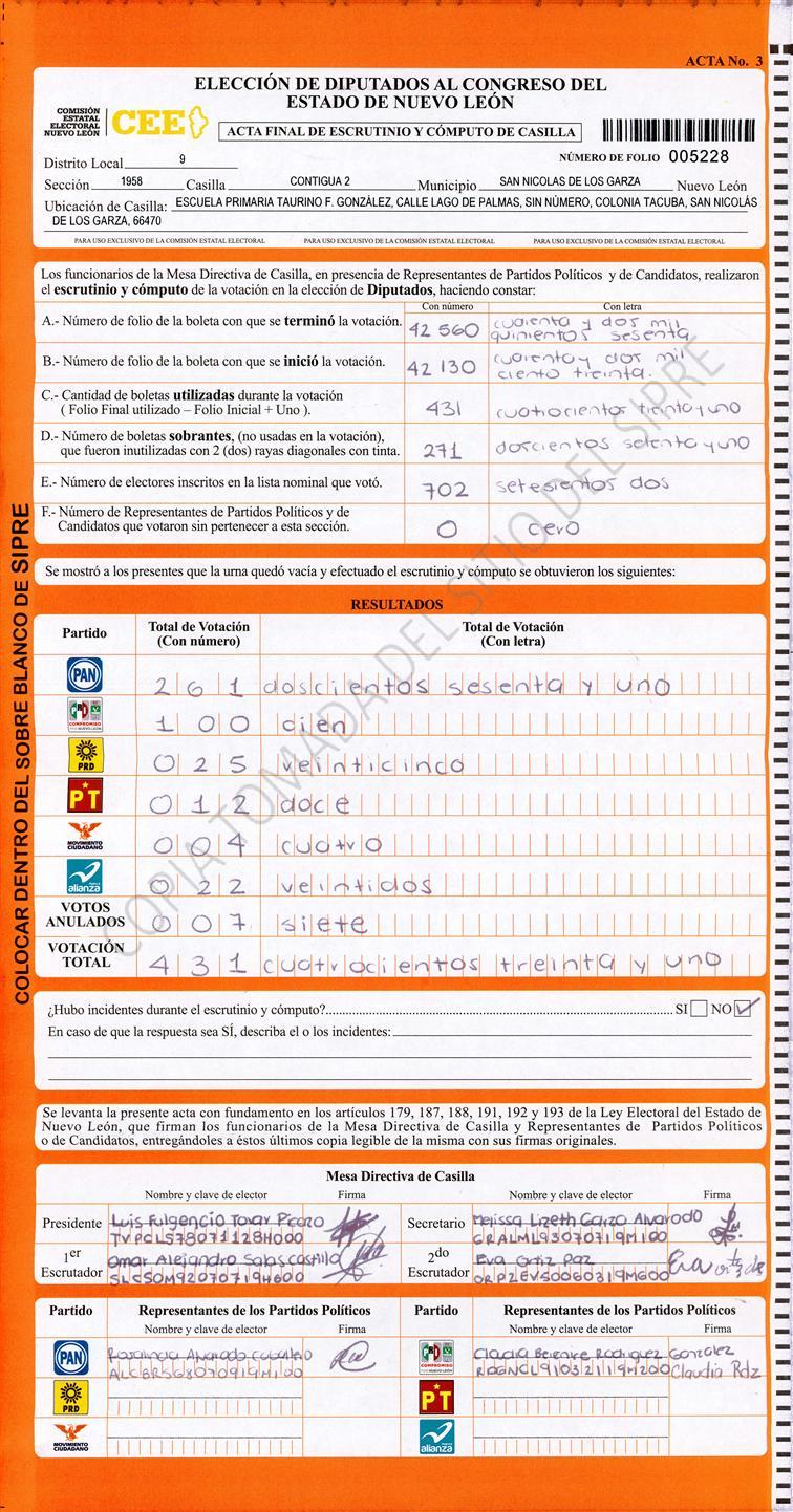 , (8) Copiado Movido , (9) Con Signos Inválidos , (10) Excede Lista Nominal , (11) Otra |