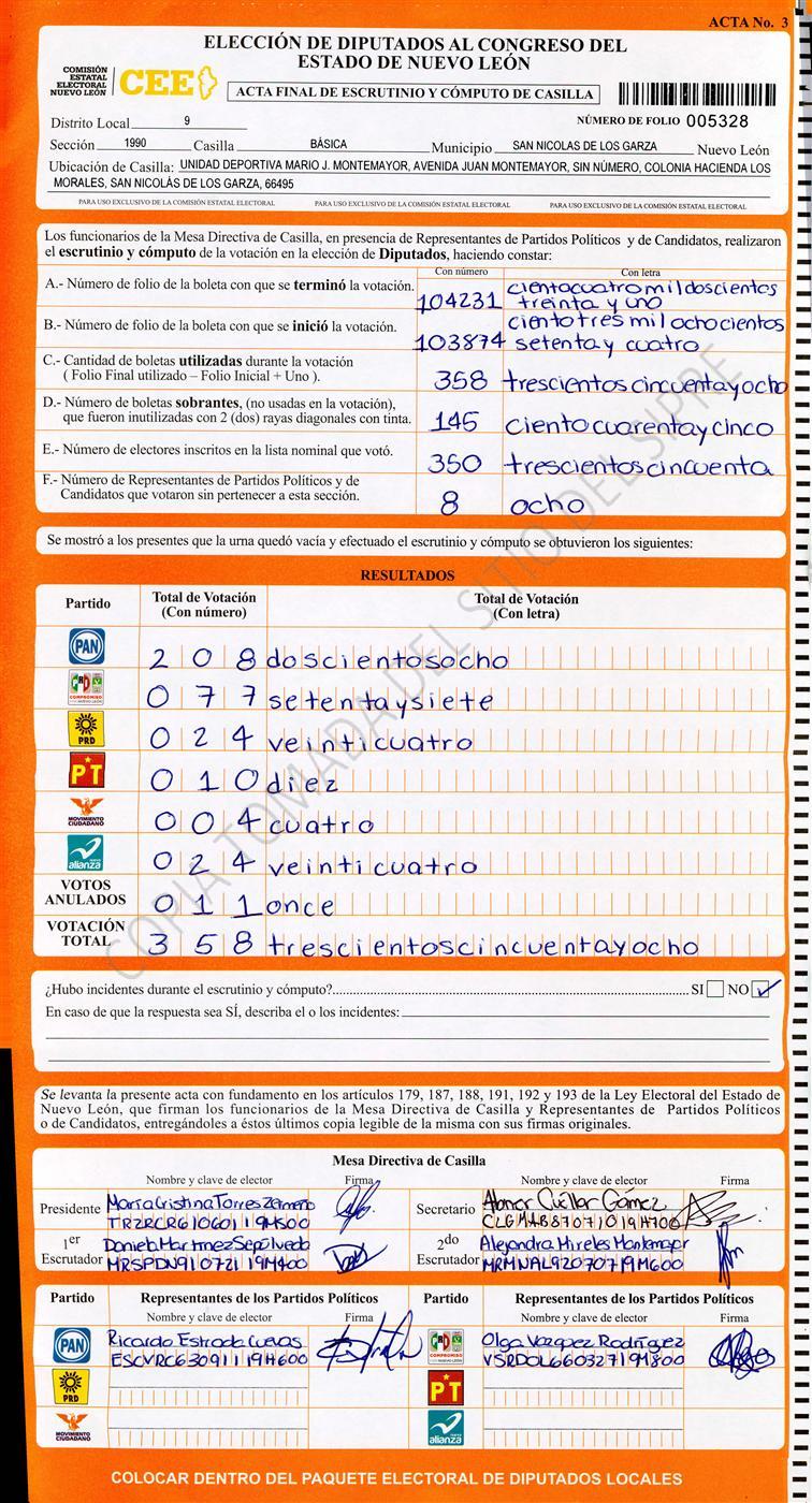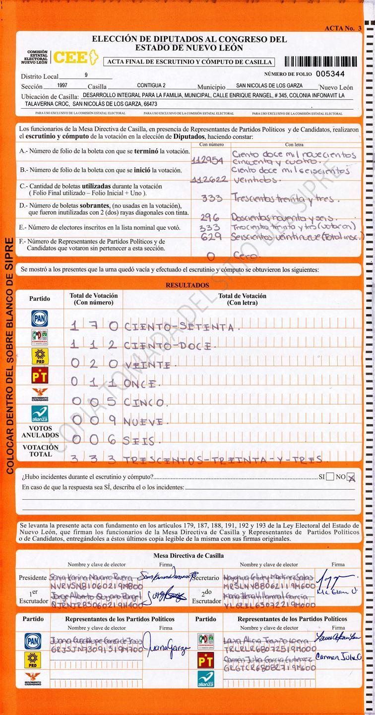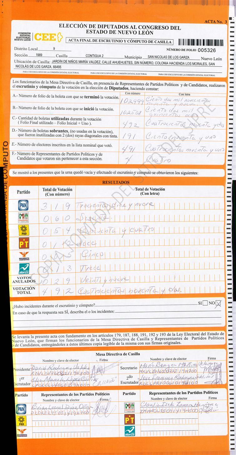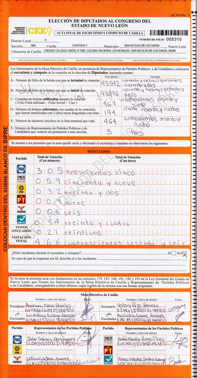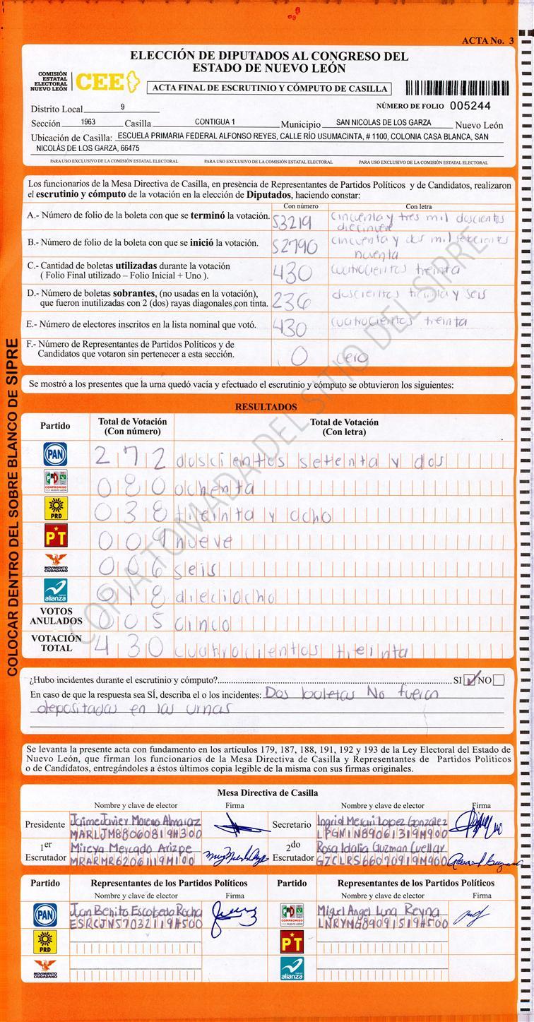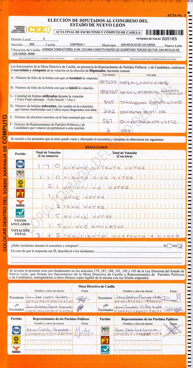 , (8) Copiado Movido , (9) Con Signos Inválidos , (10) Excede Lista Nominal , (11) Otra |