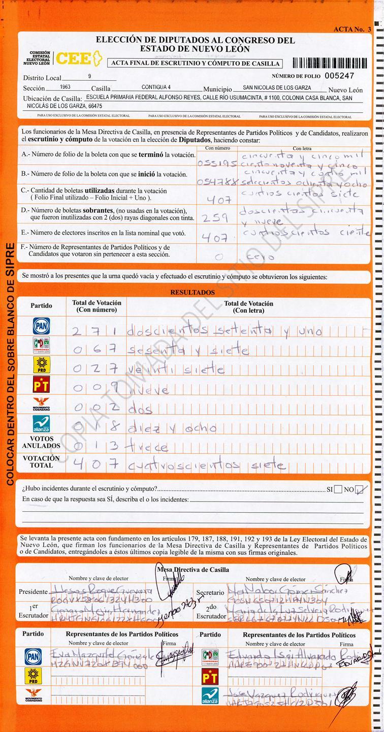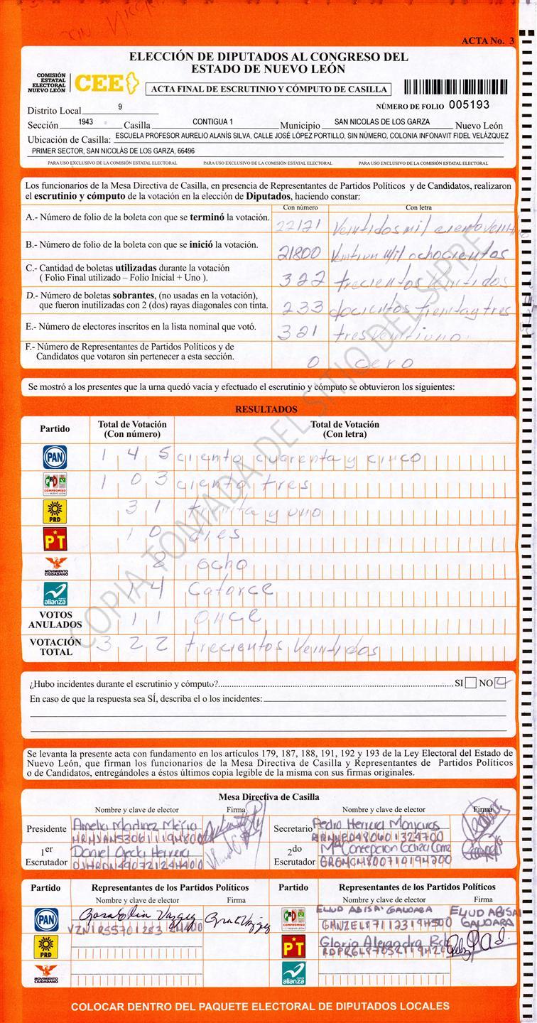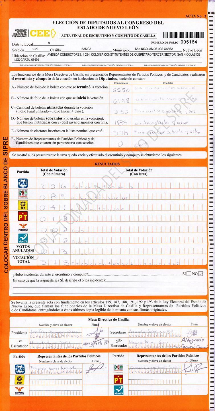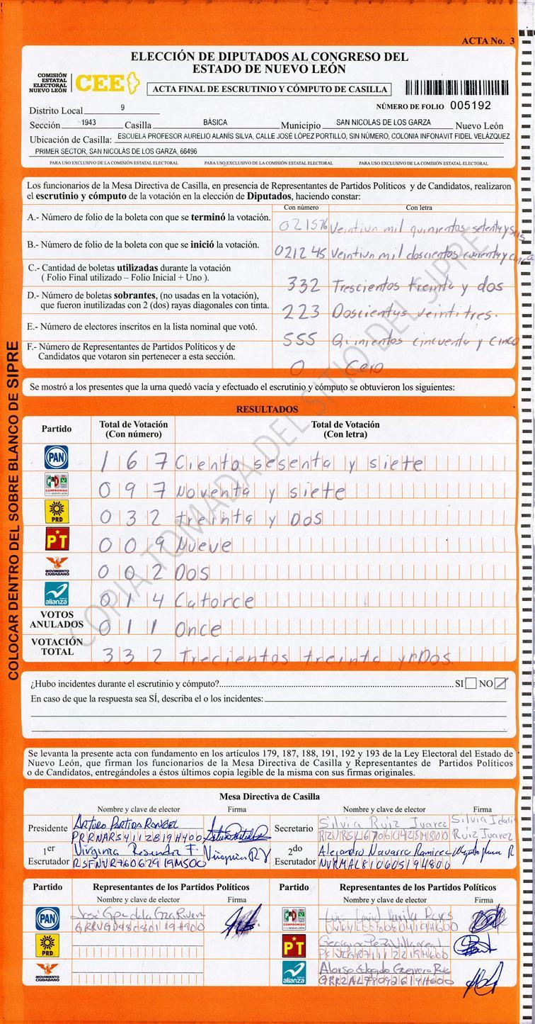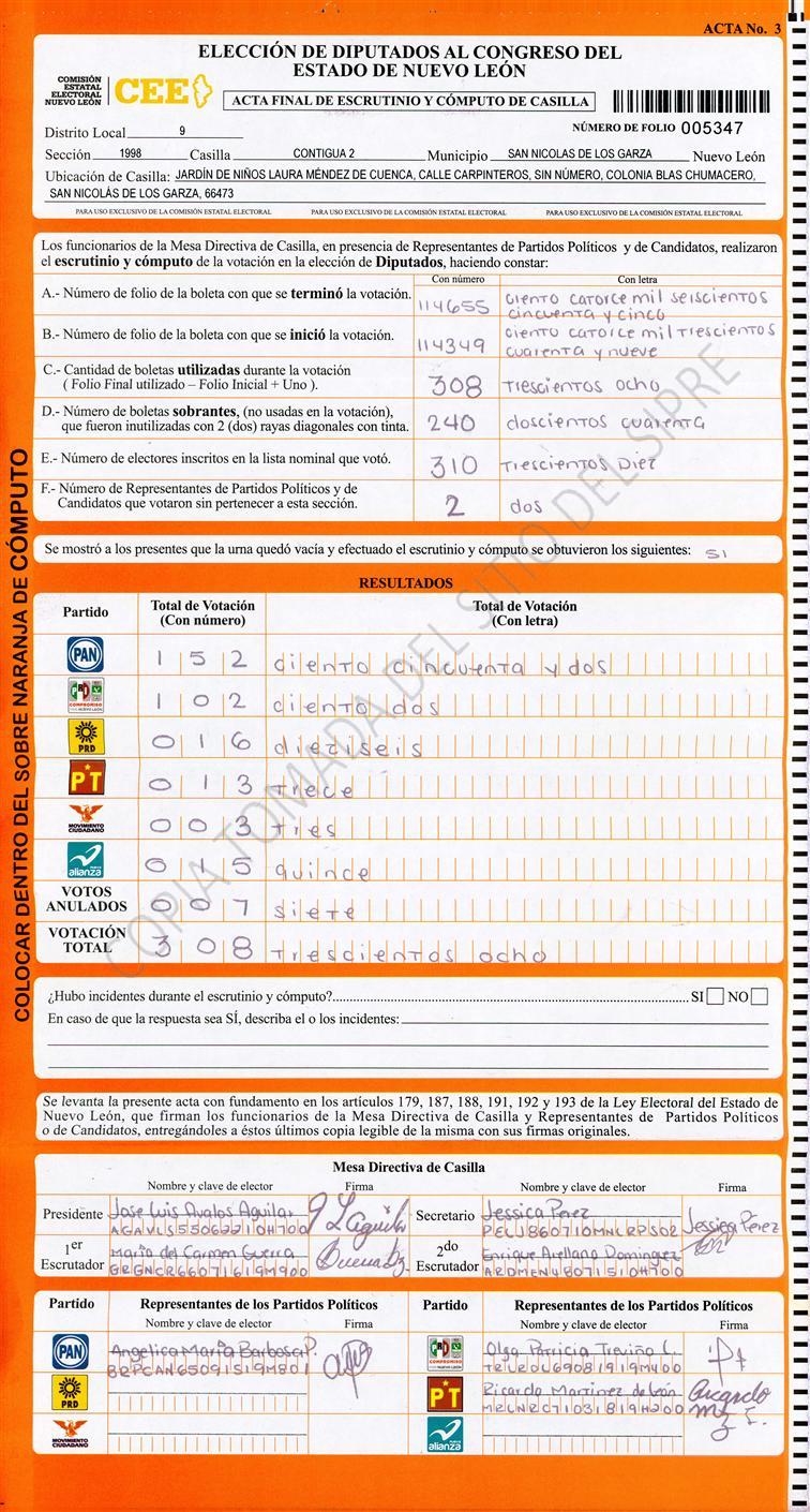 , (8) Copiado Movido , (9) Con Signos Inválidos , (10) Excede Lista Nominal , (11) Otra |